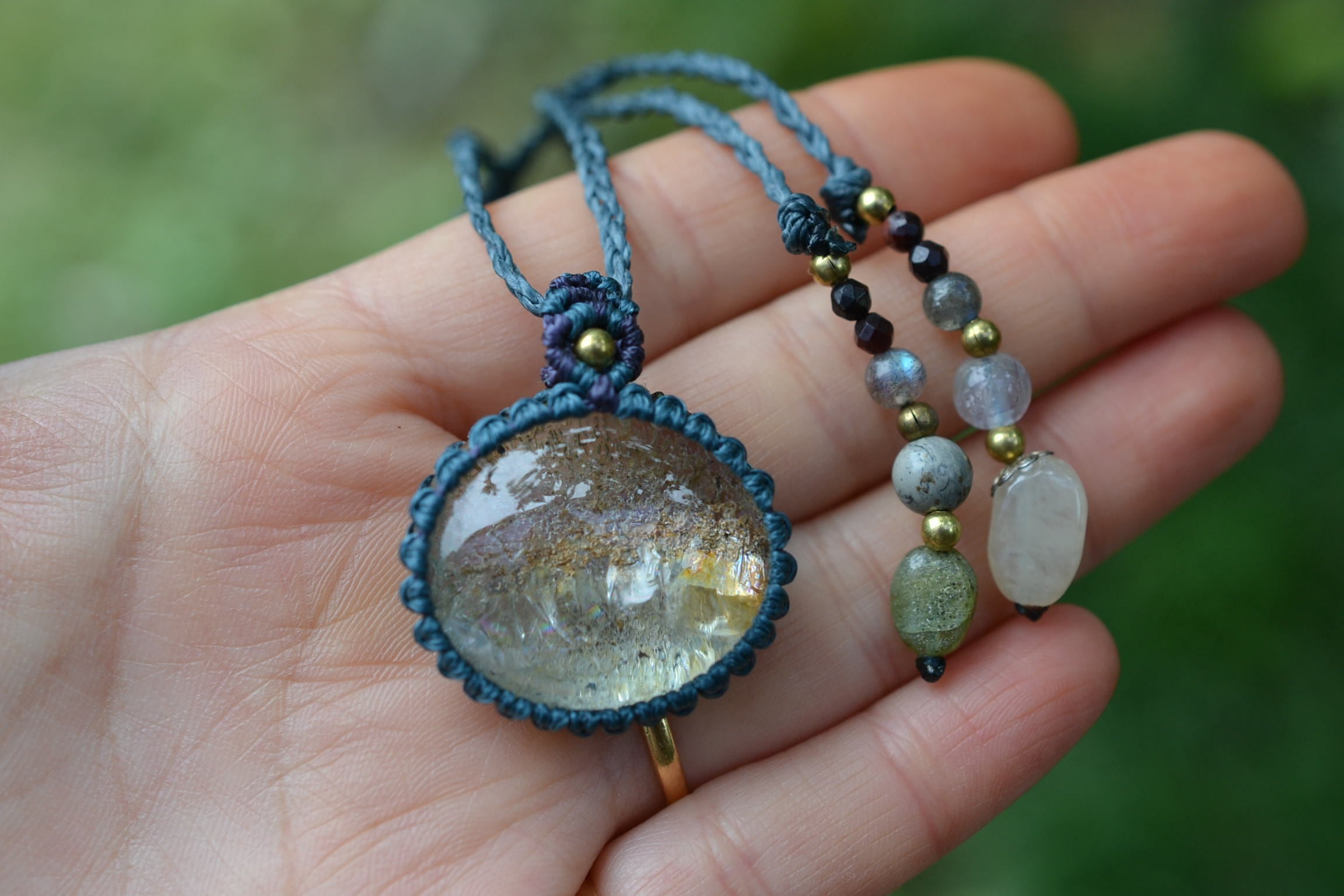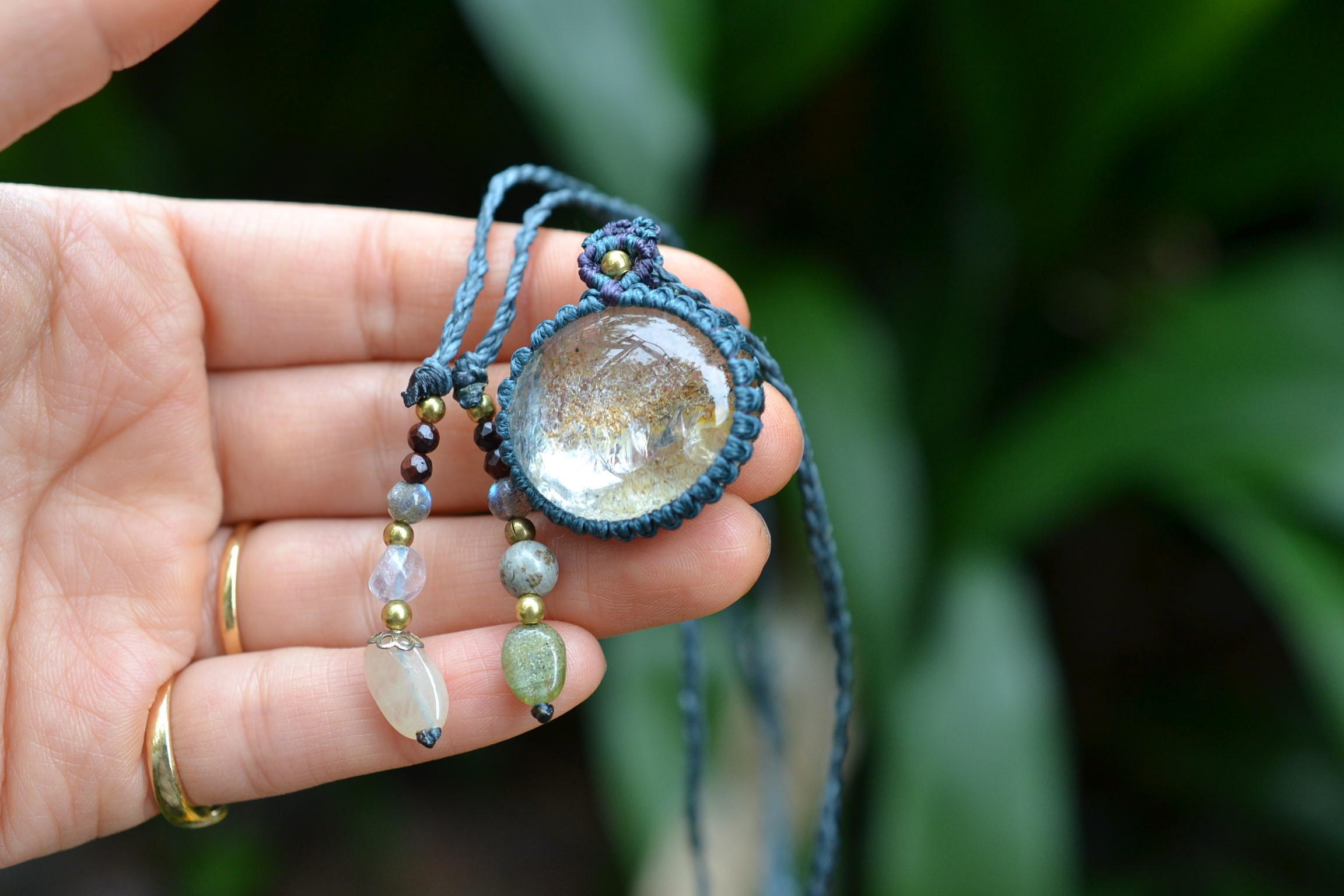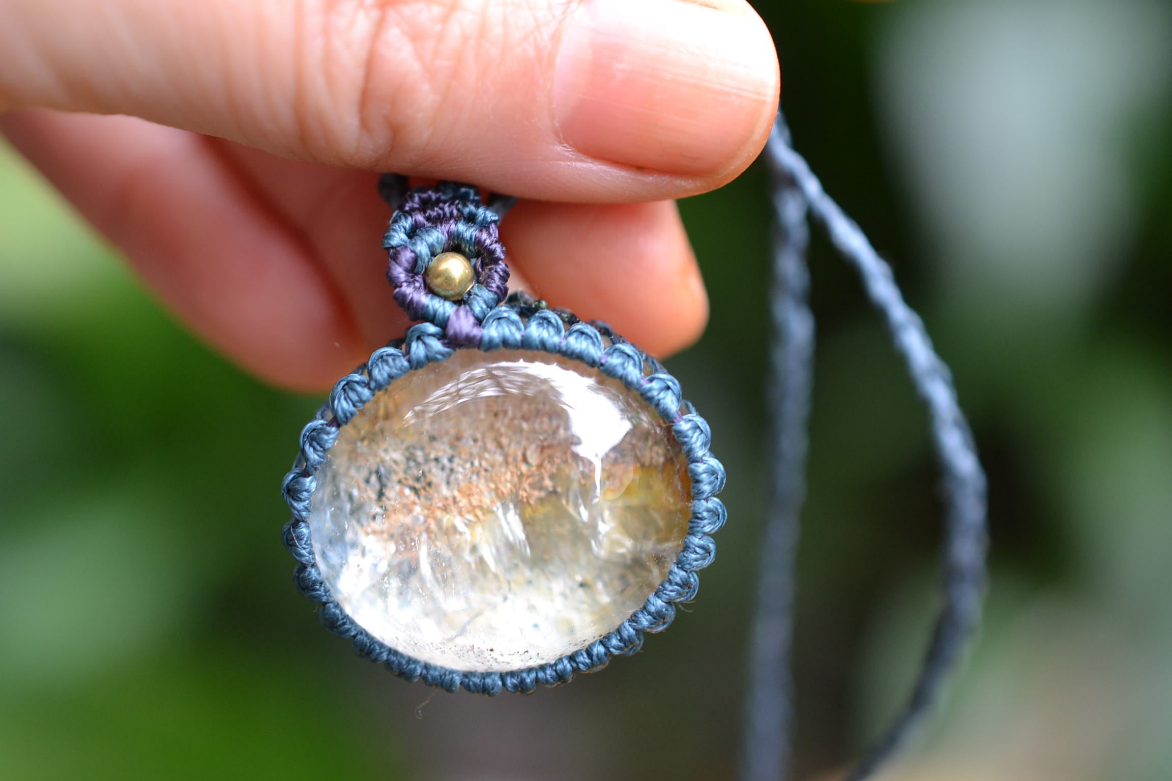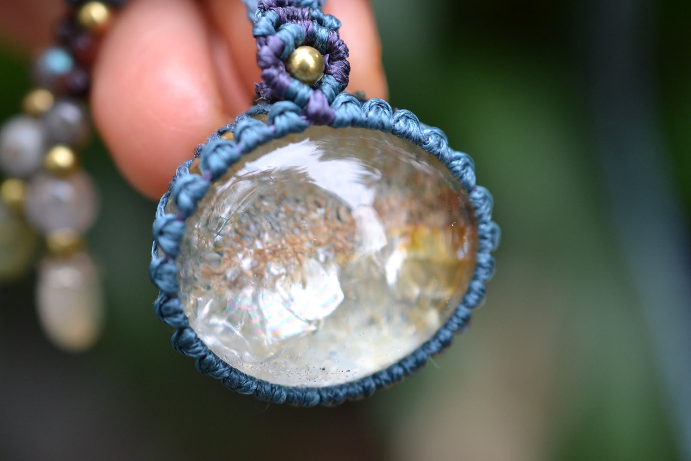 キラキラインクルージョン★ガーデンクォーツ マクラメペンダント