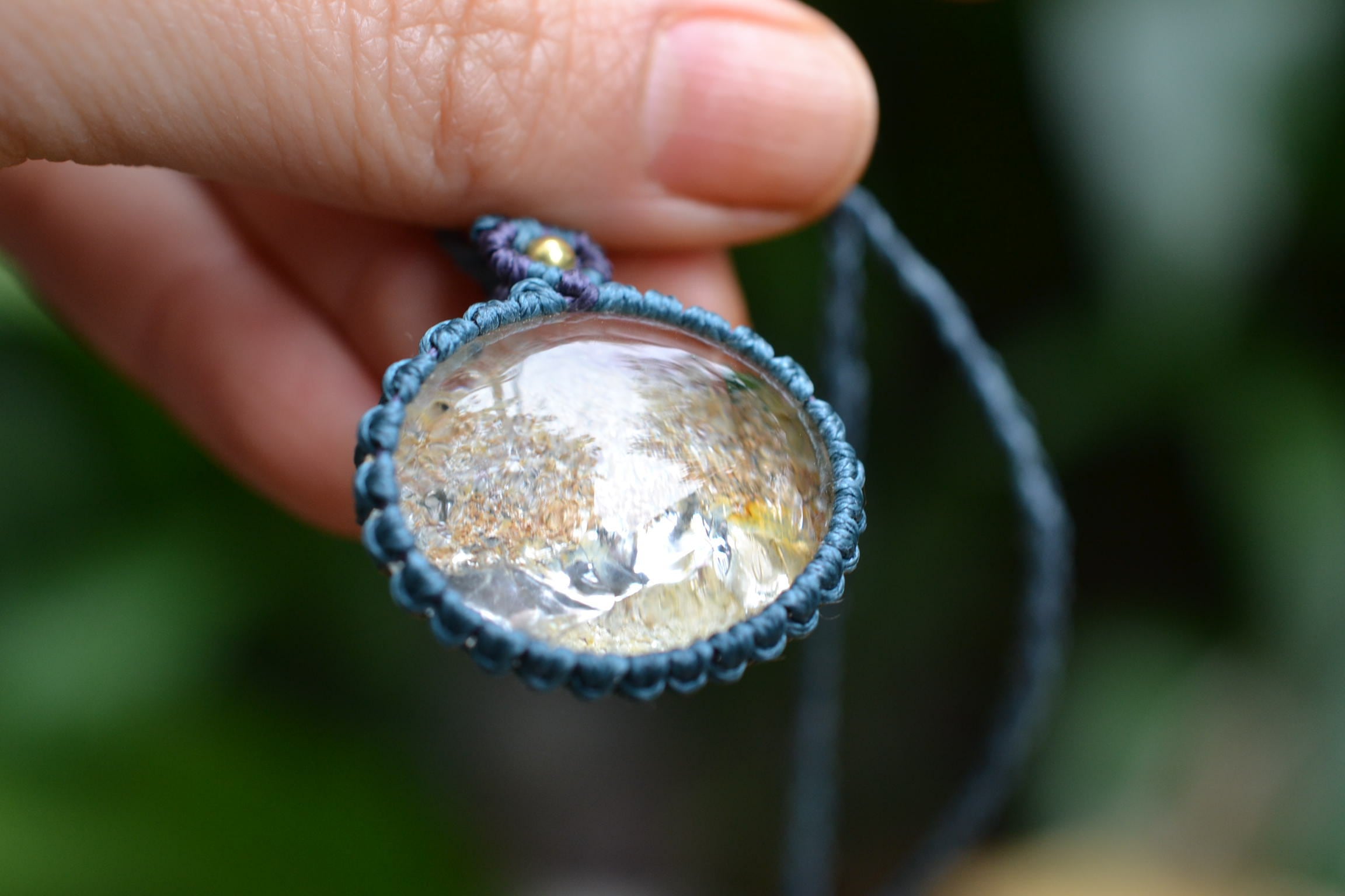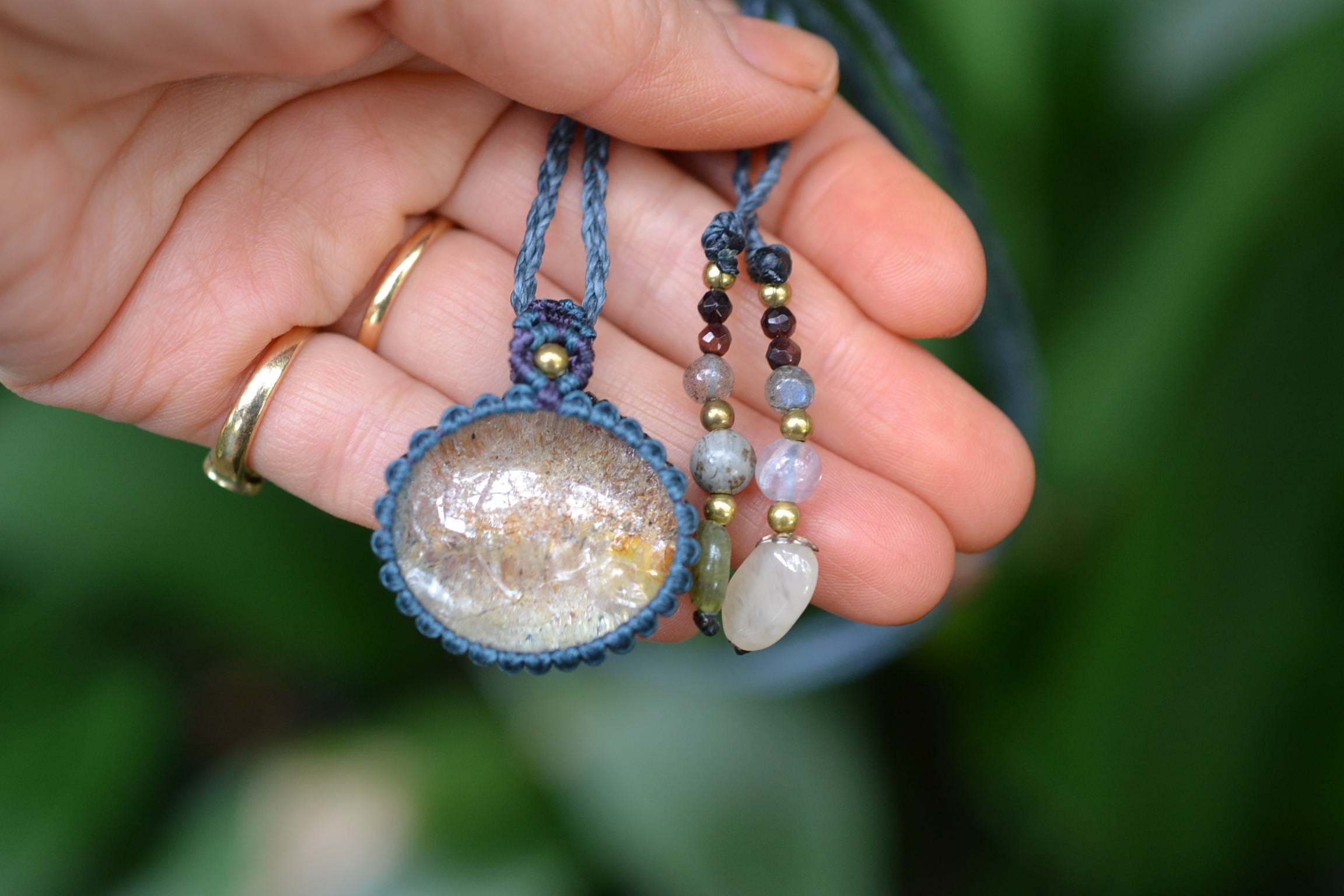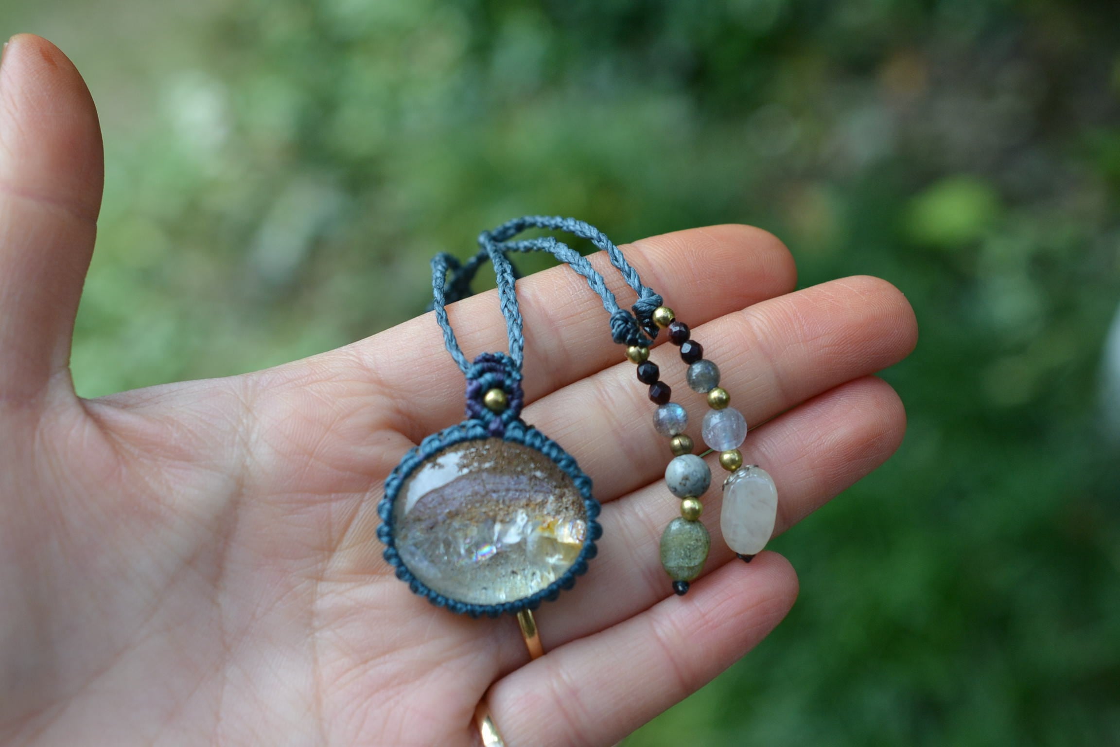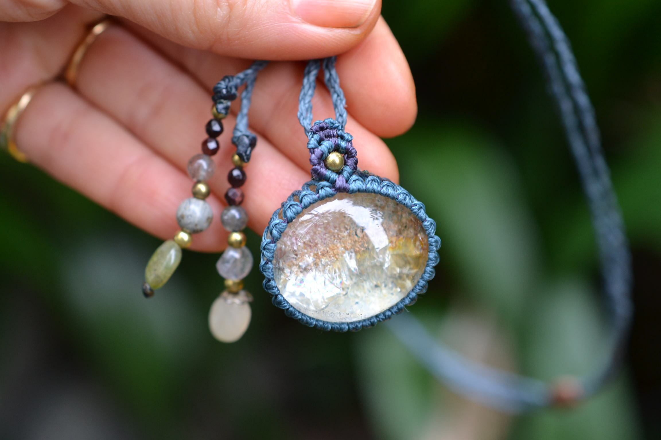 キラキラインクルージョン★ガーデンクォーツ マクラメペンダント