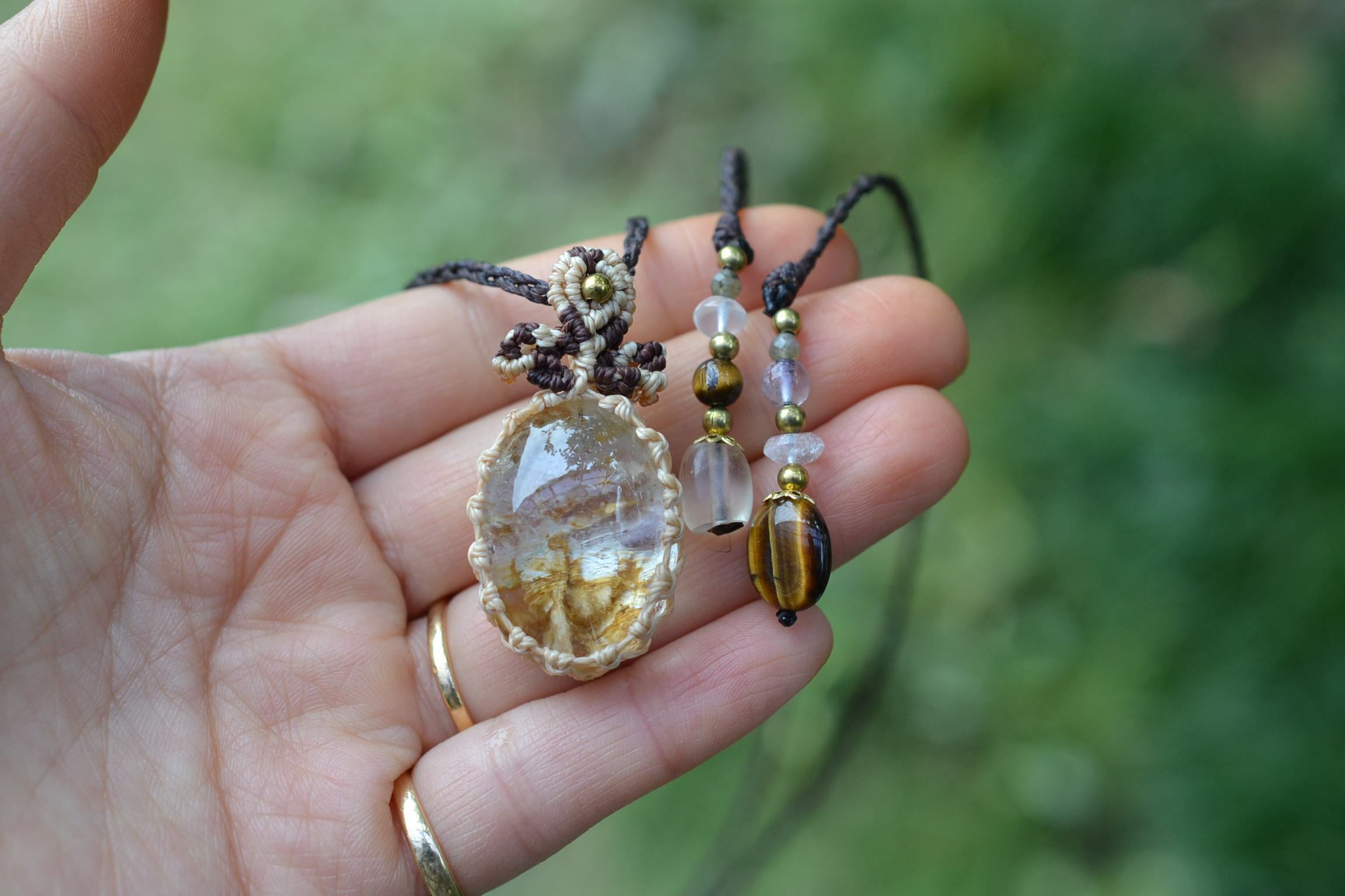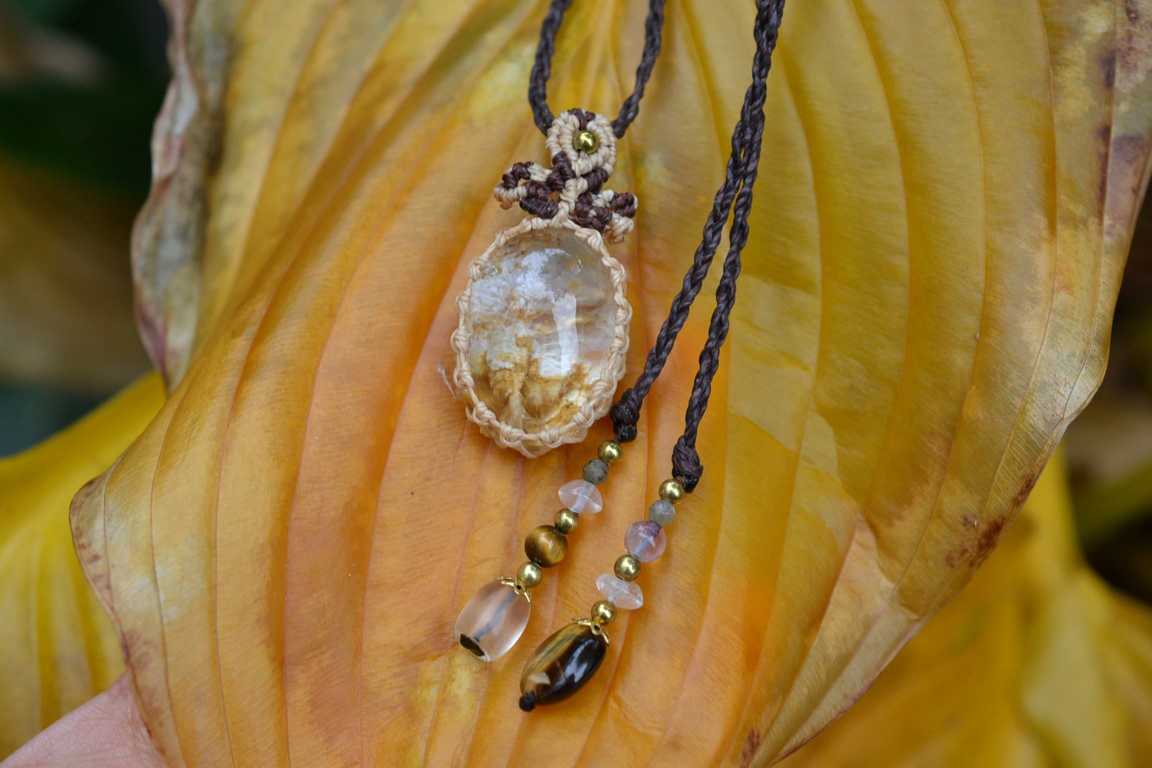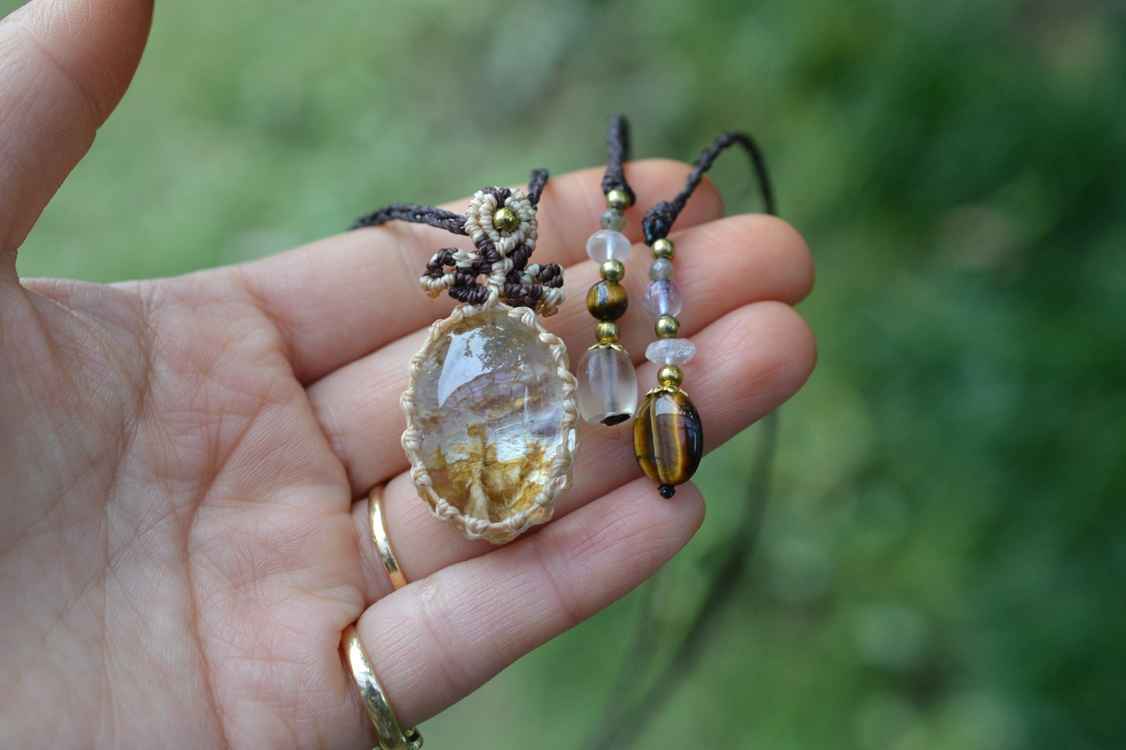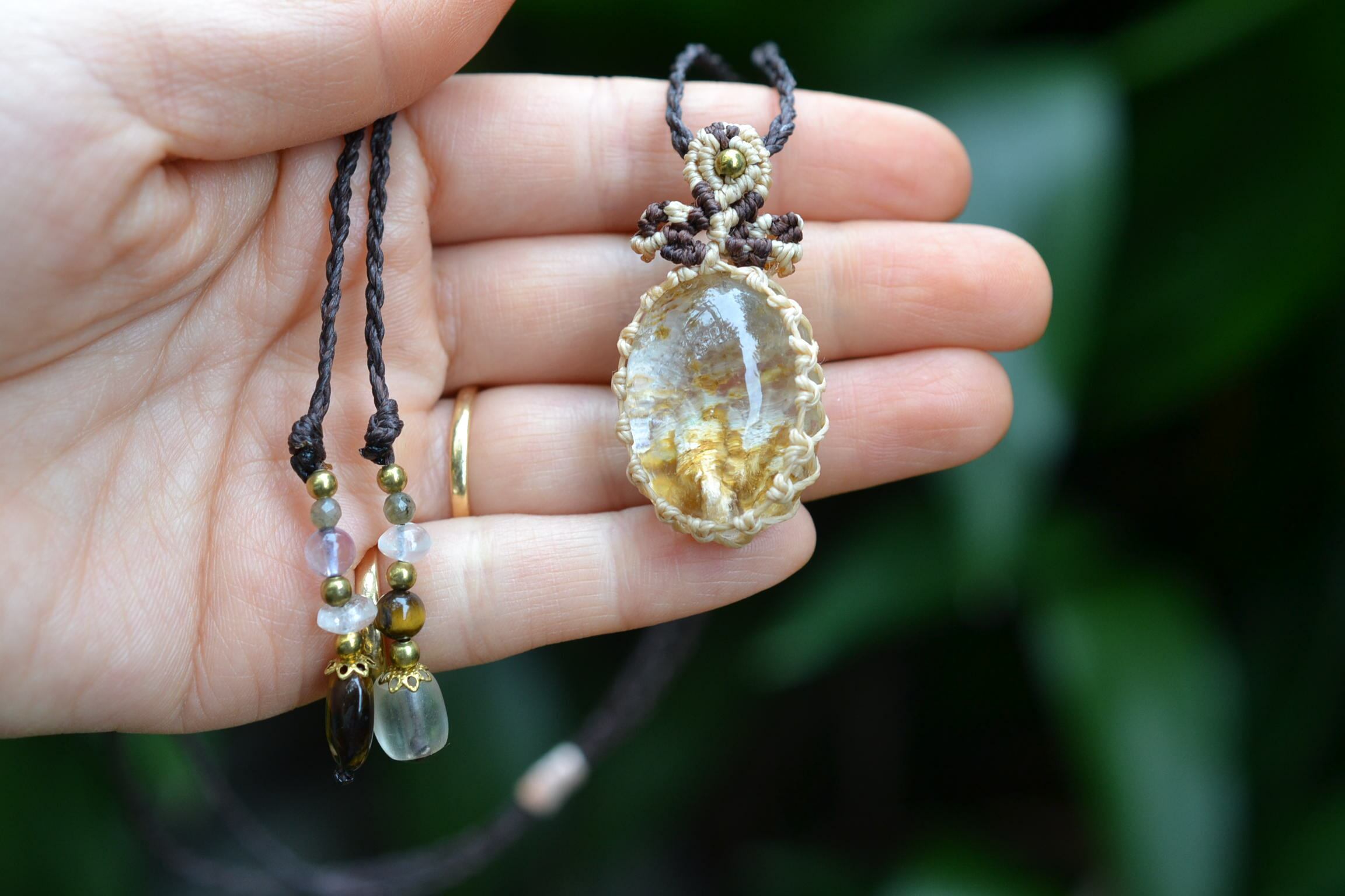 神秘★ゴールドプレート★ガーデンクォーツ マクラメペンダント