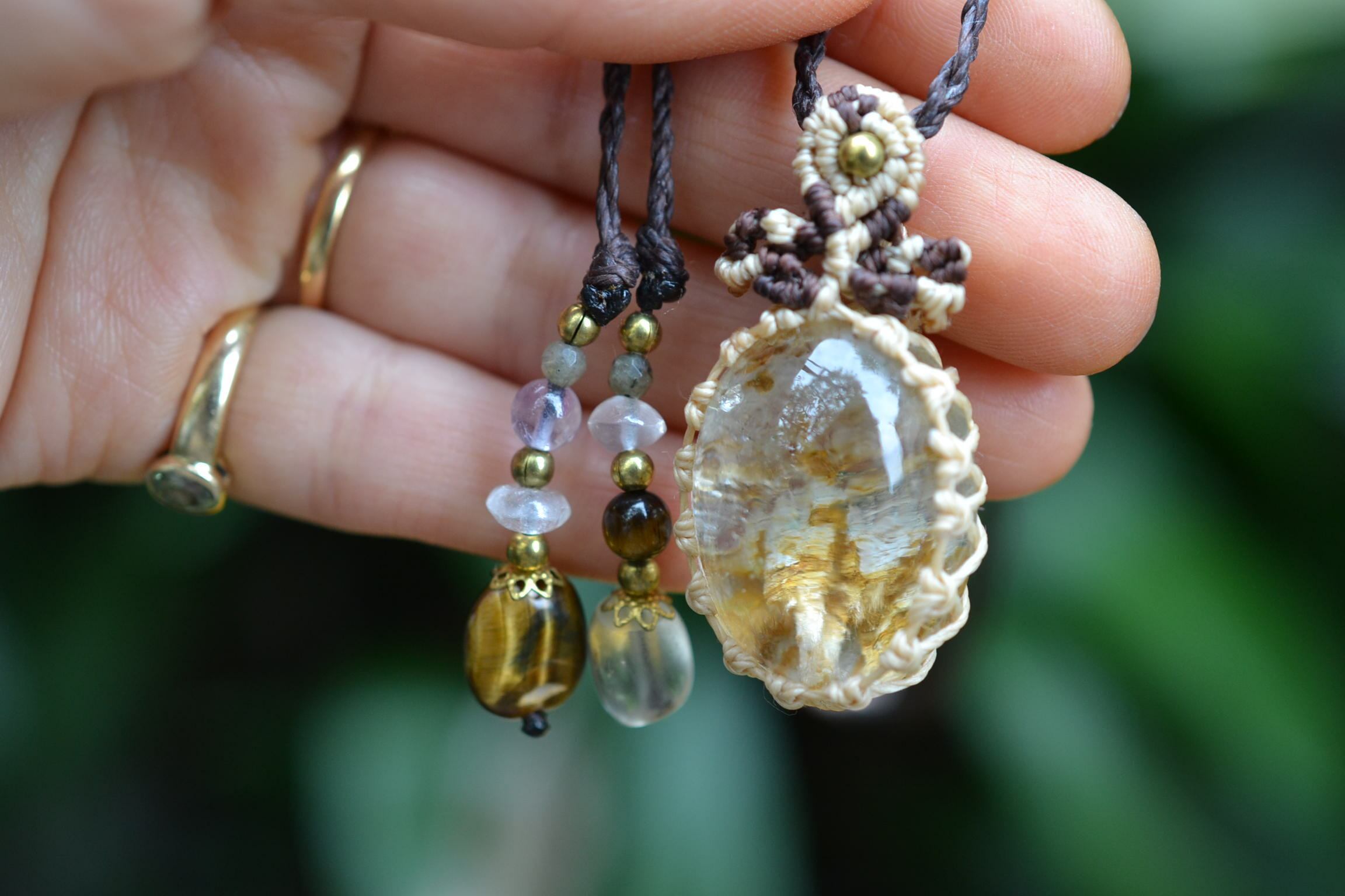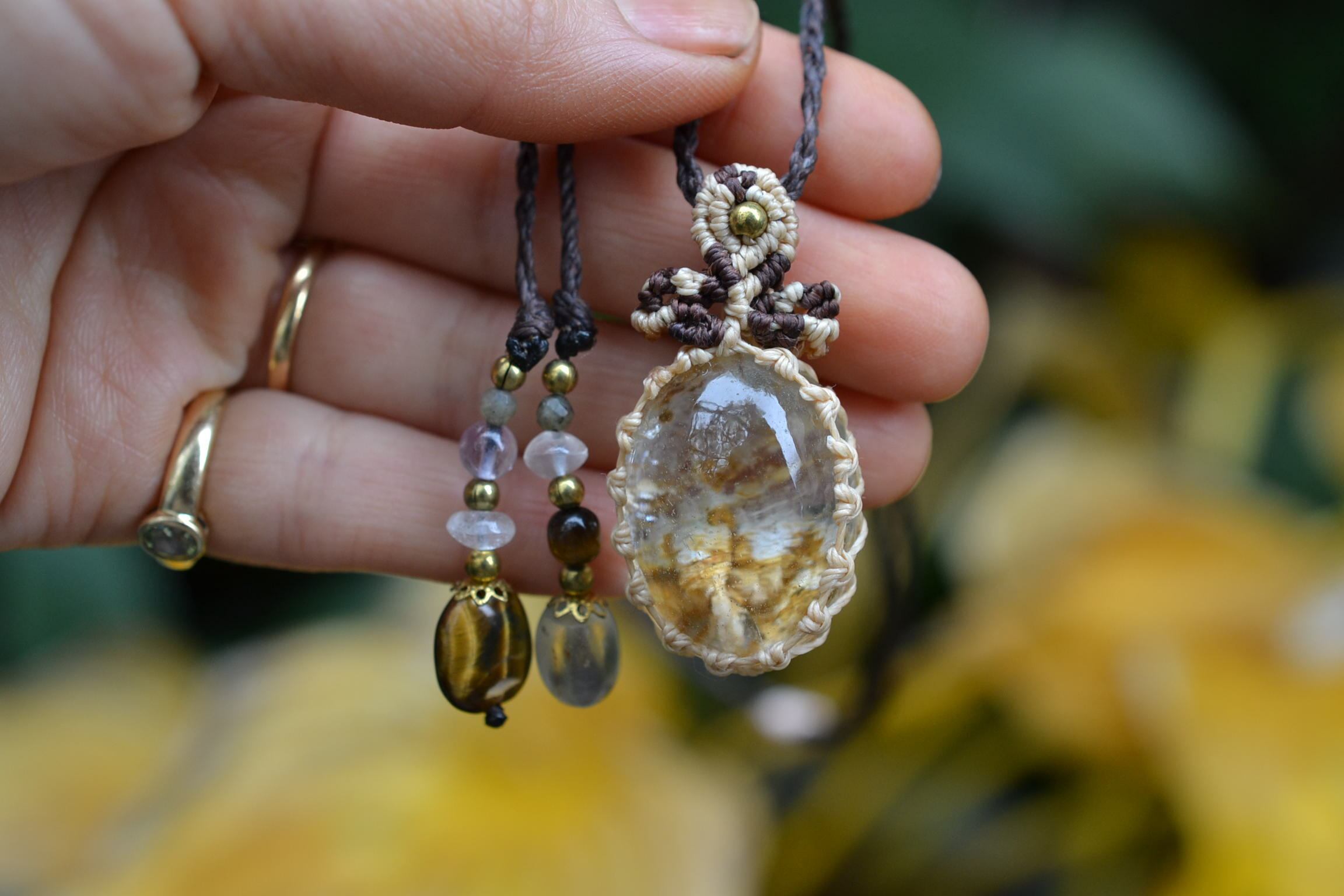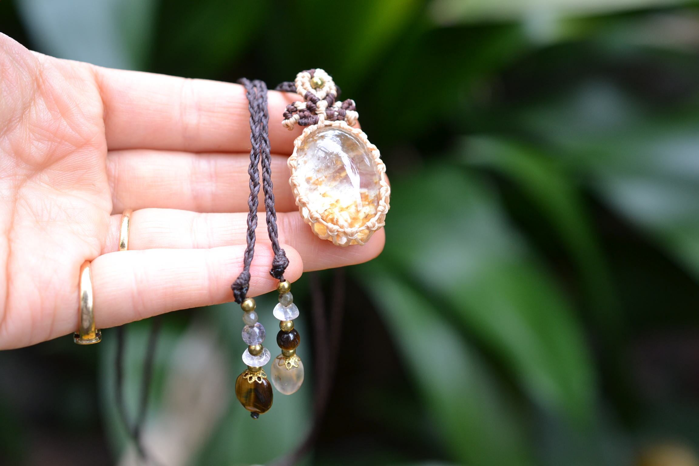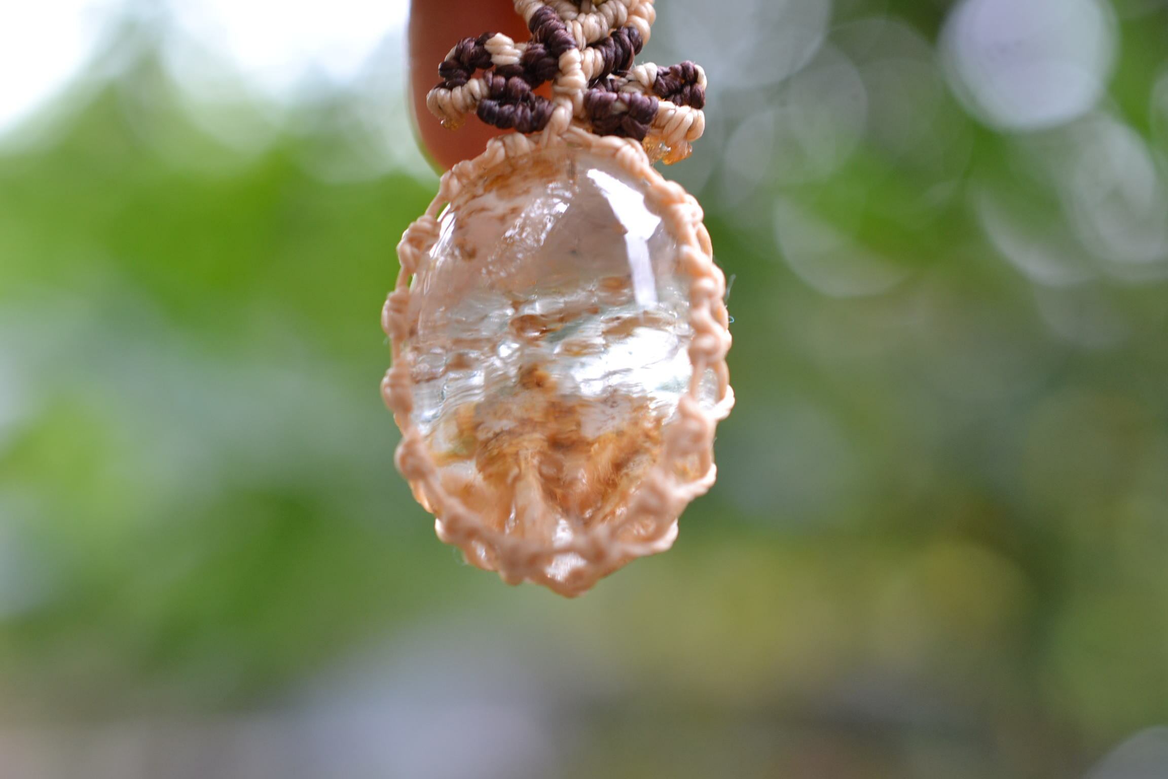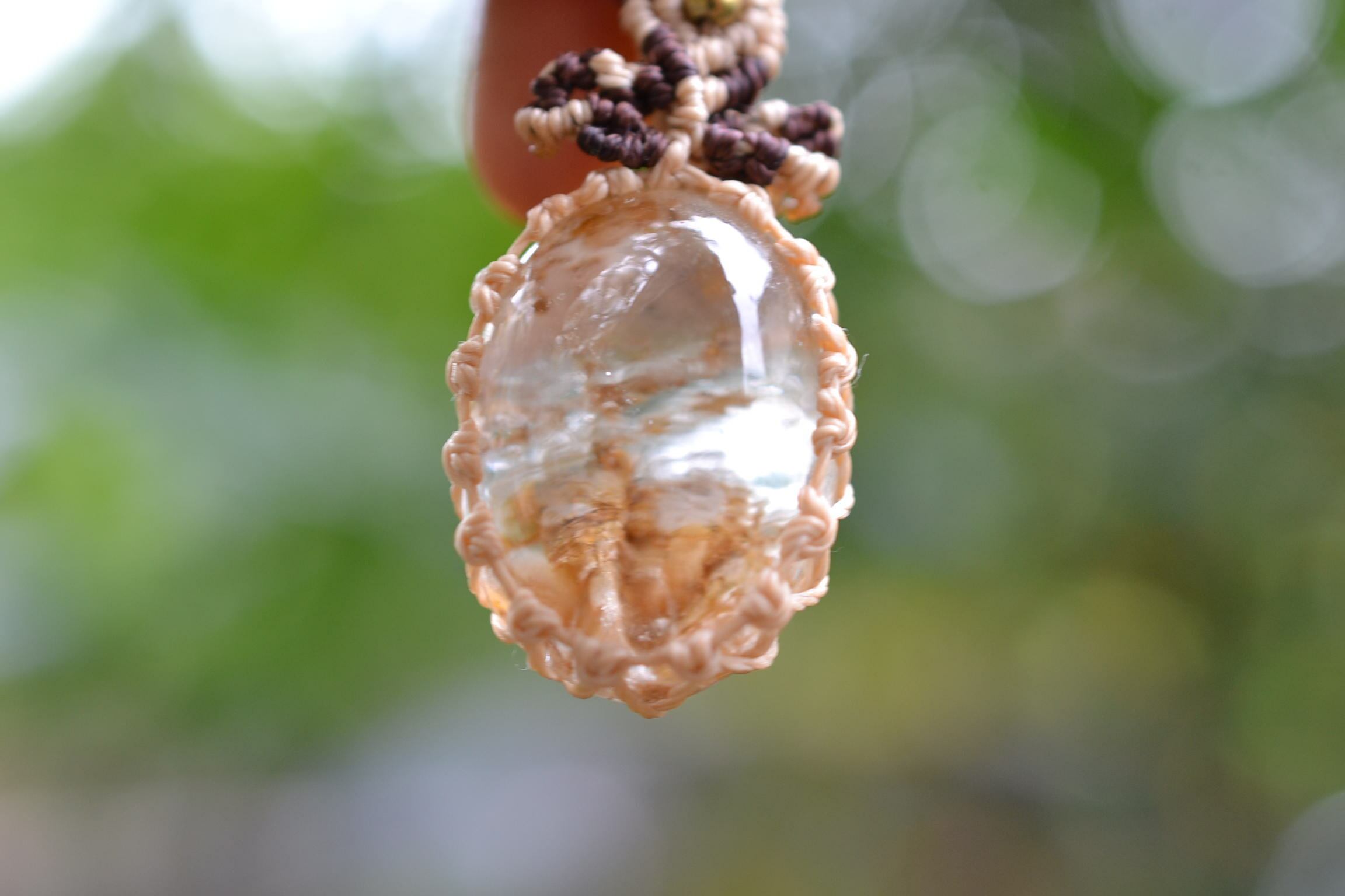 神秘★ゴールドプレート★ガーデンクォーツ マクラメペンダント