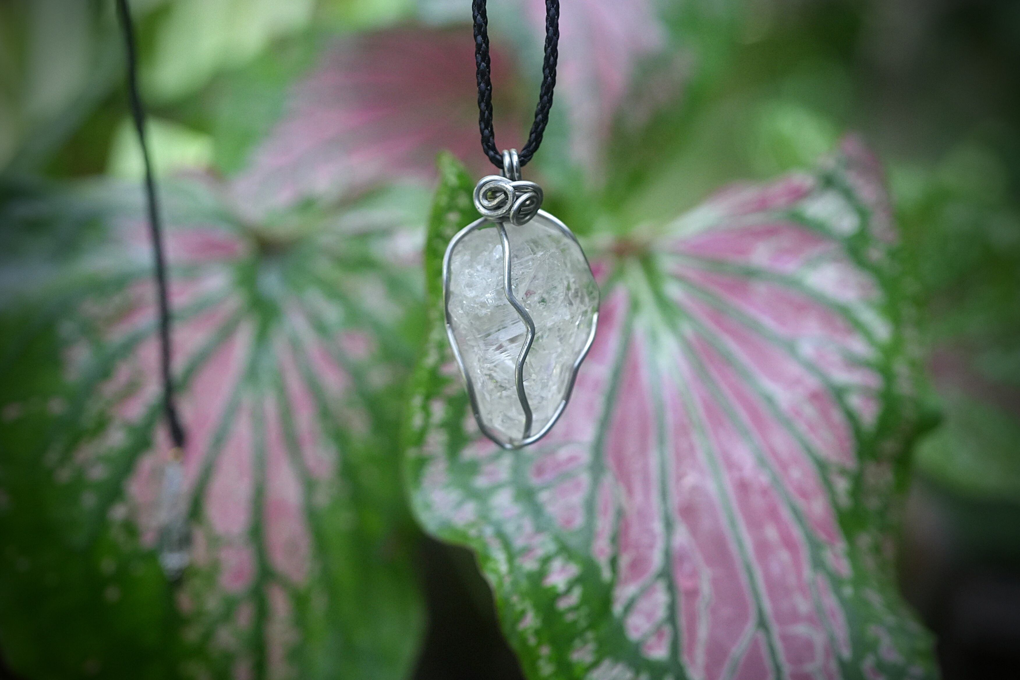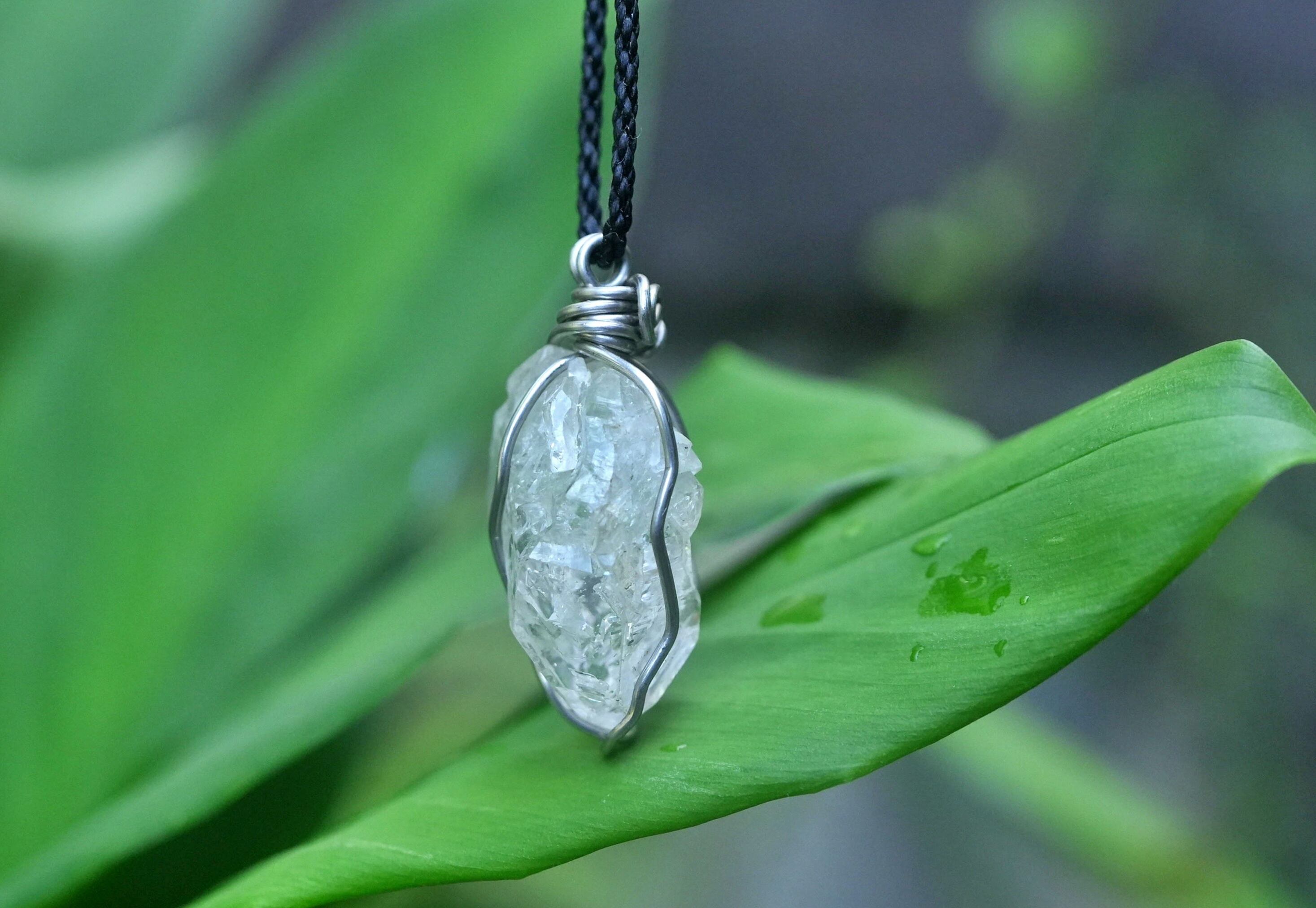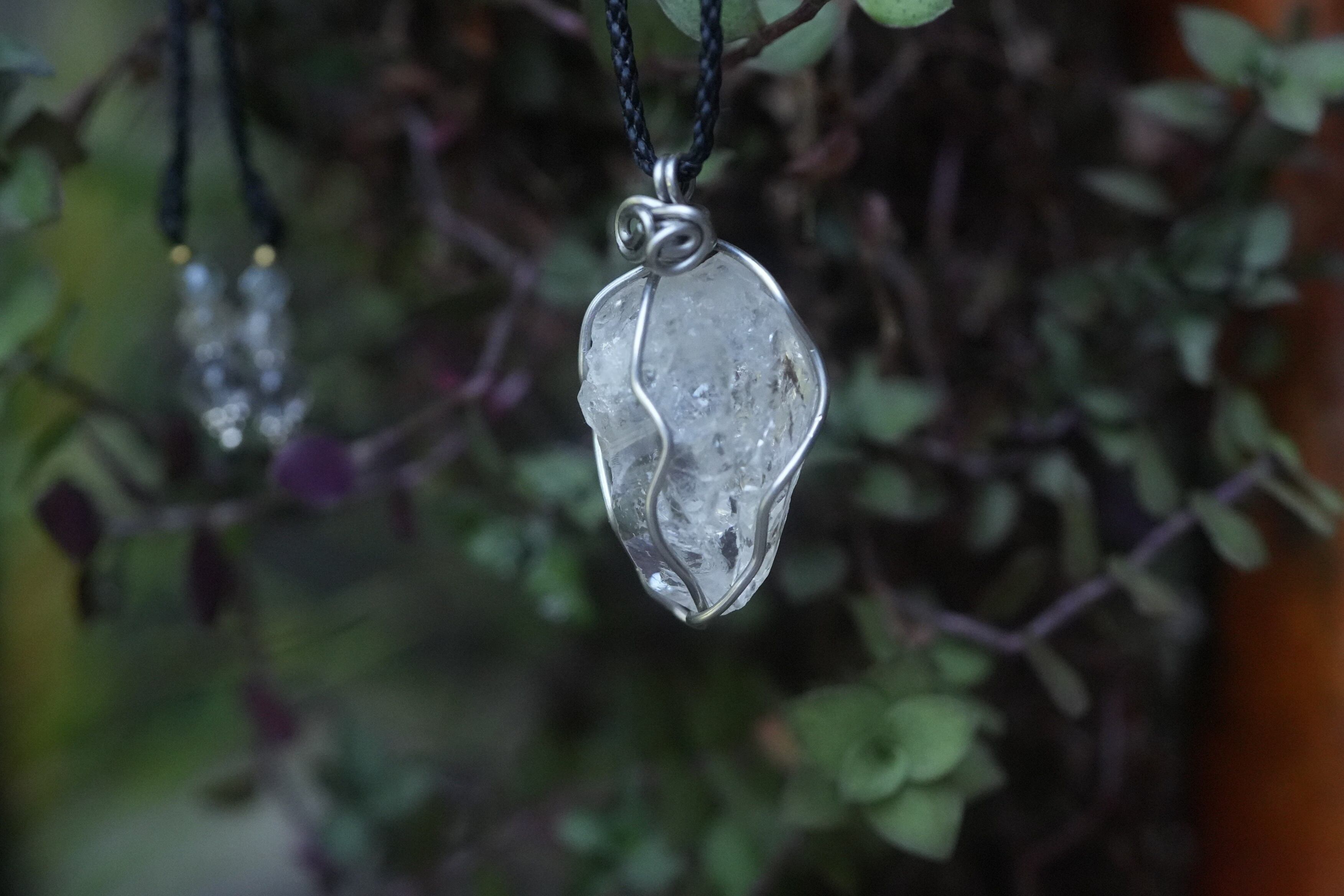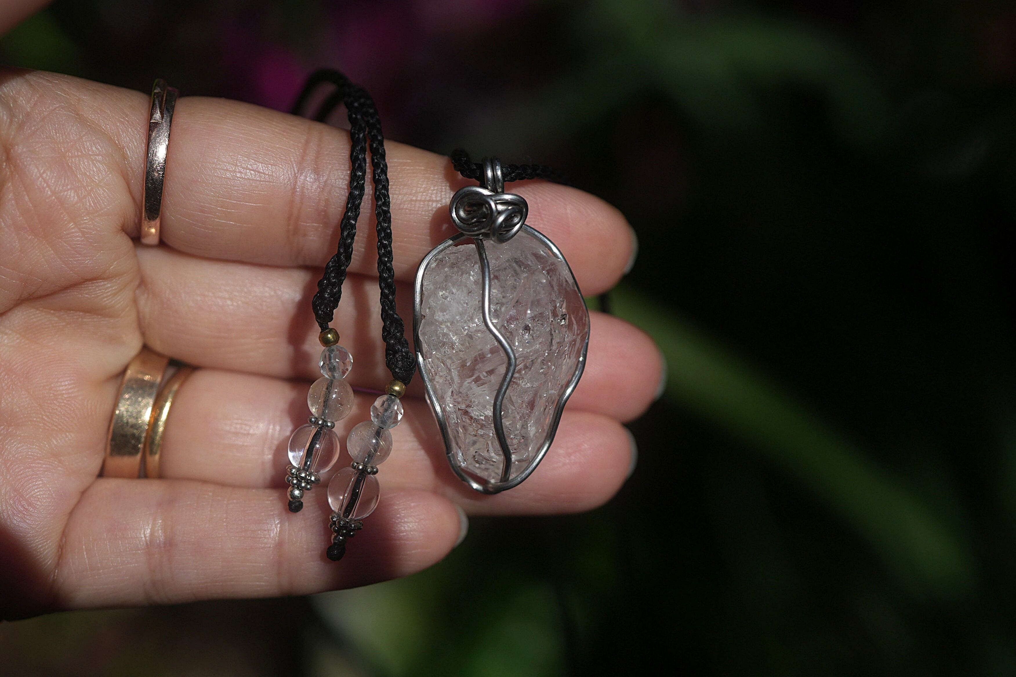 虹フラッシュ★ハーキマー水晶 マクラメネックレス1784