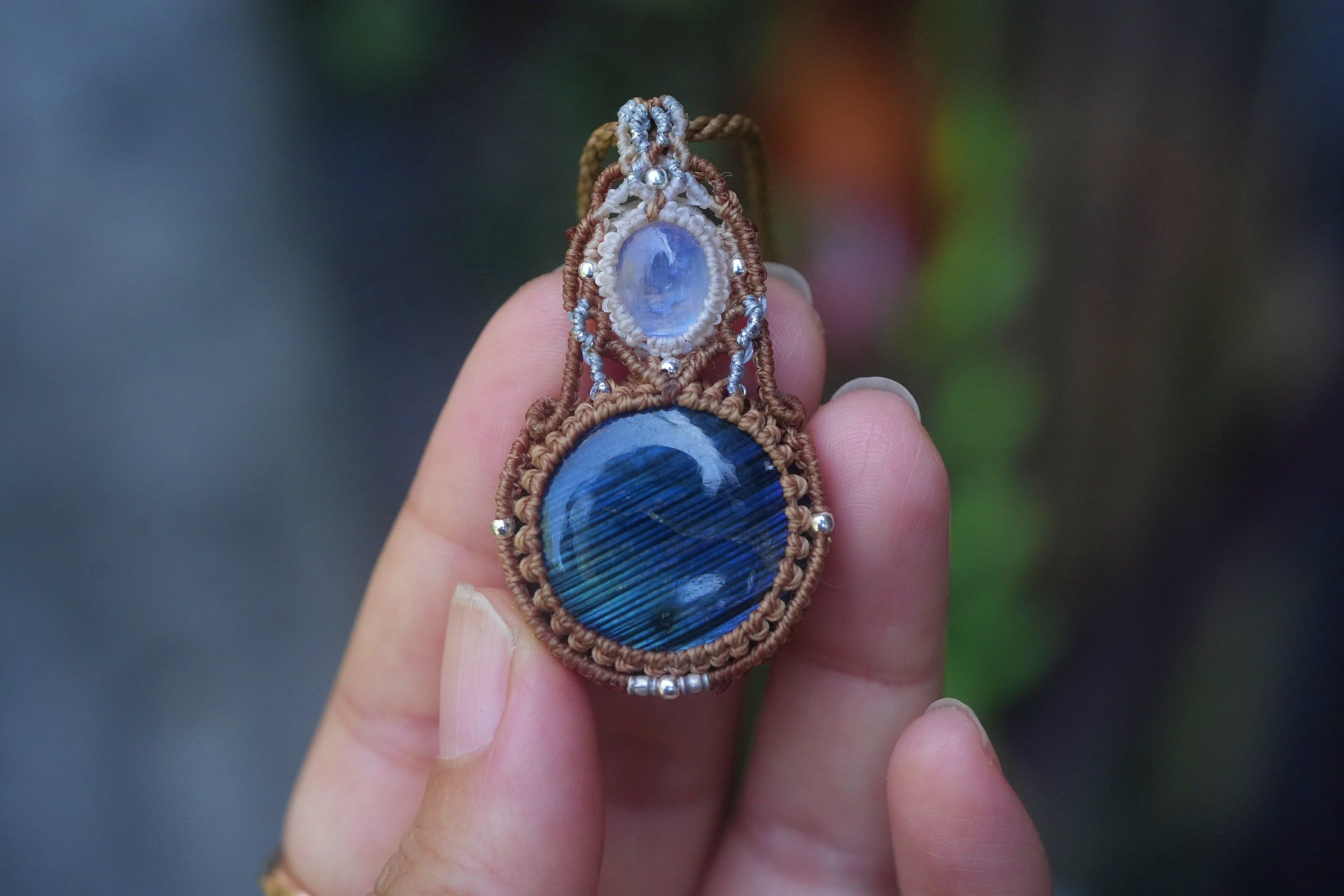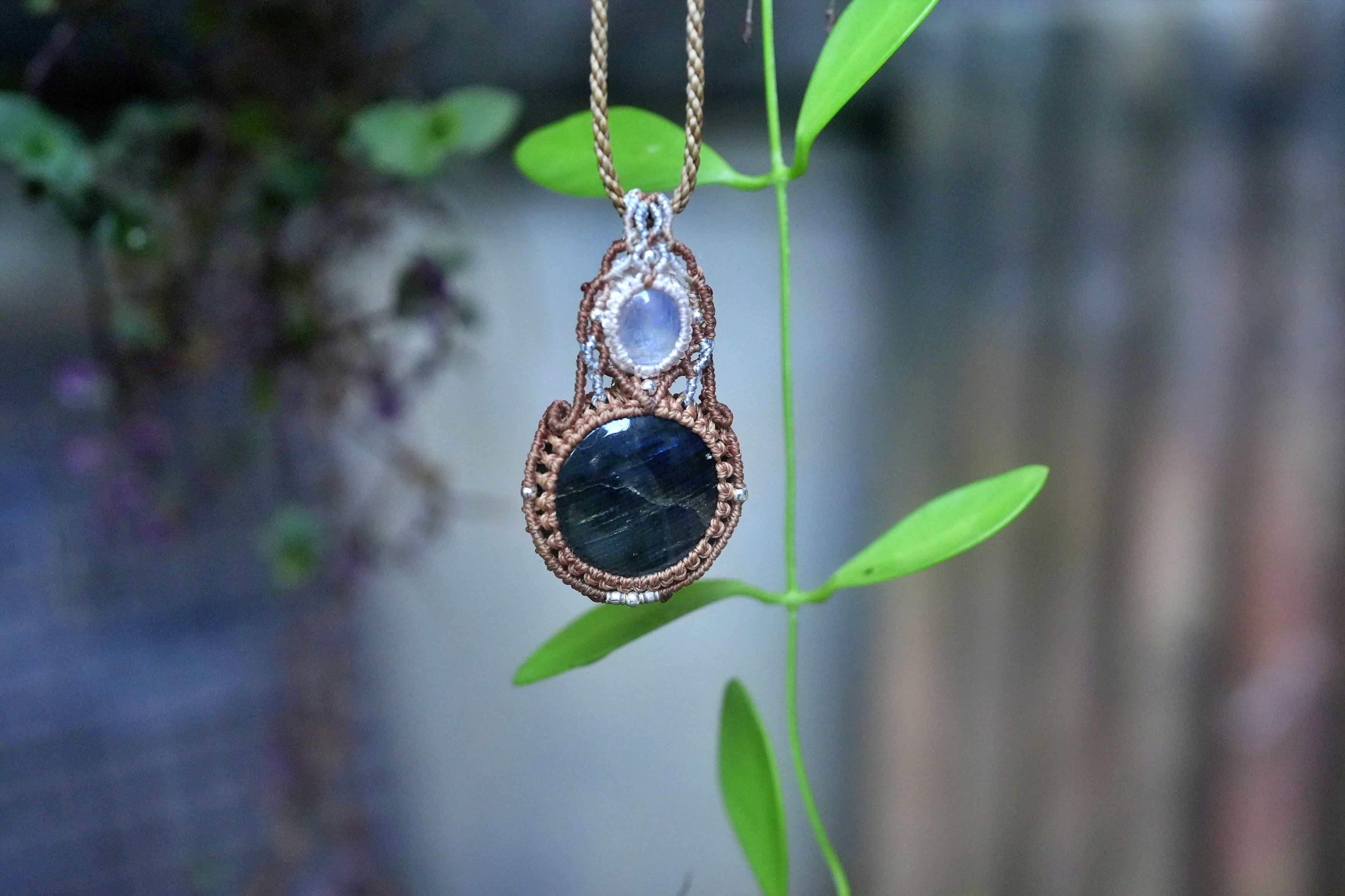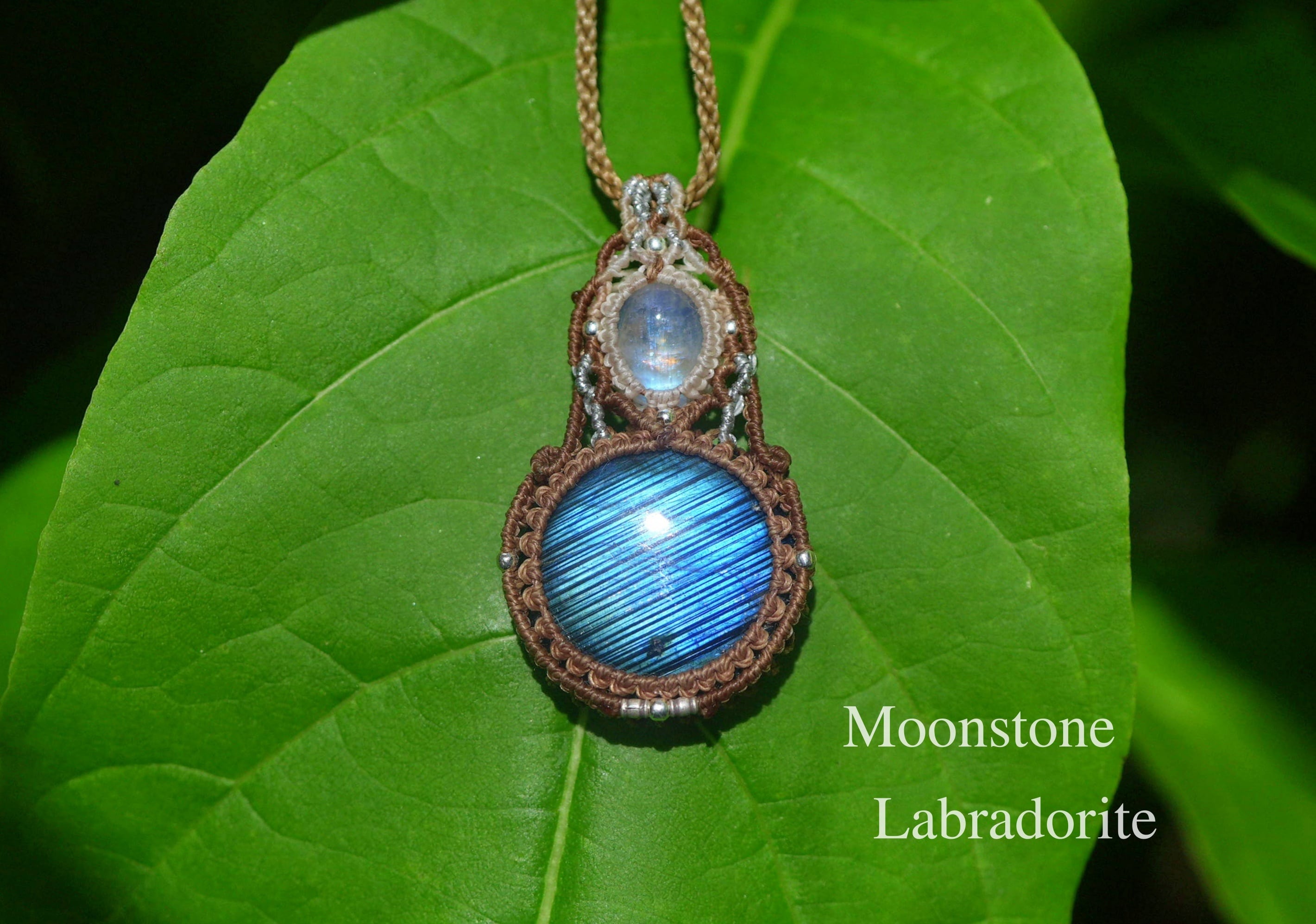 まる宇宙と月★ムーンストーン ラブラドライト マクラメネックレス1786