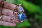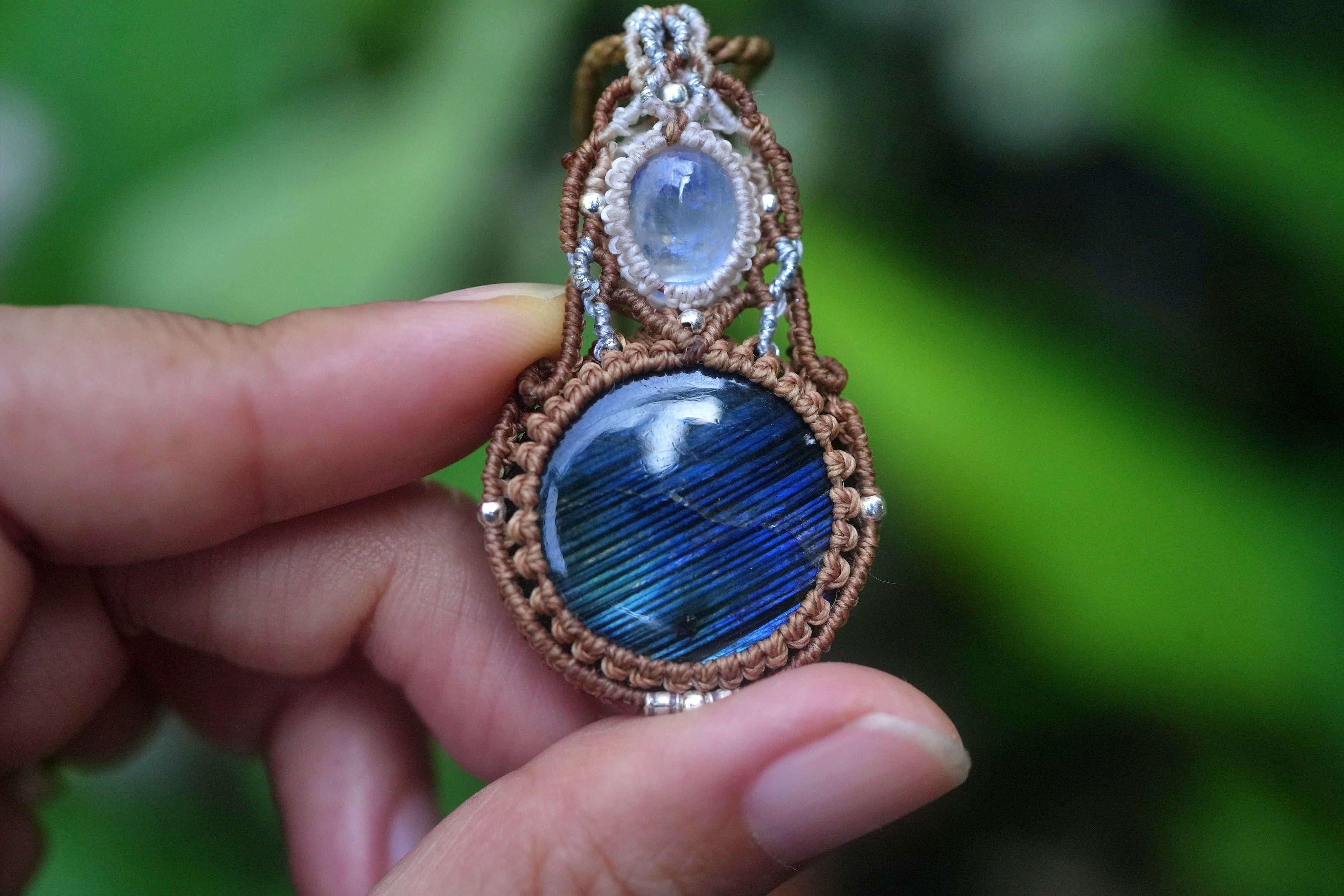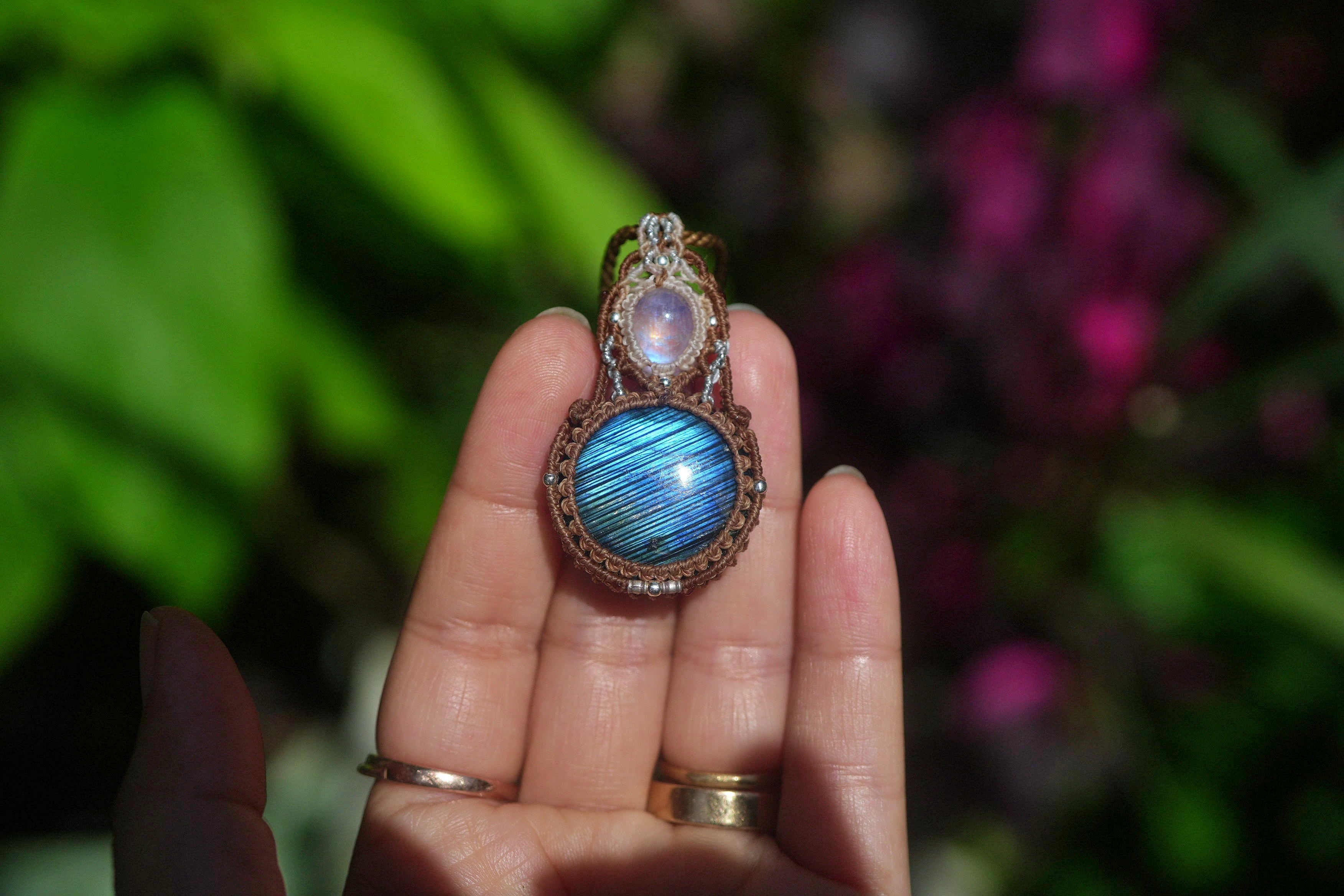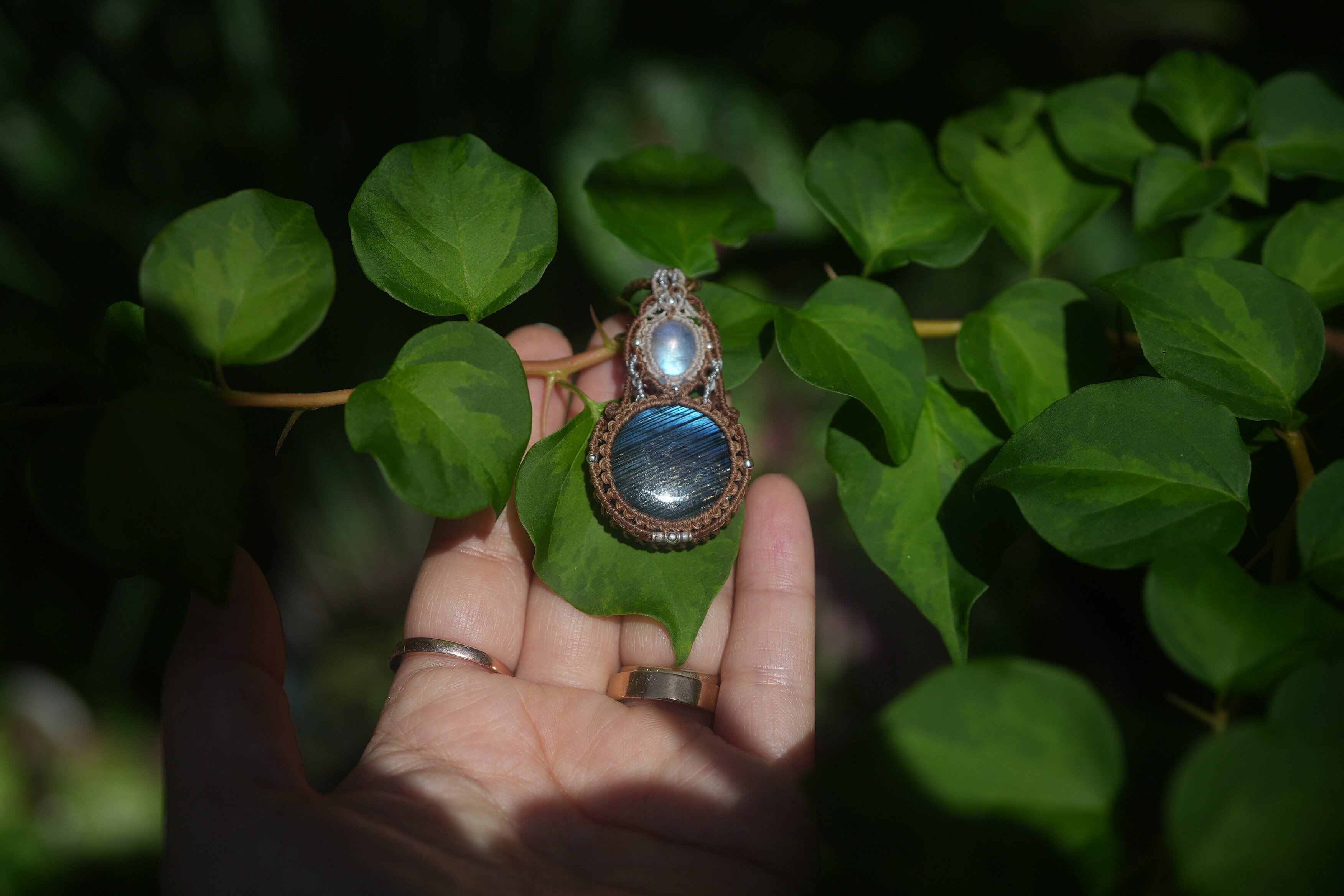 まる宇宙と月★ムーンストーン ラブラドライト マクラメネックレス1786
