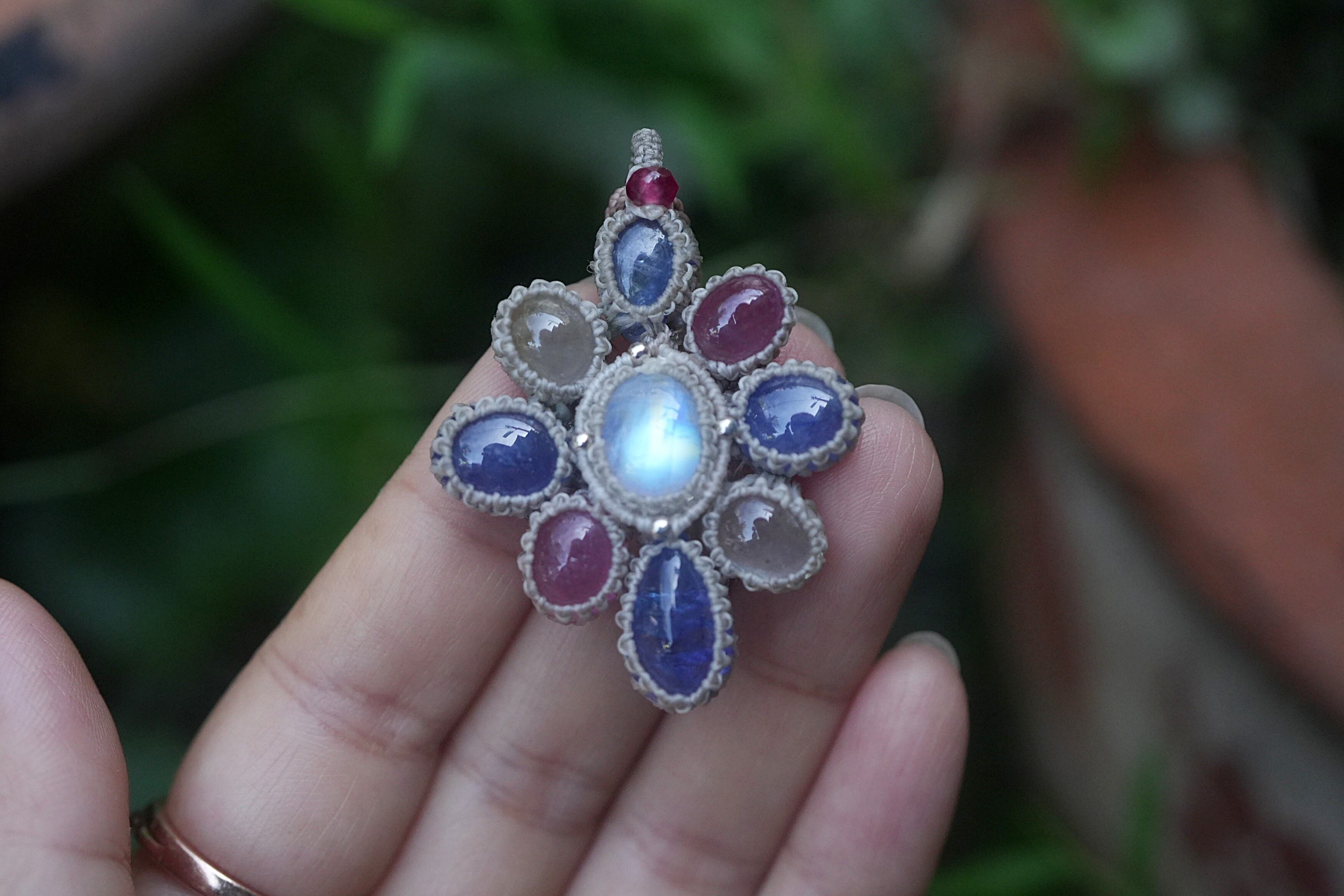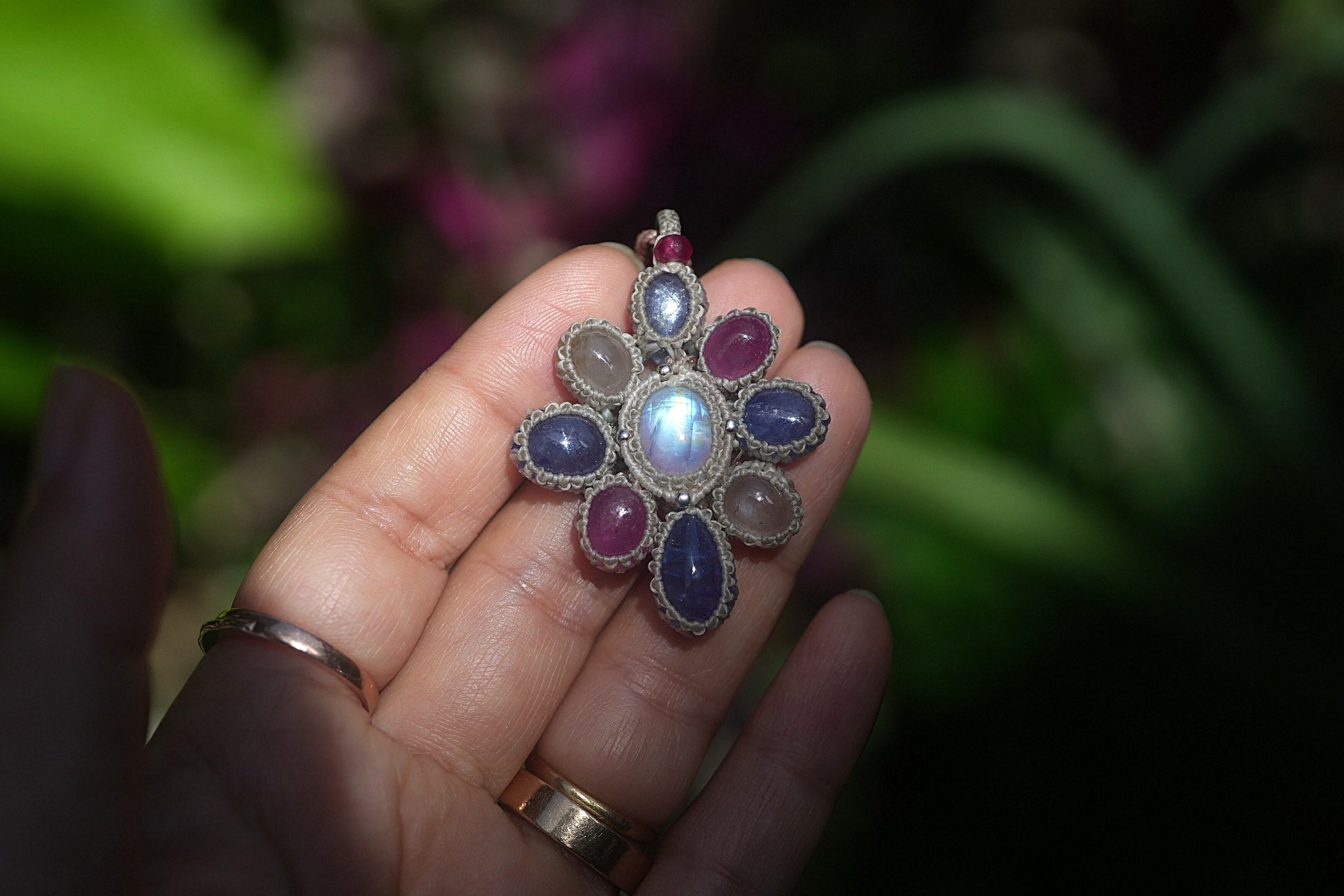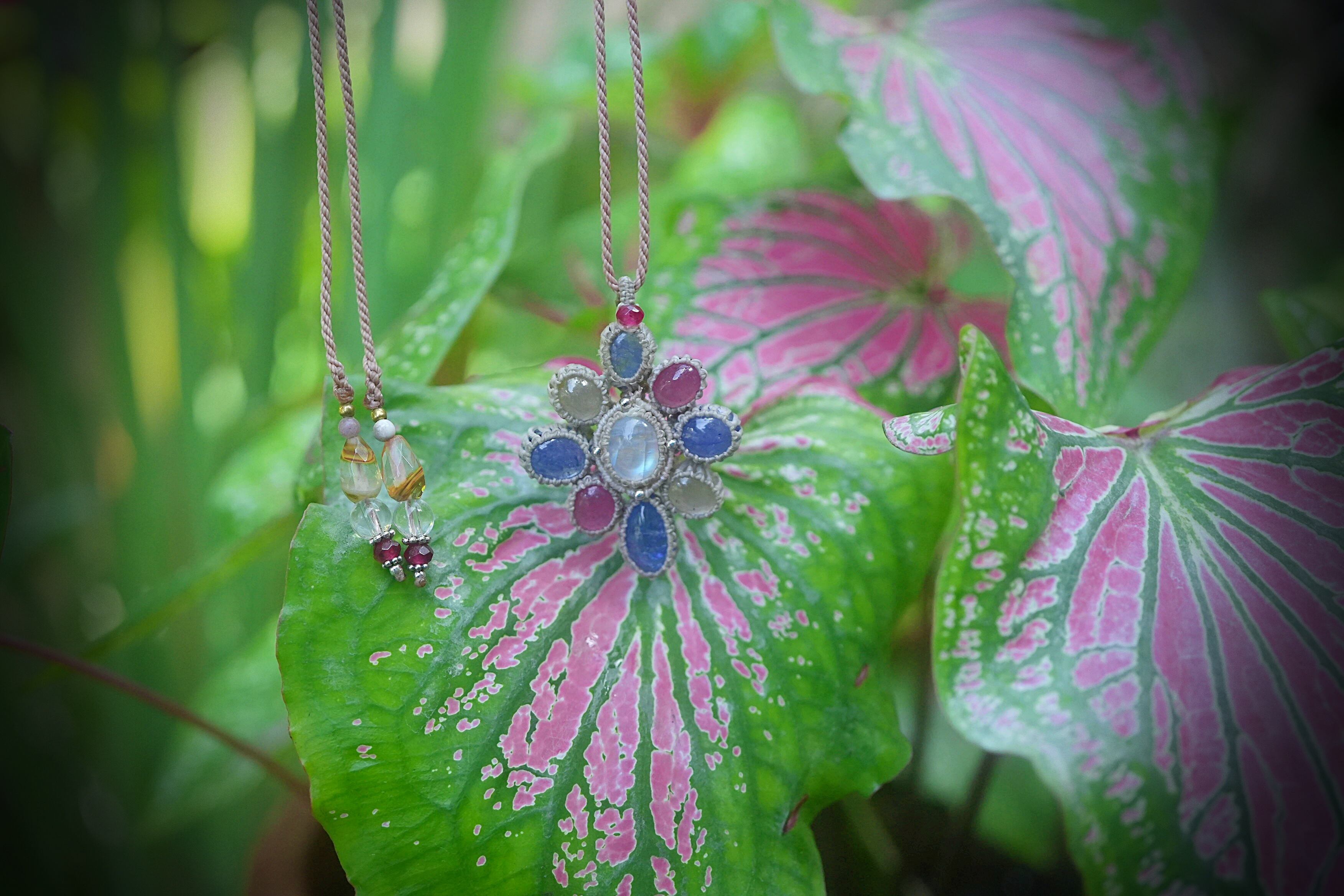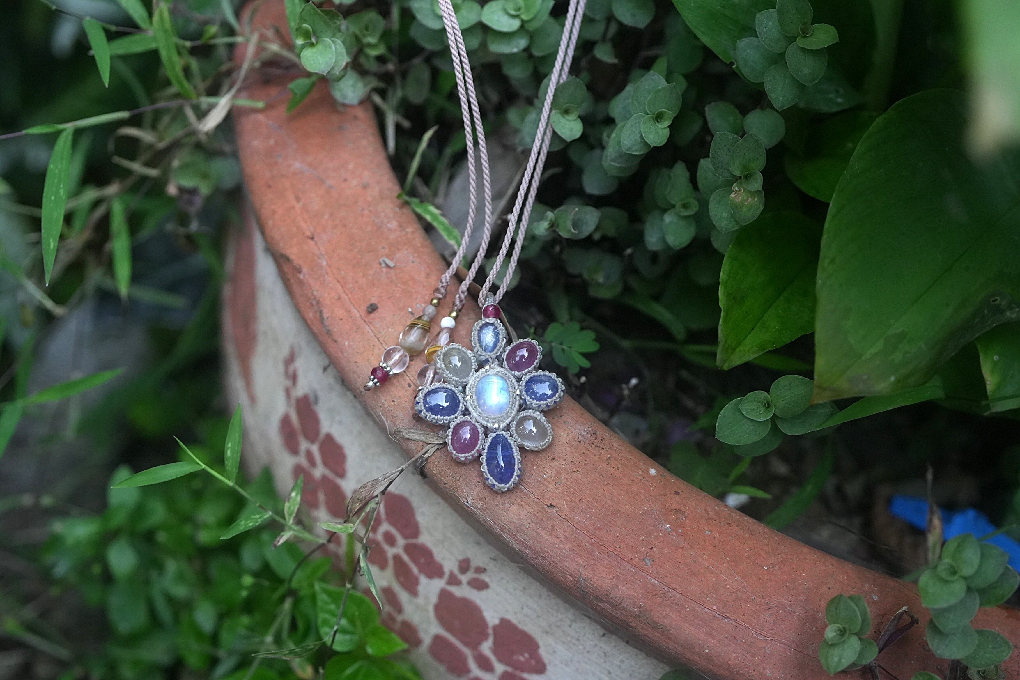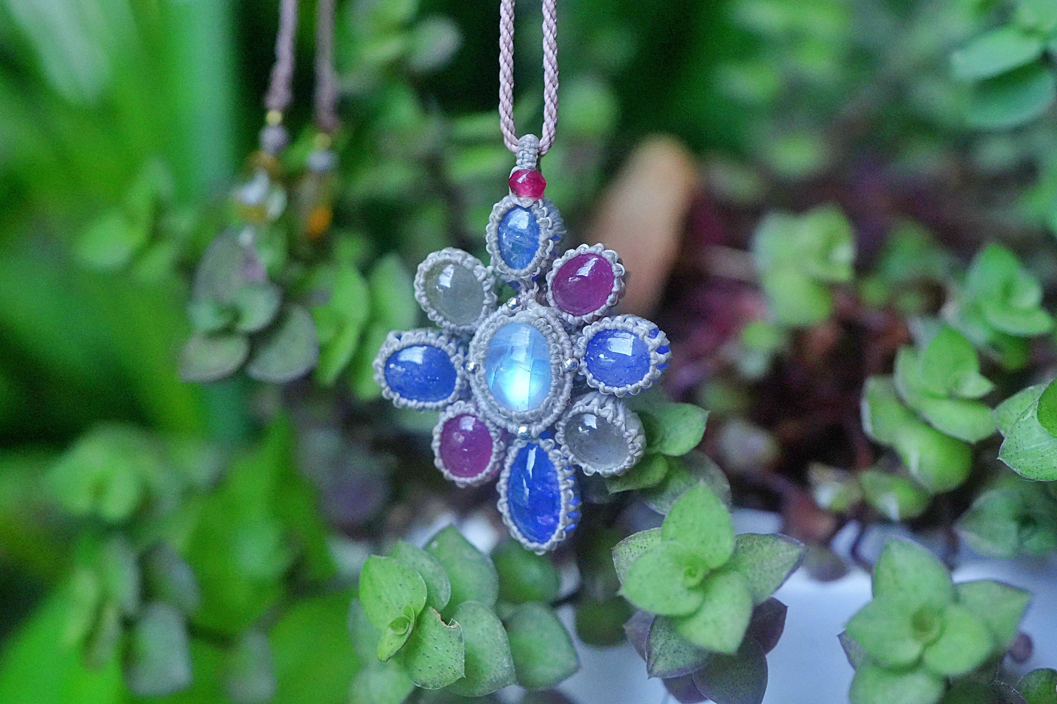 タンザナイト サファイアのお花★マクラメネックレス1789
