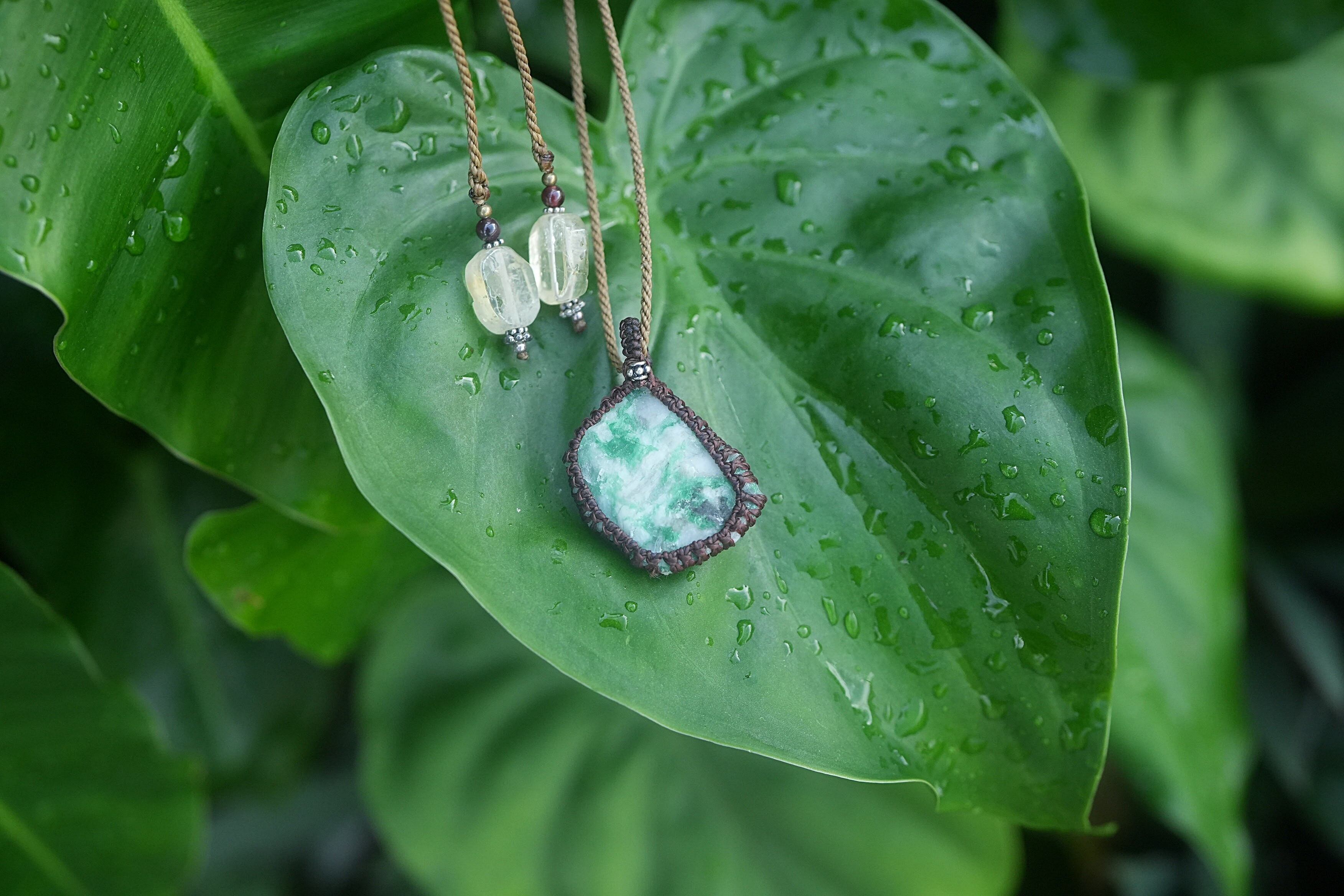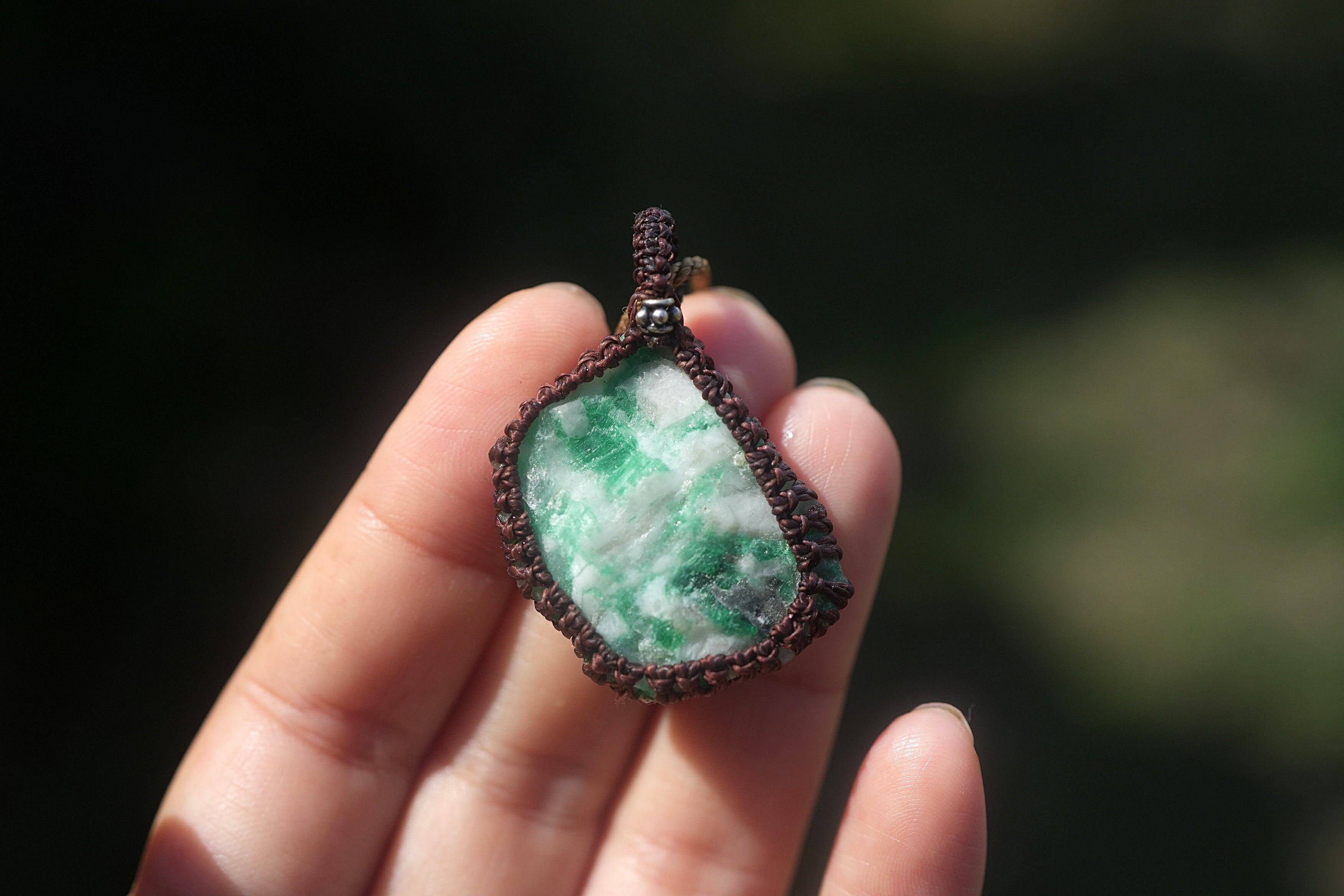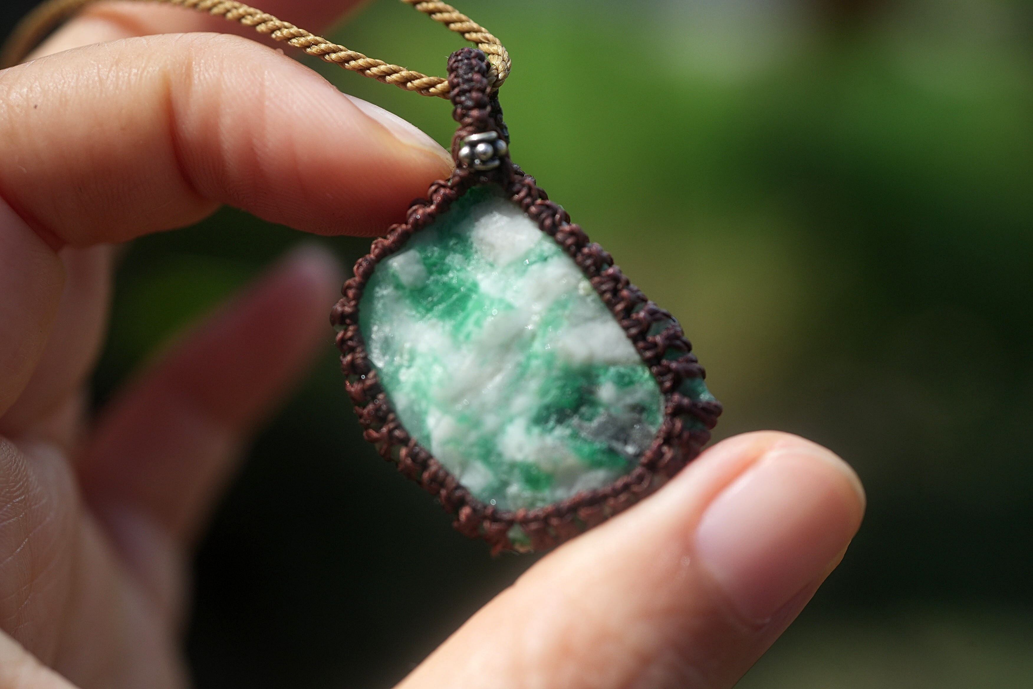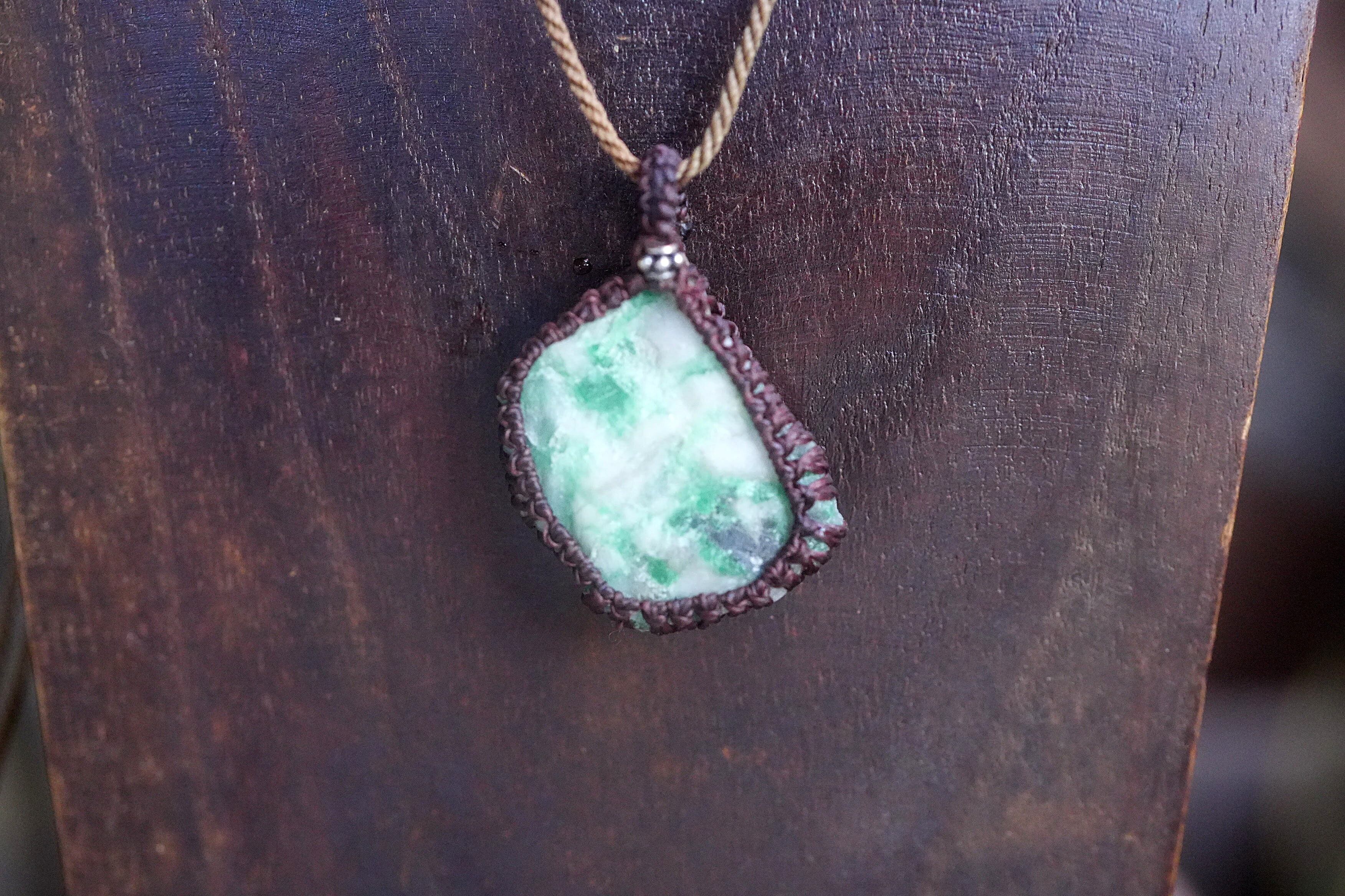 悩ましいグリーン★エメラルド原石★マクラメネックレス 1793