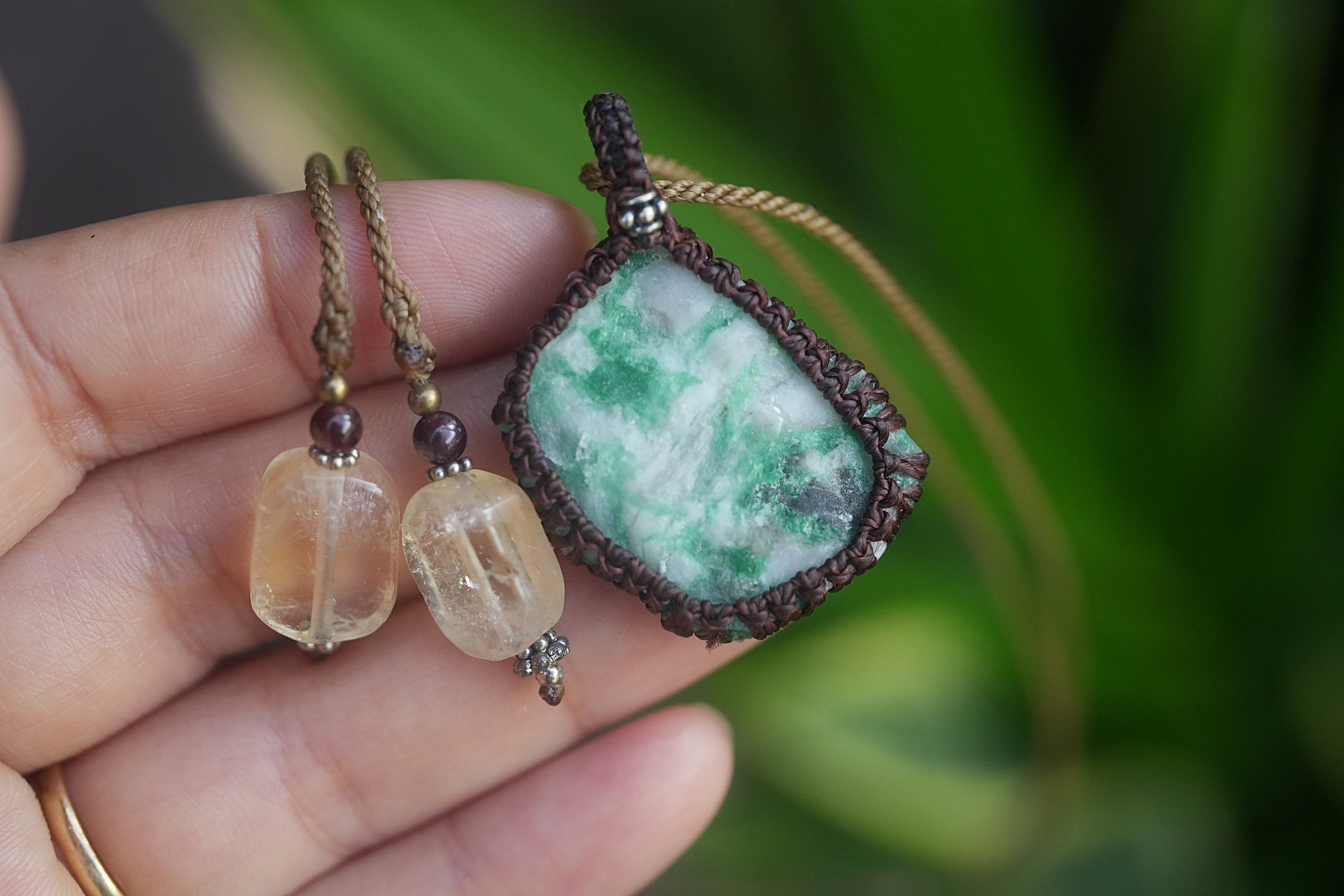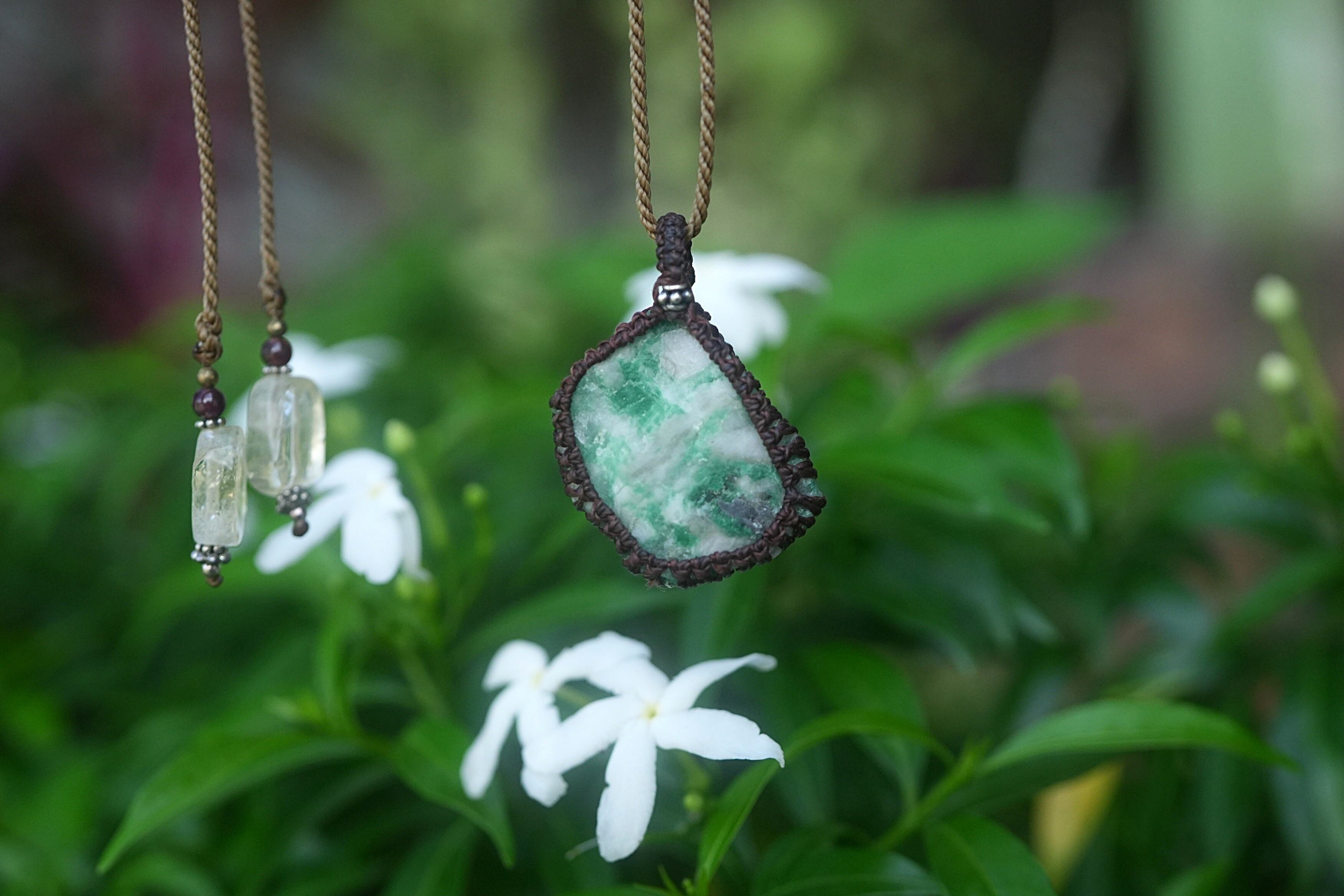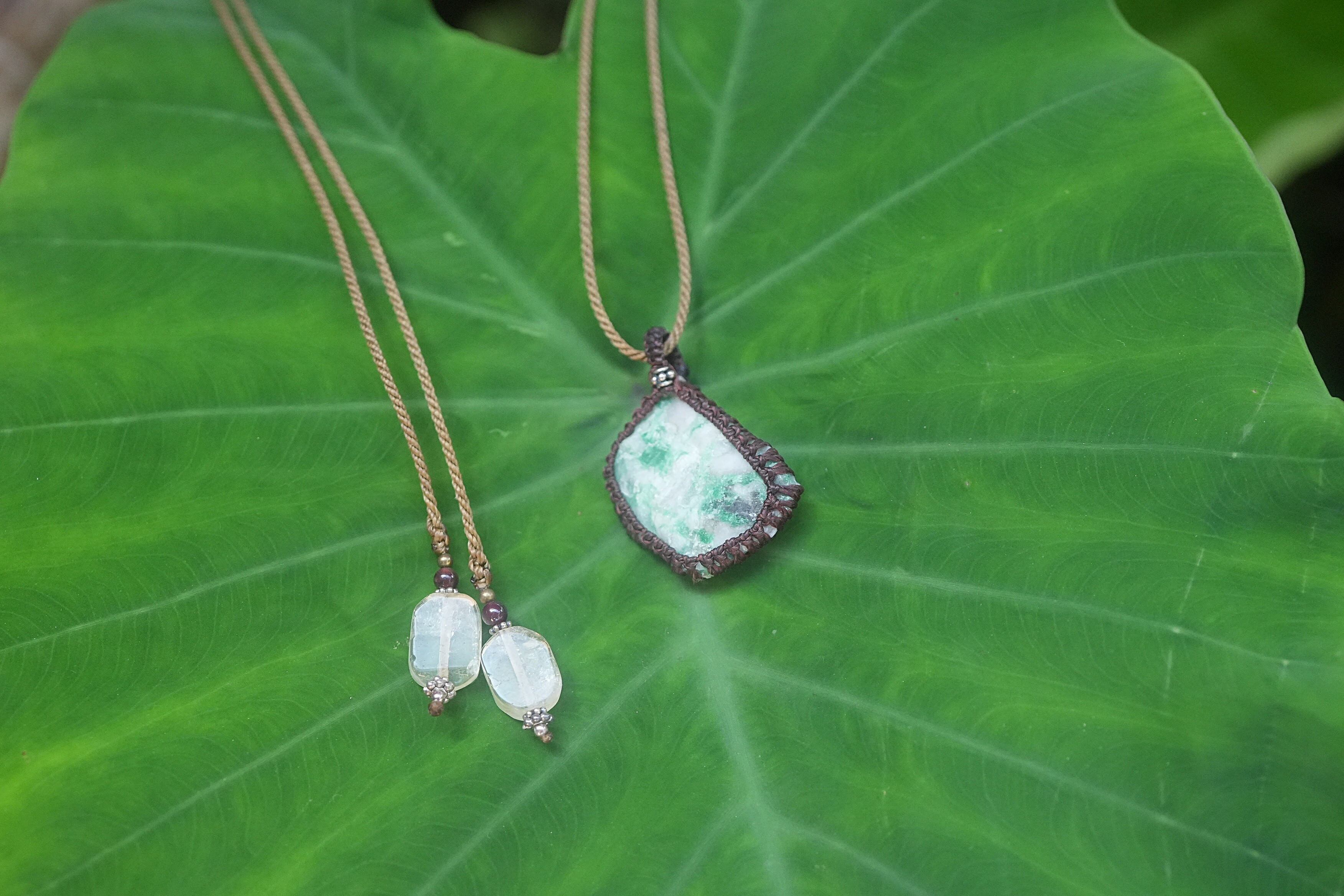 悩ましいグリーン★エメラルド原石★マクラメネックレス 1793