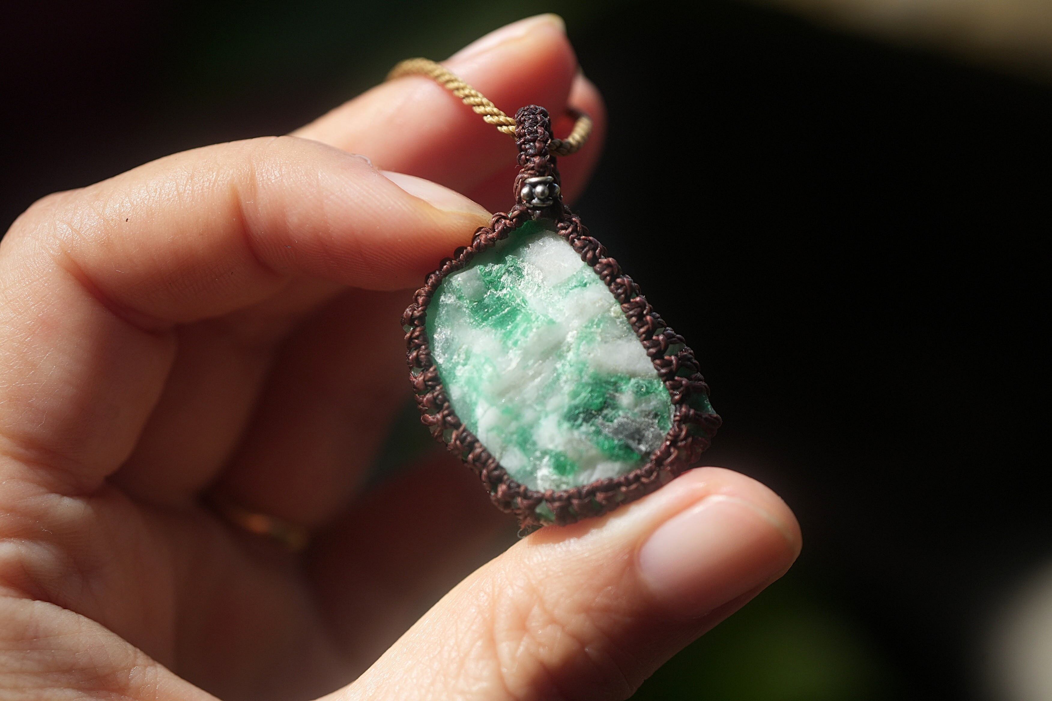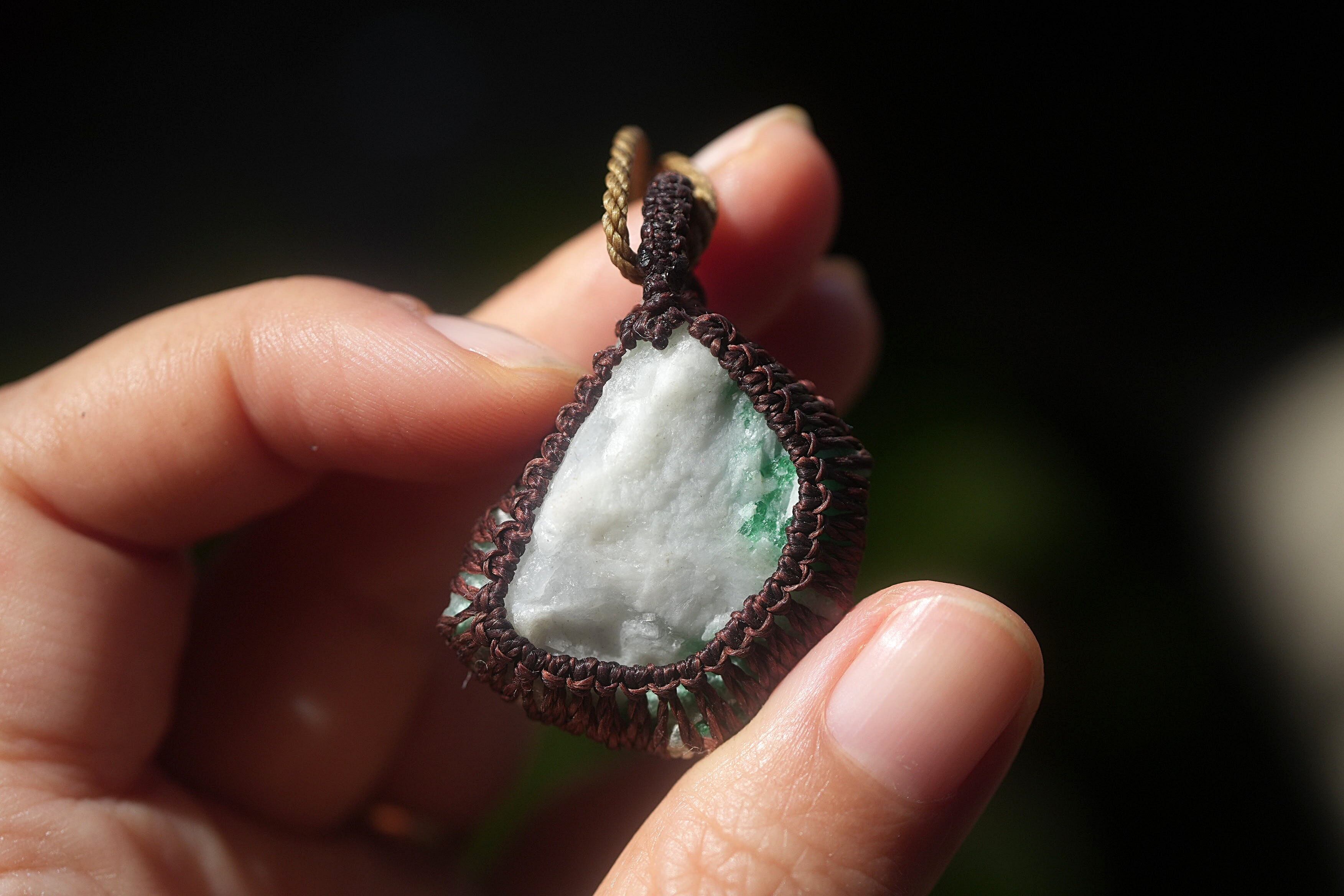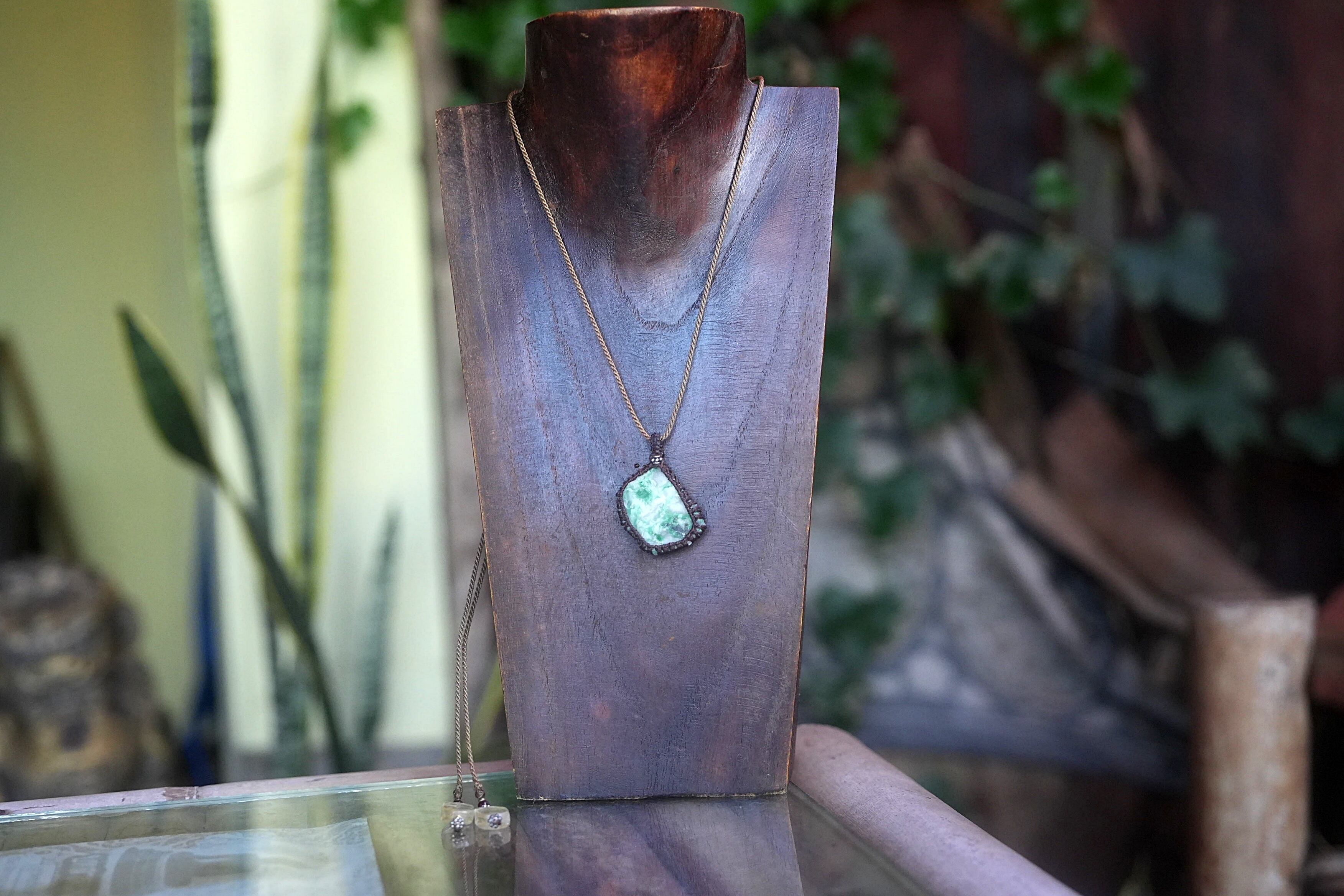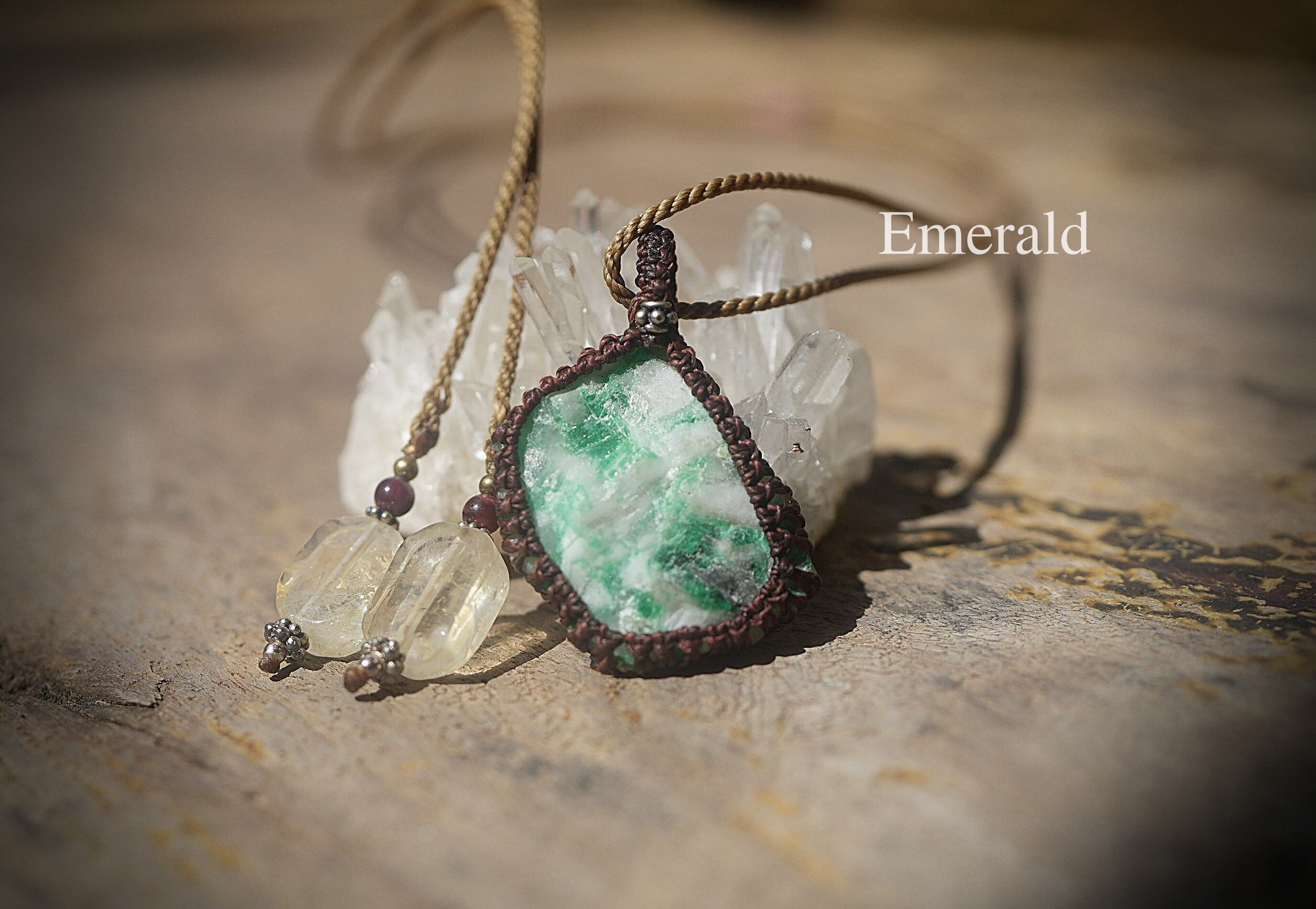 悩ましいグリーン★エメラルド原石★マクラメネックレス 1793