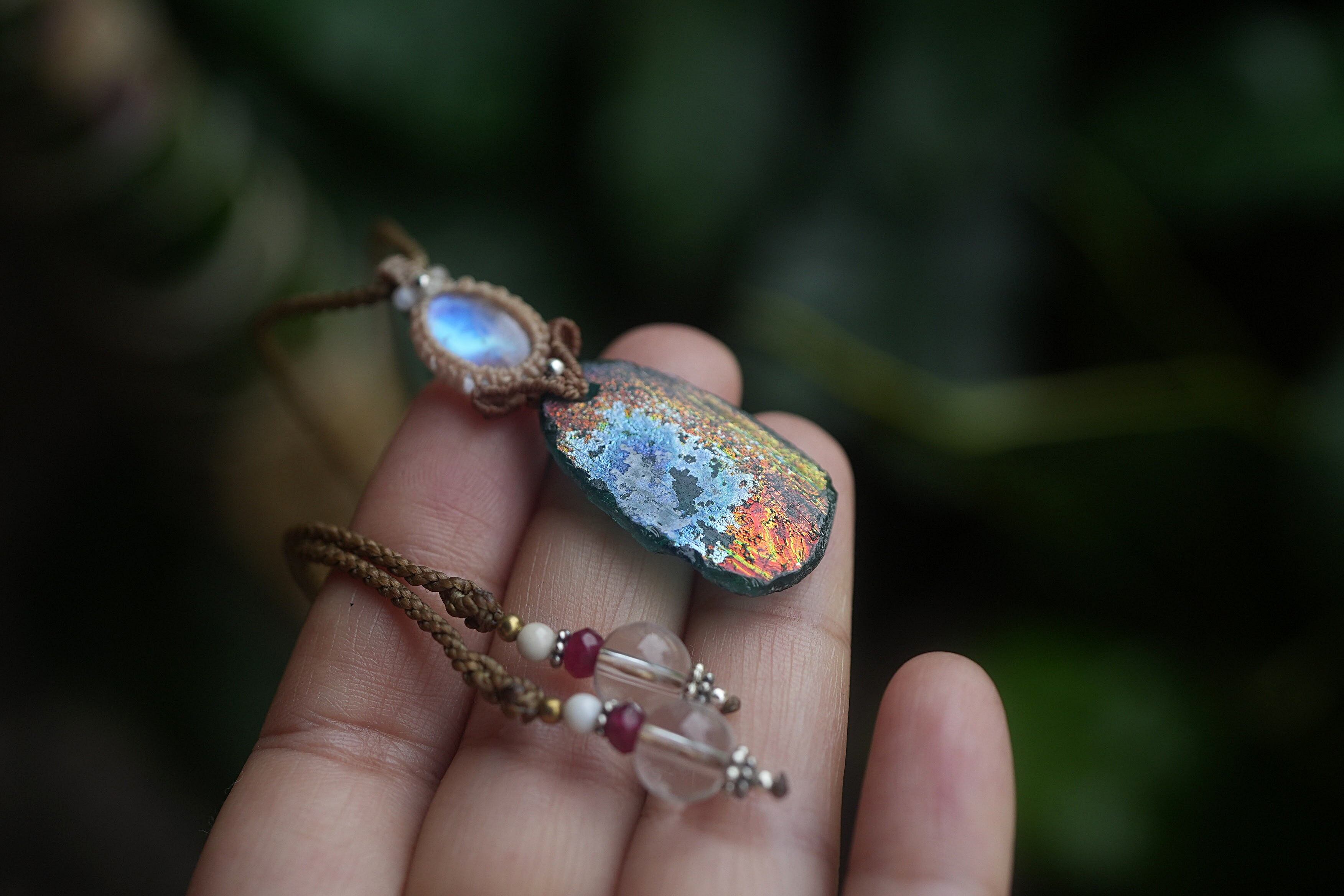 ローマングラス★ マクラメネックレス1795