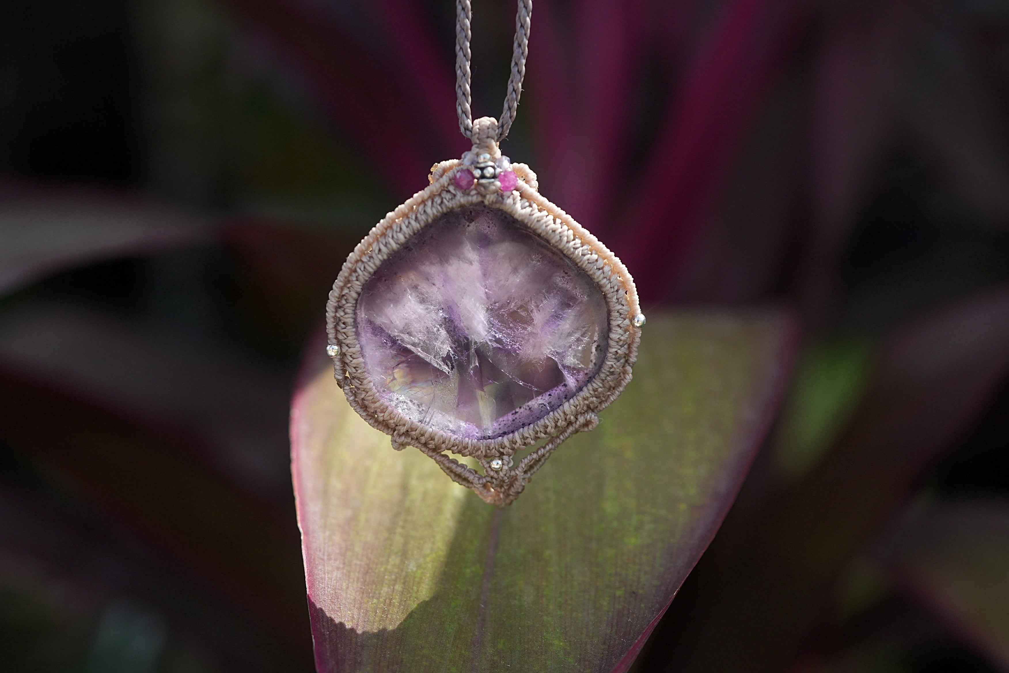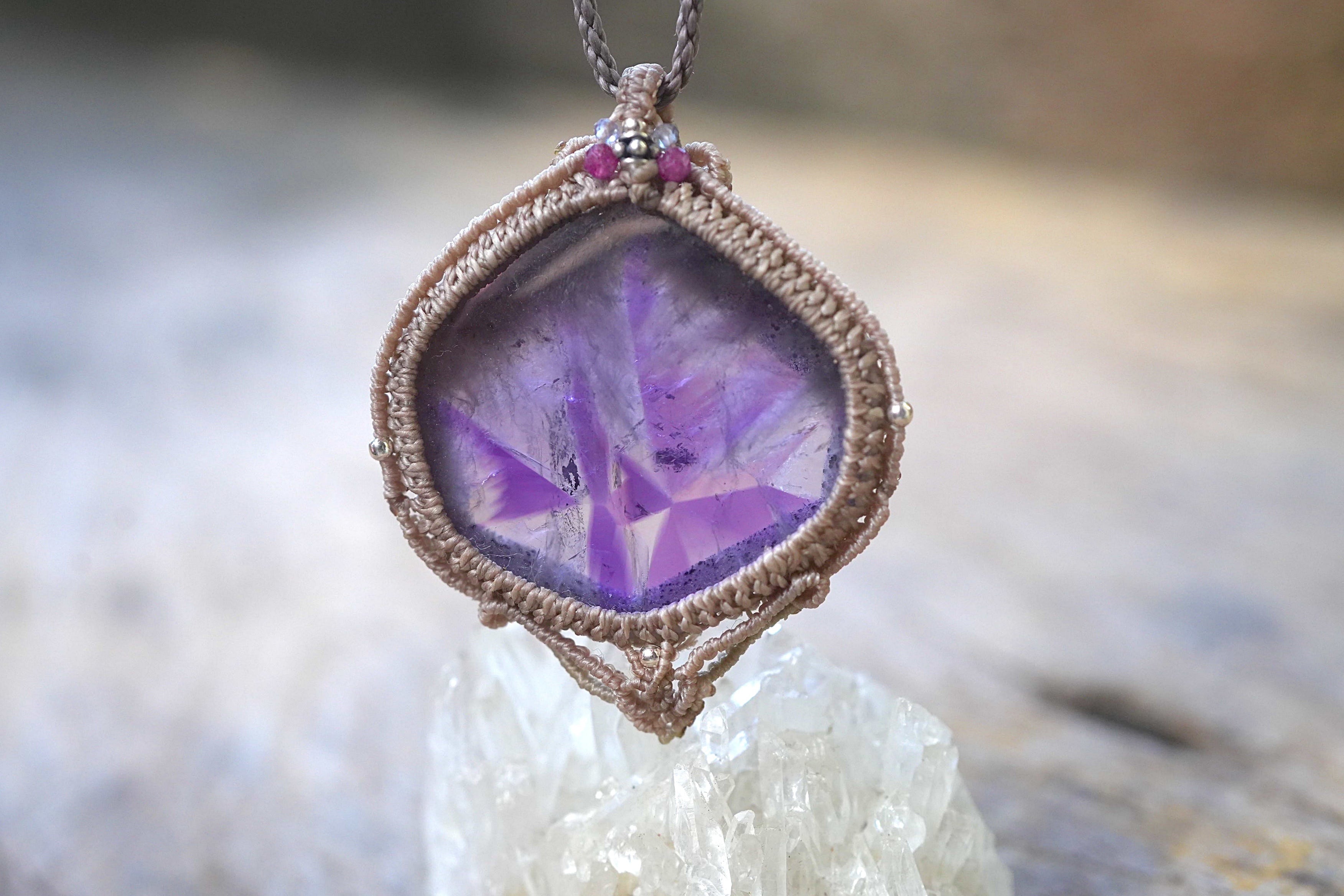 六角形★コランダム アメジスト マクラメネックレス1810