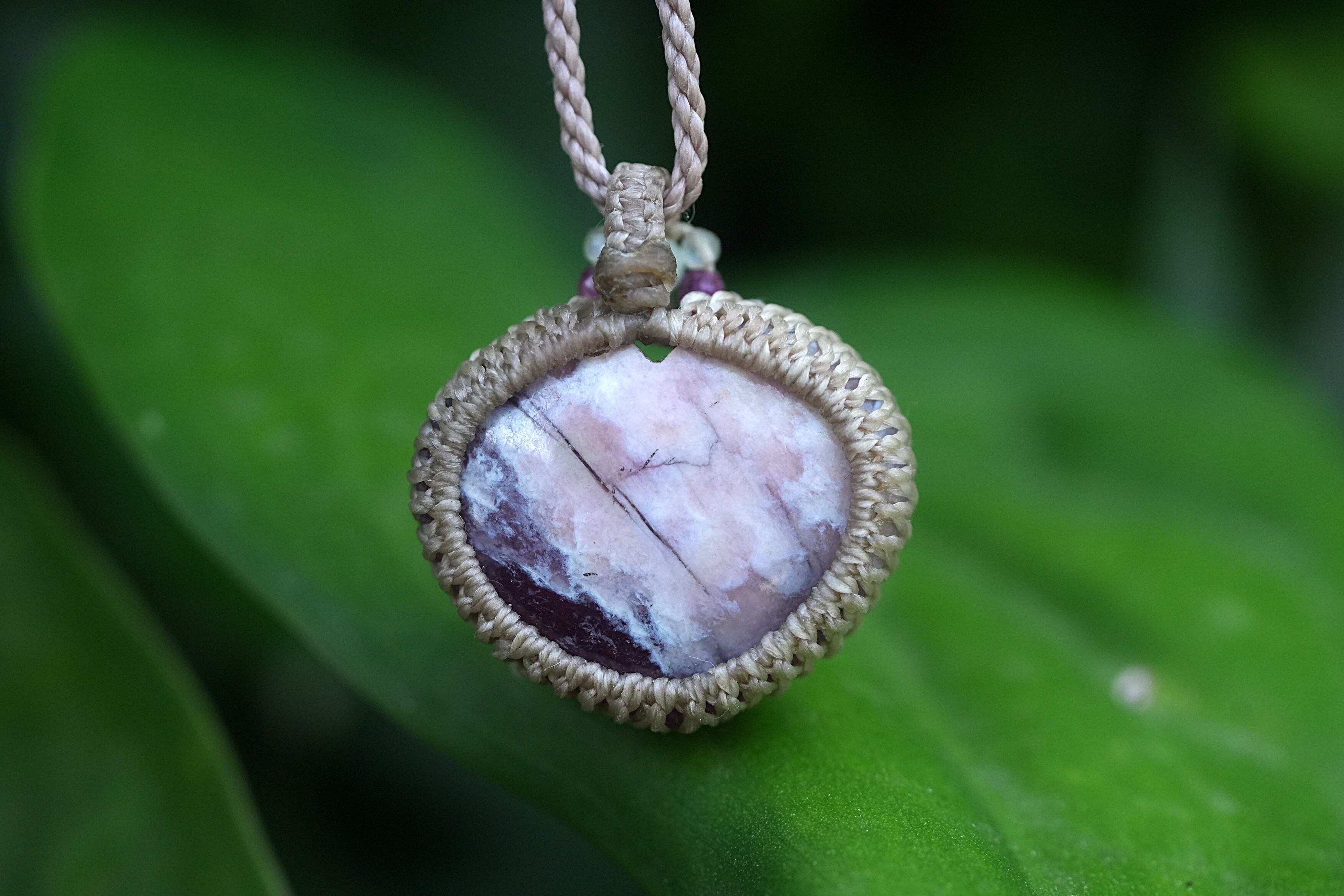 ◆このたびはミルクココア、キナリ色の蝋引き糸を使用しマクラメ編み装飾を施しました。