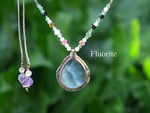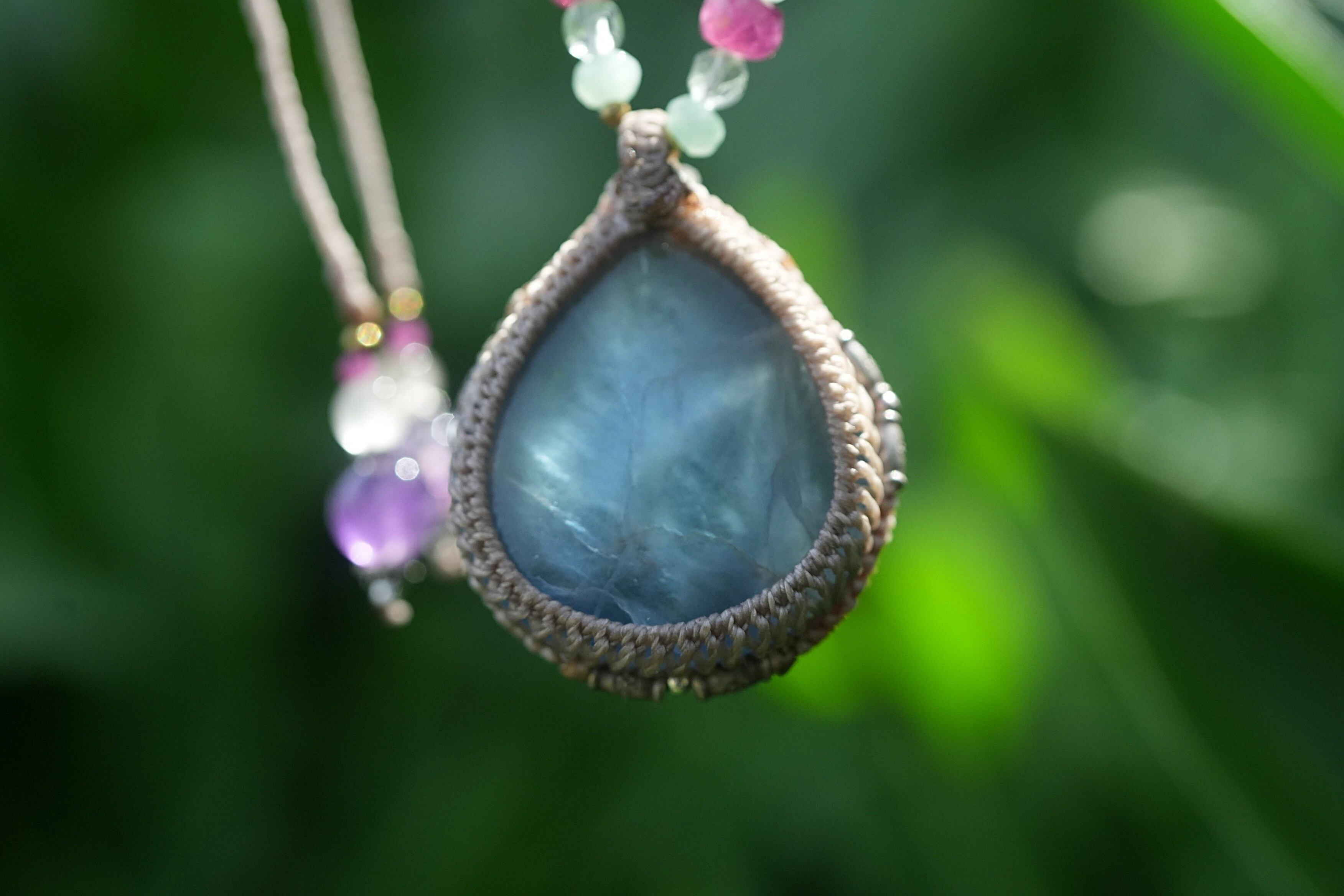 大粒レア★高品質★ブルーフローライト マクラメネックレス1814