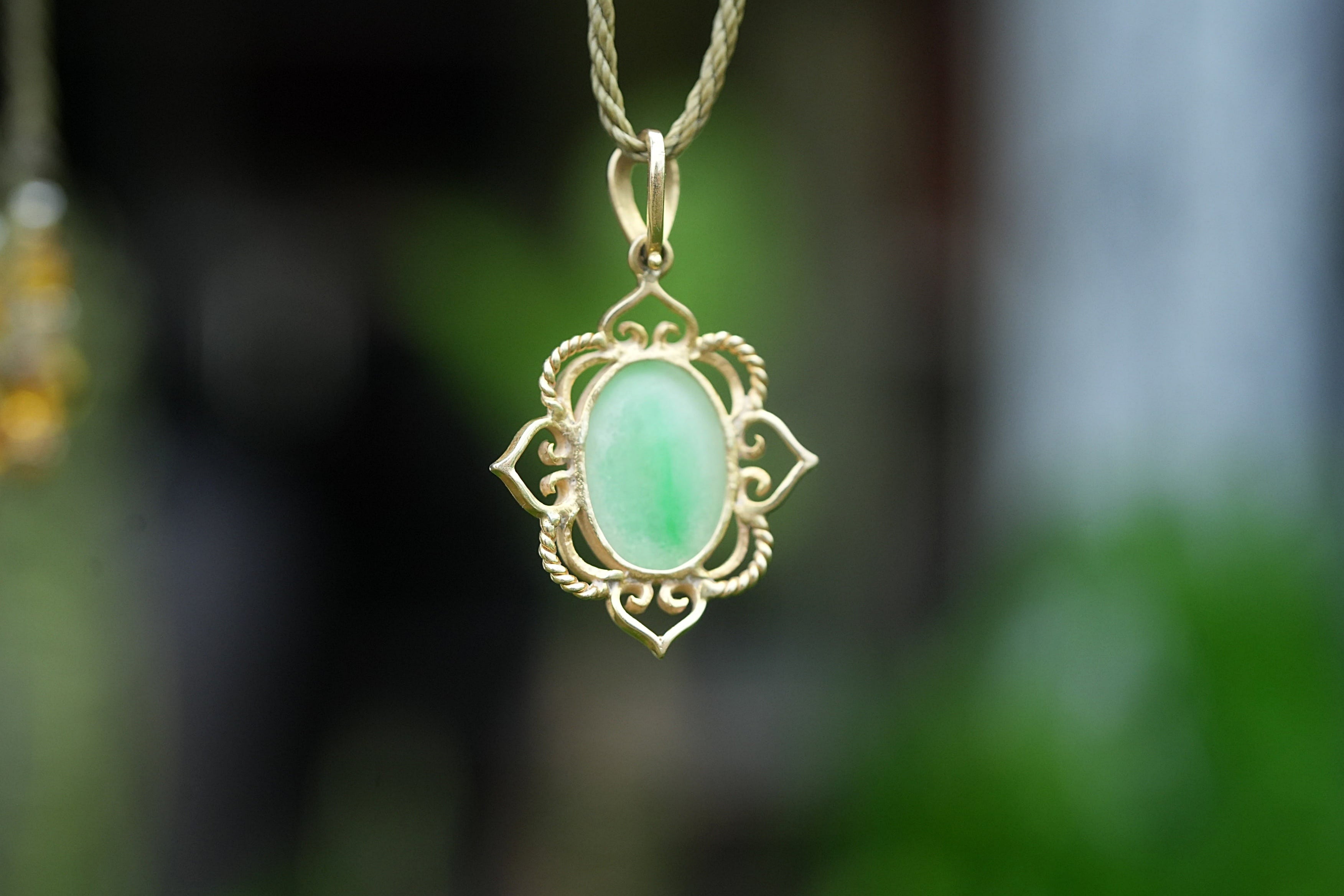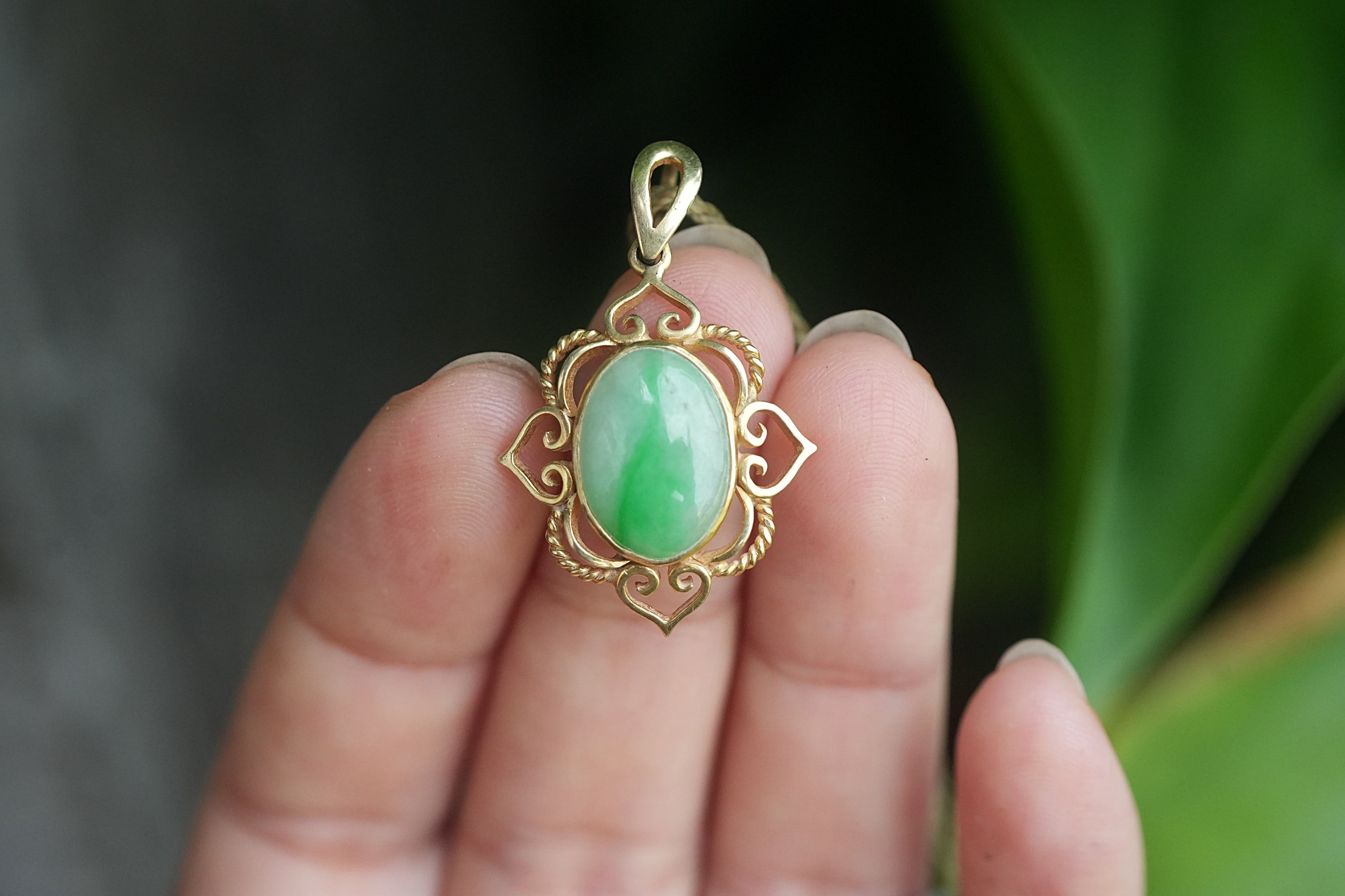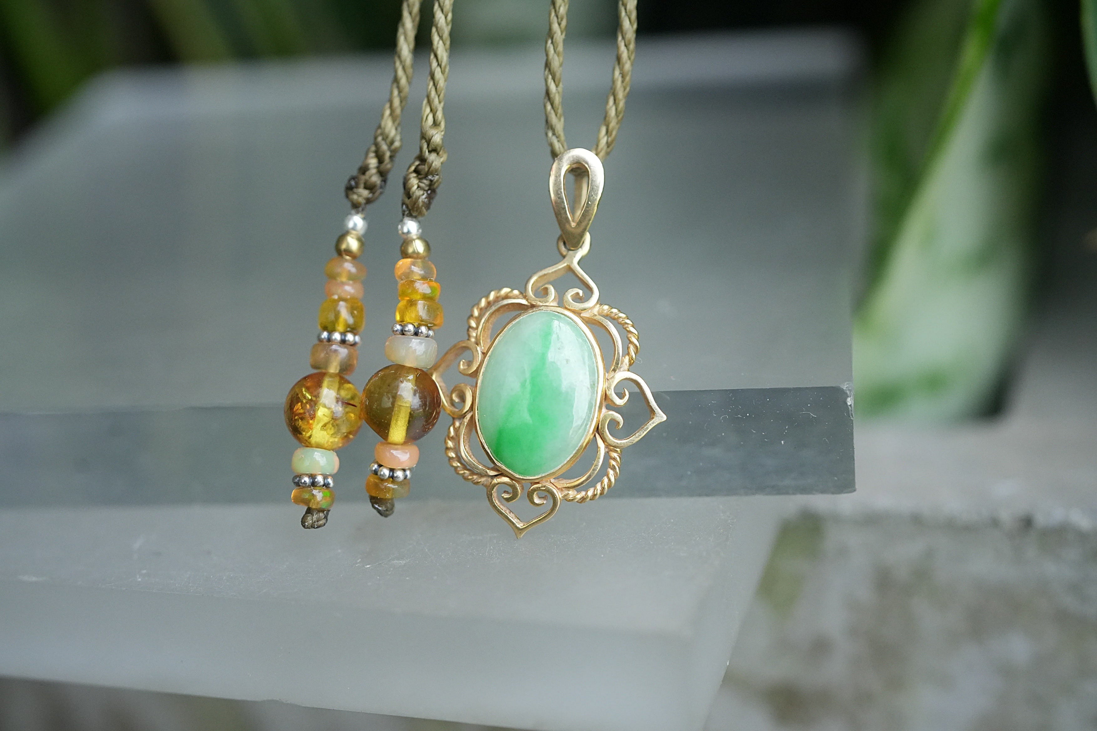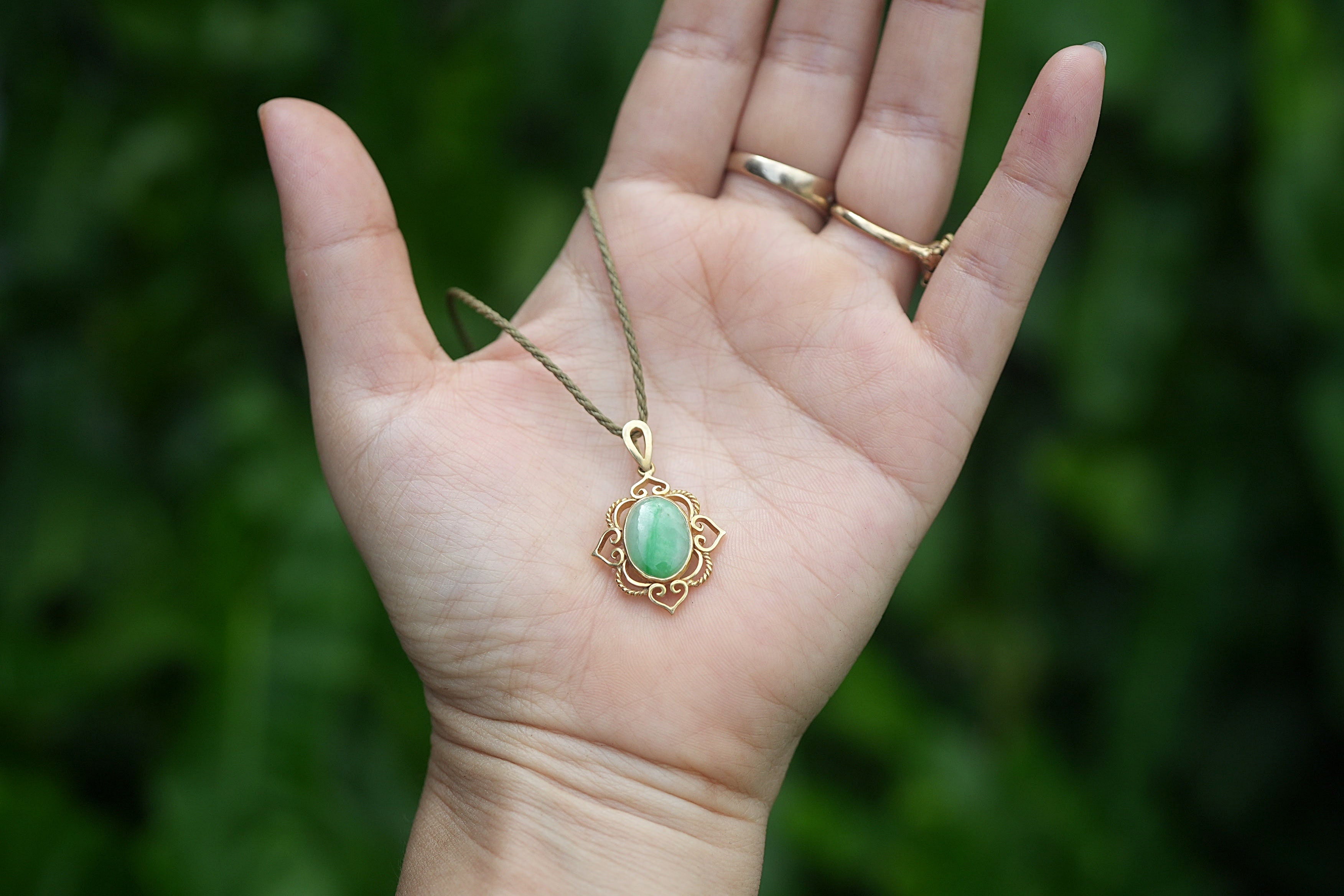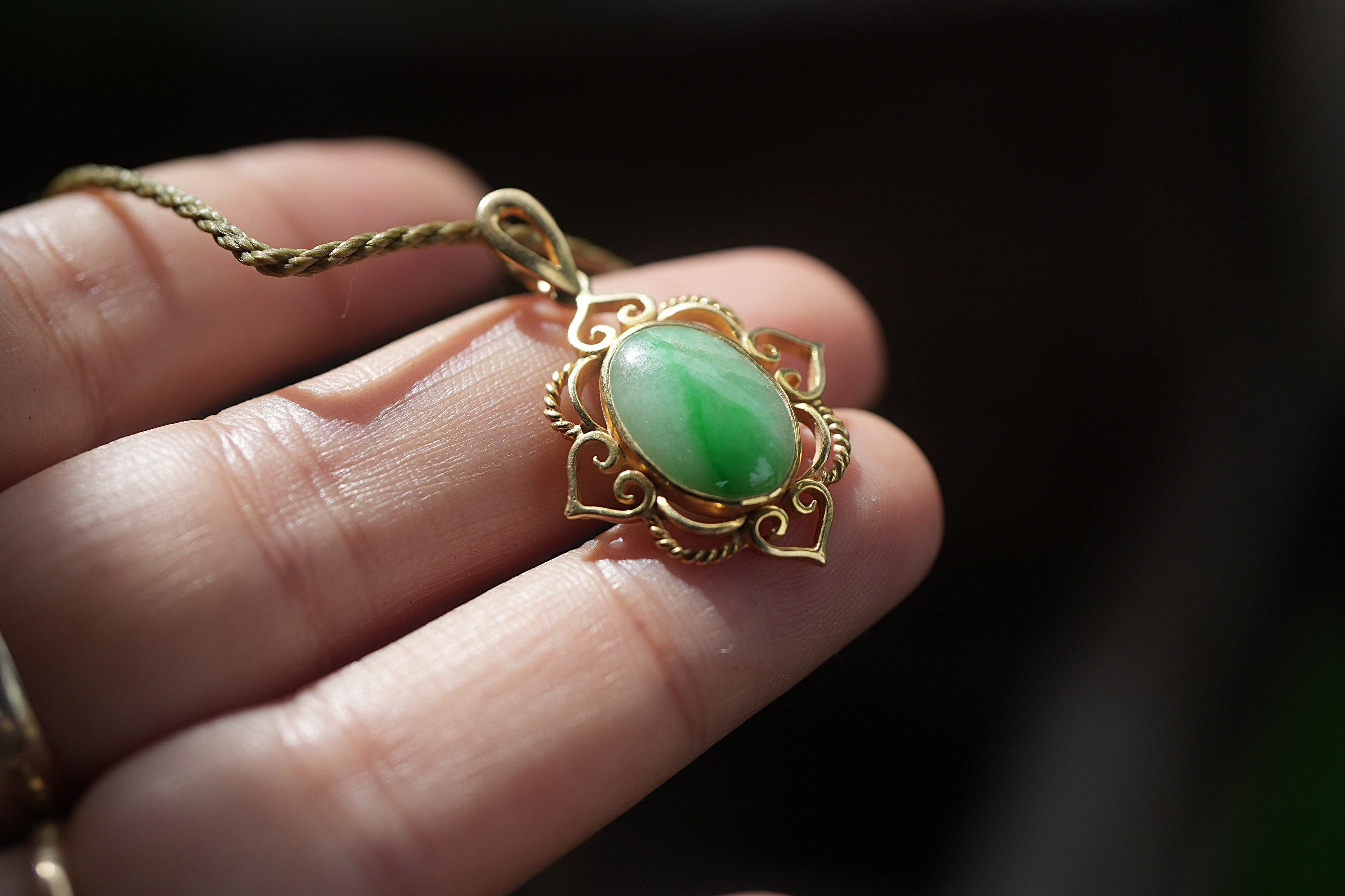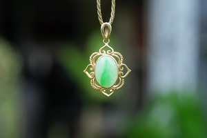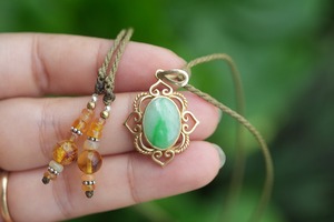 曼荼羅アンティーク 14KGold ★ミャンマー翡翠 ネックレス 1819