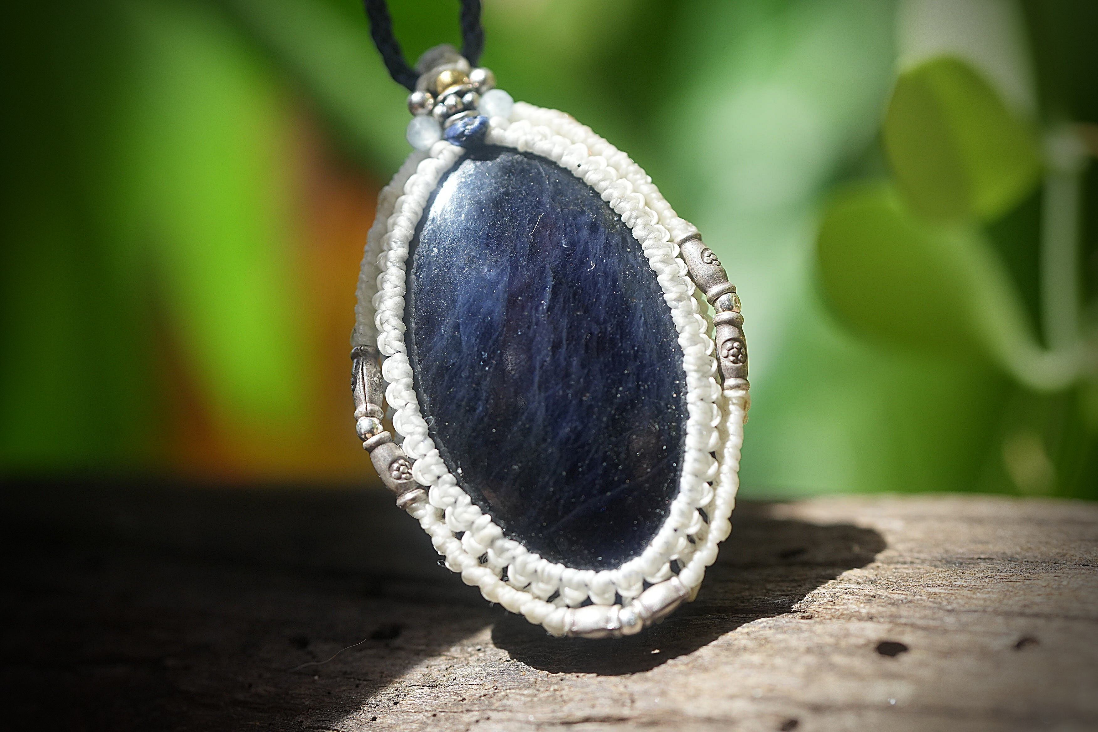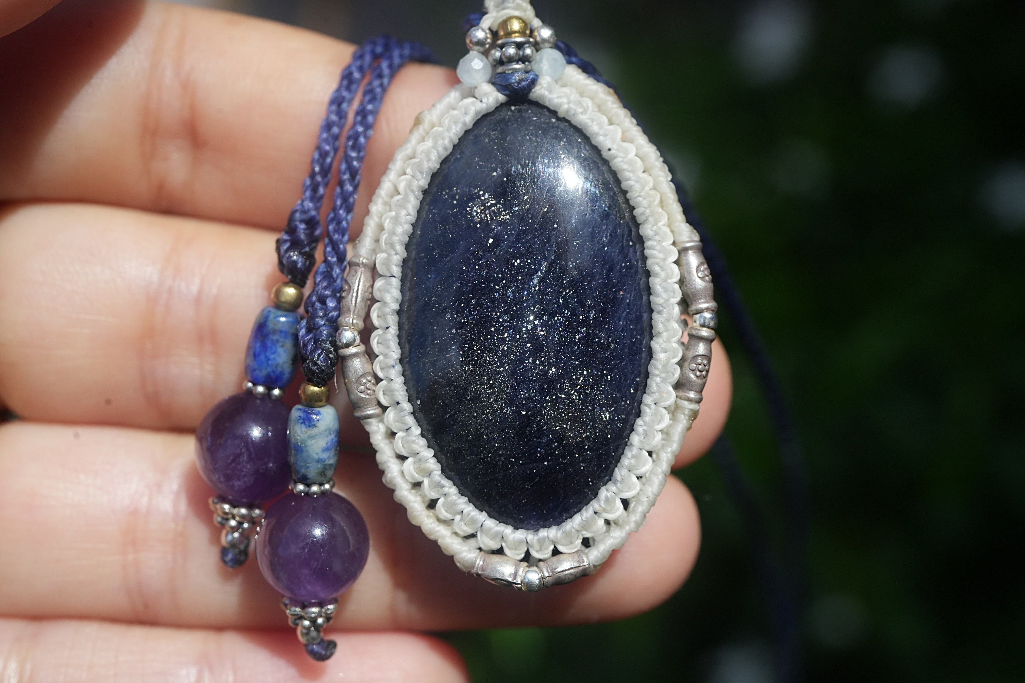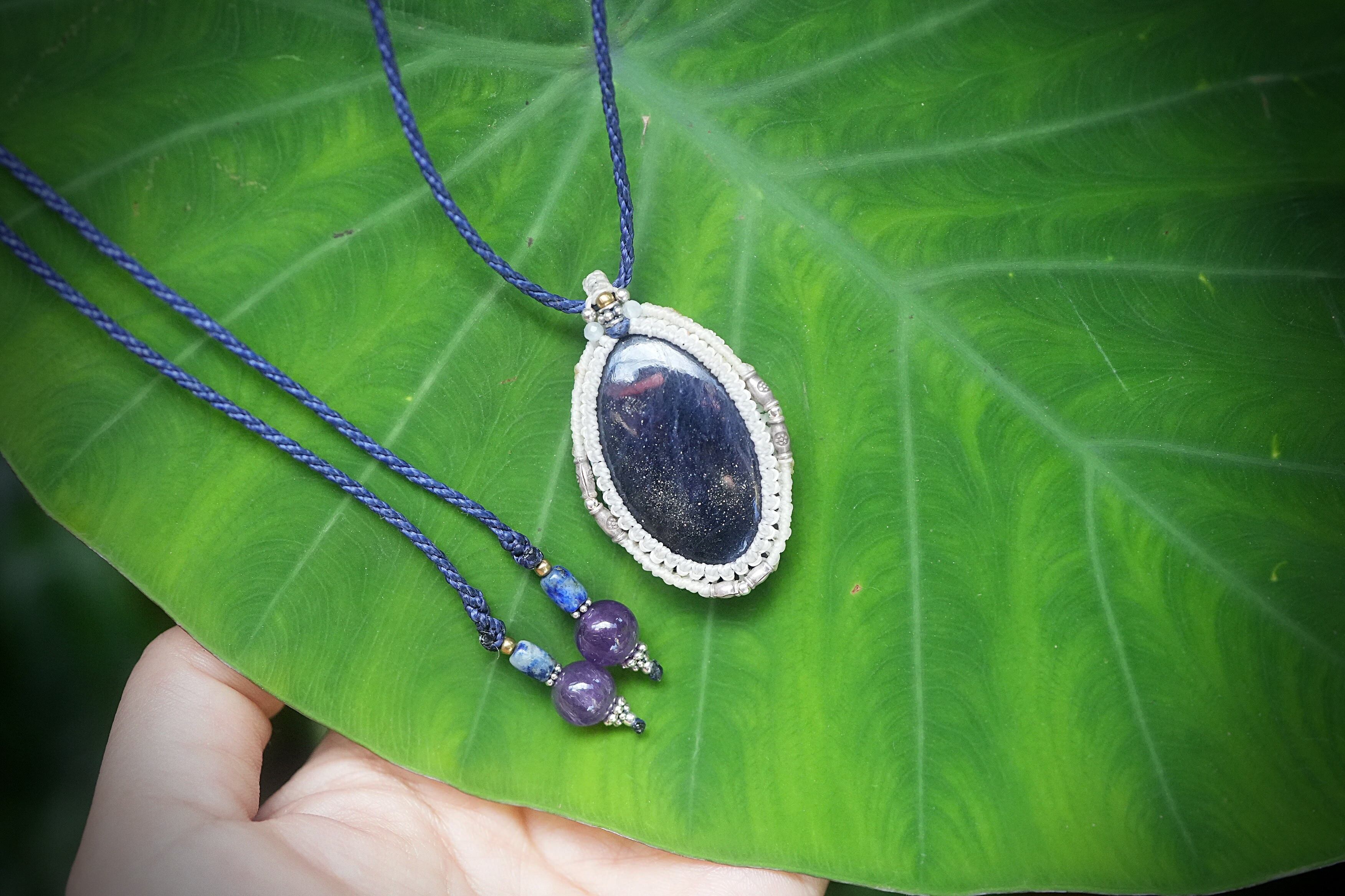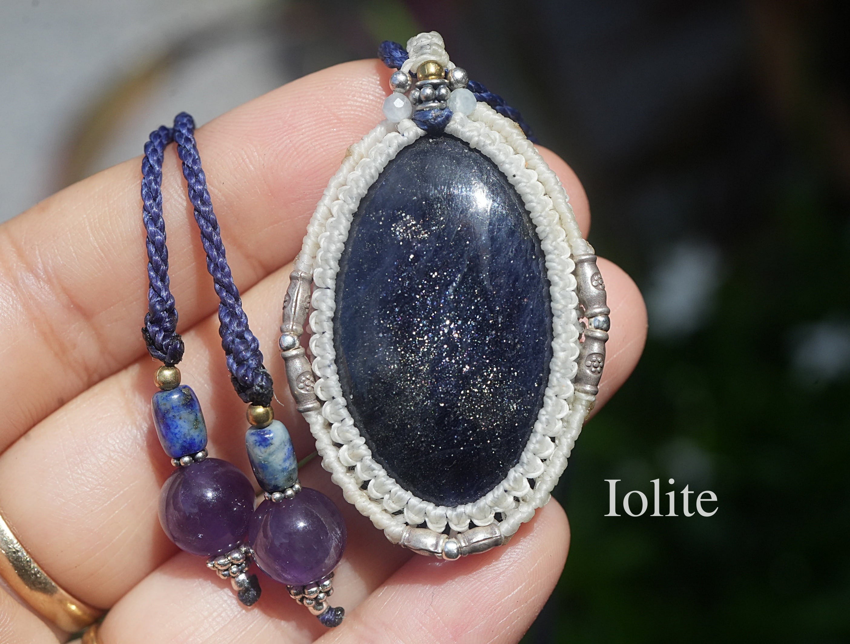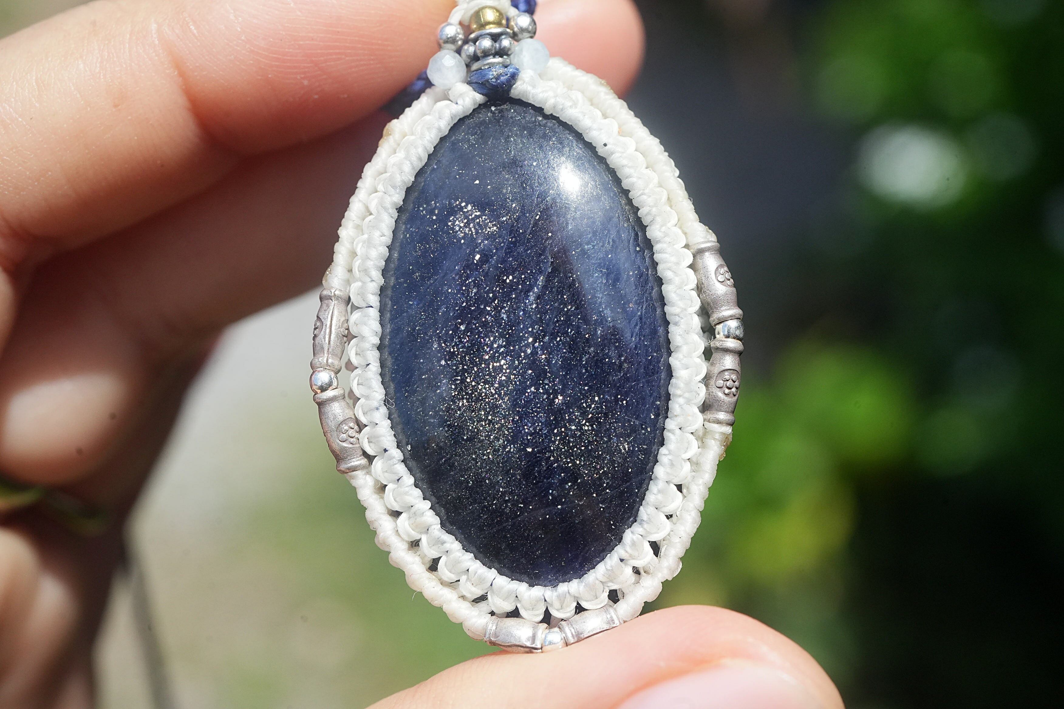 銀の星屑★アイオライトサンストーン マクラメネックレス1826