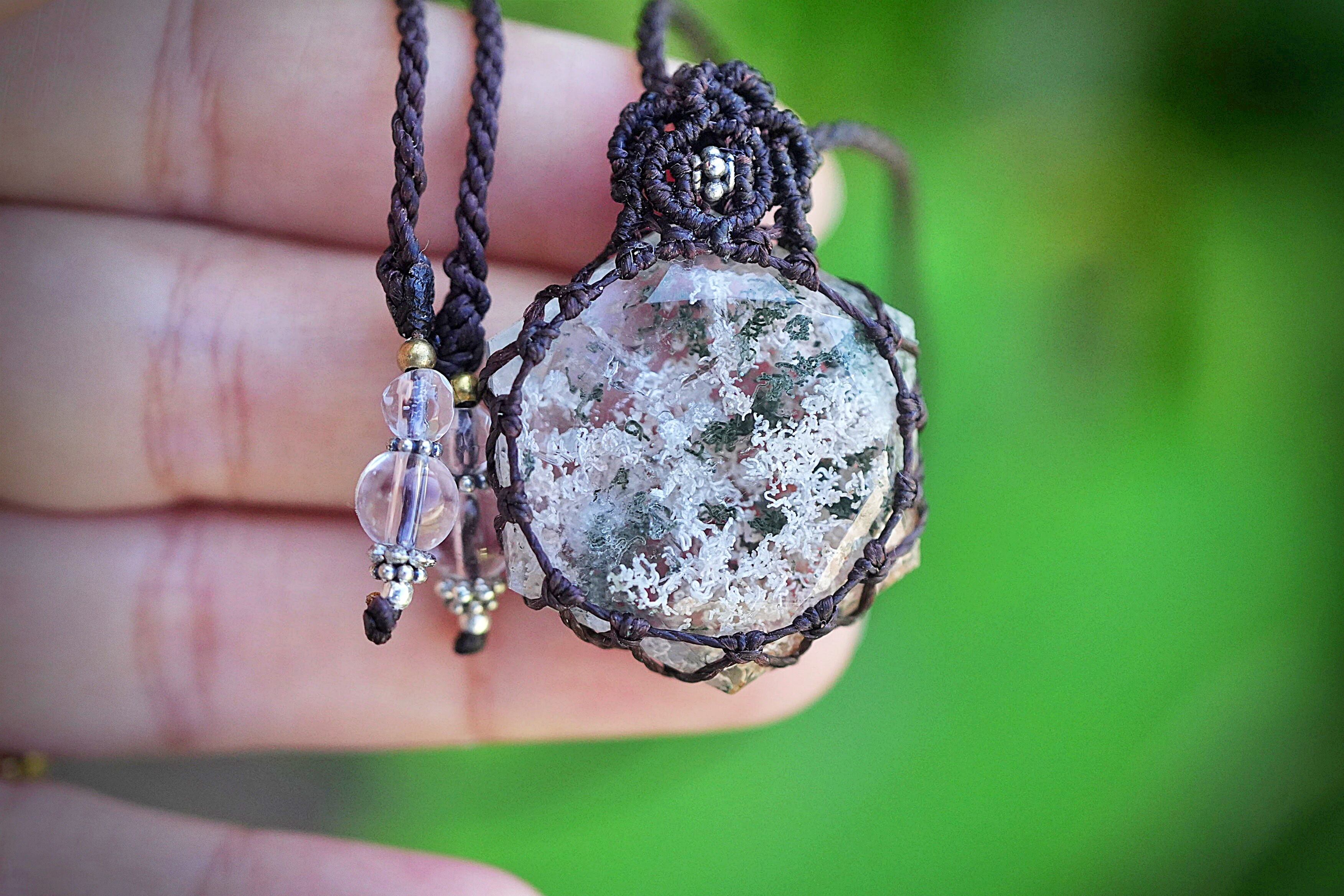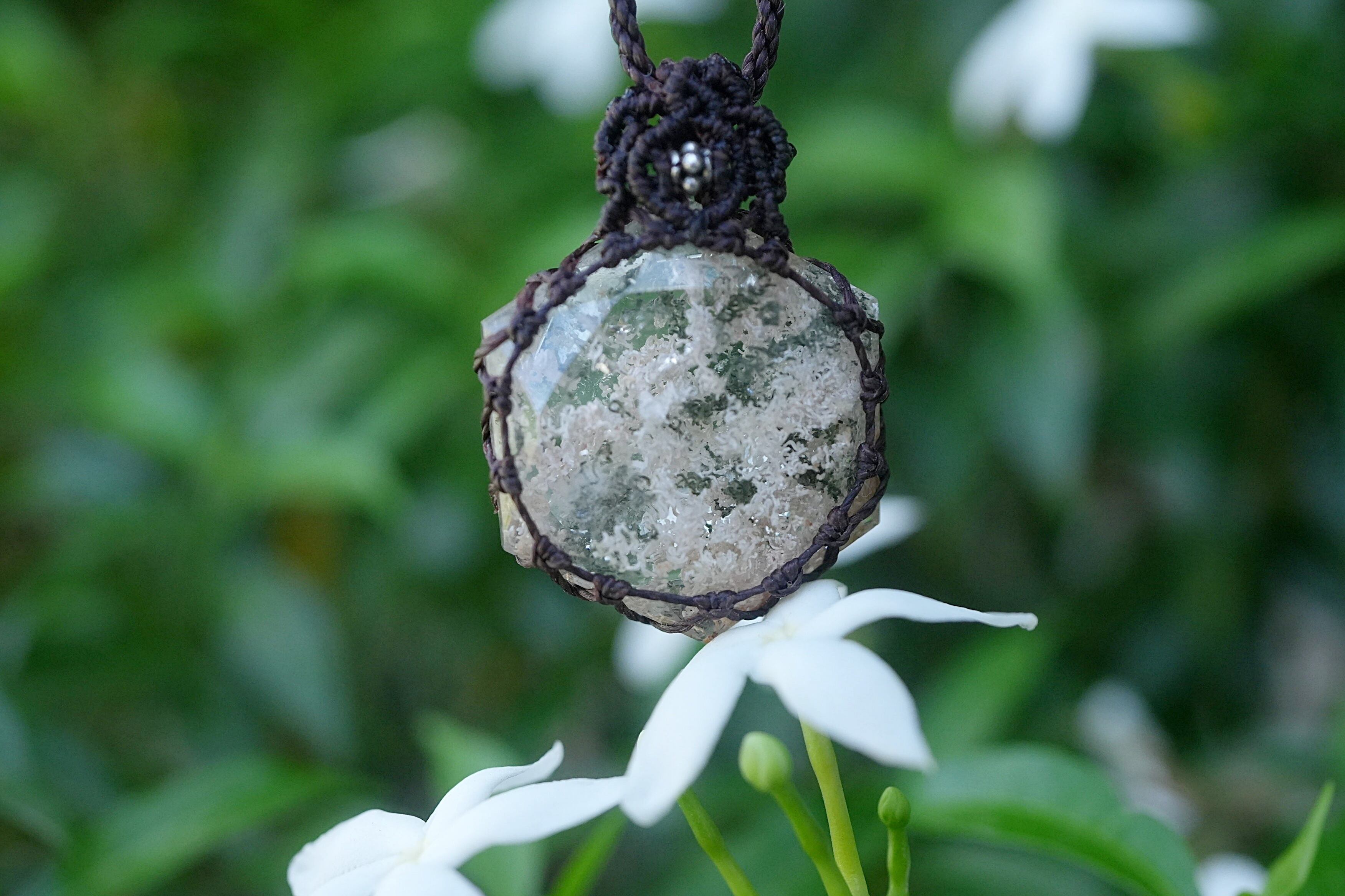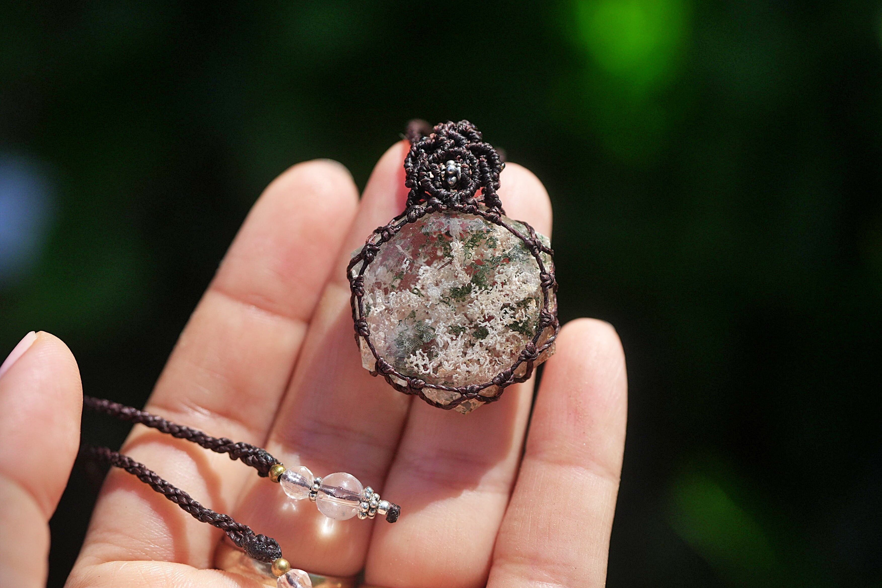 六芒星森林ミックス★ブラジル産 ホワイトガーデンクォーツ マクラメネックレス1836