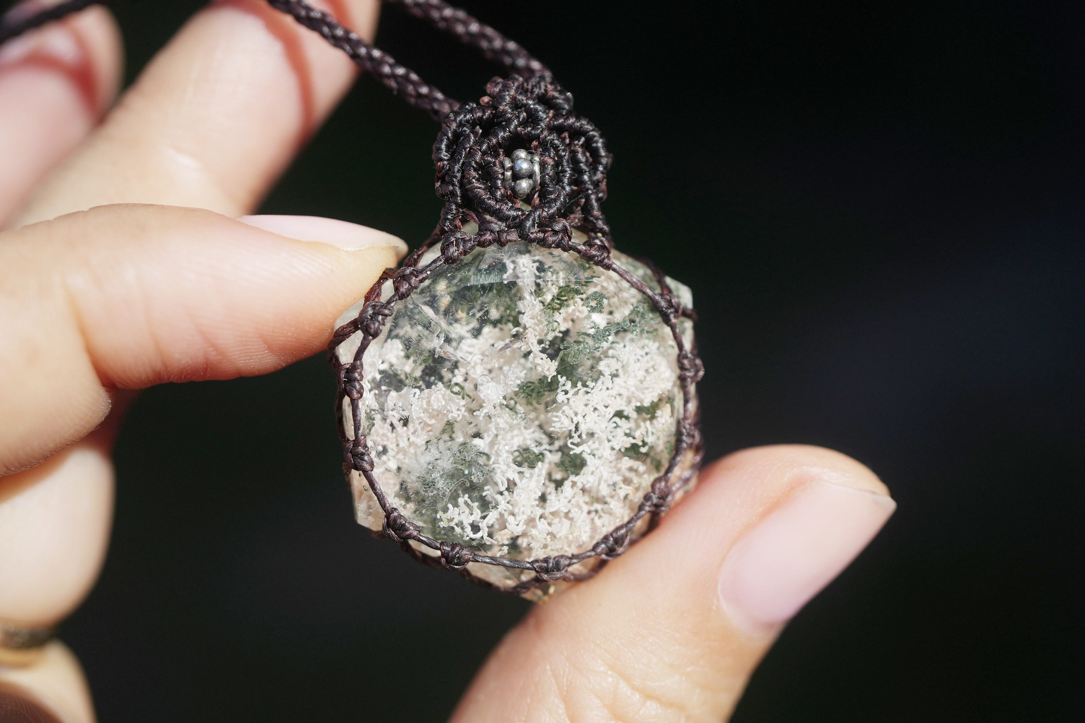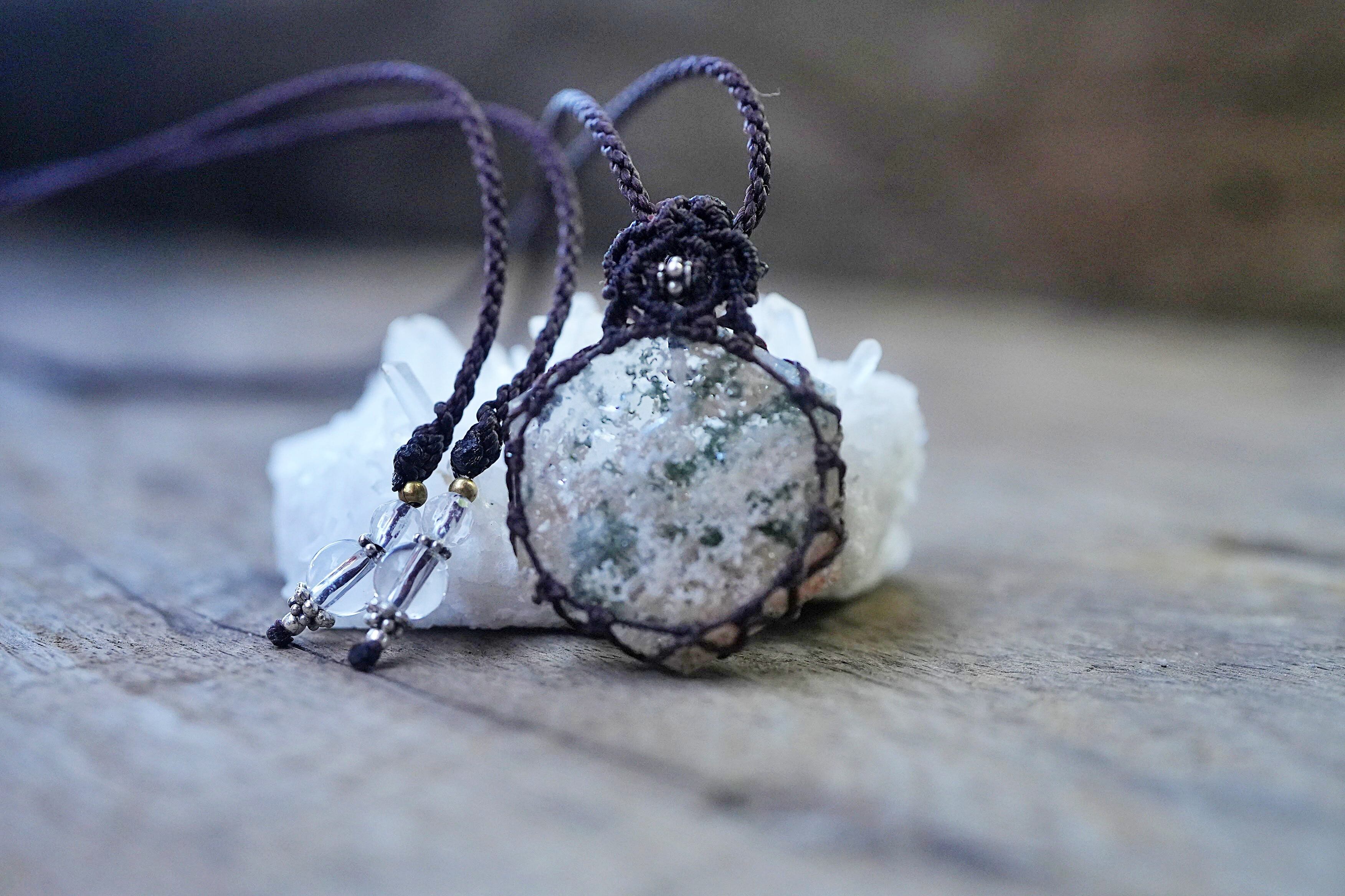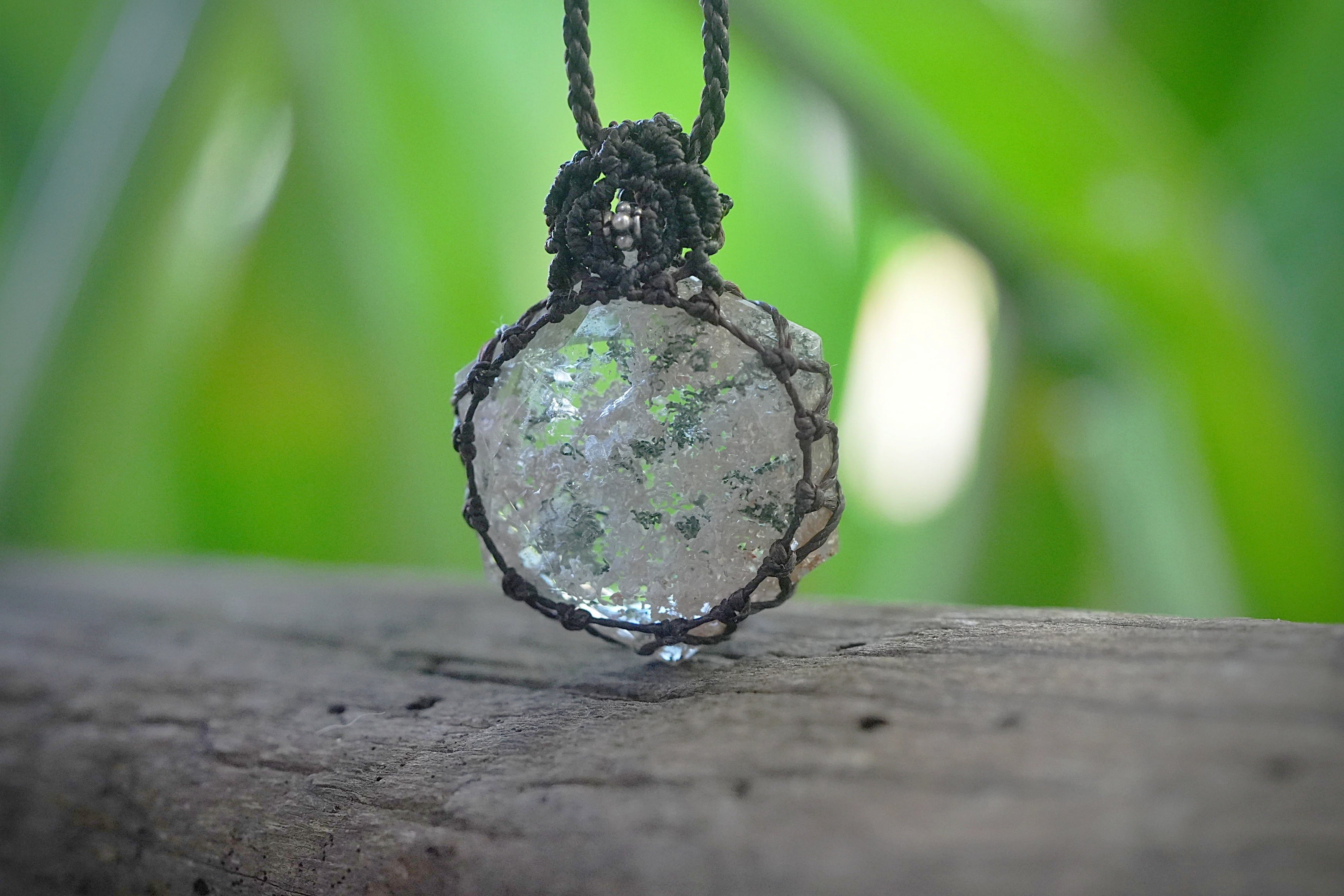 六芒星森林ミックス★ブラジル産 ホワイトガーデンクォーツ マクラメネックレス1836