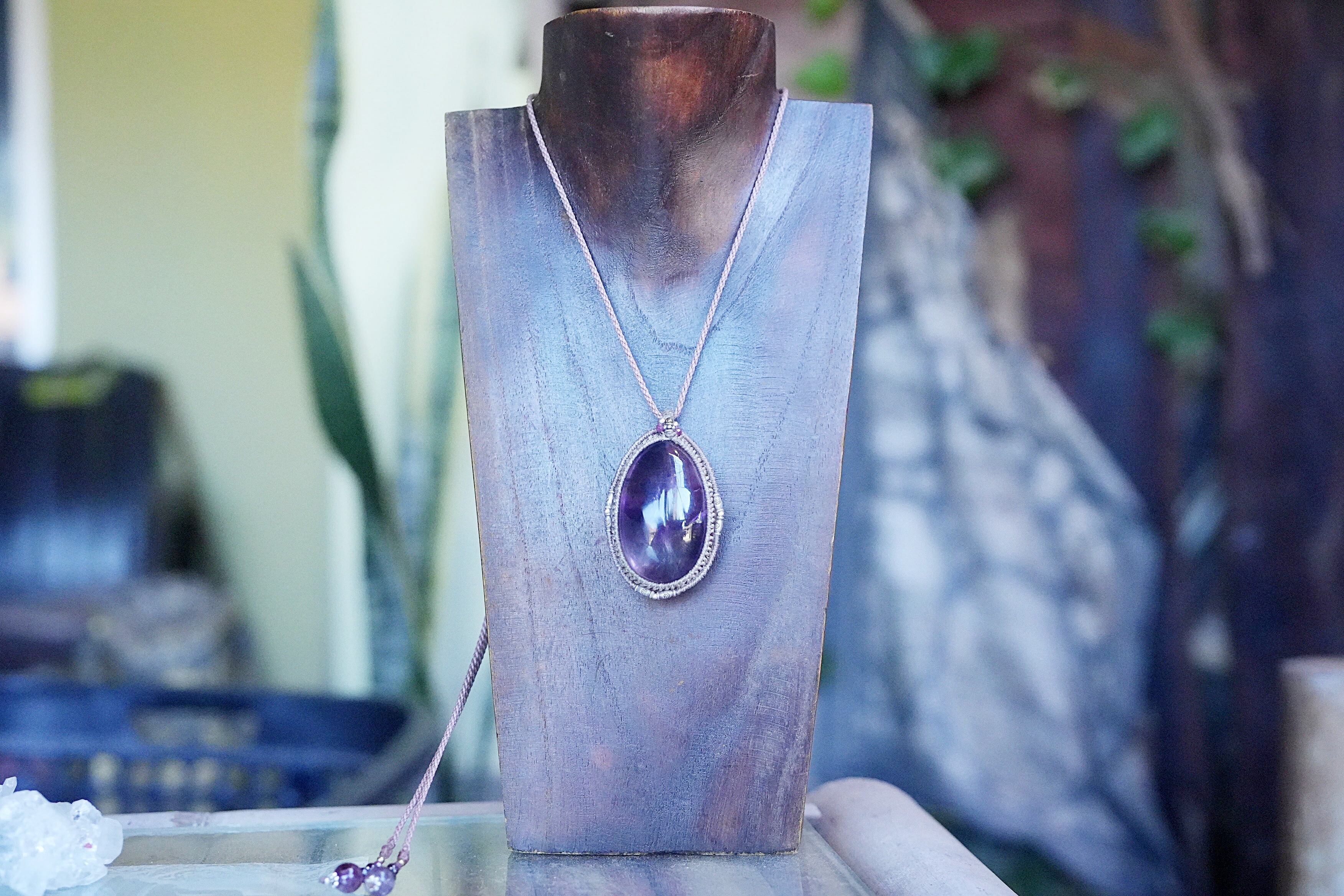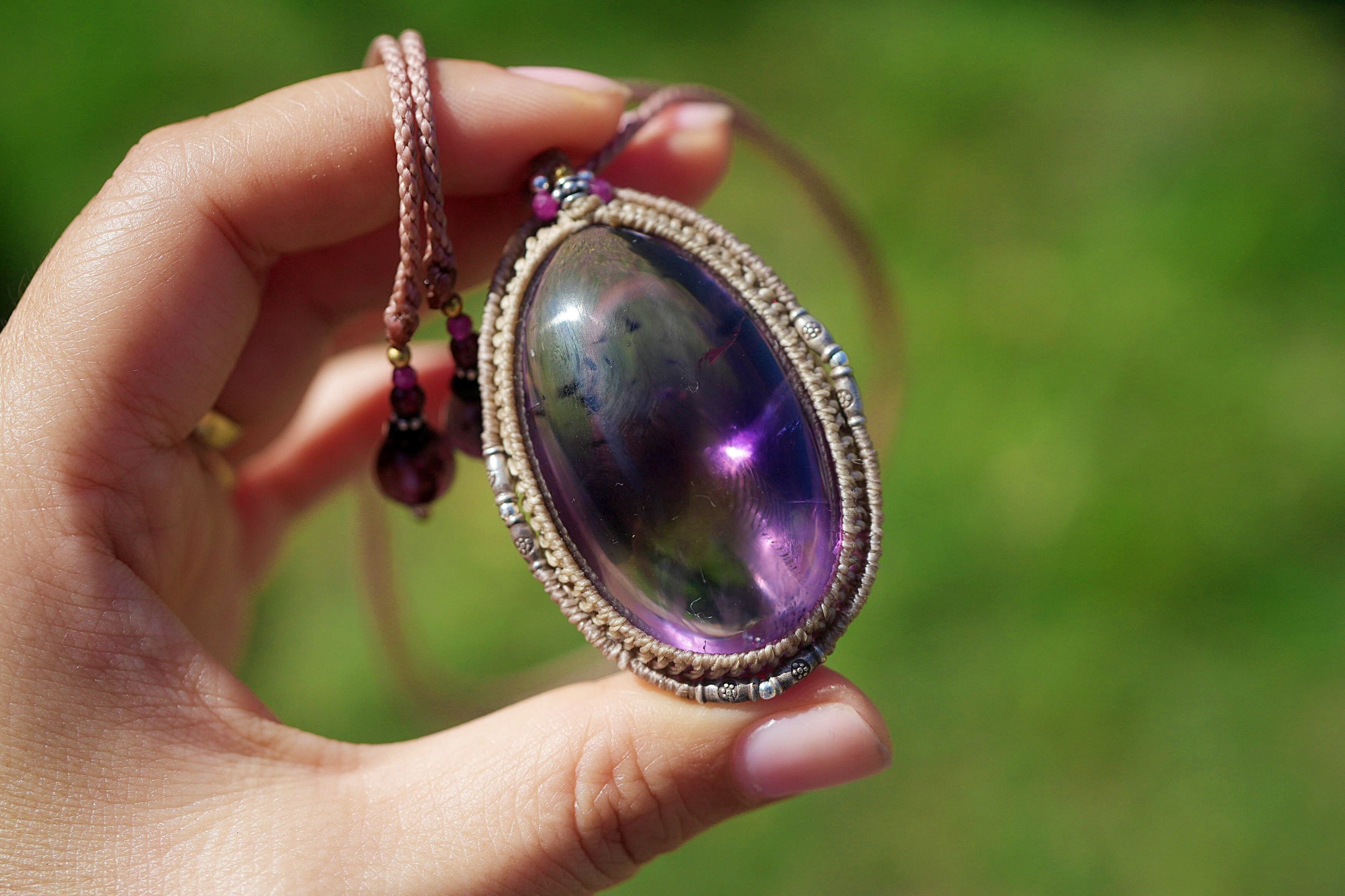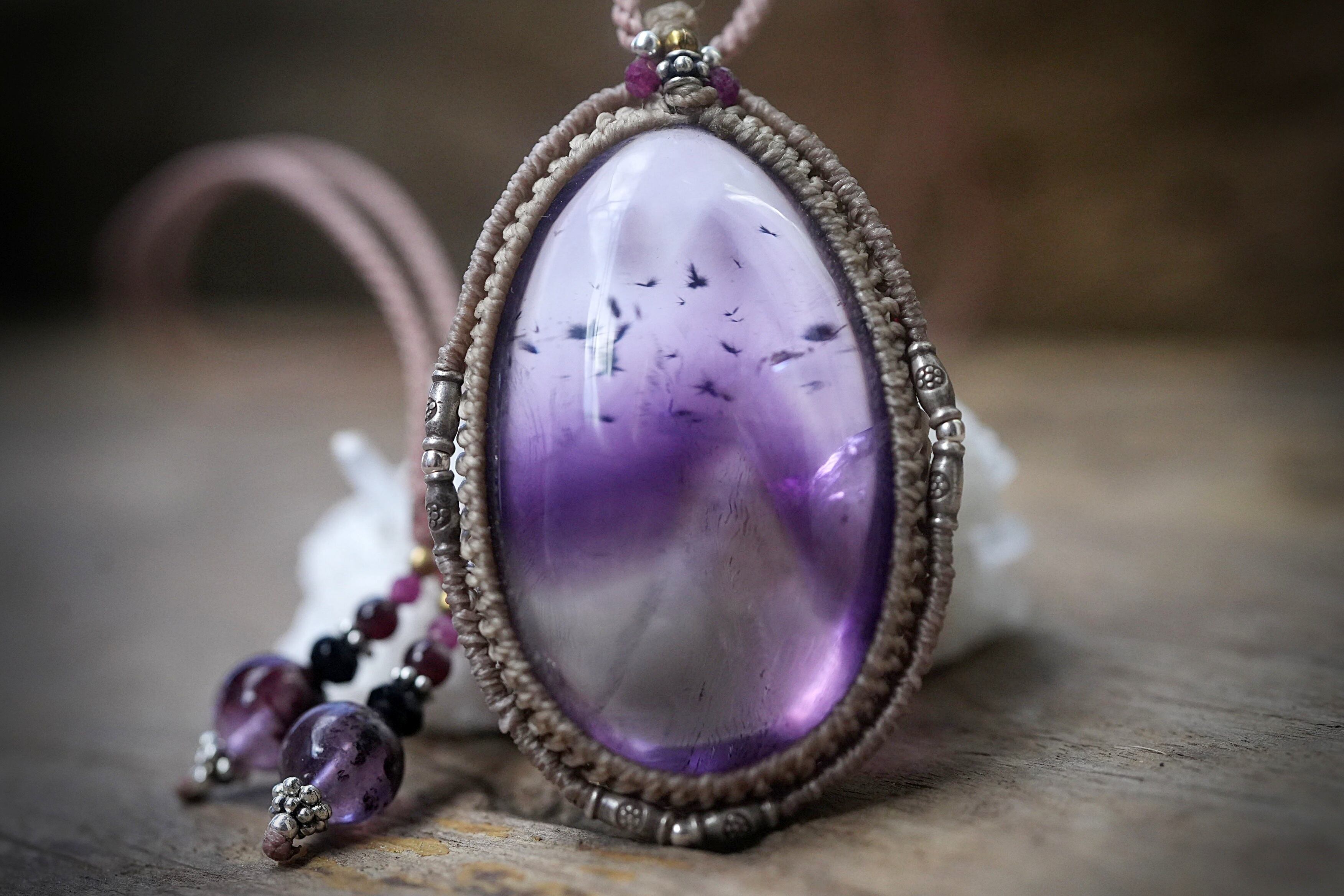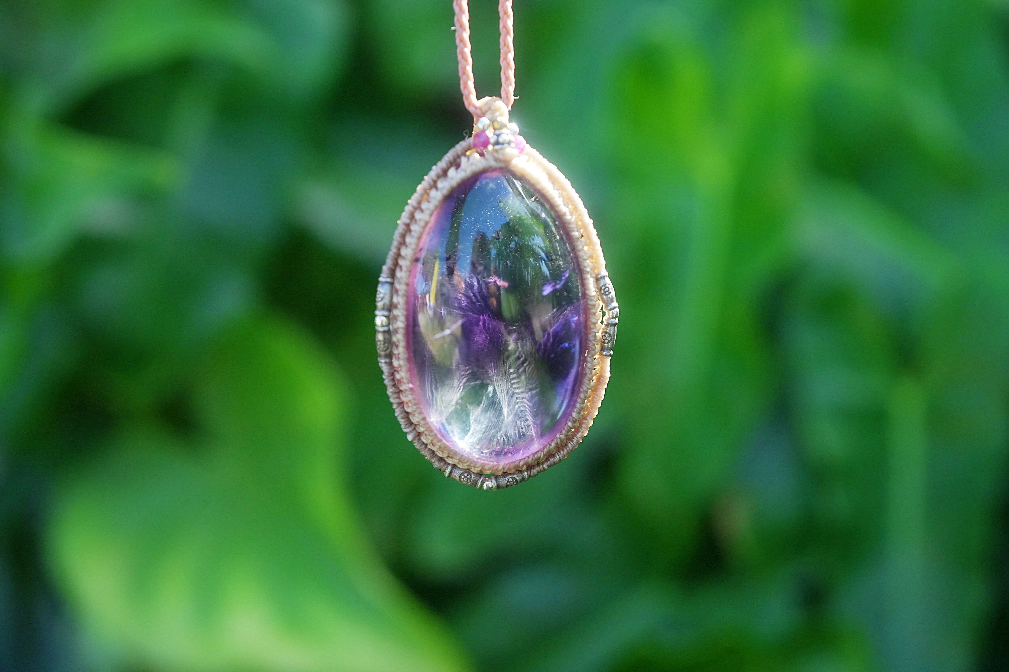 特大ファントム入り★ロマネサイトインamethyst マクラメネックレス 1838