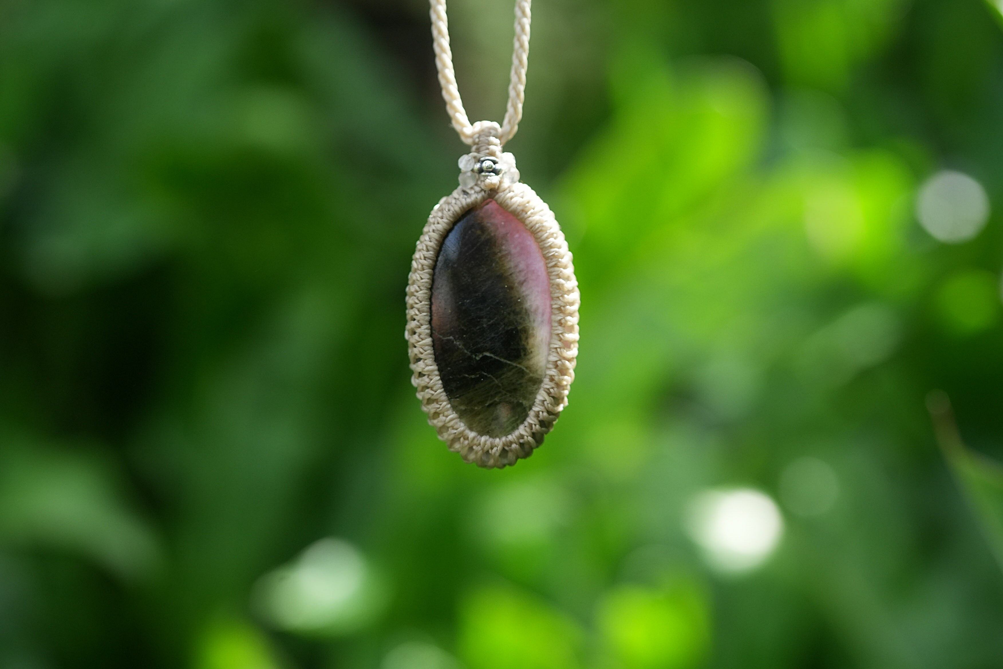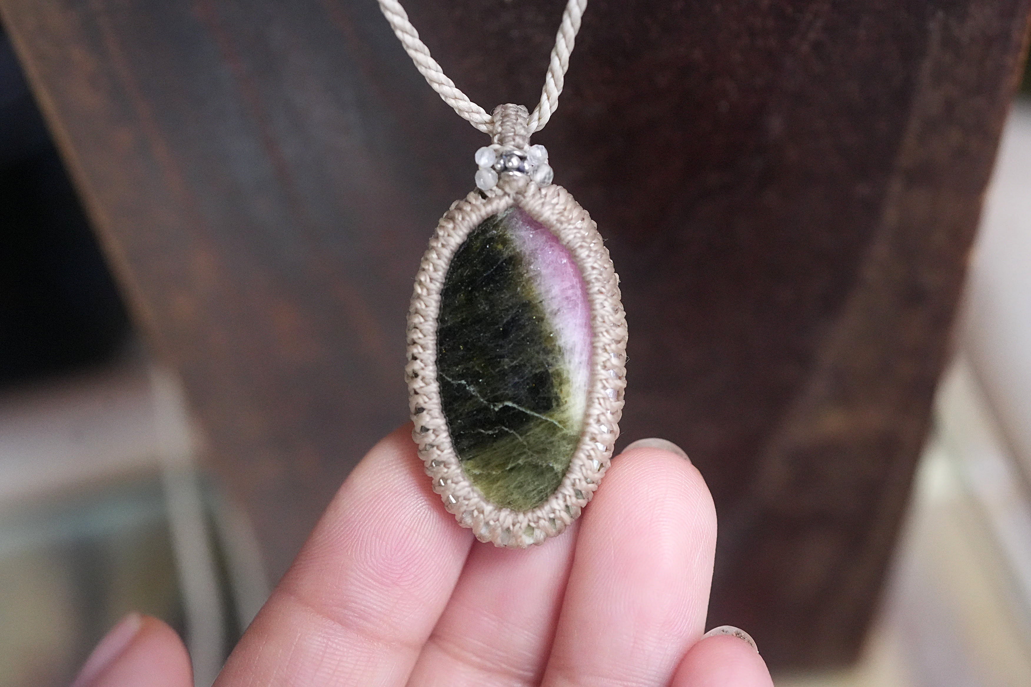 ◆このたびはキナリ色の蝋引き糸を使用しマクラメ編み装飾を施しました。
