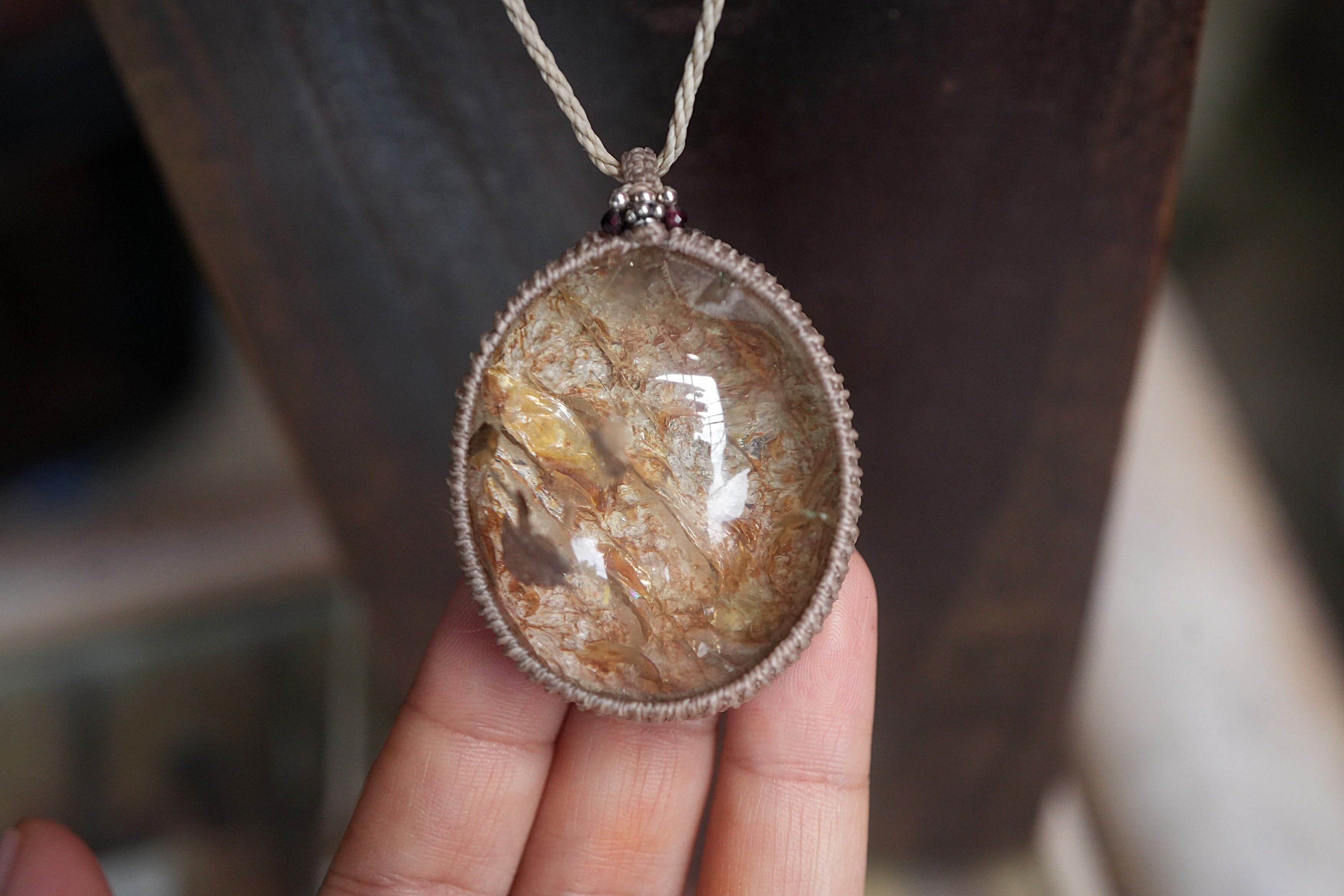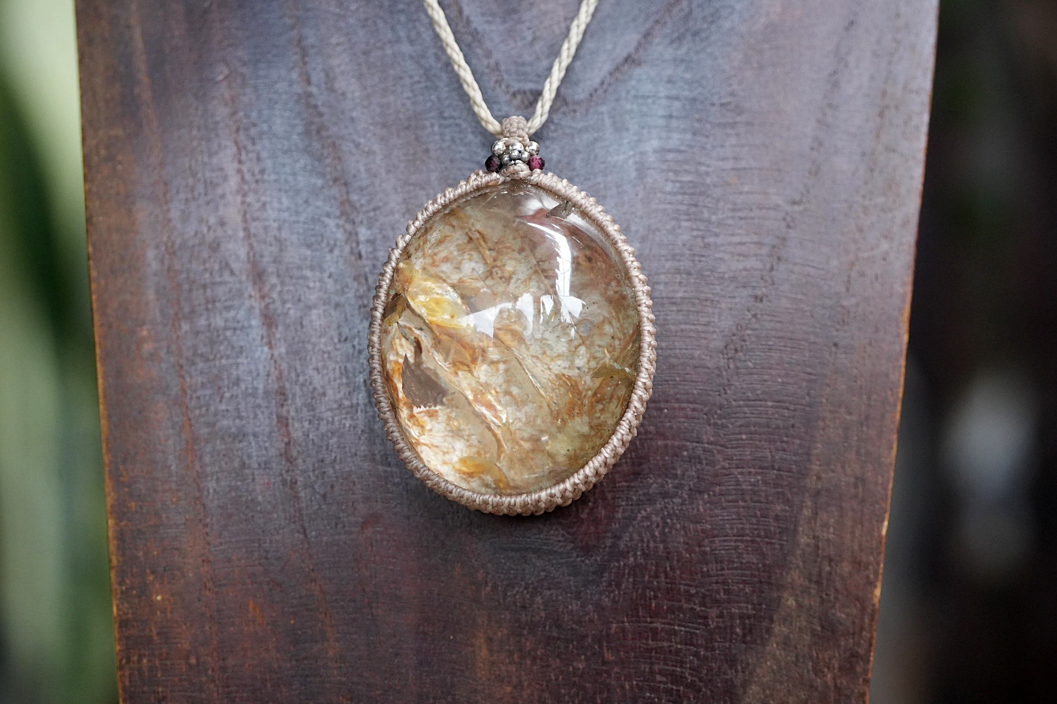 大粒 ガーデンの記憶★ガーデンクォーツ マクラメネックレス 1848