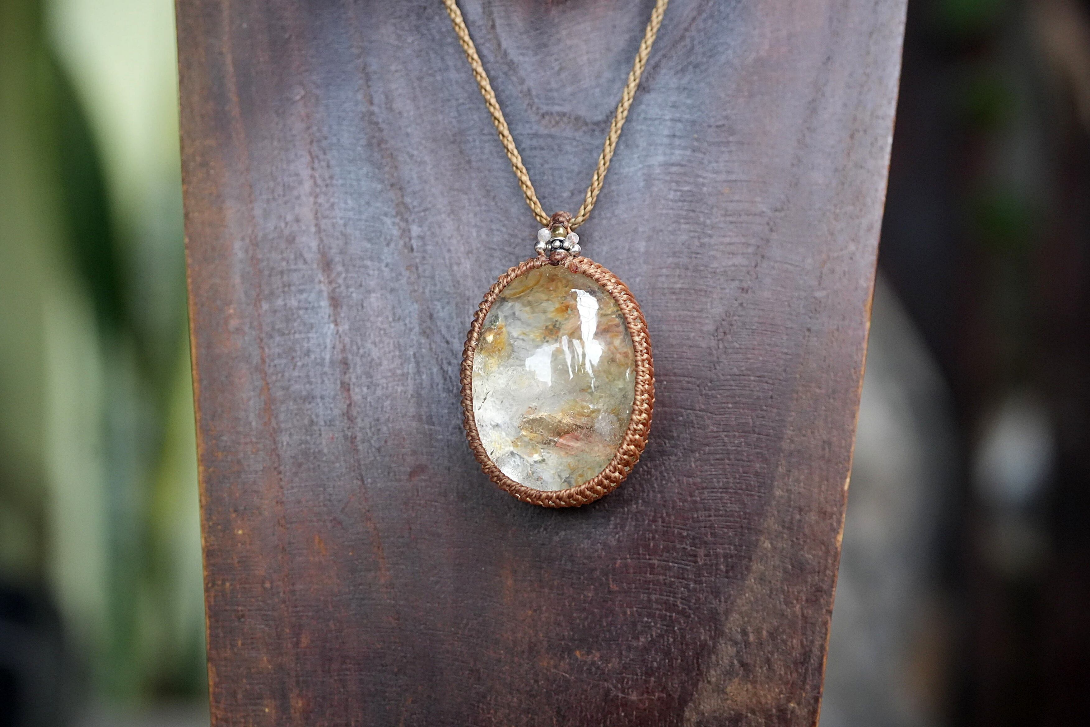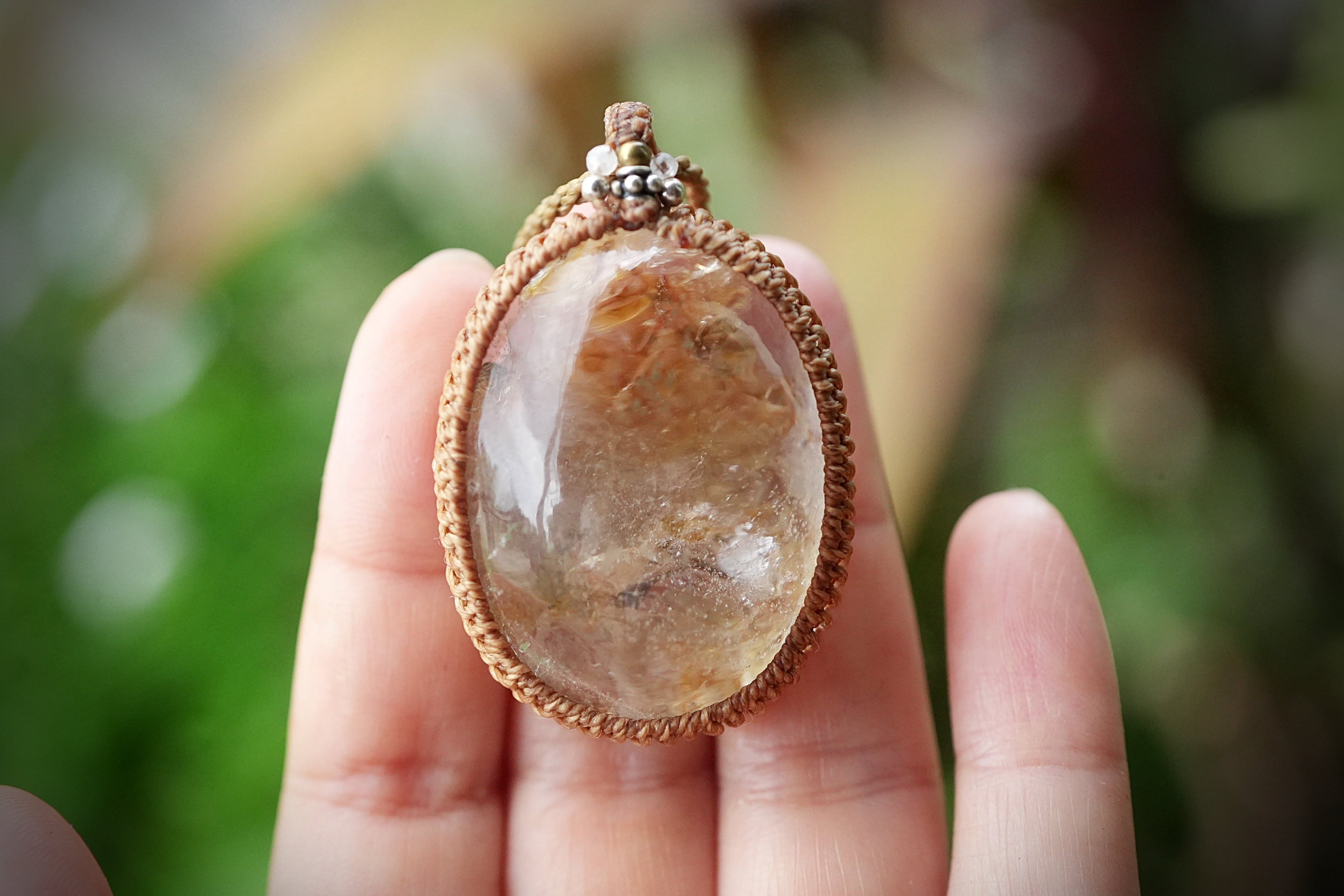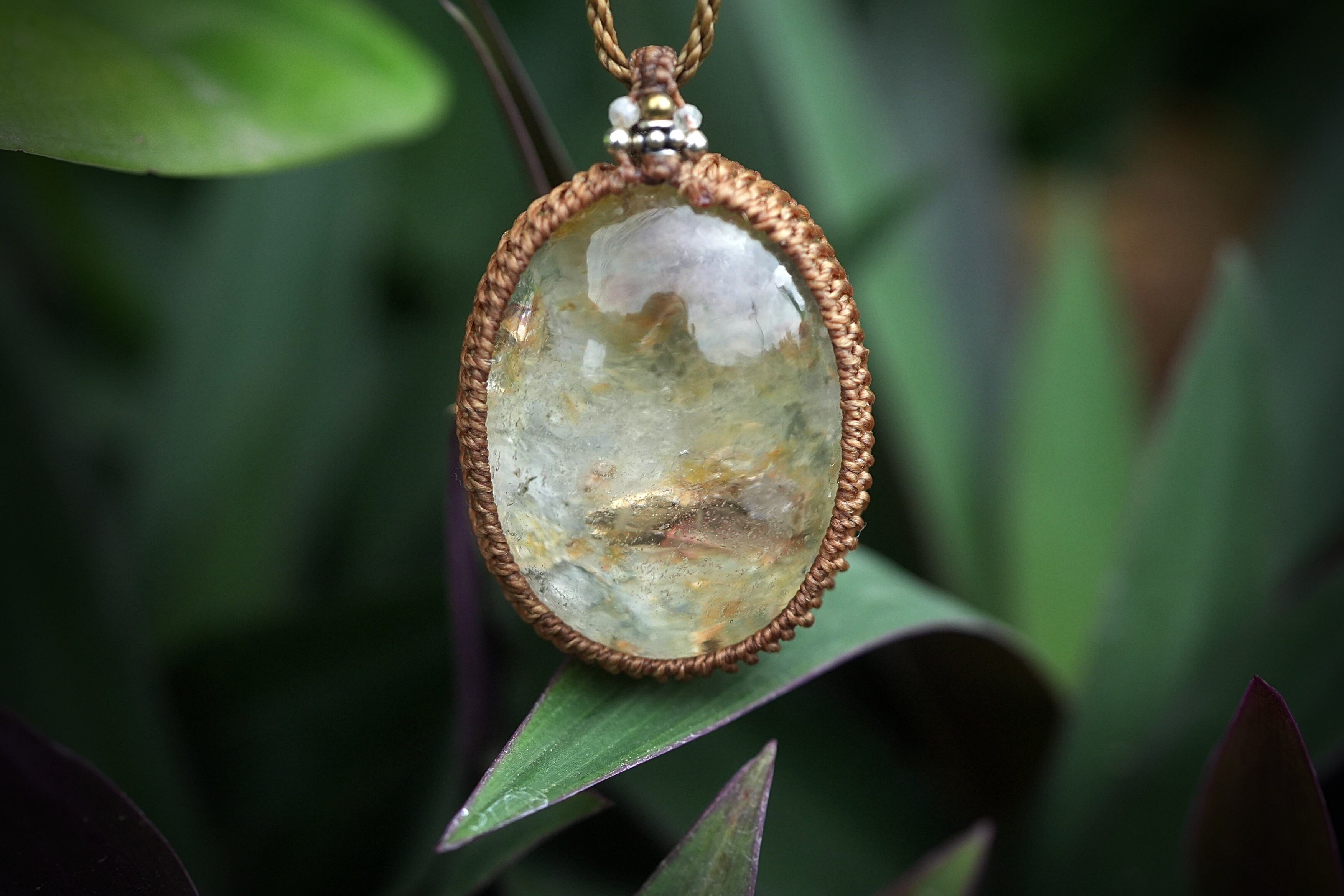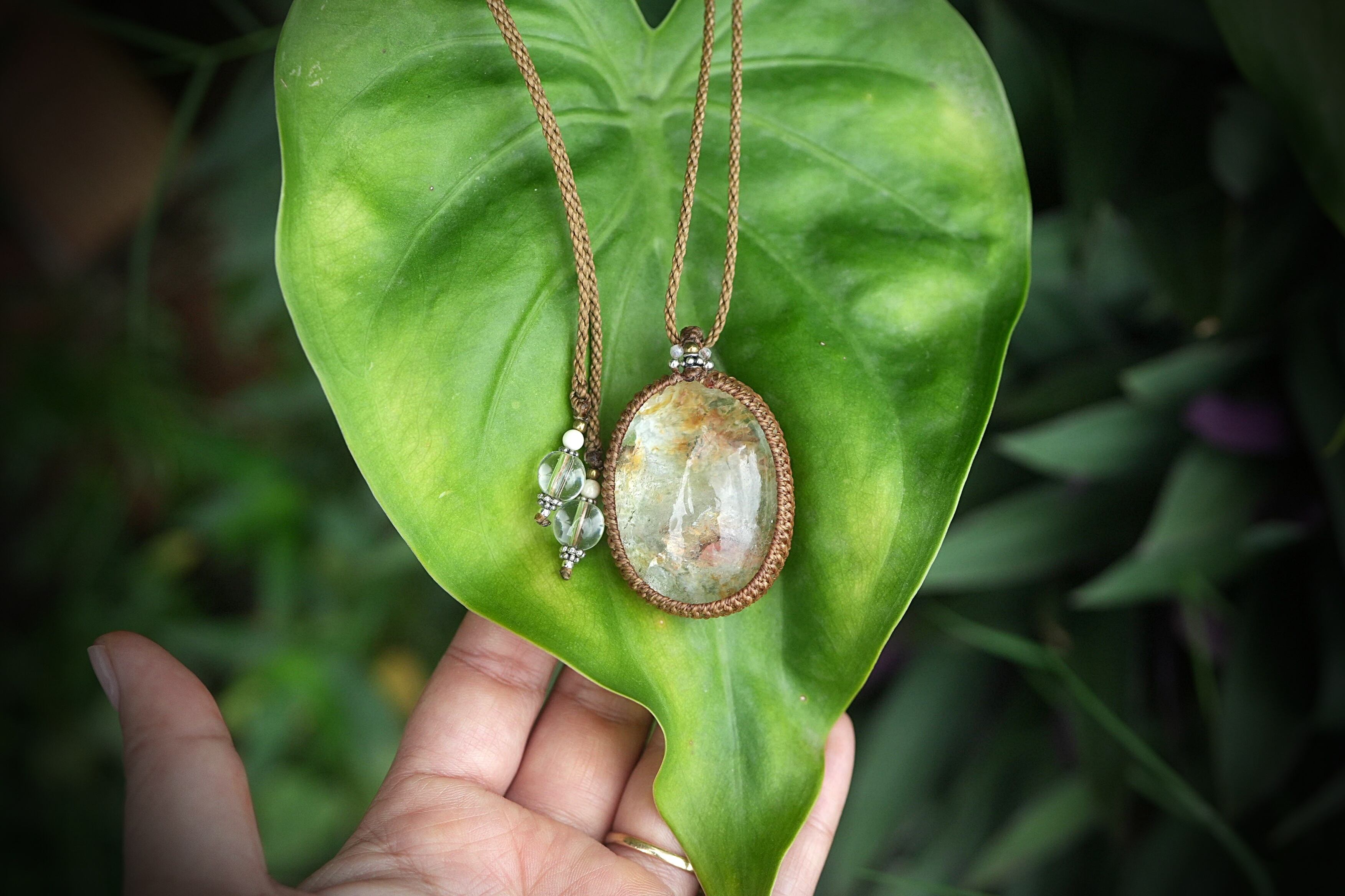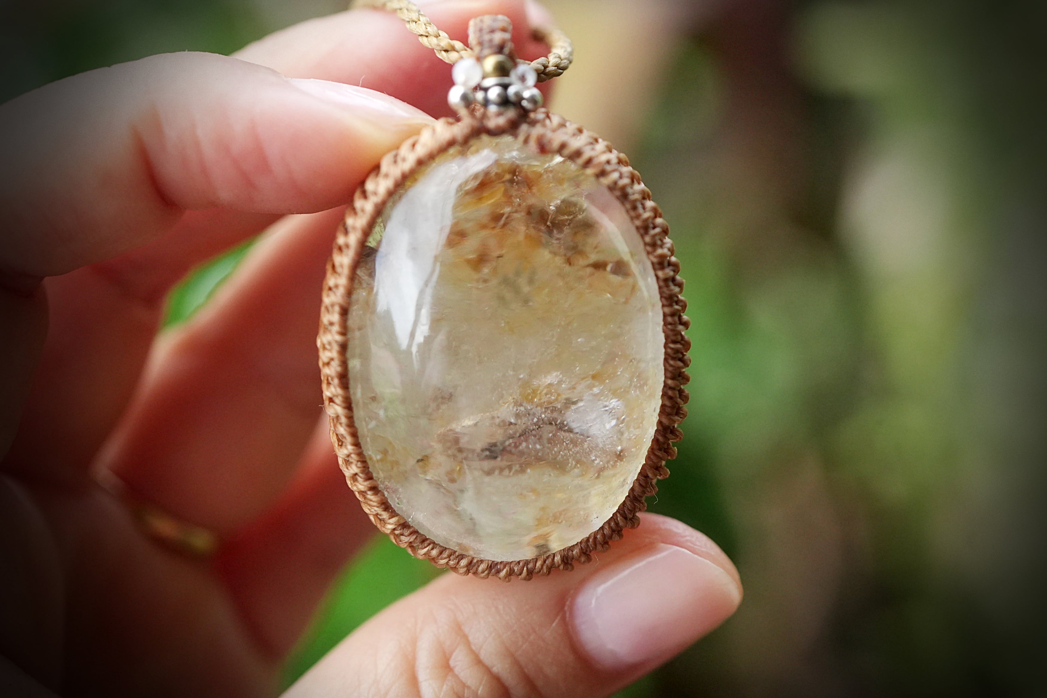 中粒キラキラ鏡と気泡★ガーデンクォーツ マクラメネックレス 1849