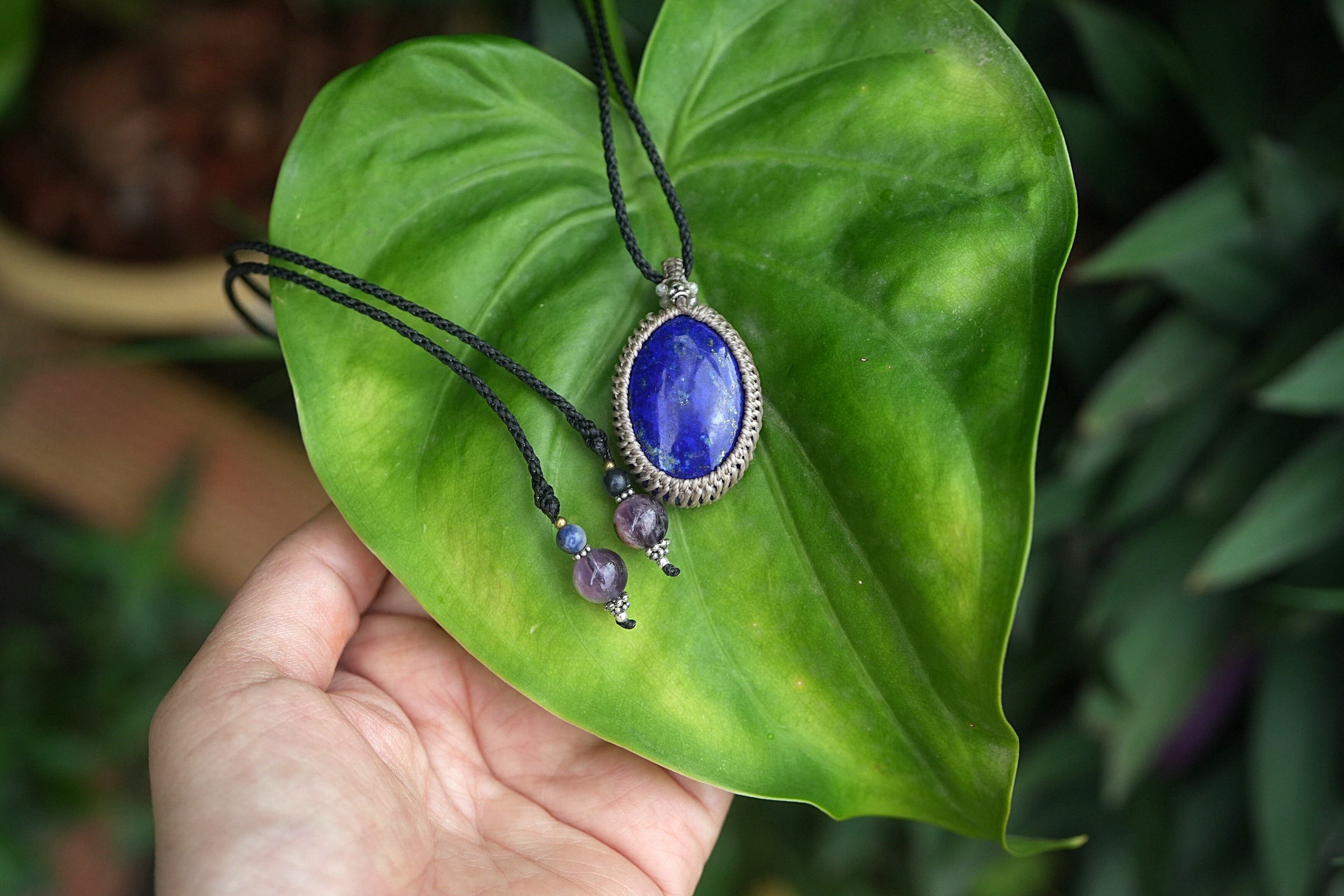 夜空の記憶★ラピスラズリ マクラメネックレス1851