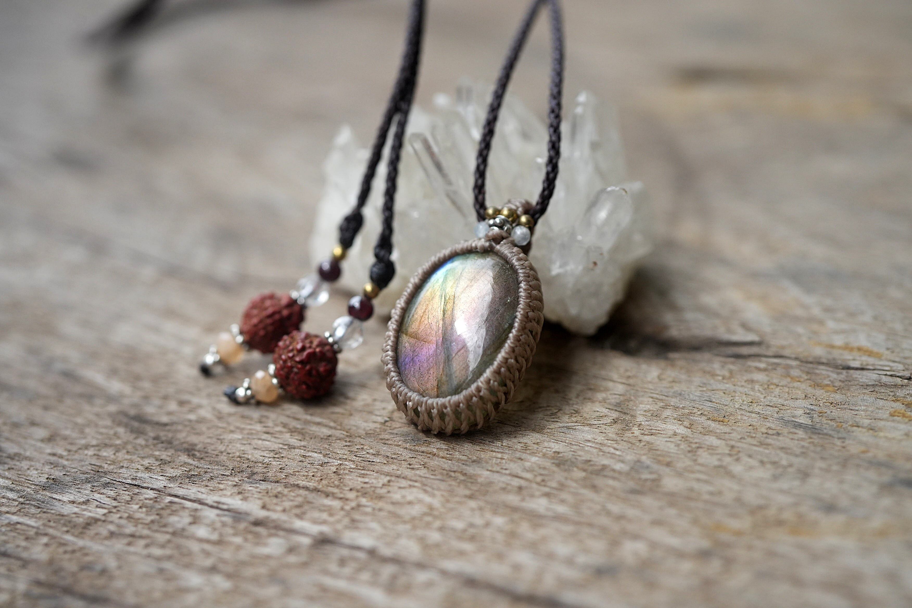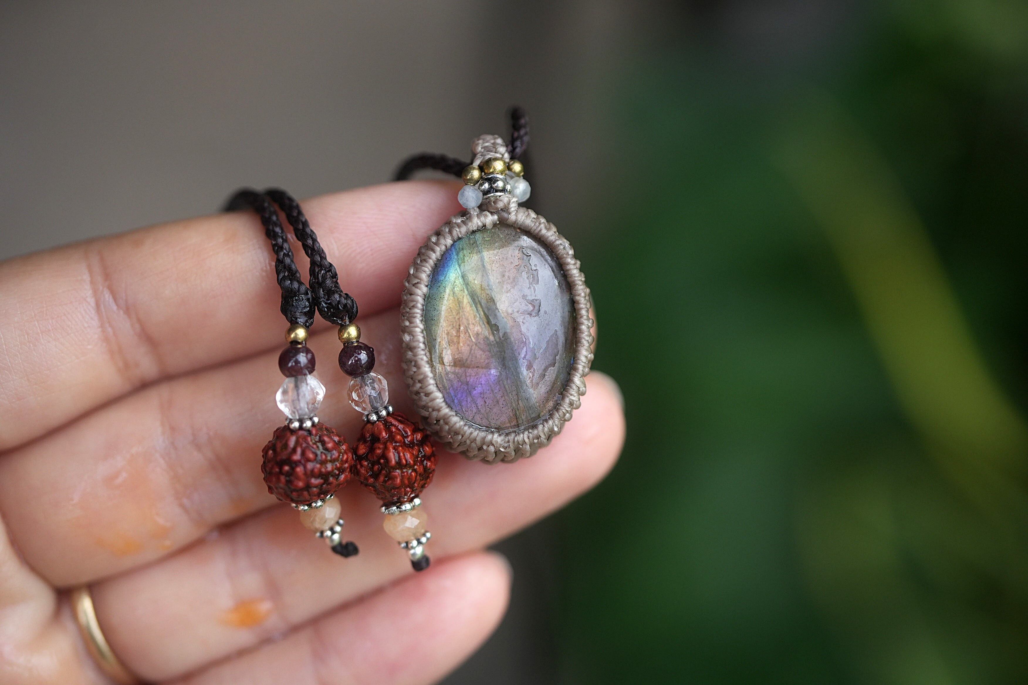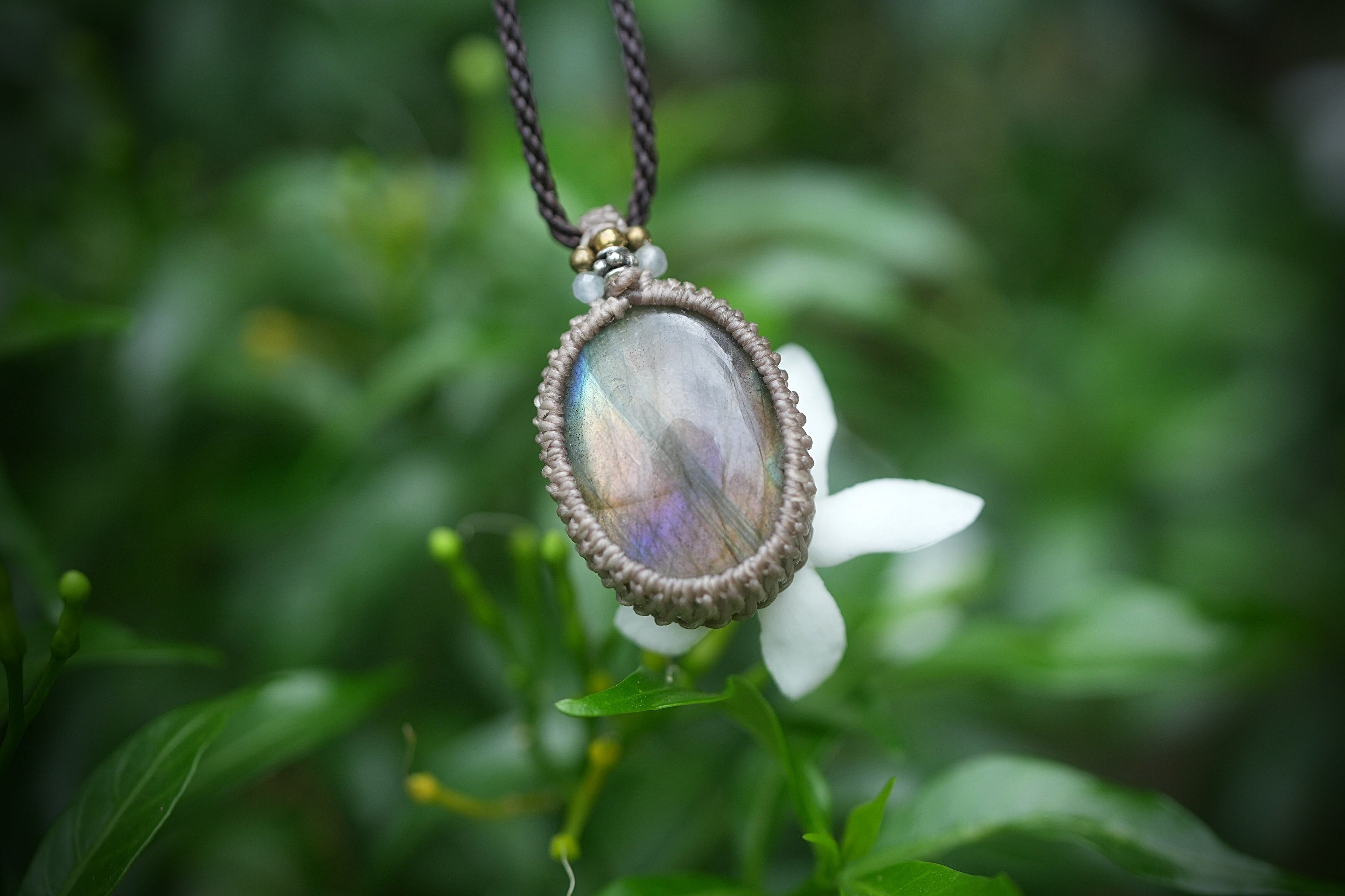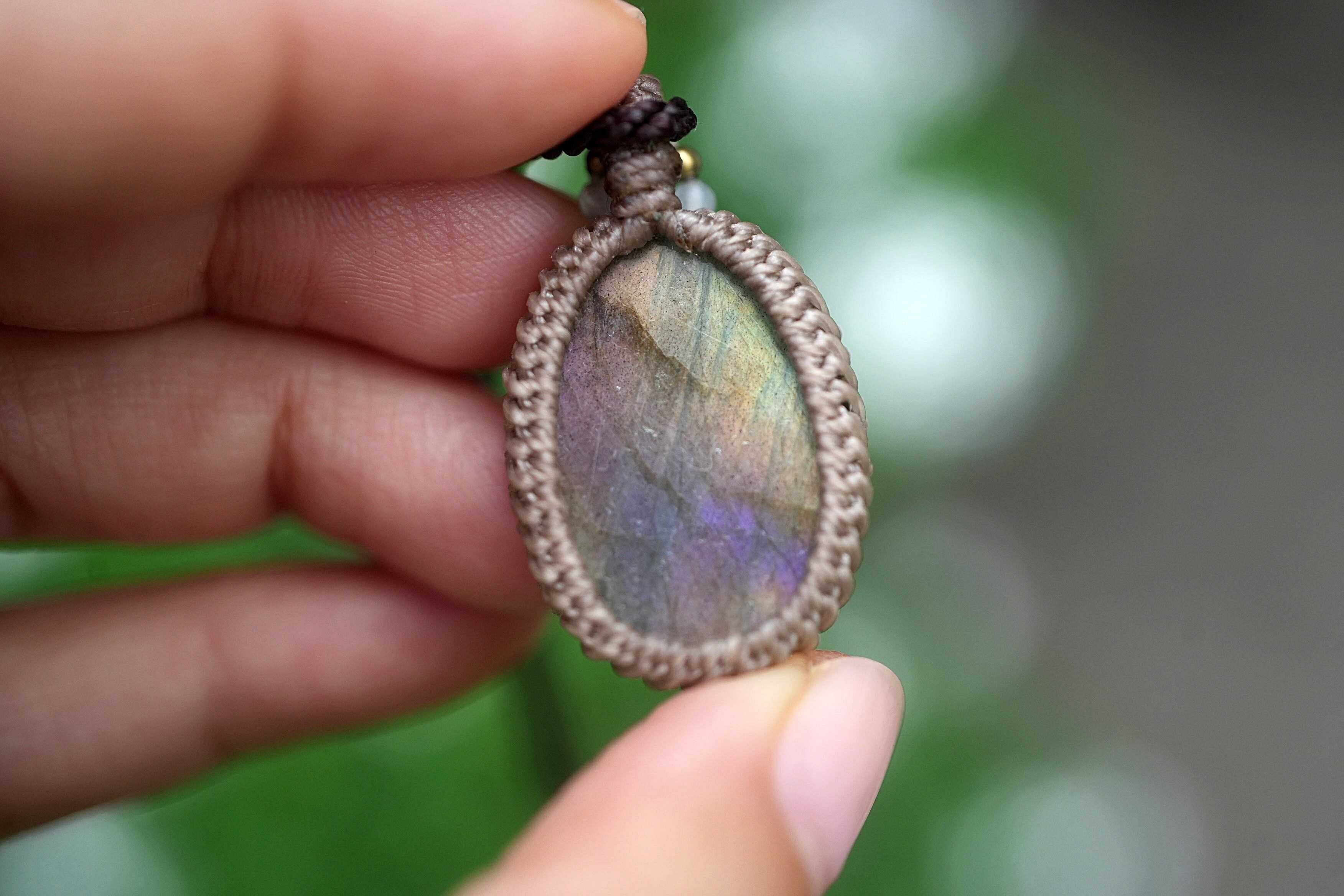 光の囁き★パープルラブラドライト マクラメネックレス1854