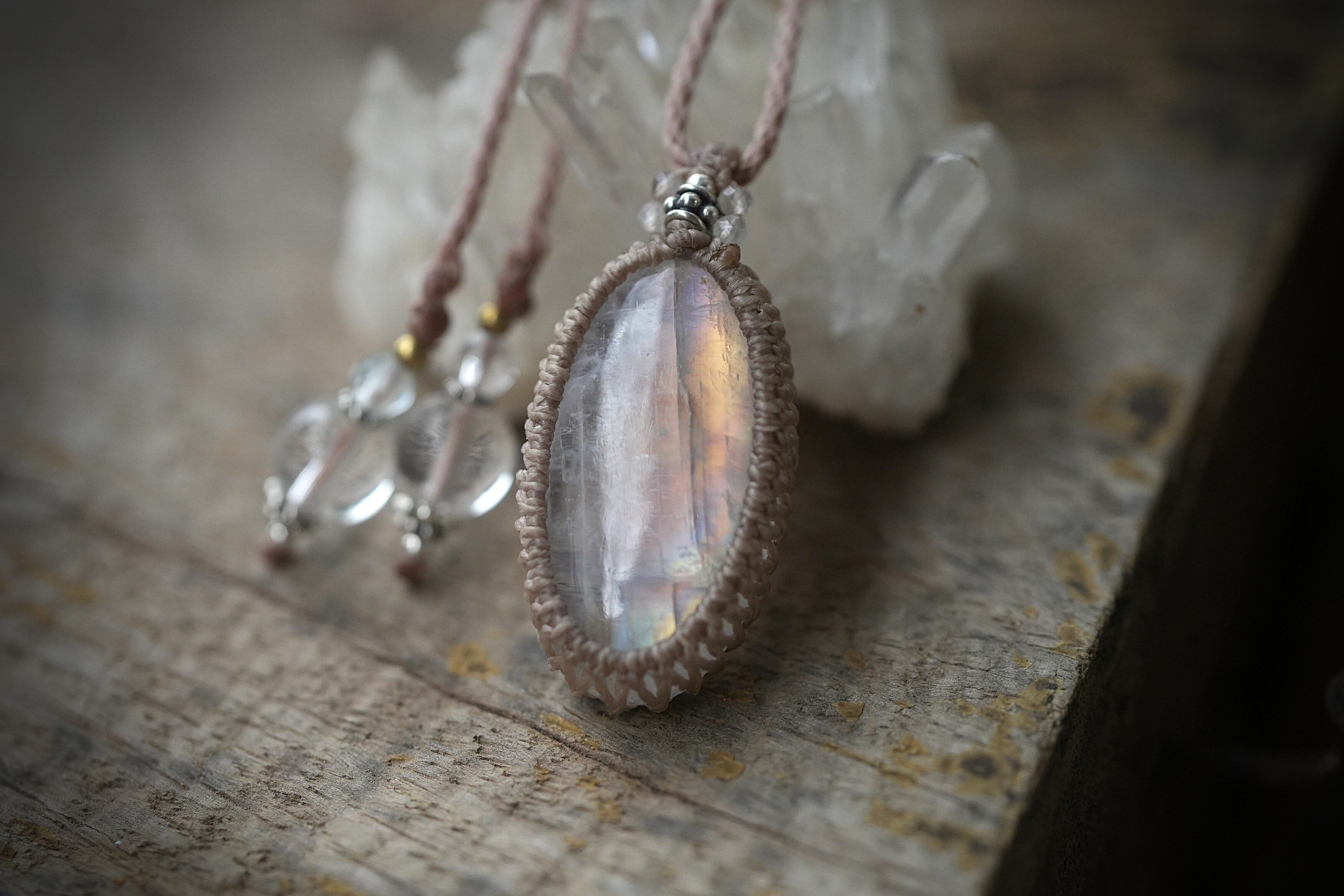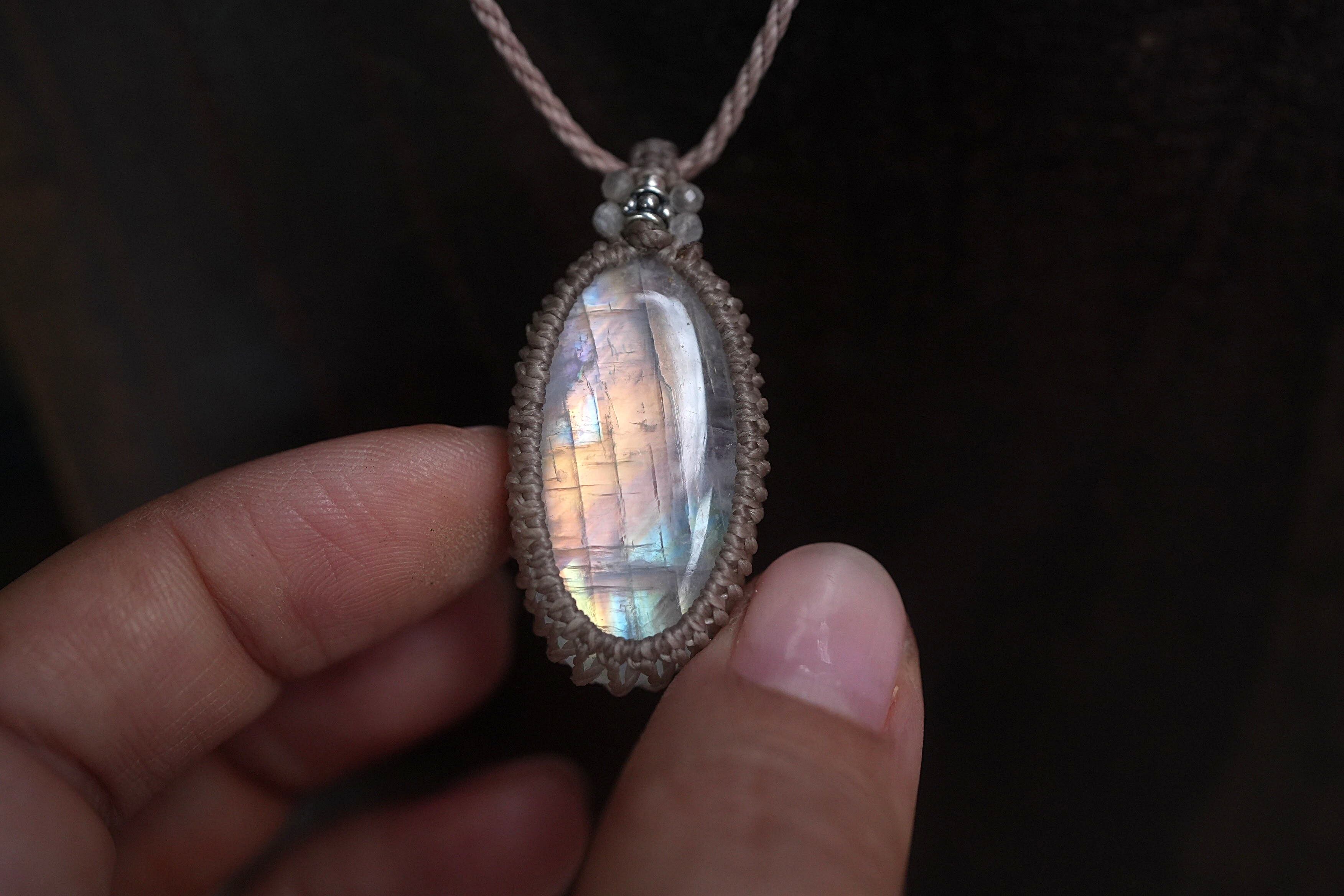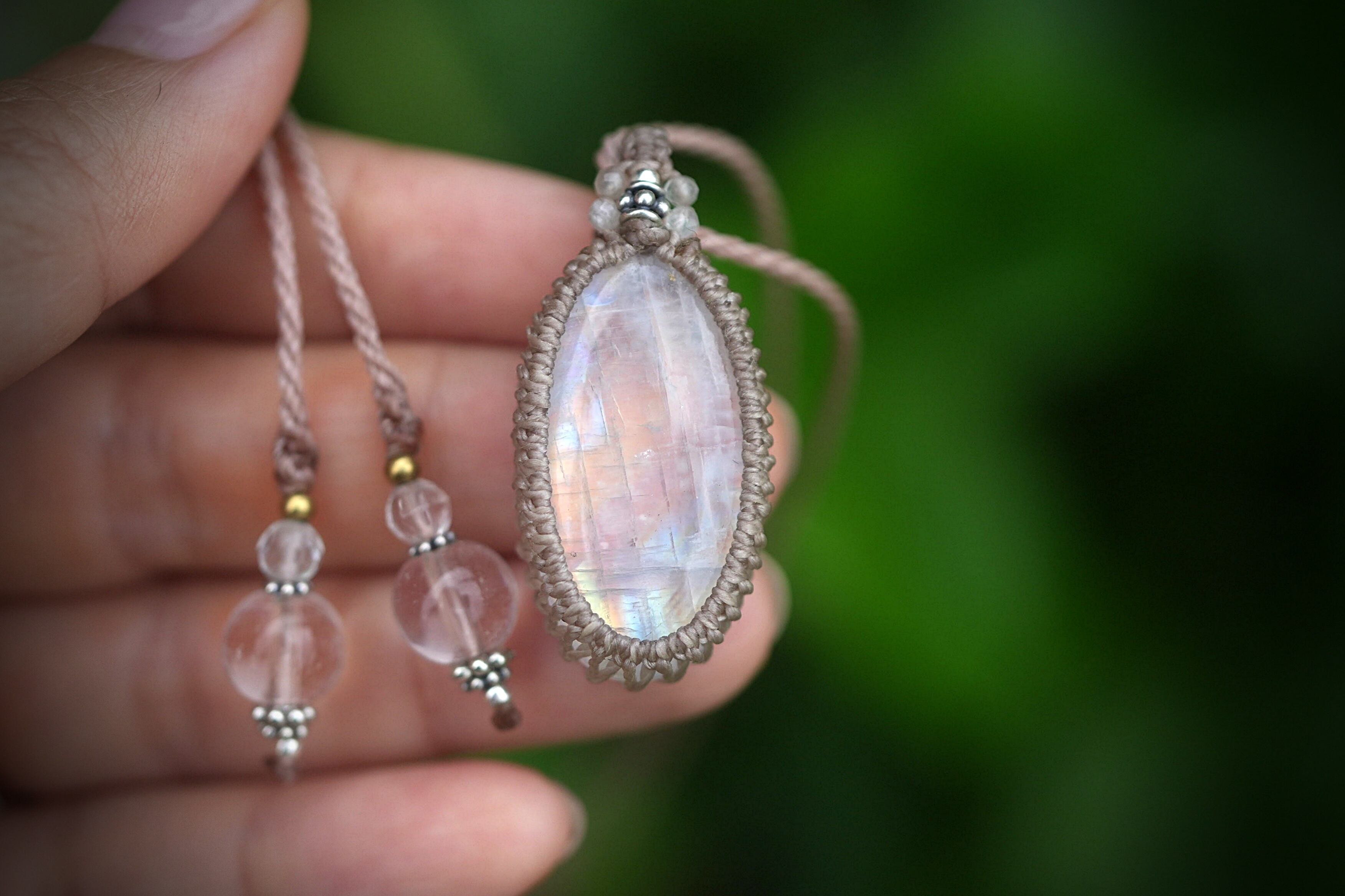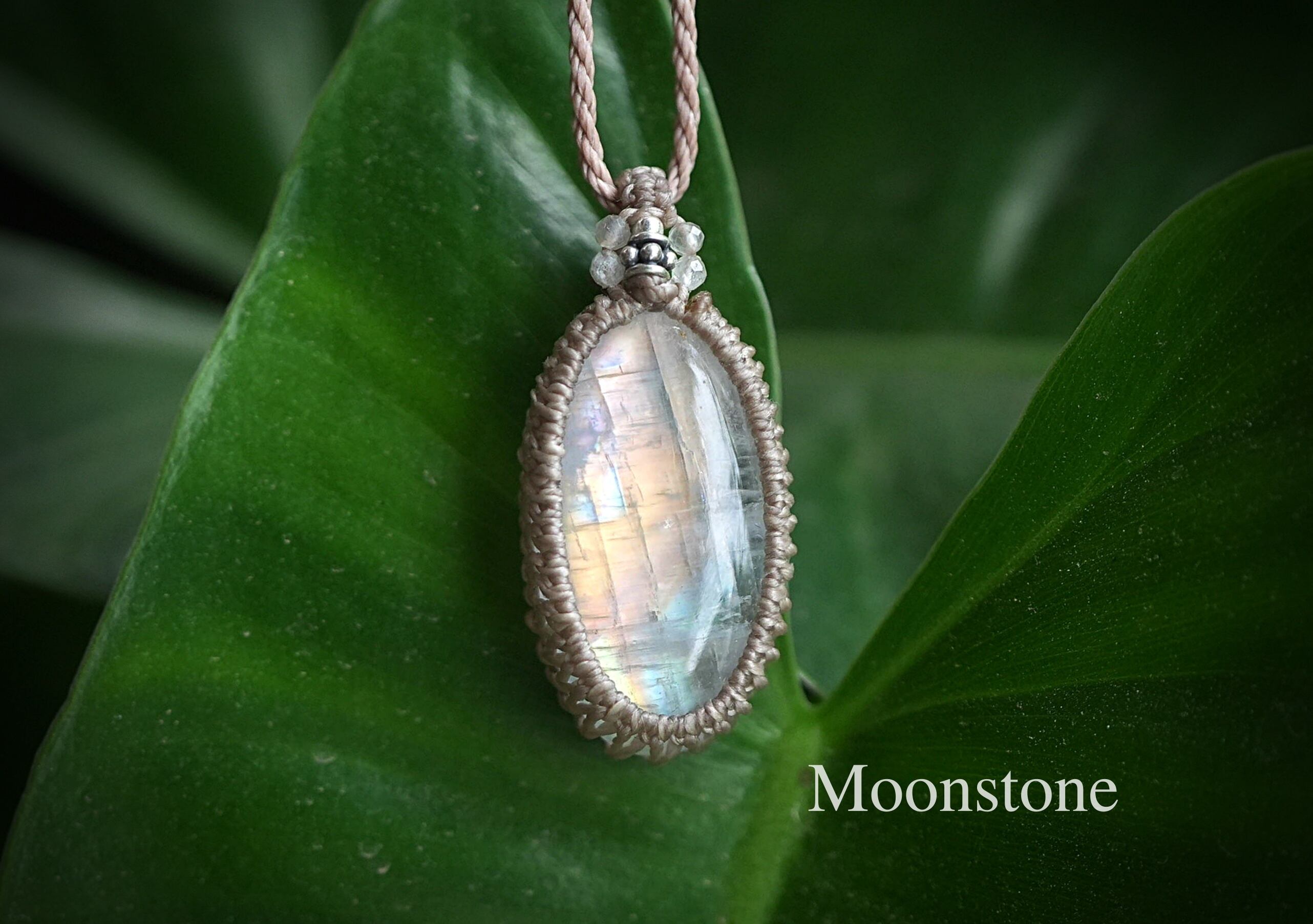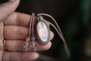 ピンク月の虹★ムーンストーン マクラメネックレス1855