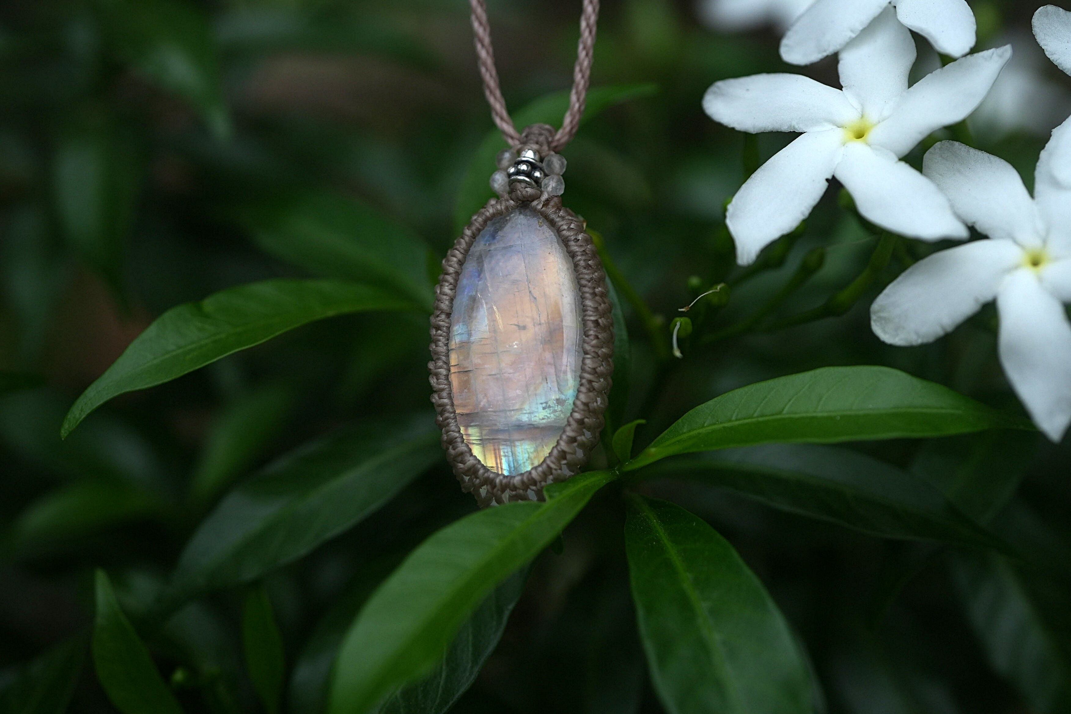 淡い光を放つムーンストーンネックレス