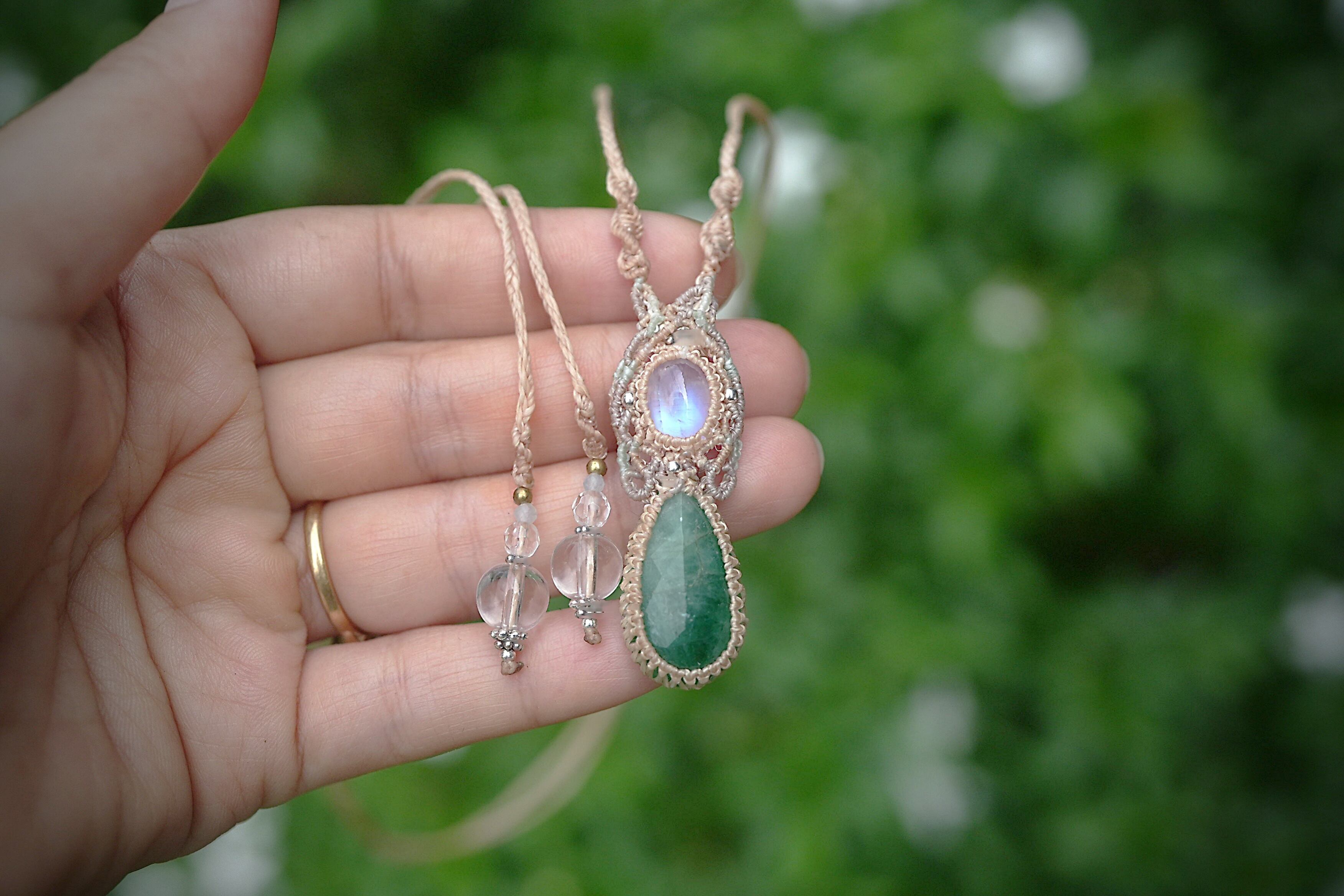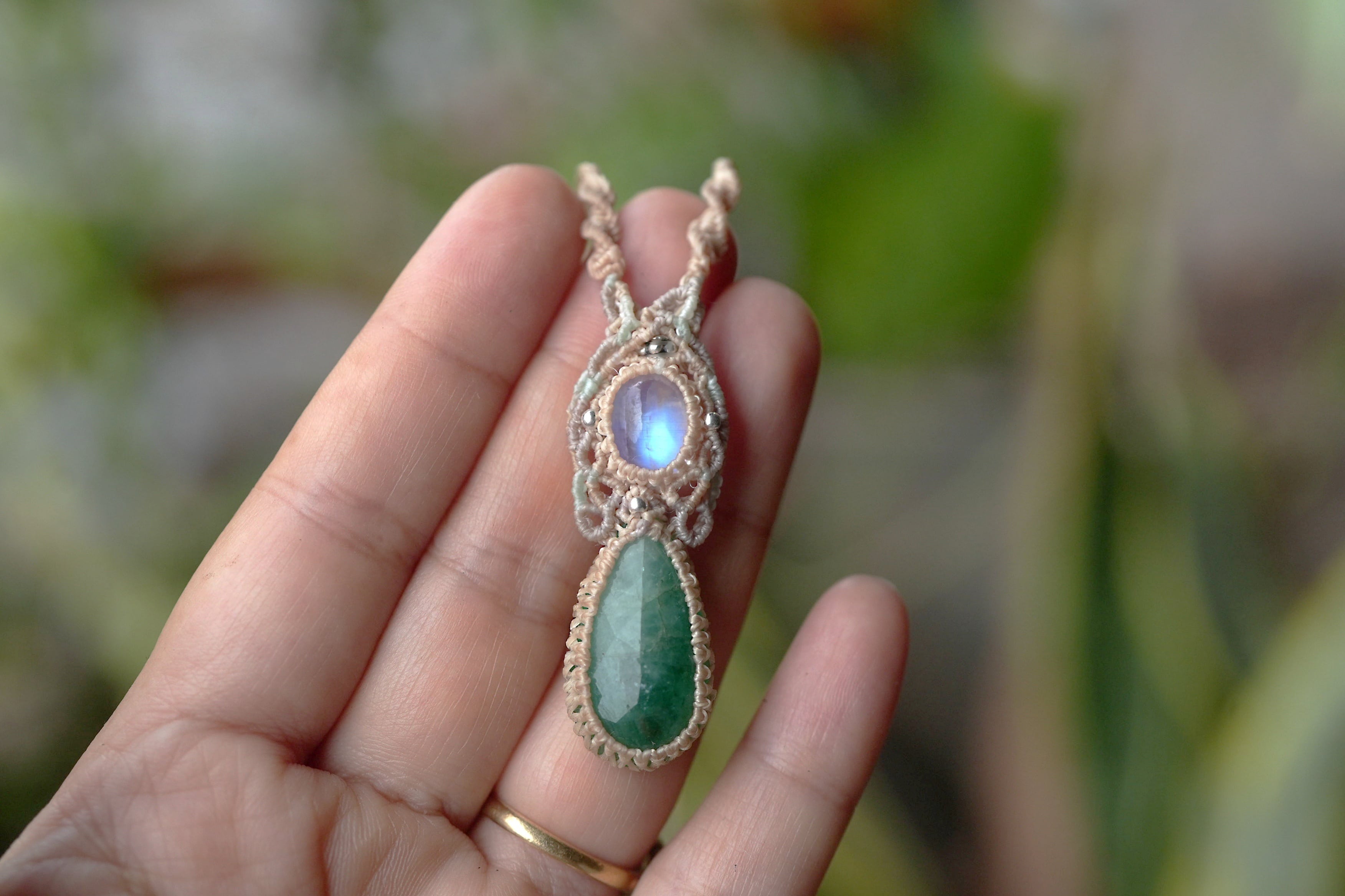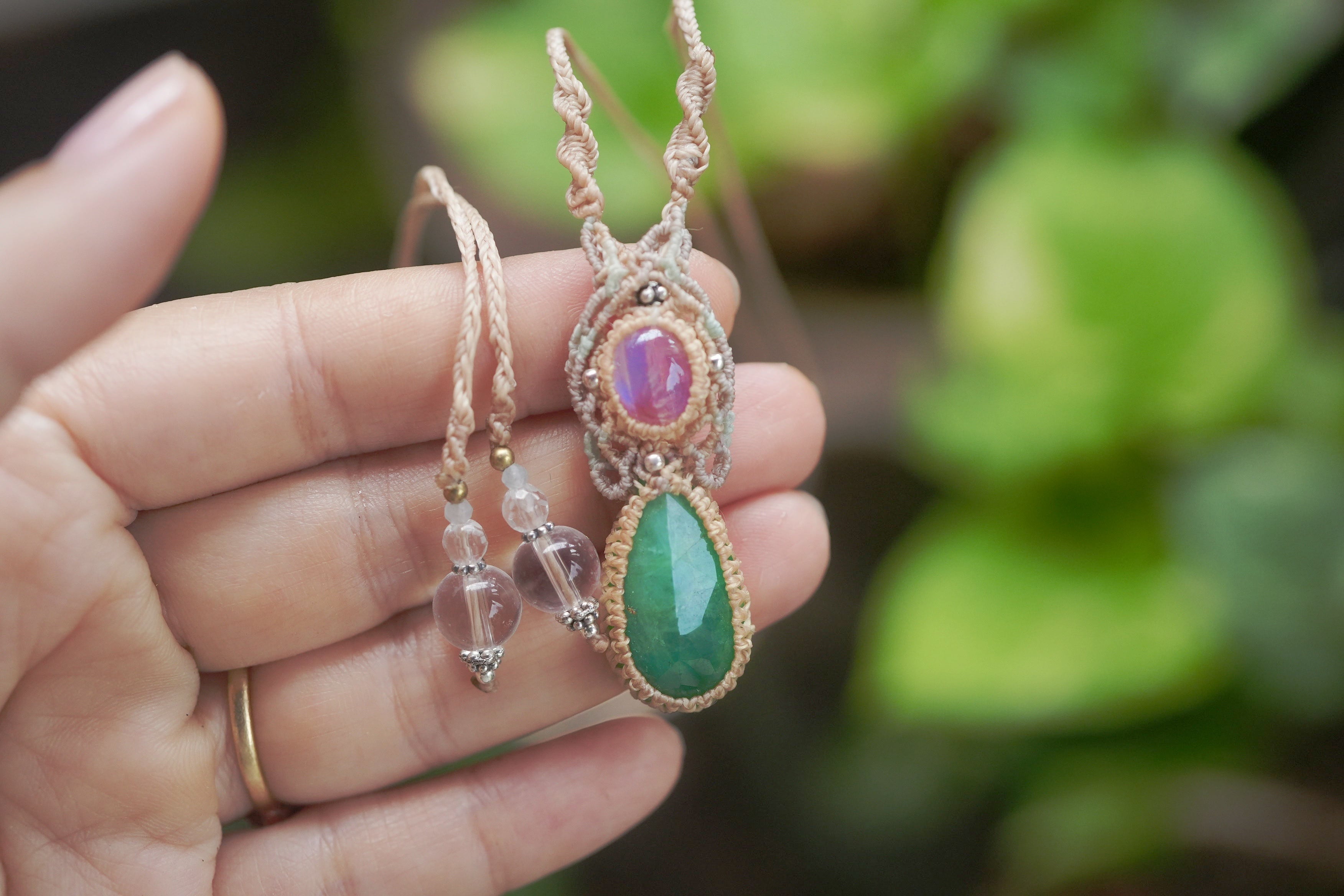 幻グラデーション★宝石 エメラルド★マクラメネックレス1859