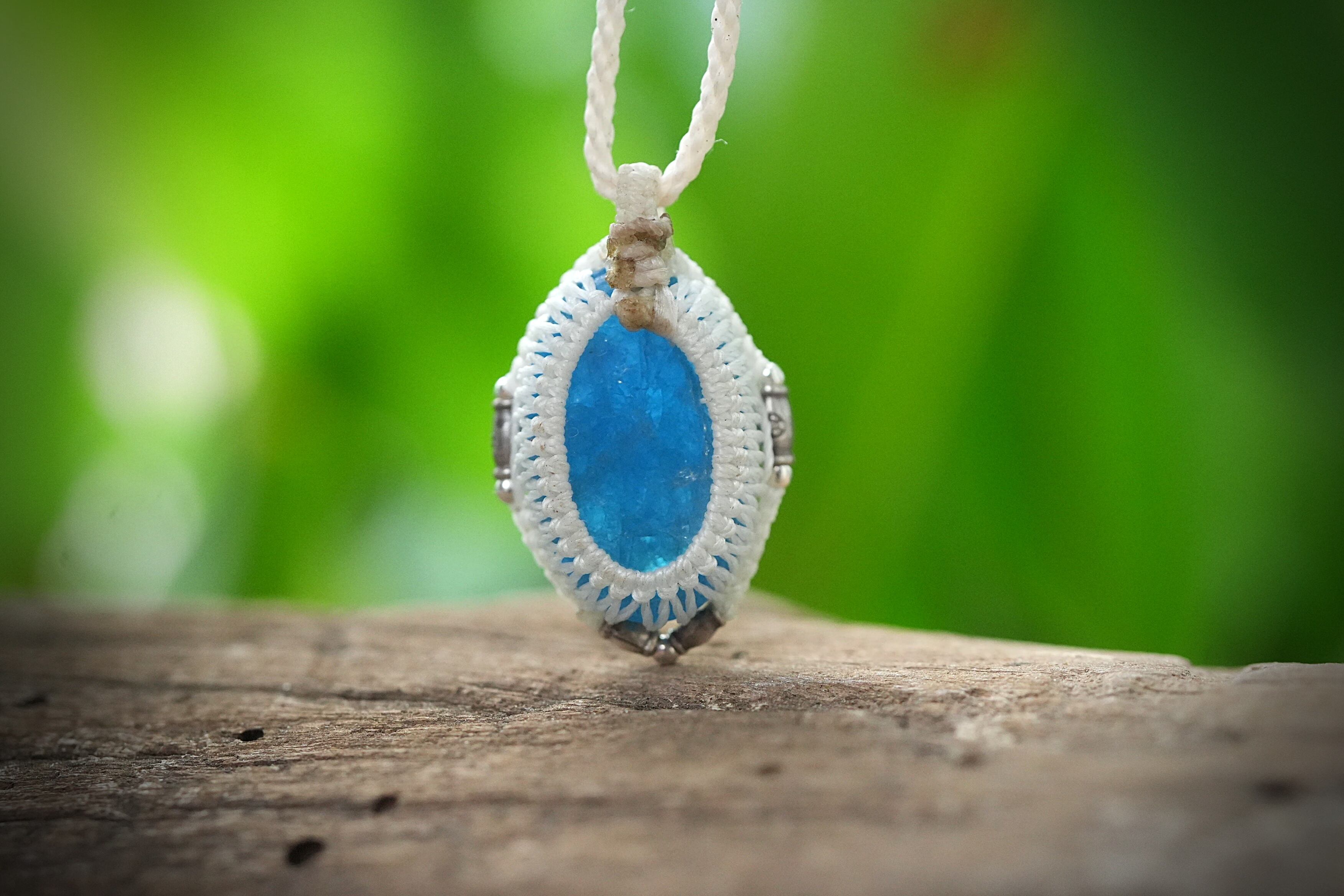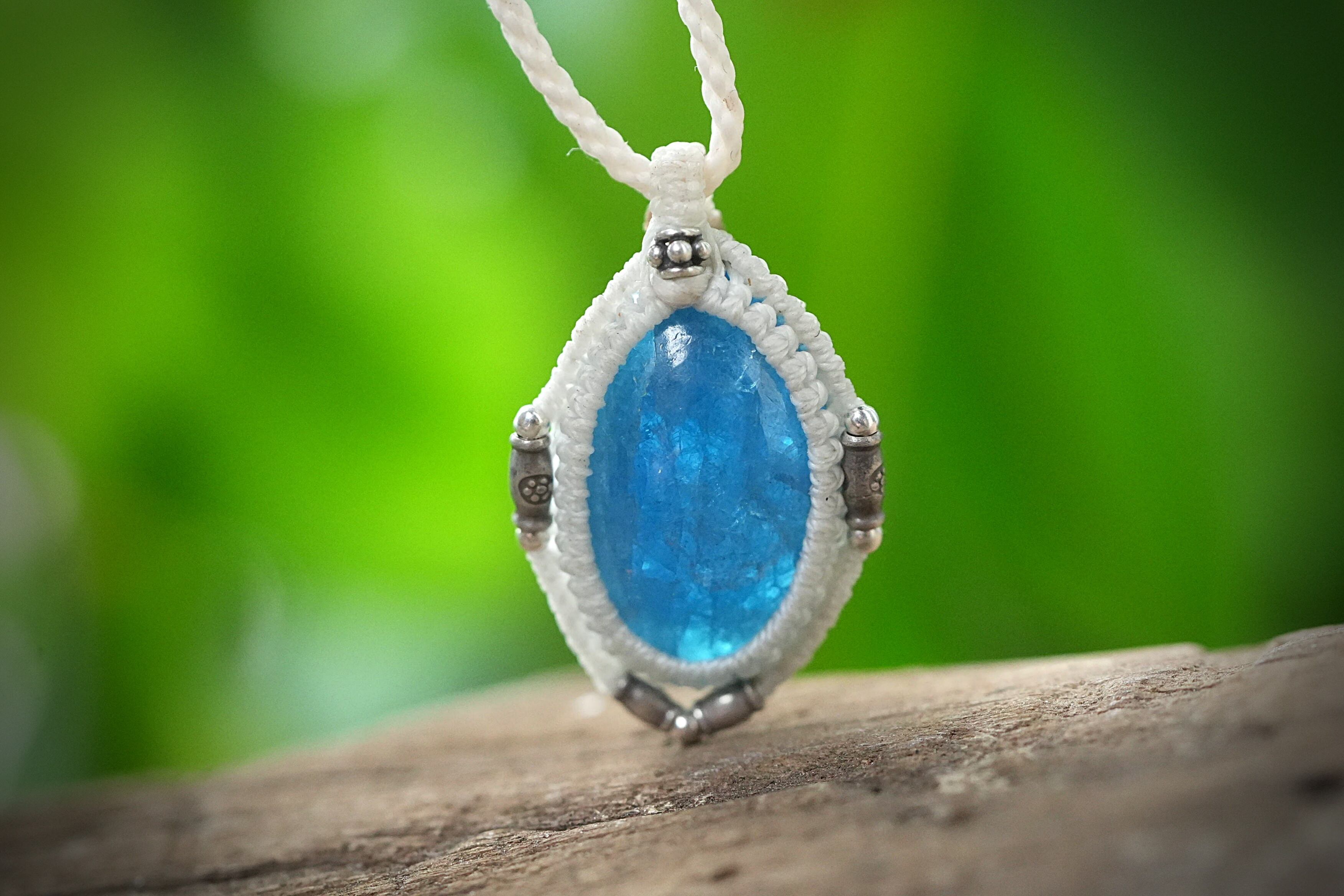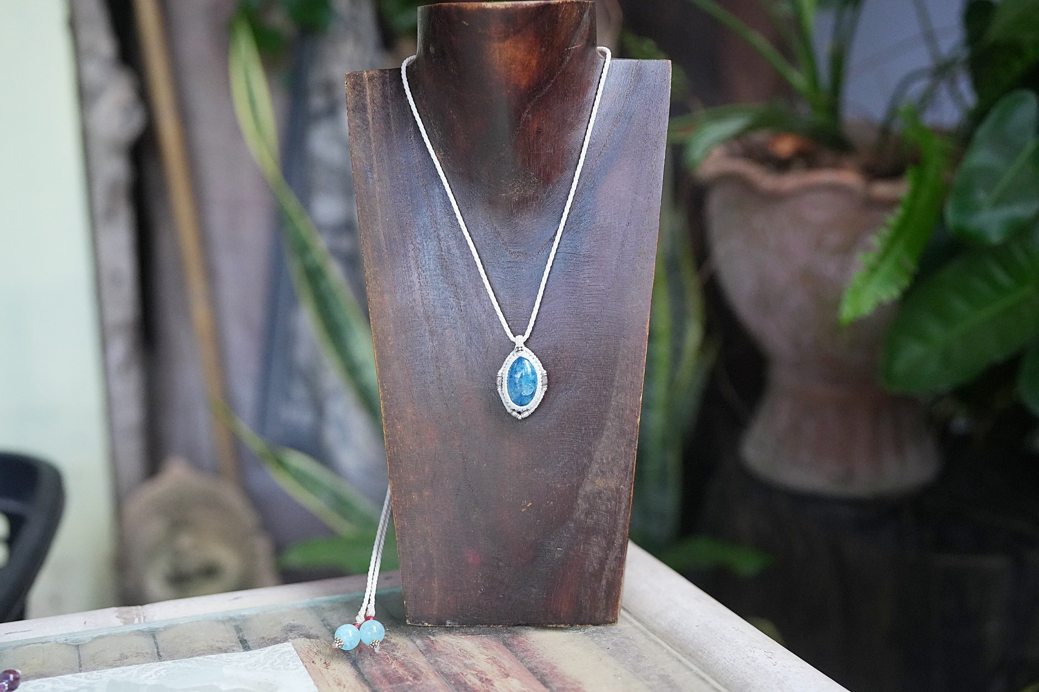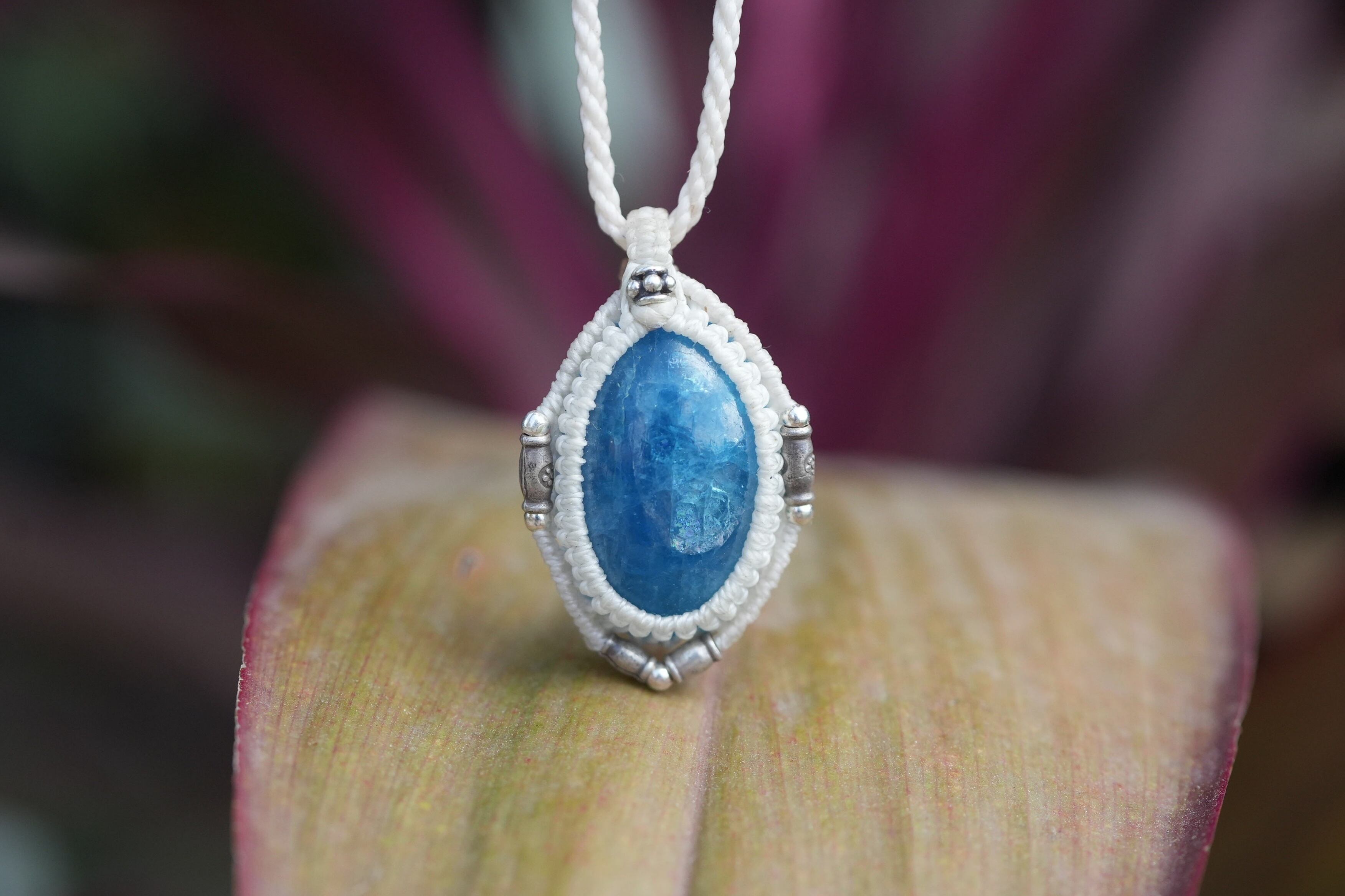 ほんのり虹入り★ブルーアパタイト マクラメネックレス1870