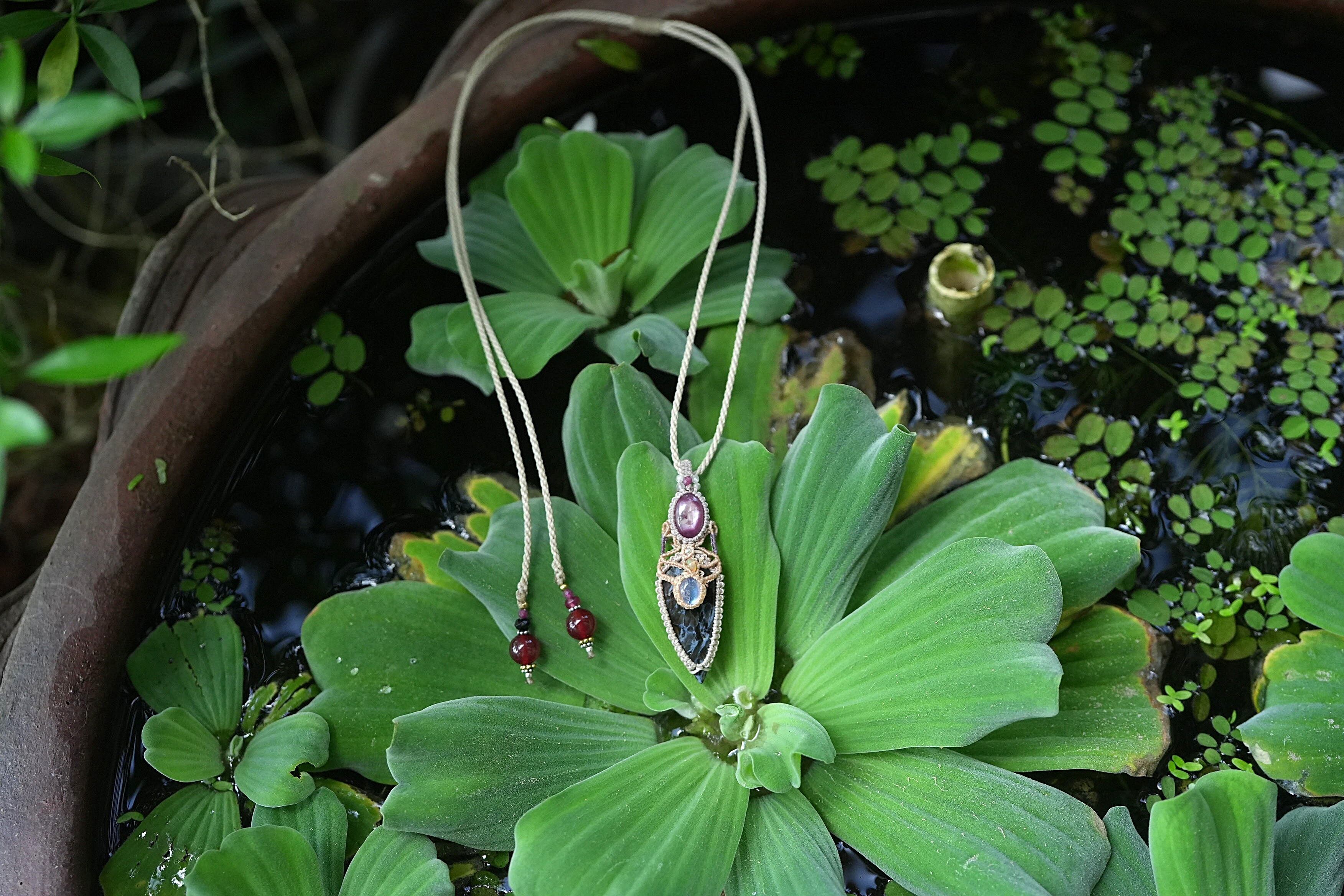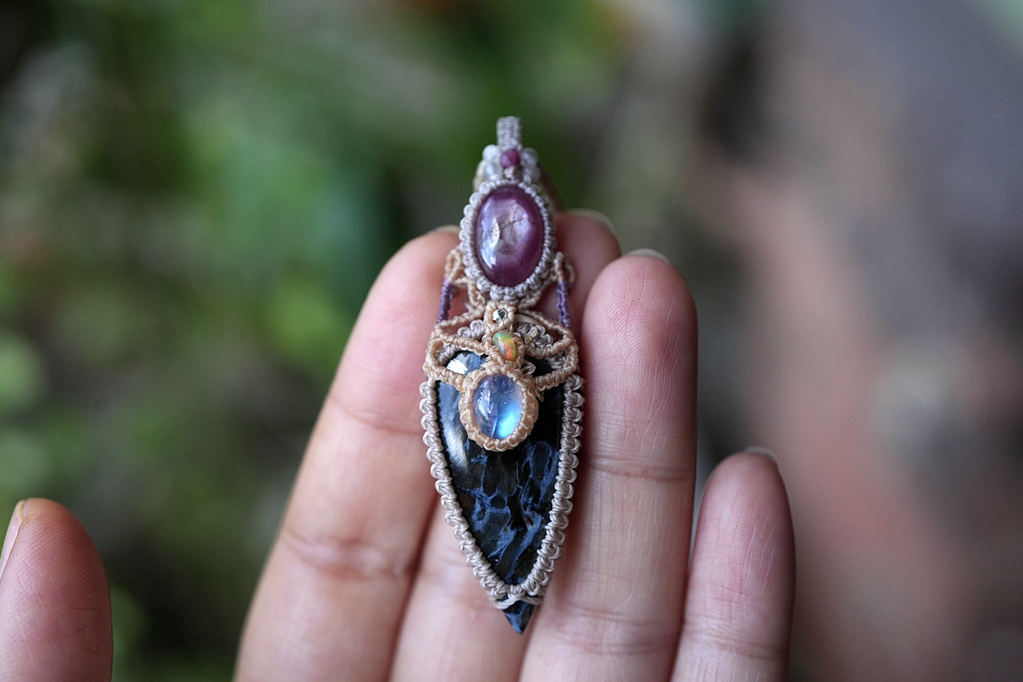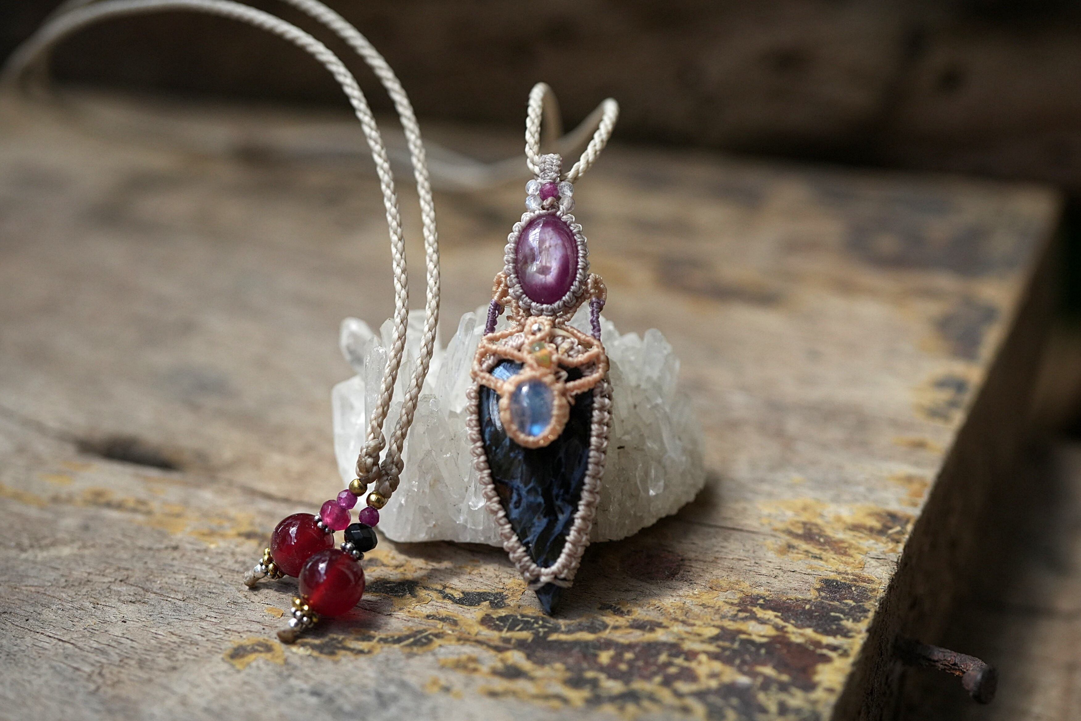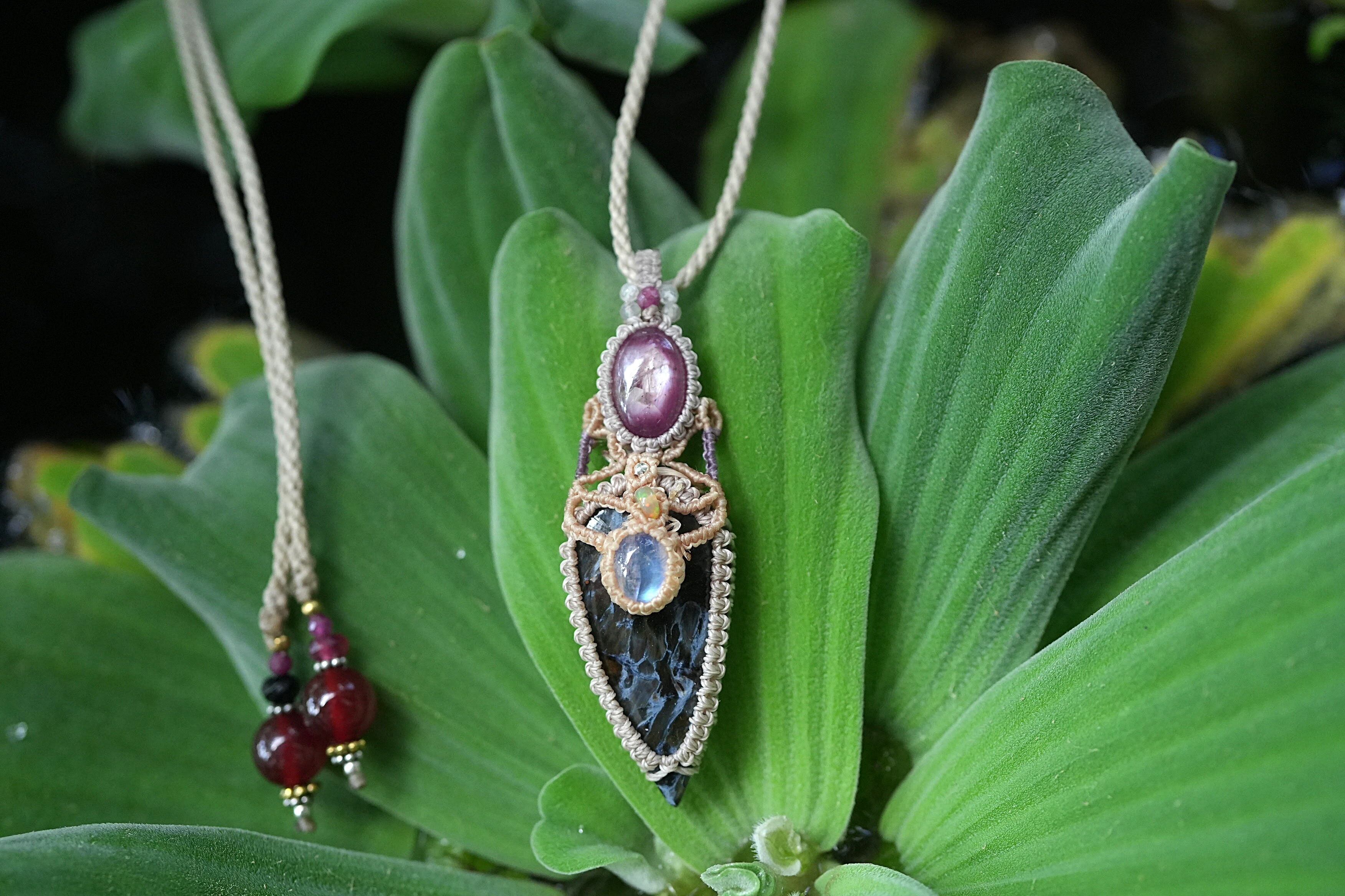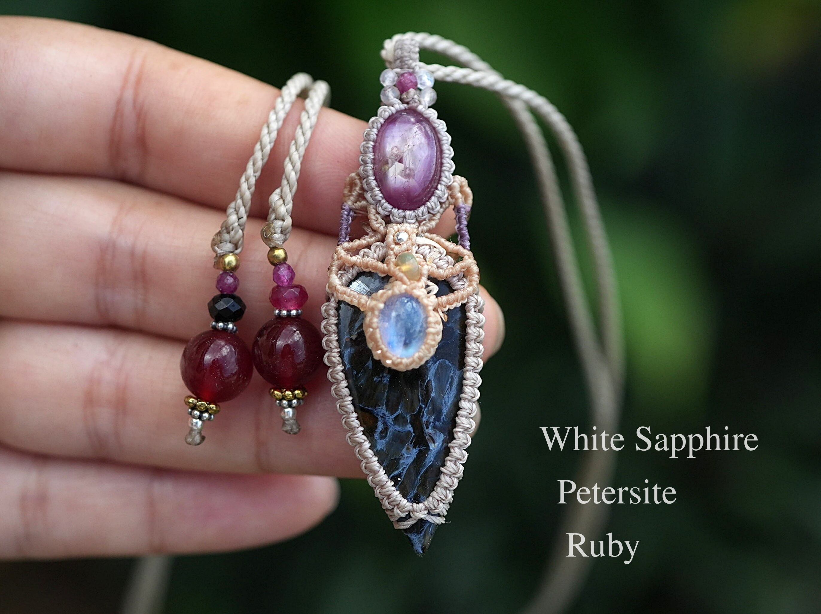 ★Ruby Moonstoneピーターサイト マクラメネックレス1872