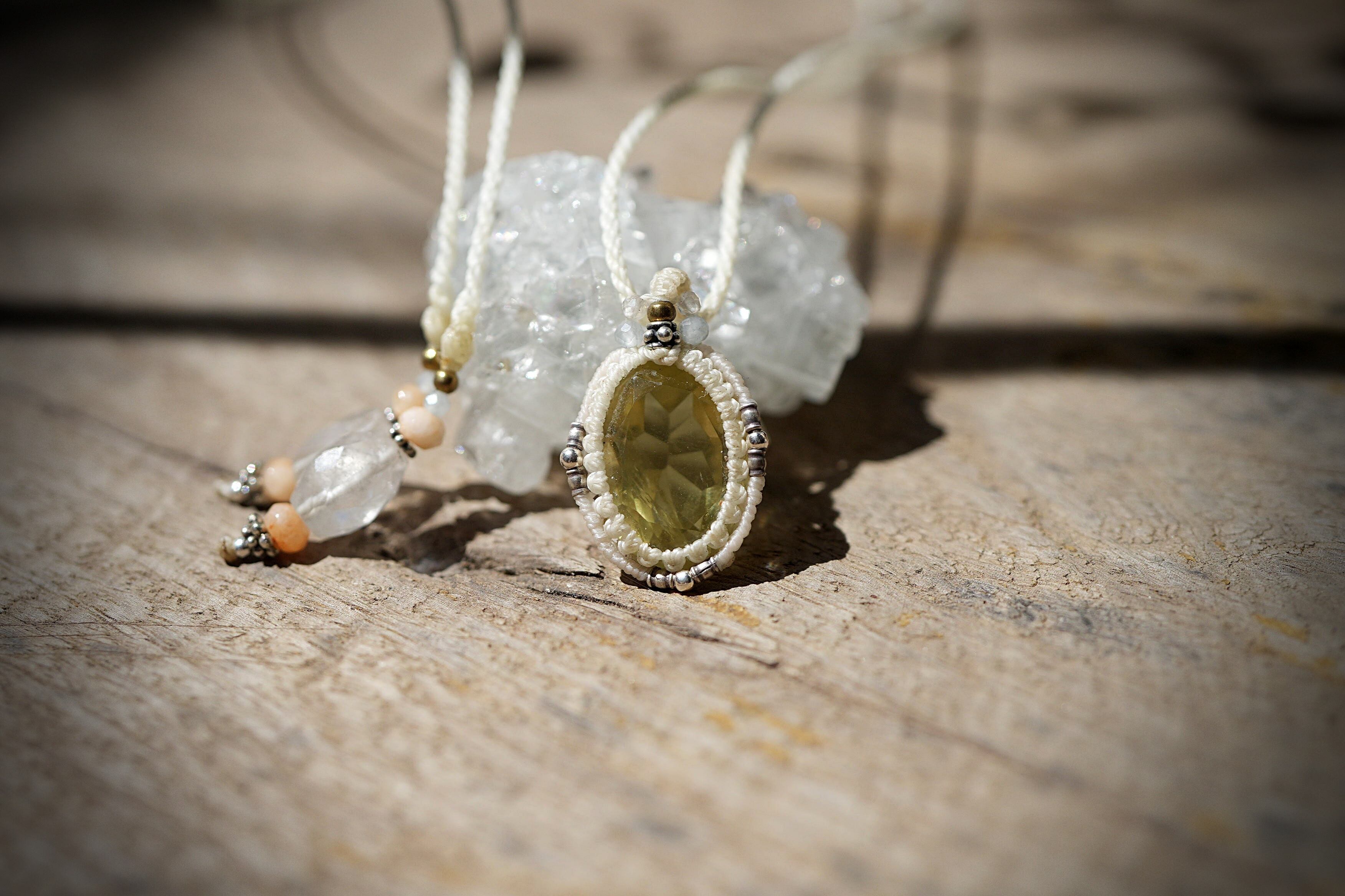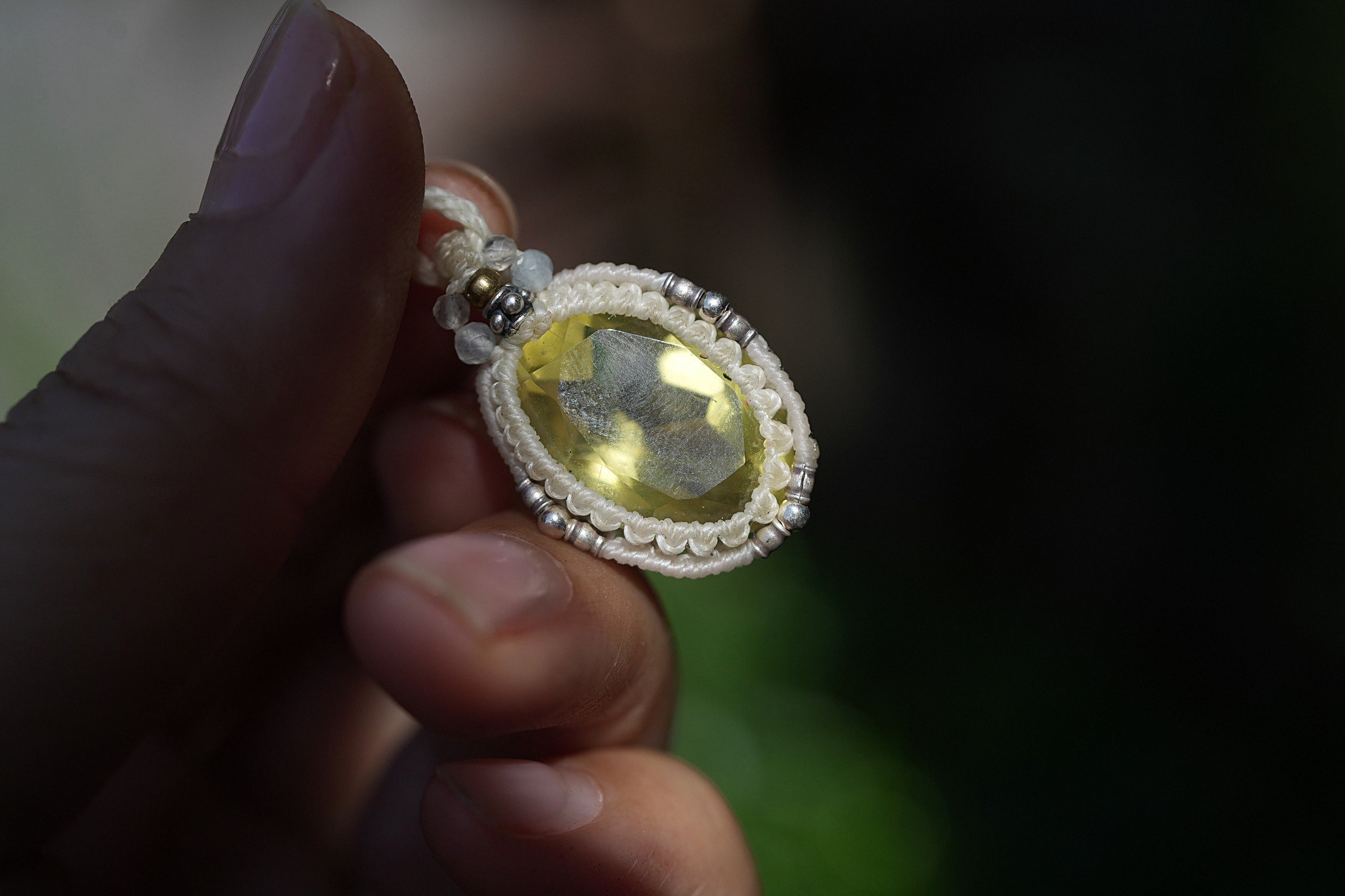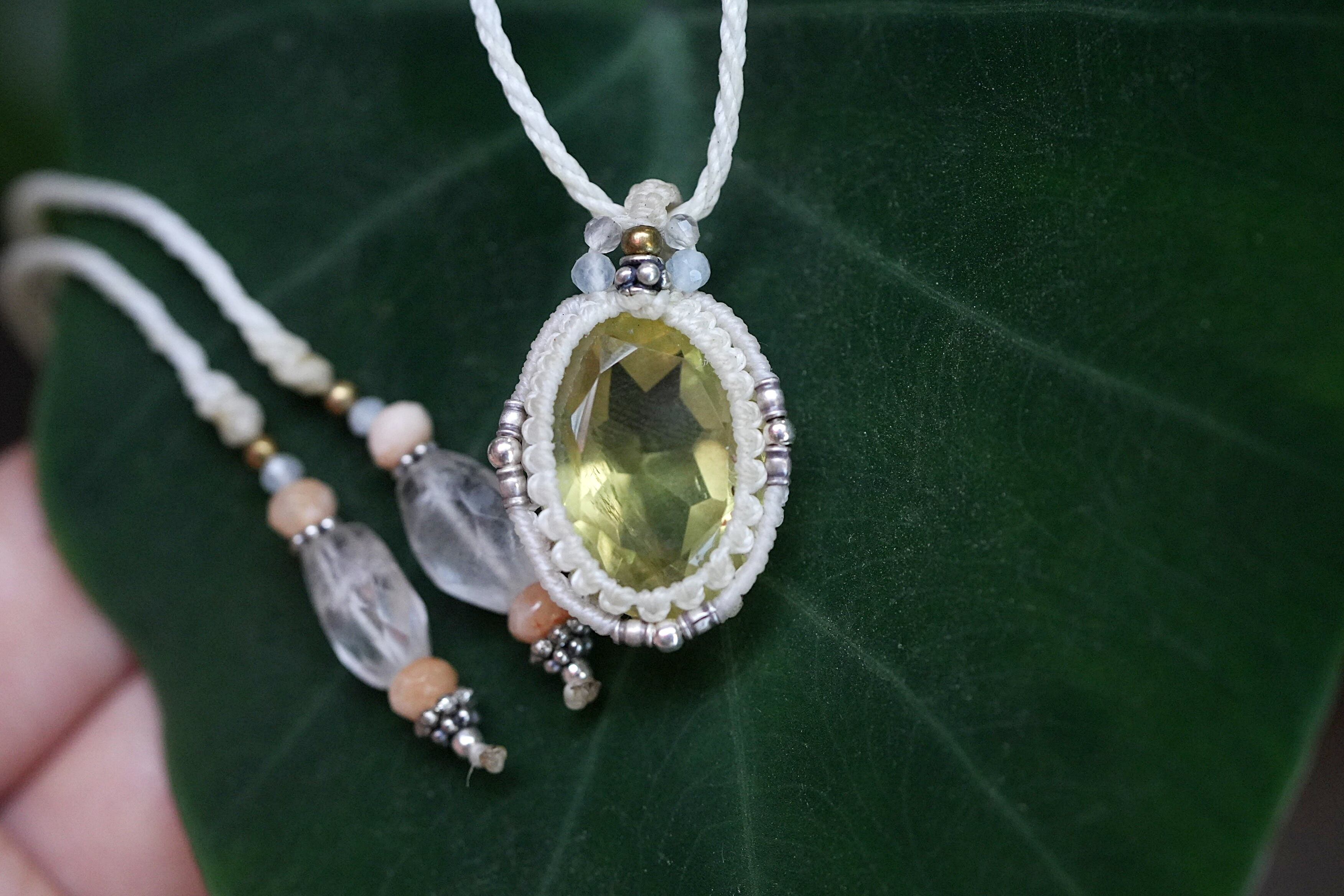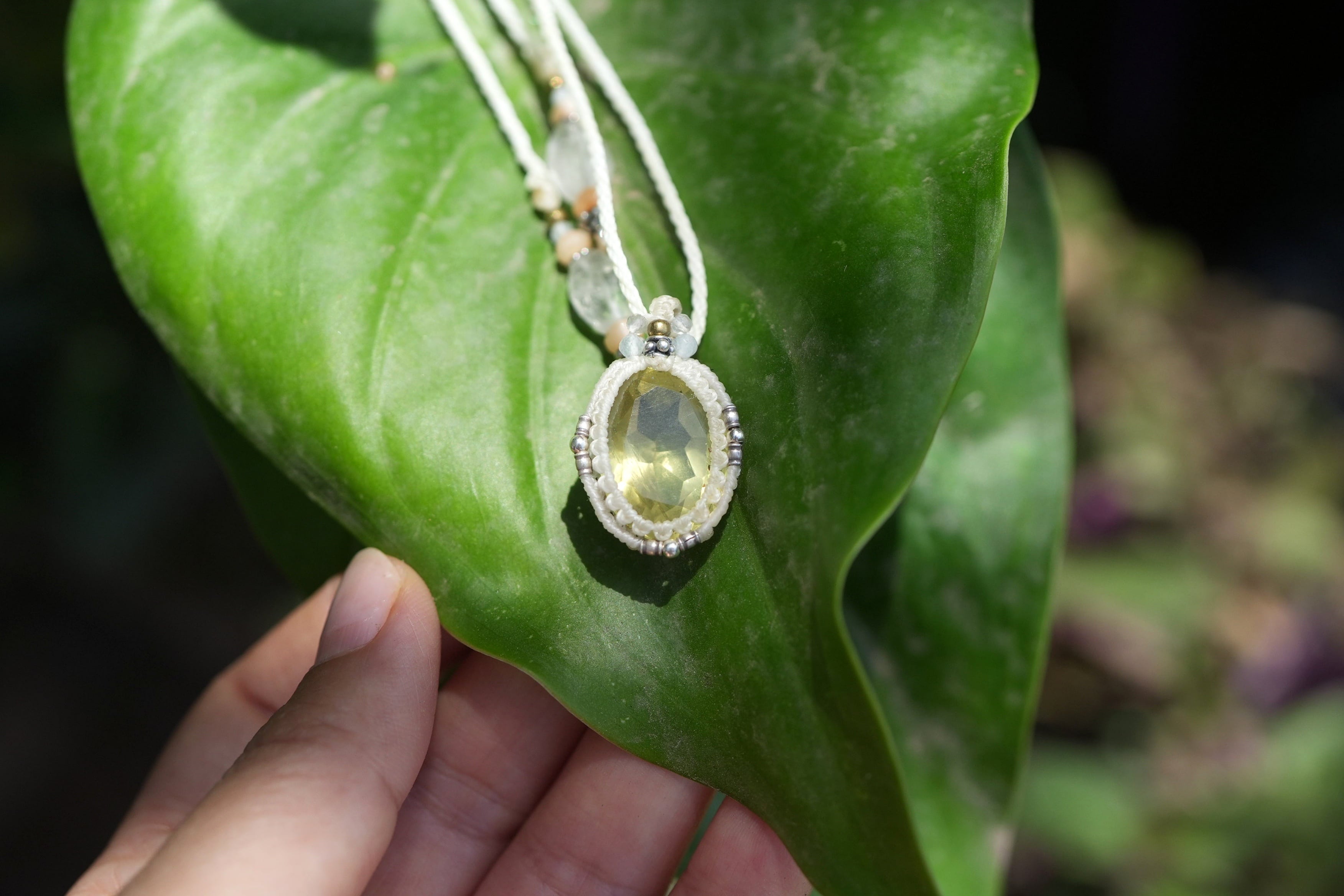 爽やか★ファセットカット レモンクォーツマクラメネックレス1876