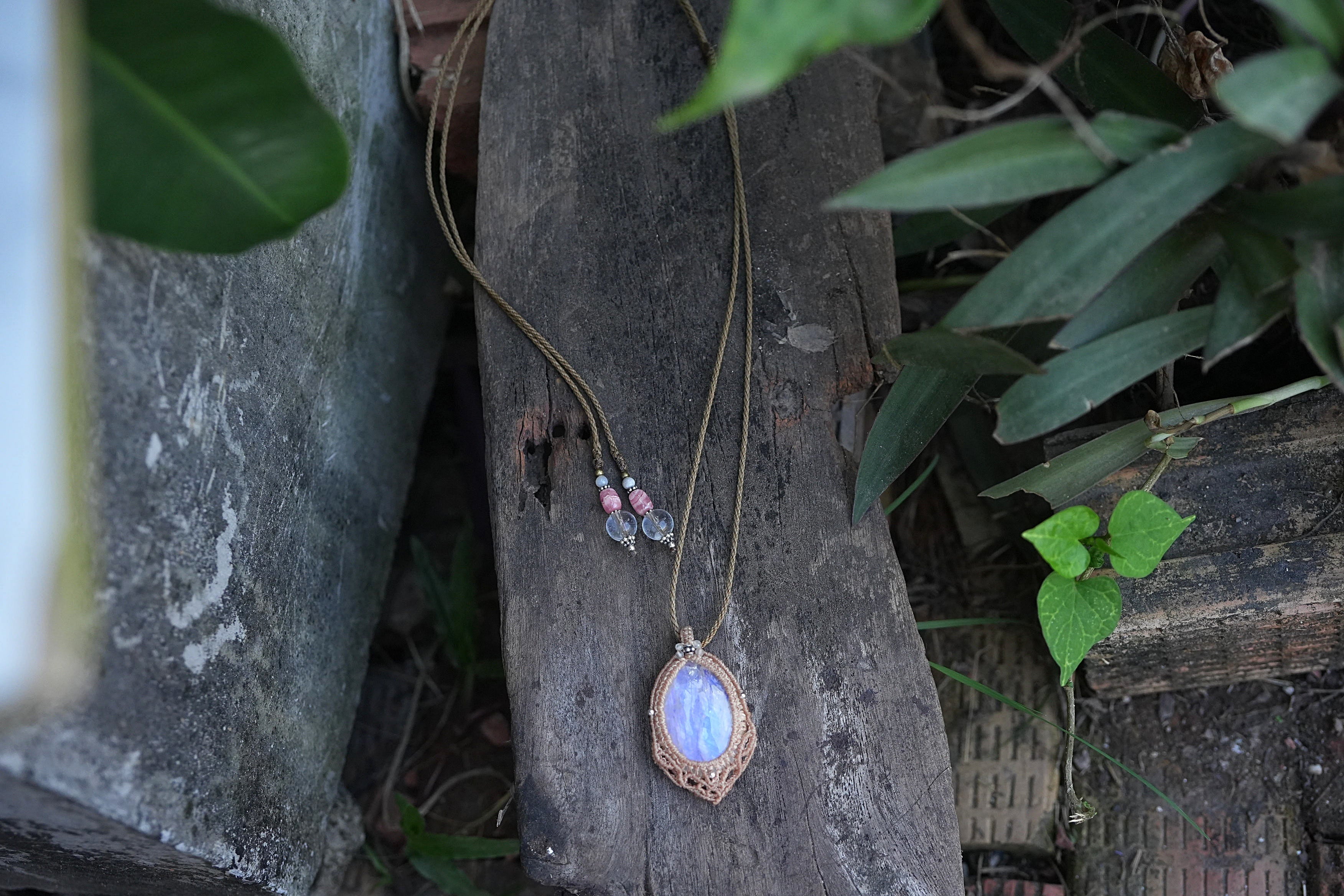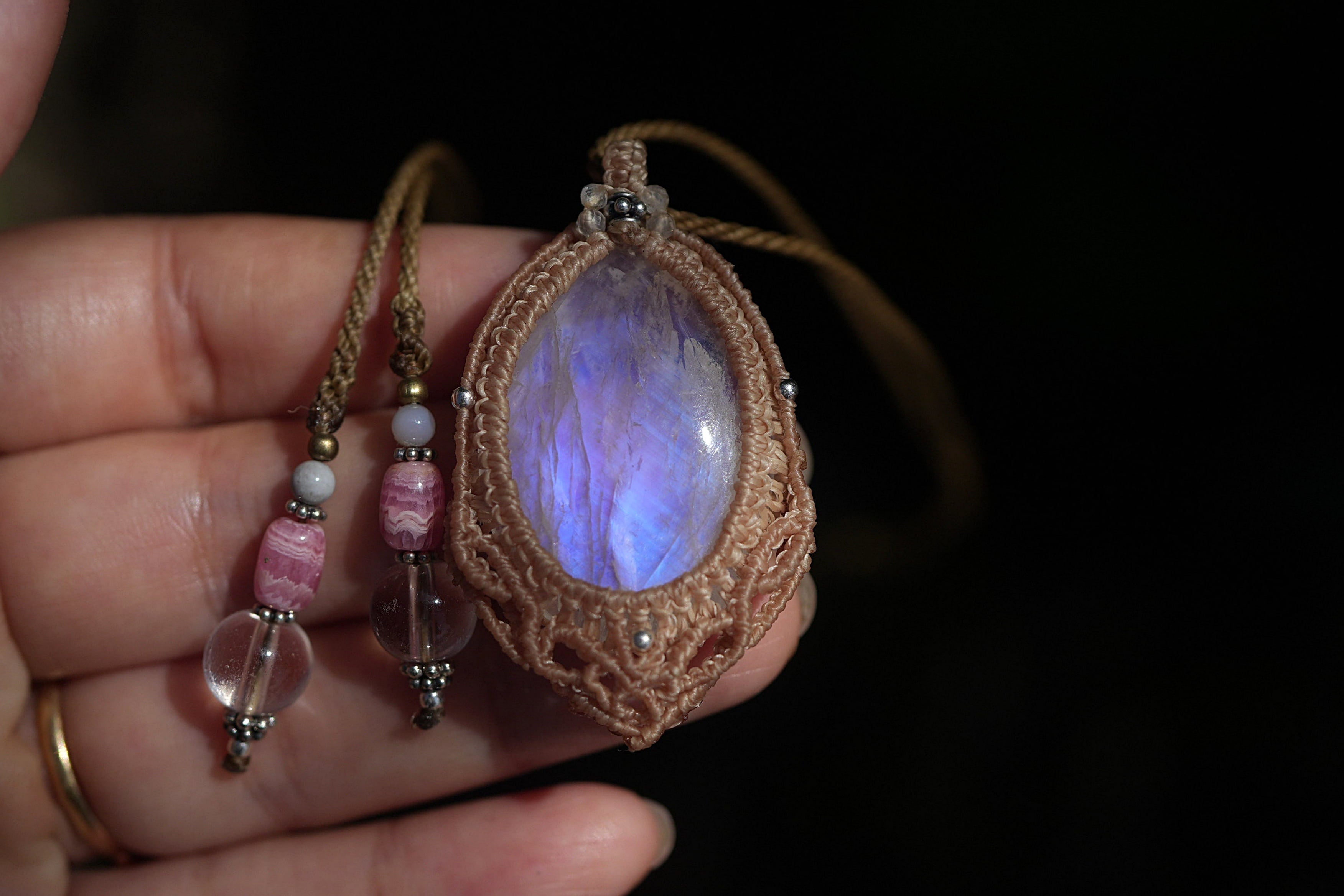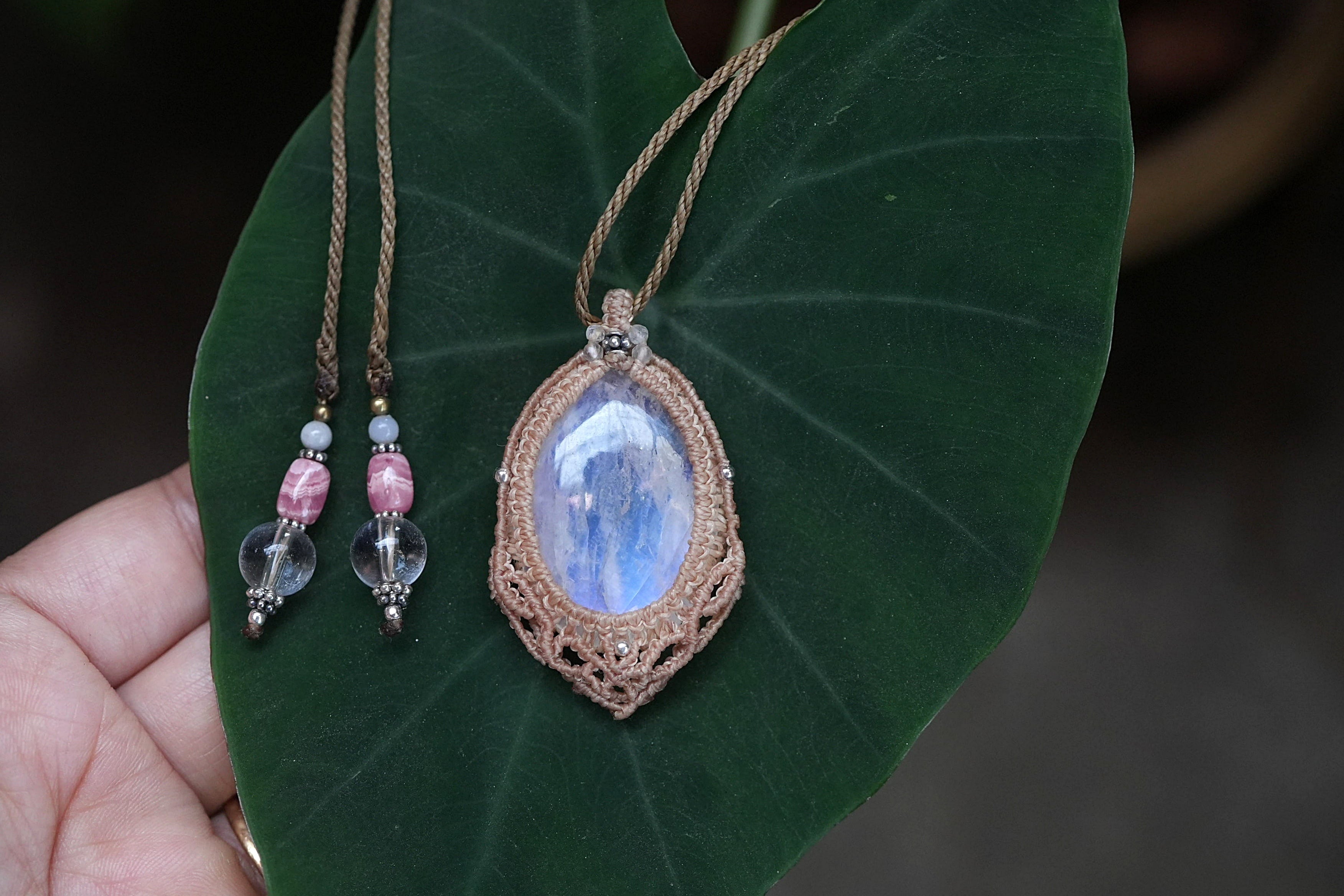 月明かりの魔法★レインボームーンストーン マクラメネックレス1881