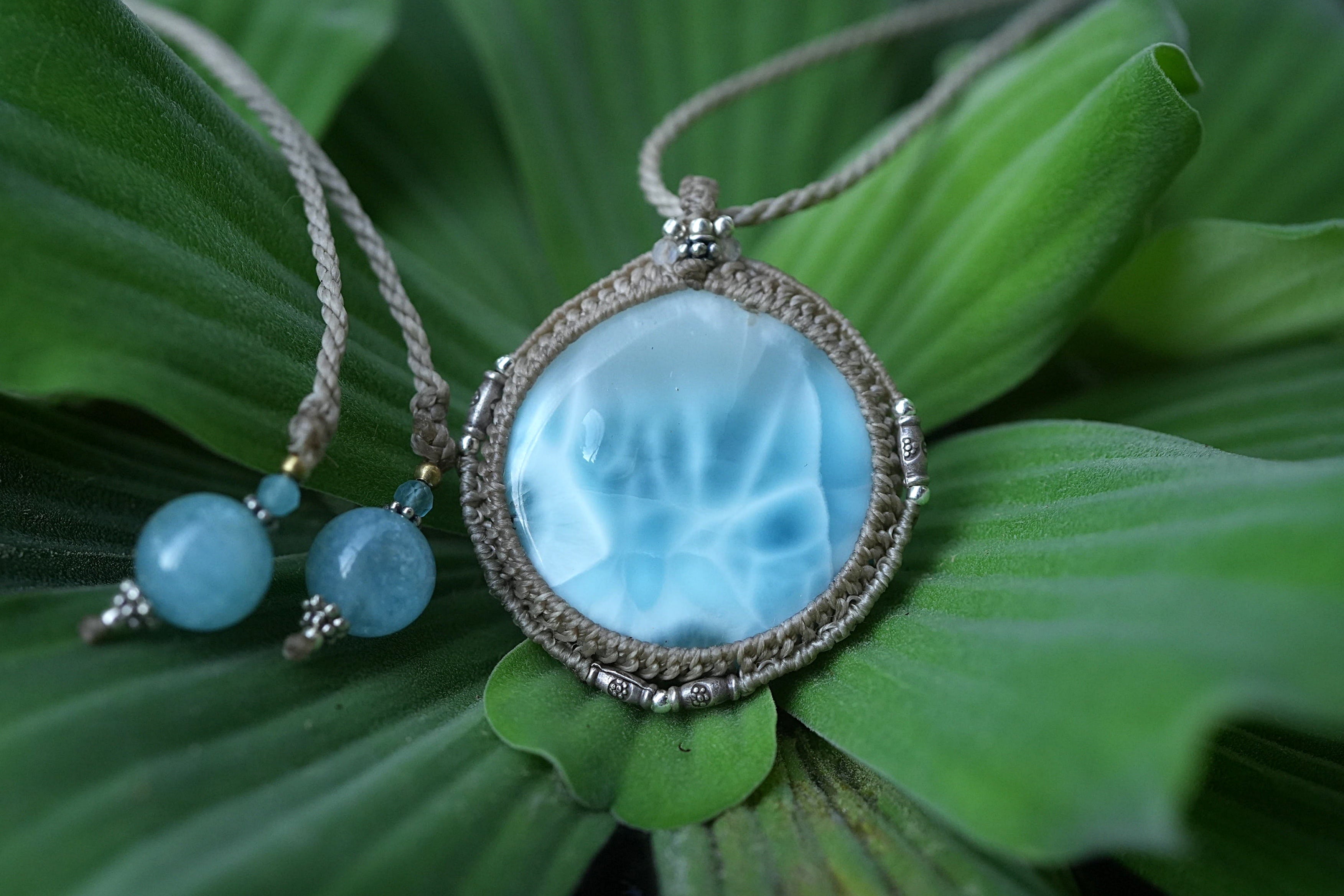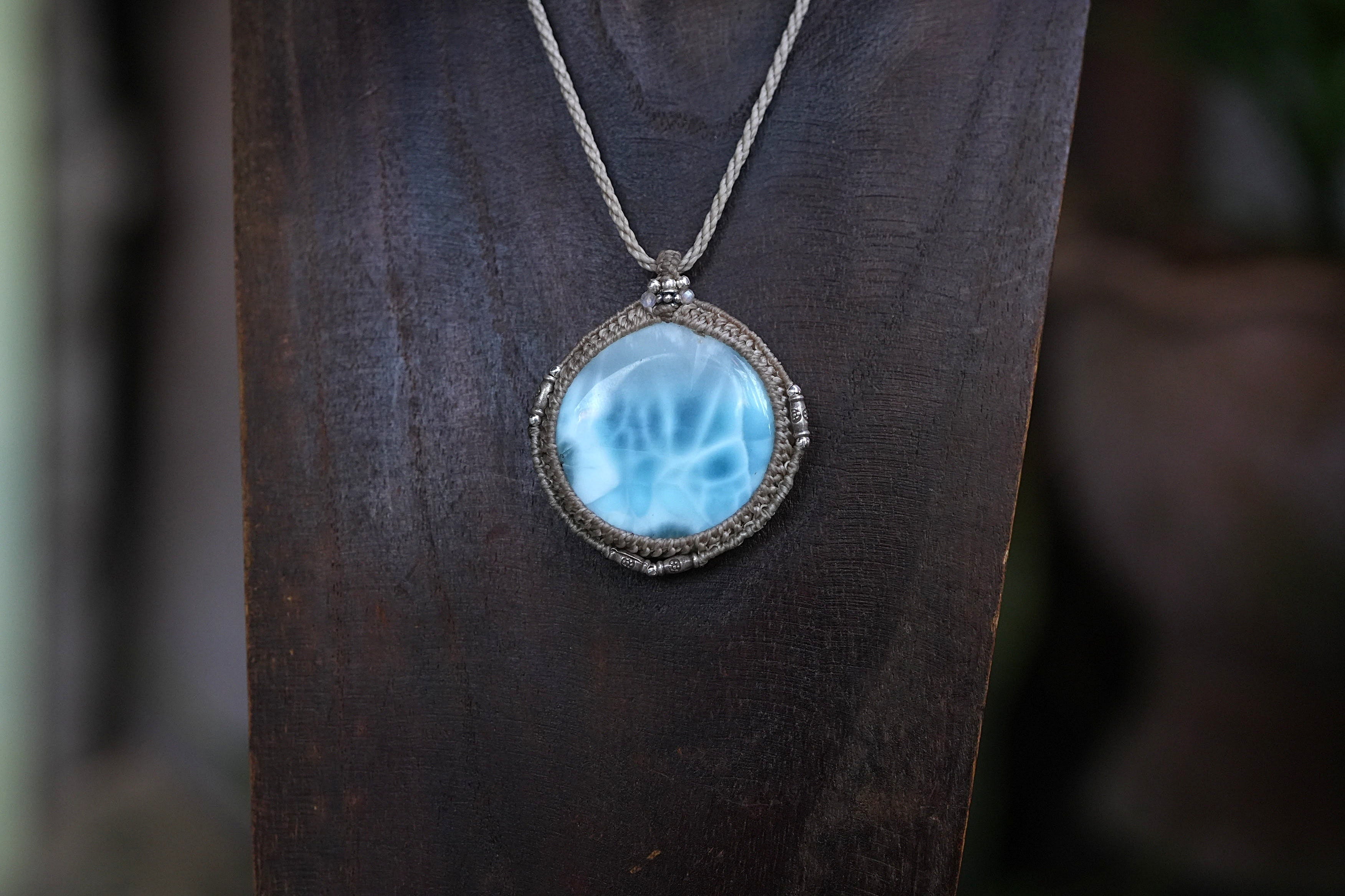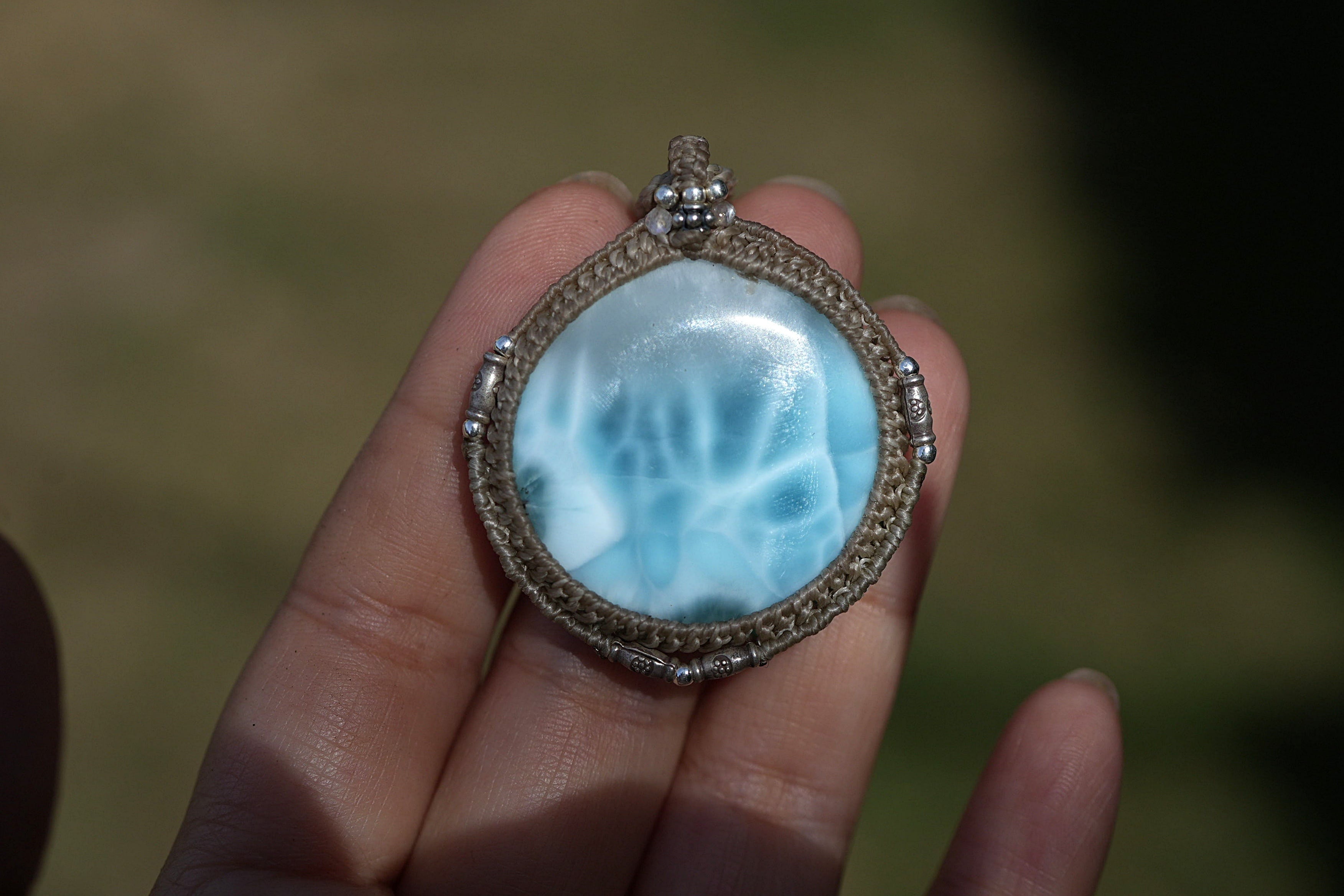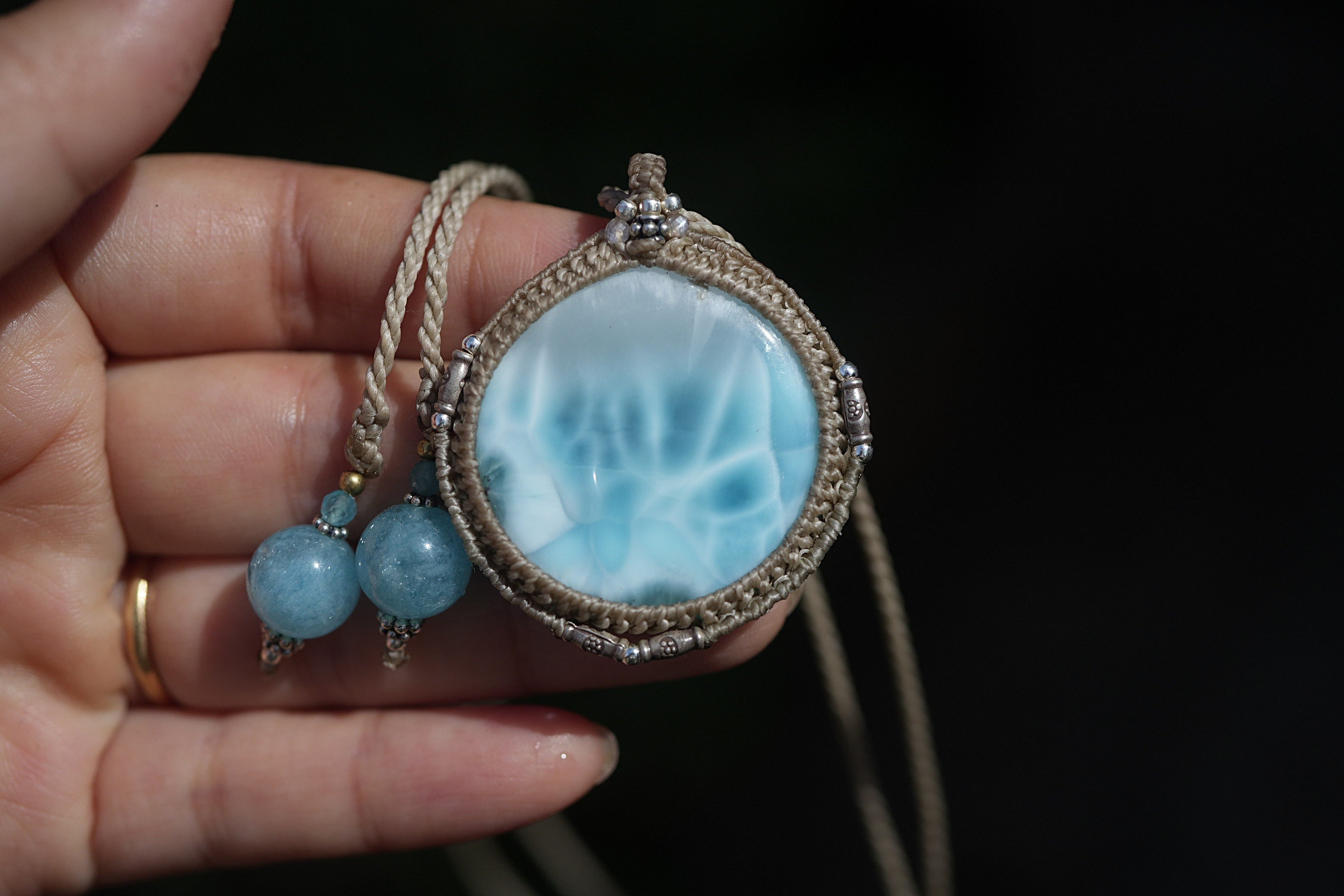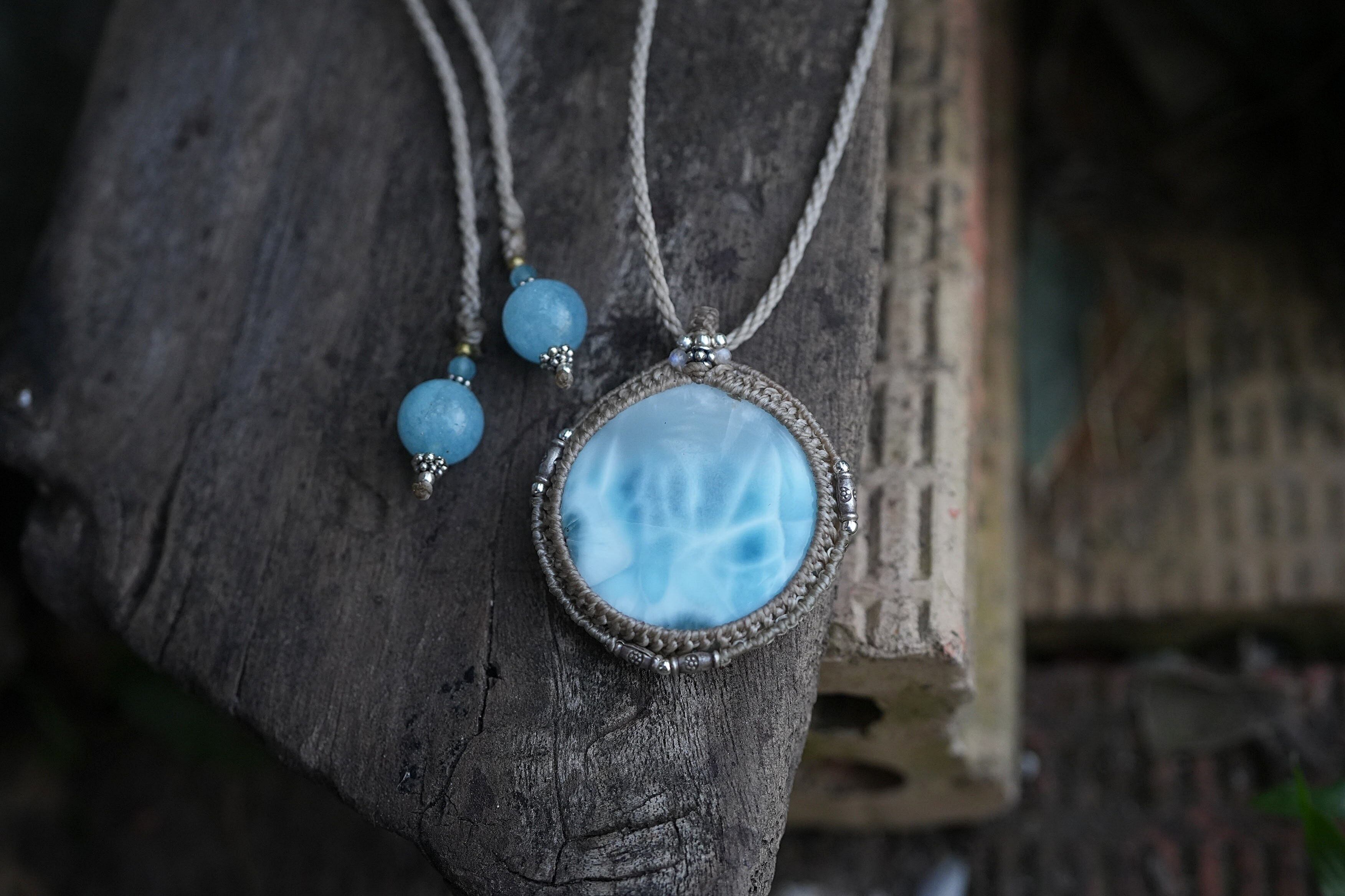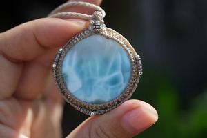 ◆このたびはキナリ色の蝋引き糸を使用しマクラメ編み装飾を施しました。