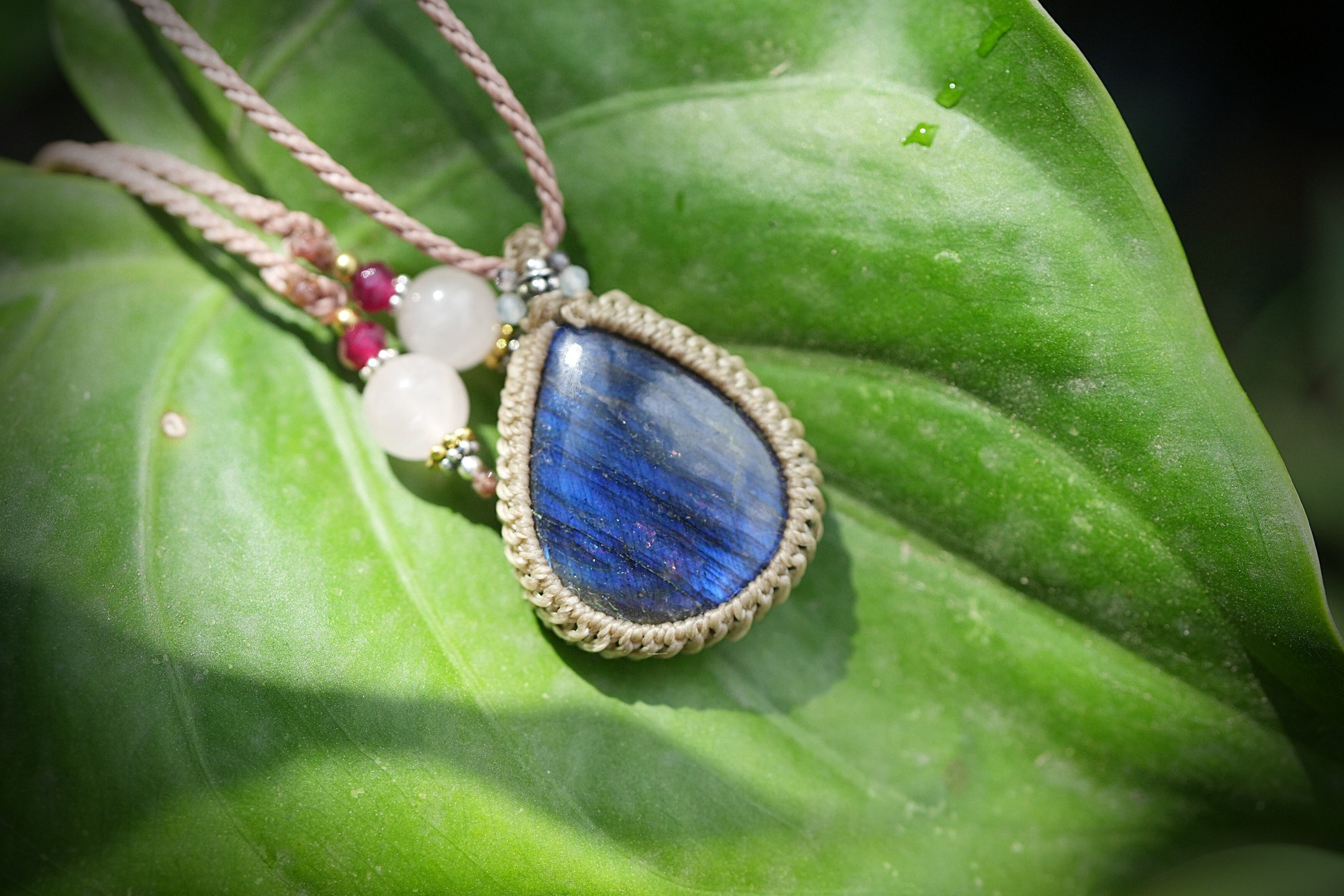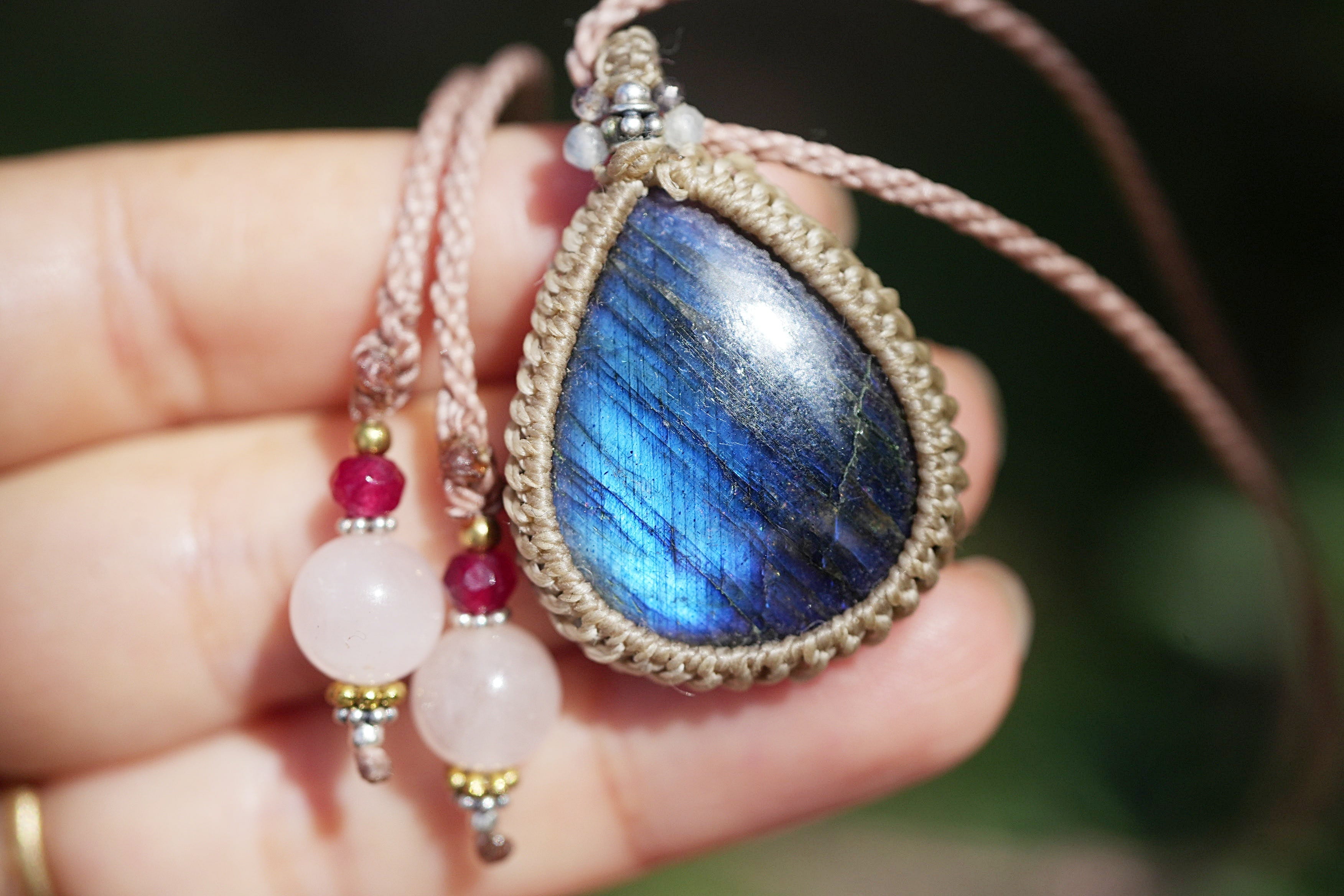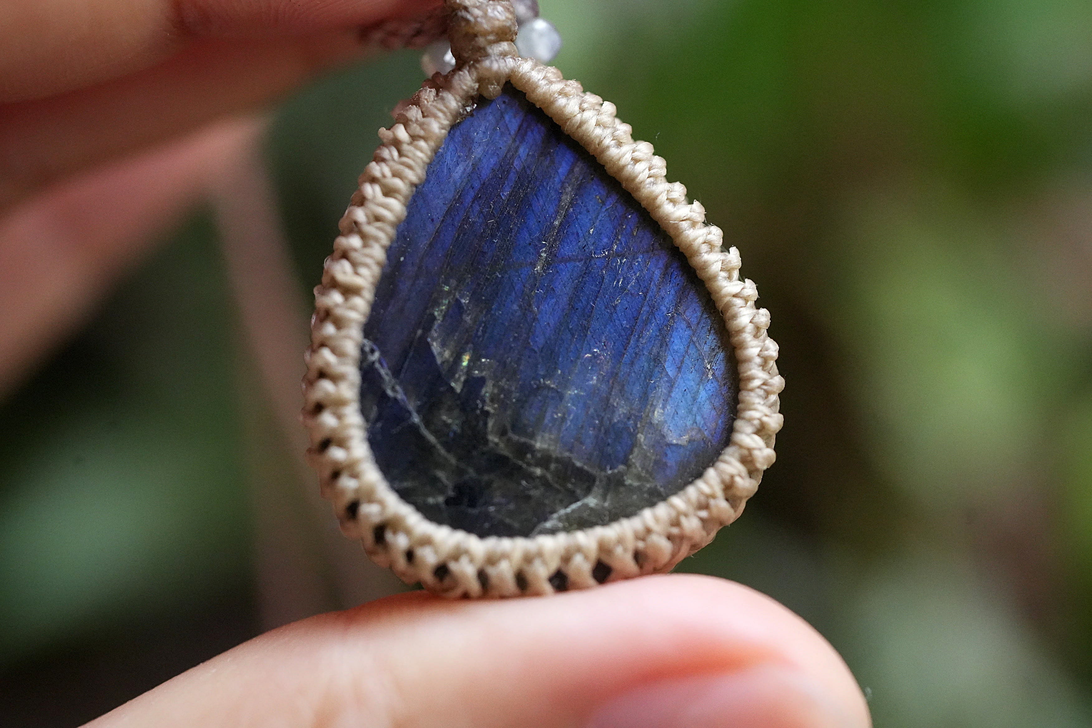 宇宙★高品質★ブルーラブラドライト マクラメネックレス 1887