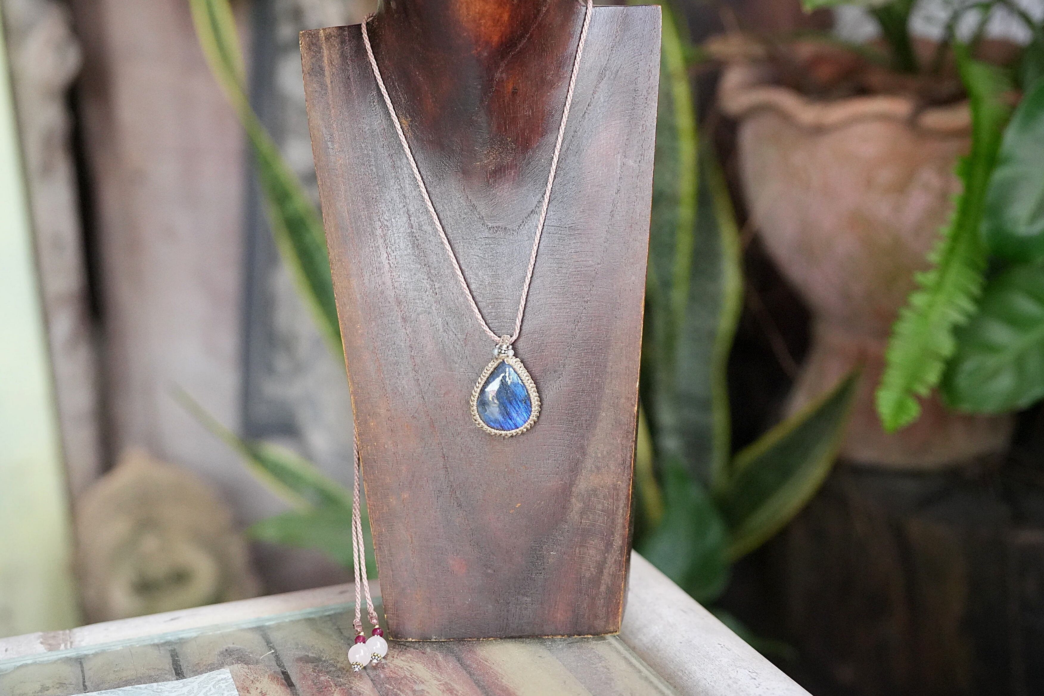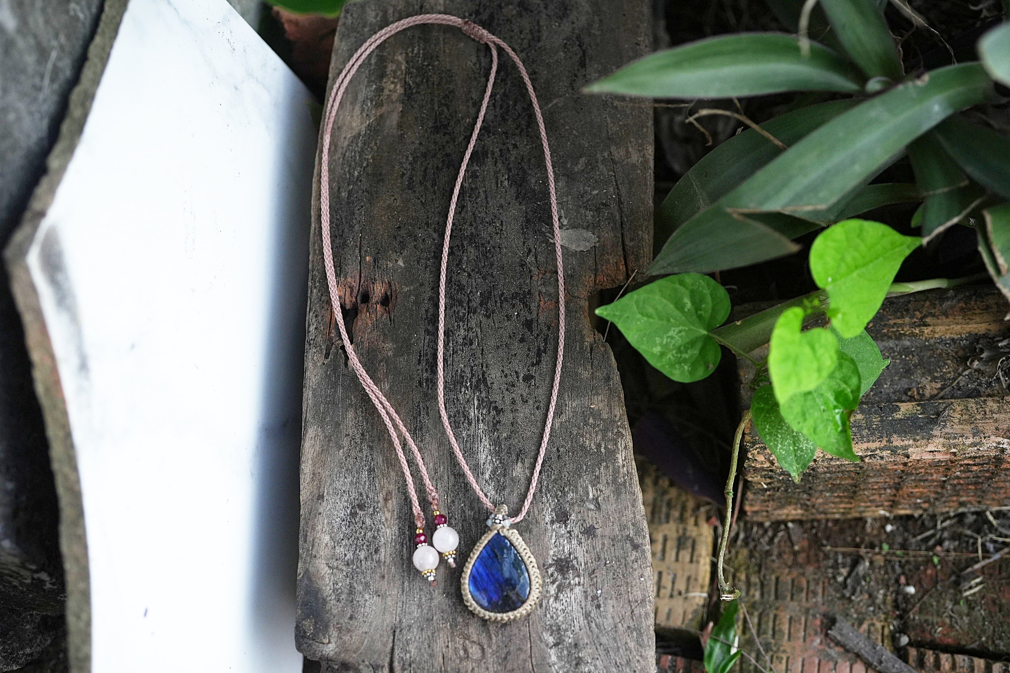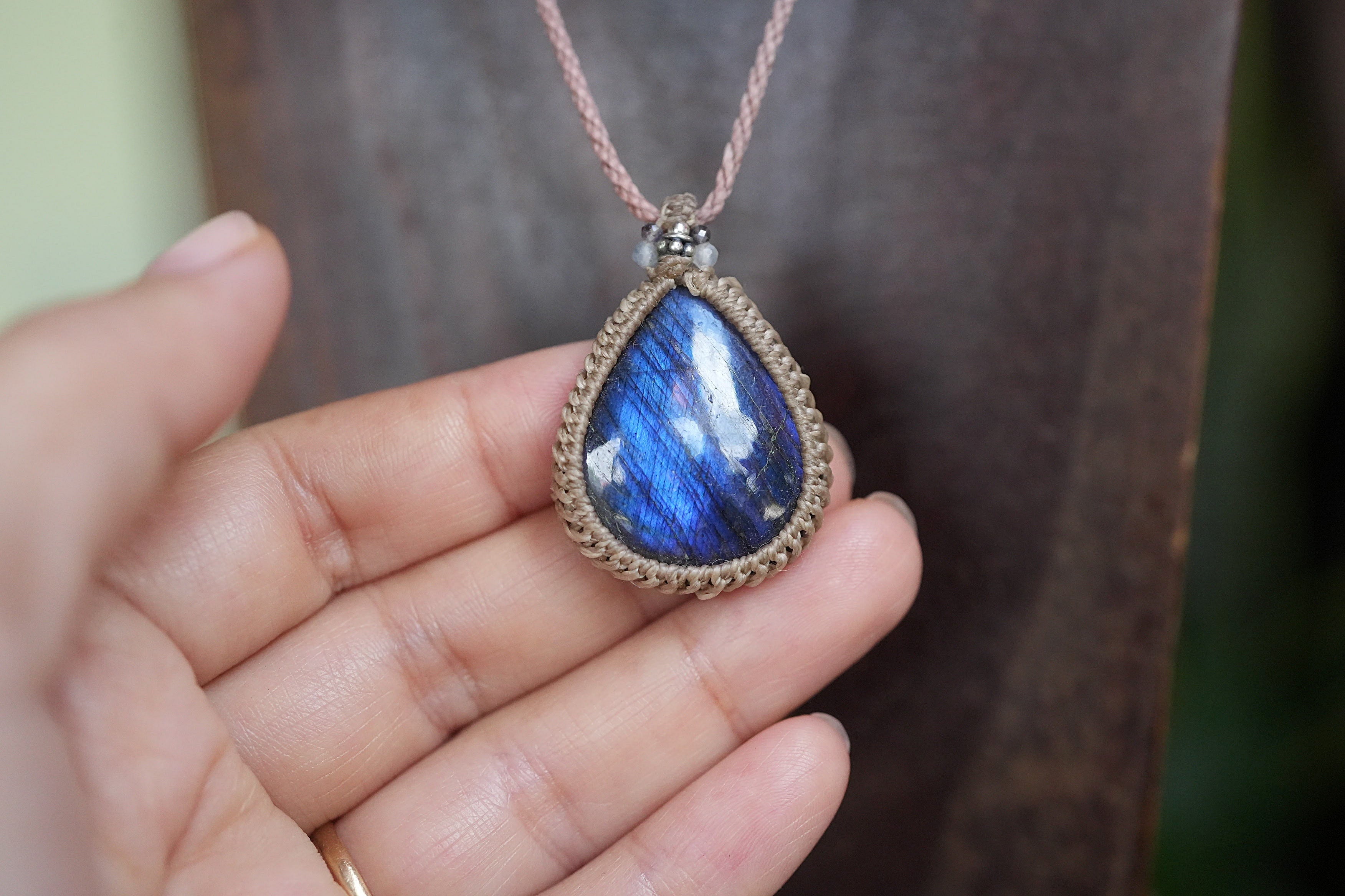 宇宙★高品質★ブルーラブラドライト マクラメネックレス 1887