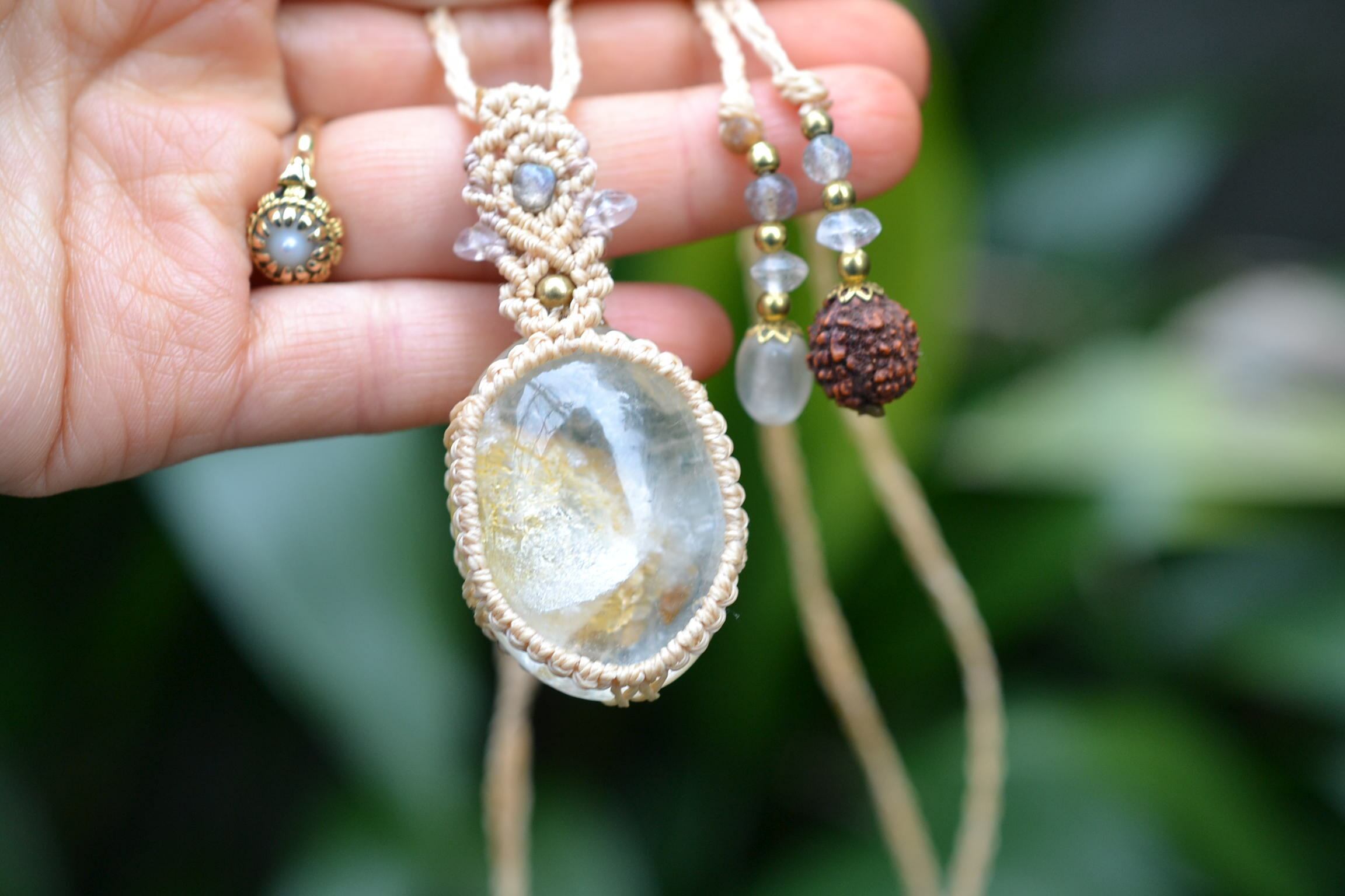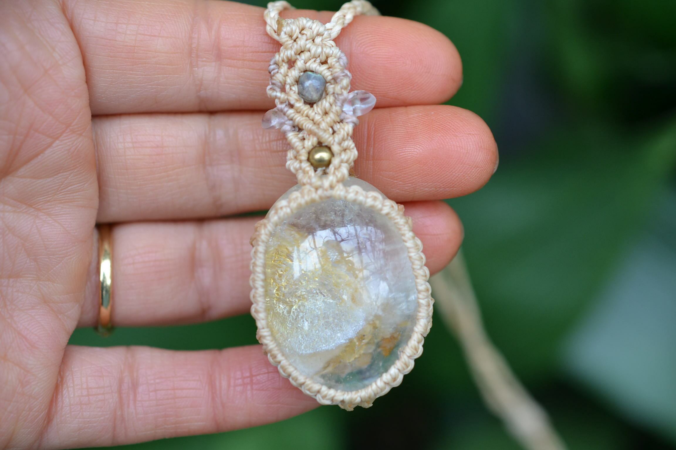 透き通るミラクル★ガーデンクォーツ マクラメペンダント