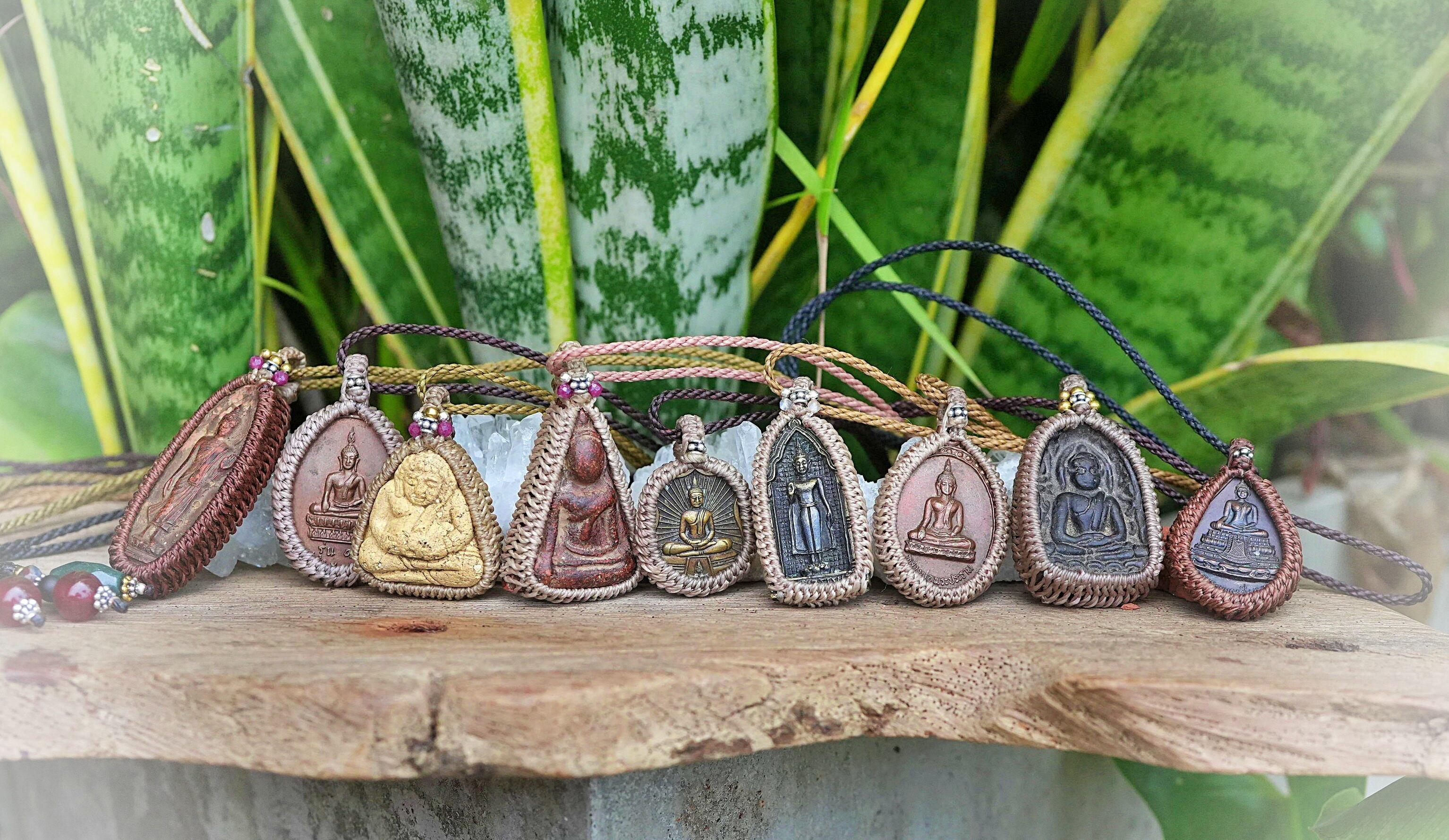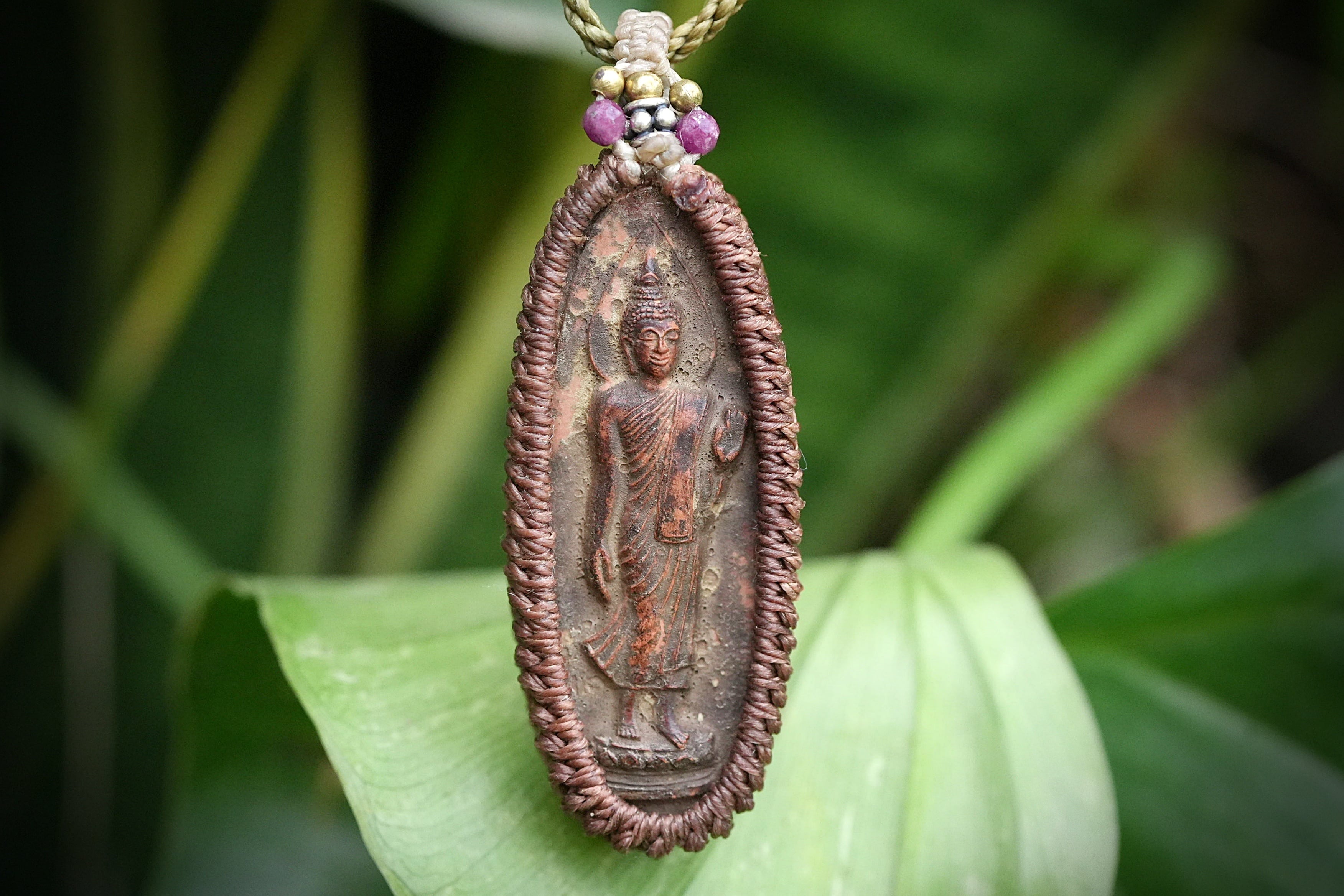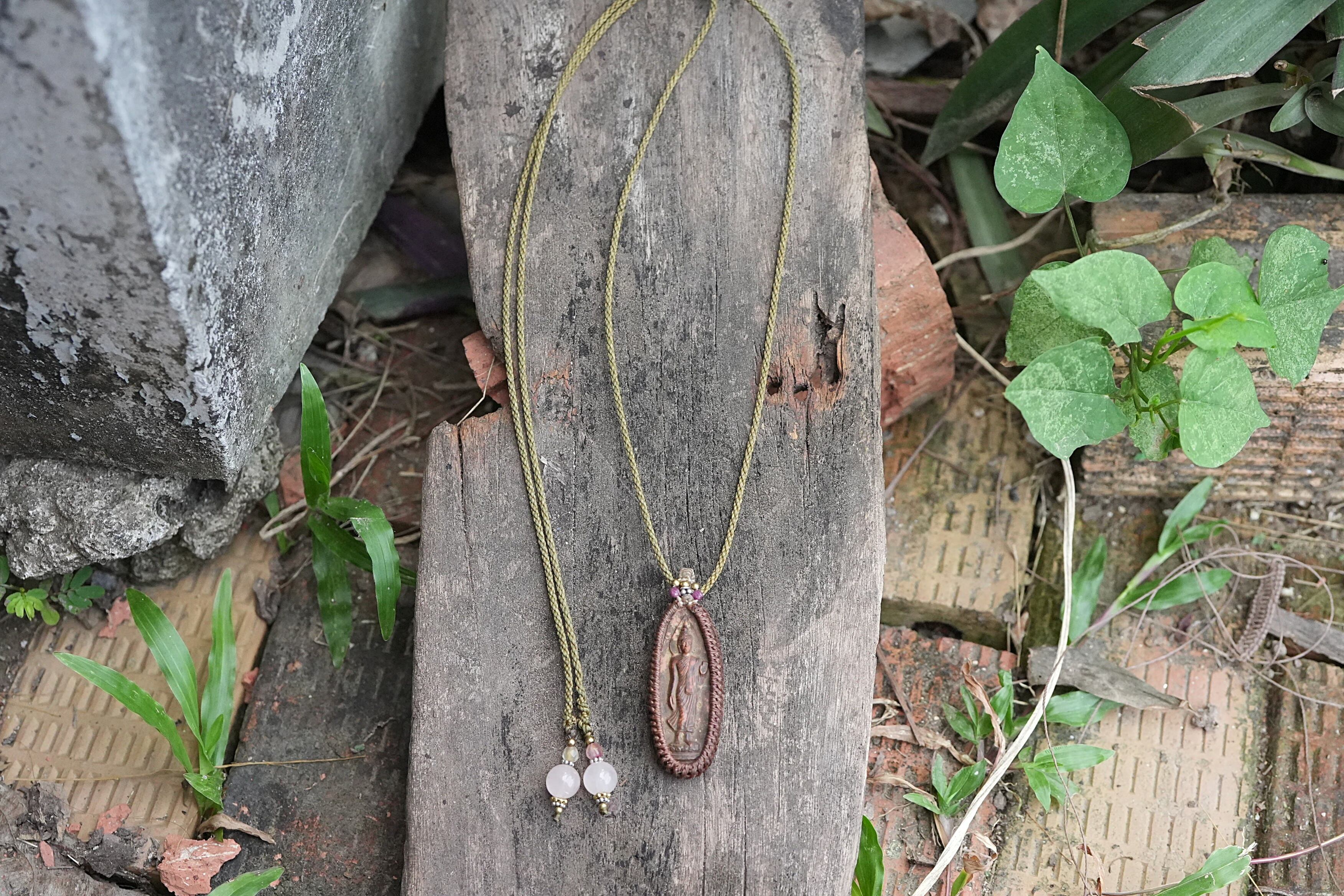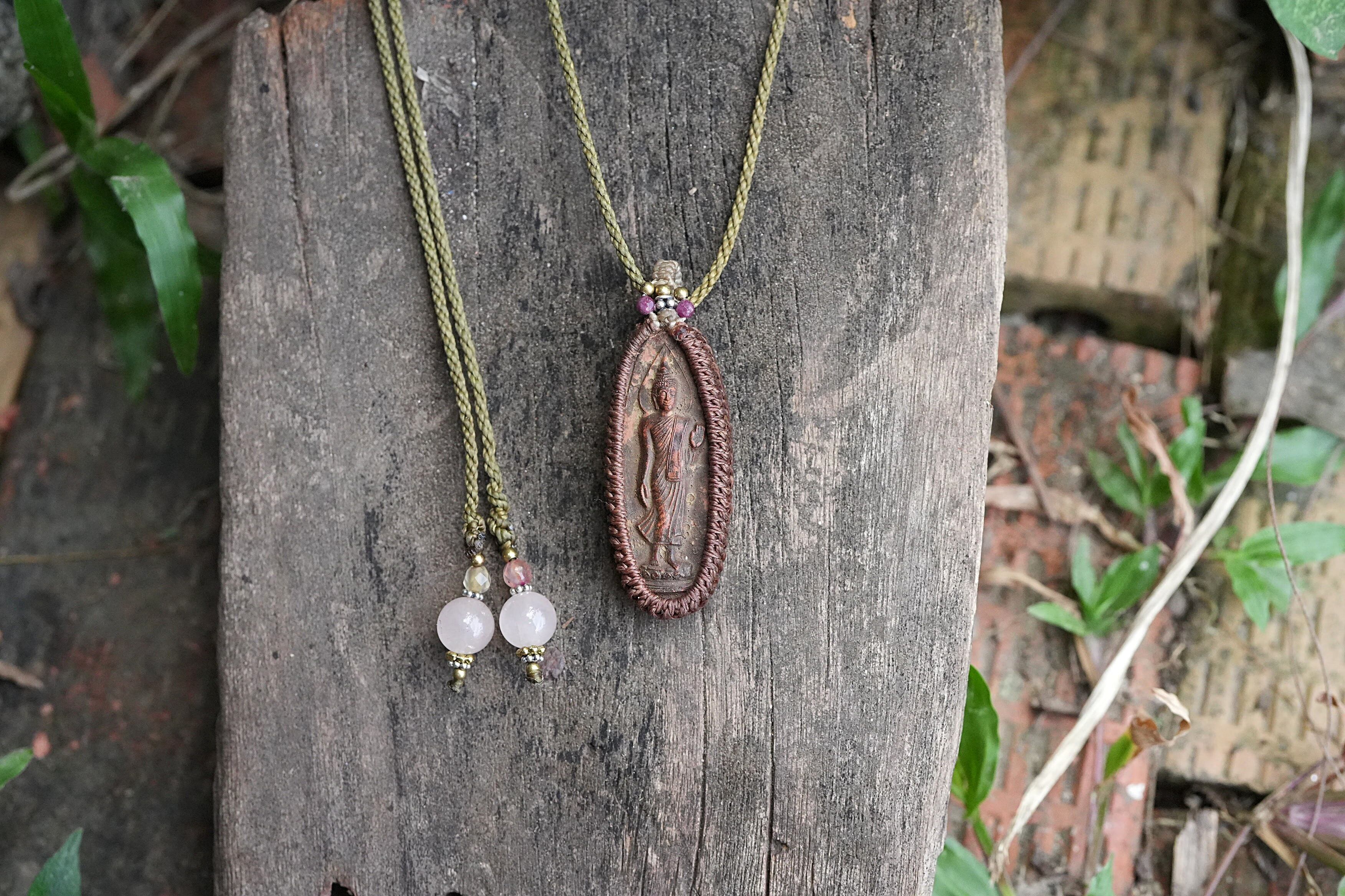 アンティーク★仏陀様カービング マクラメネックレス2439