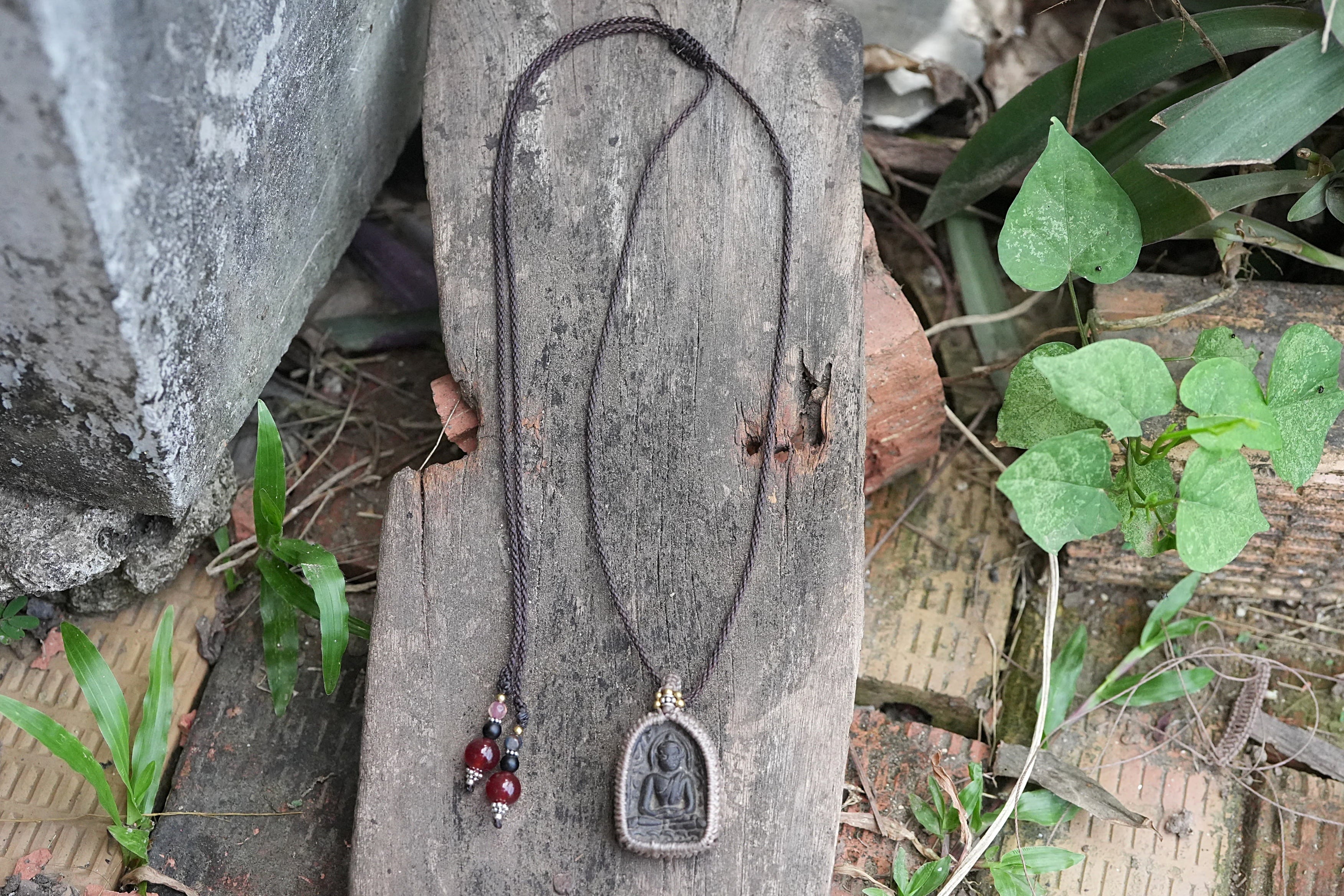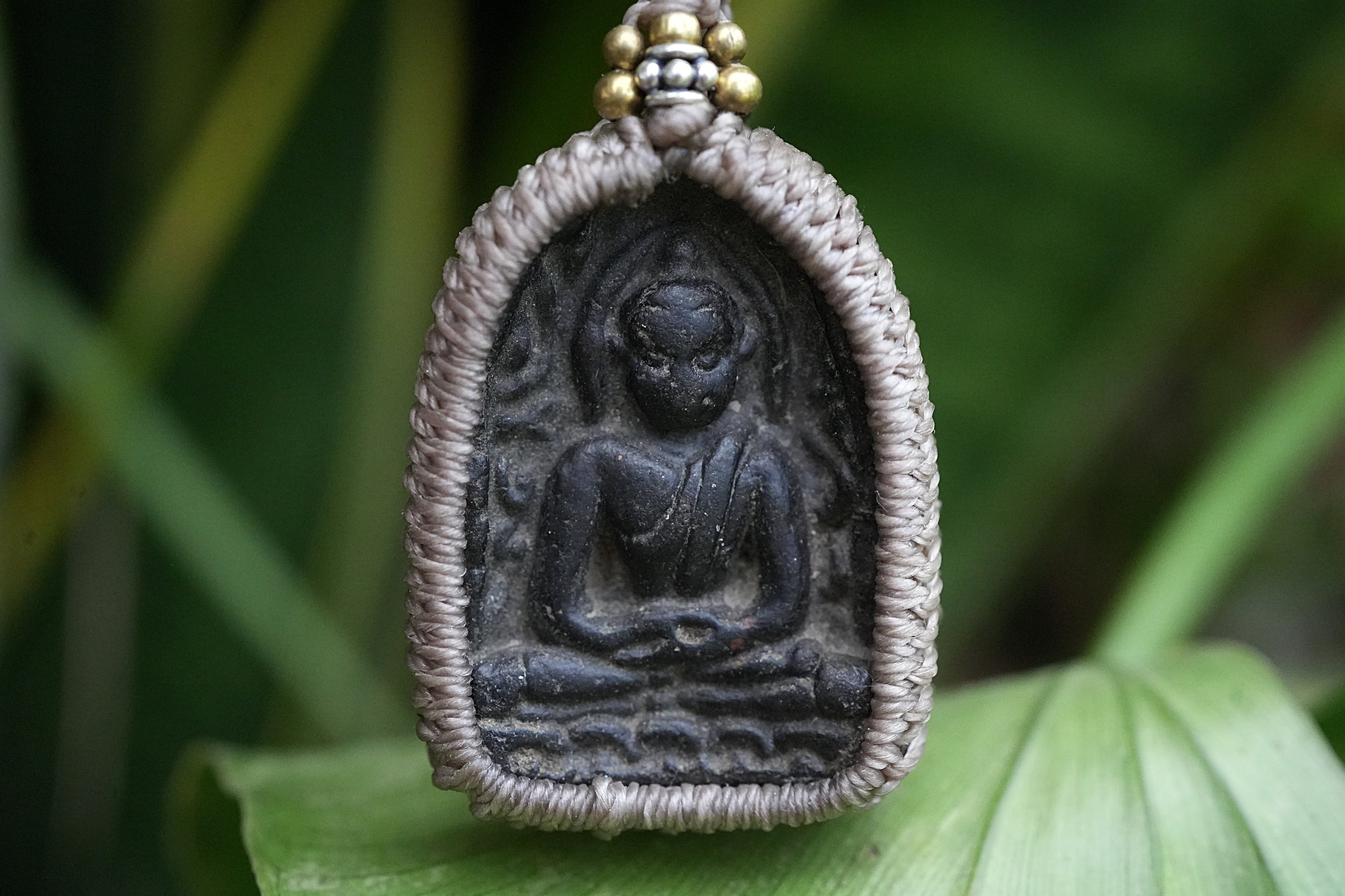 勇ましいお顔★仏陀様カービング マクラメネックレス2440