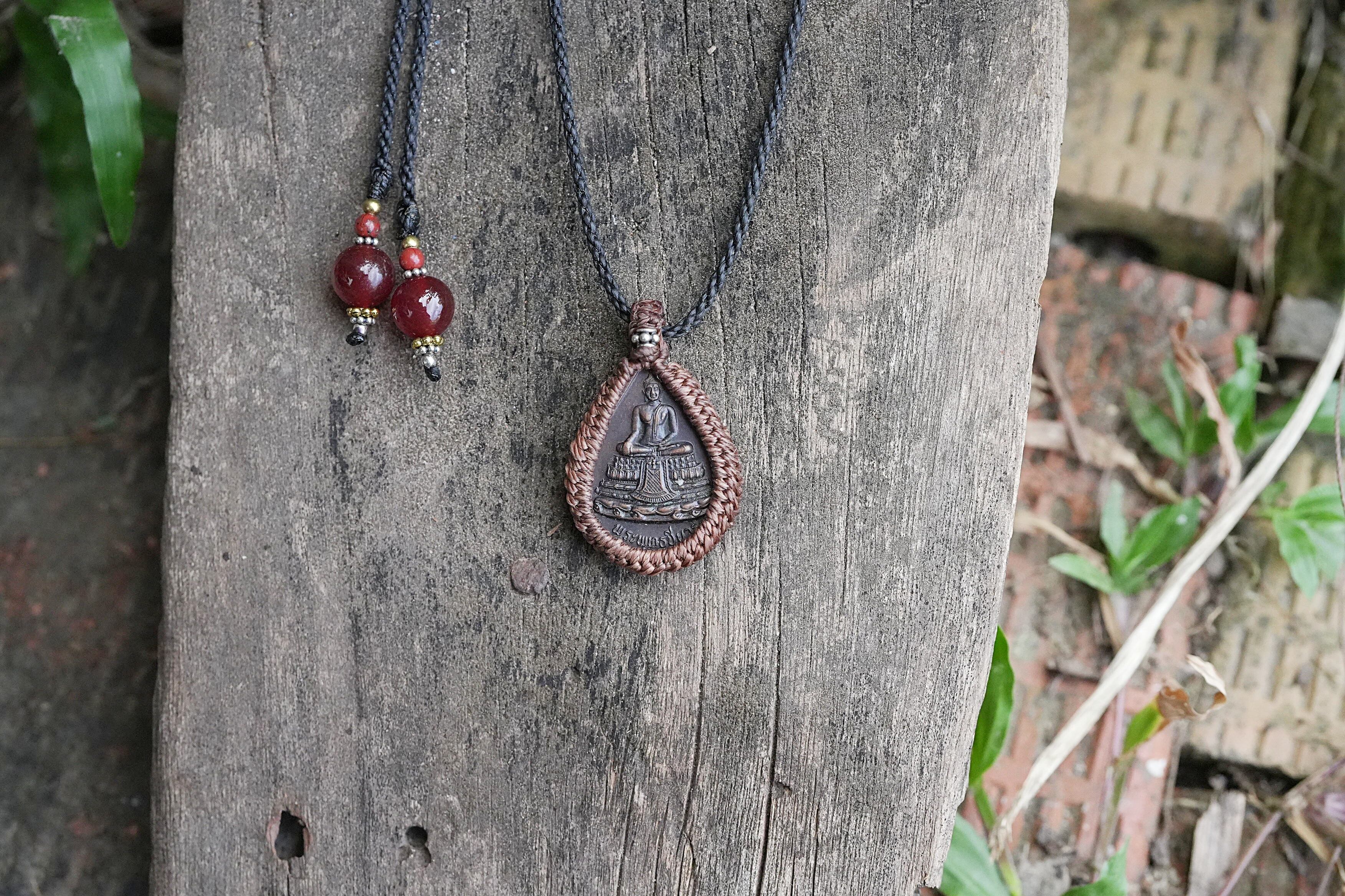 細やか彫刻★仏陀様カービング マクラメネックレス2441
