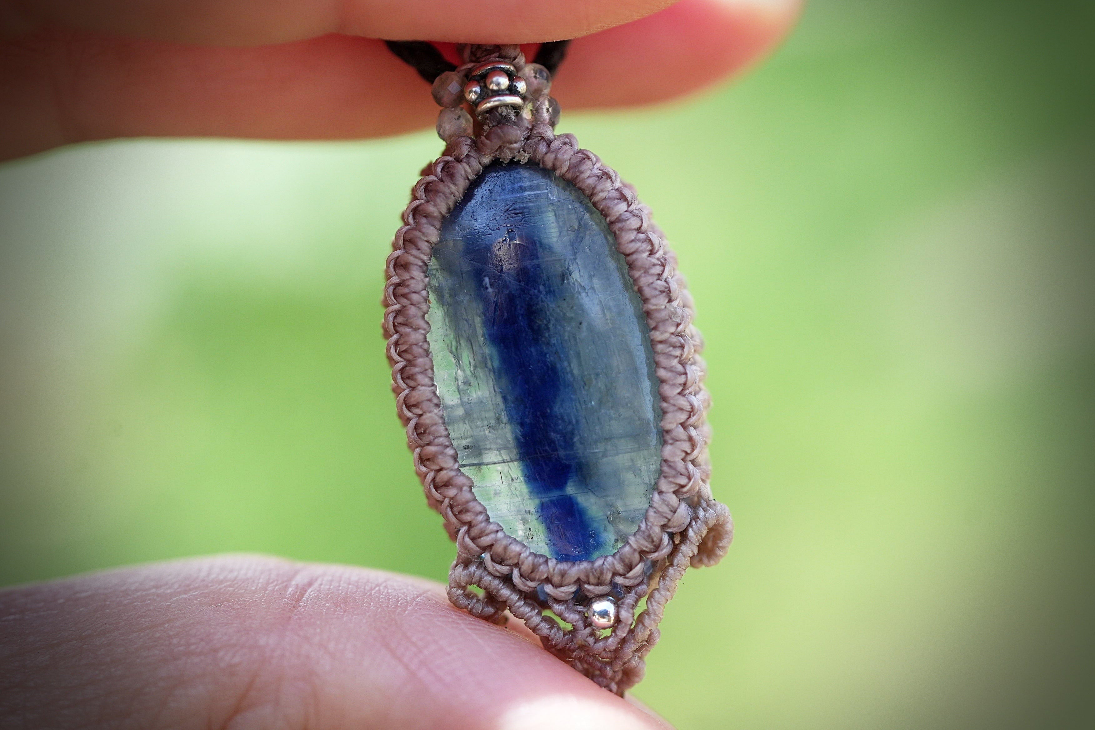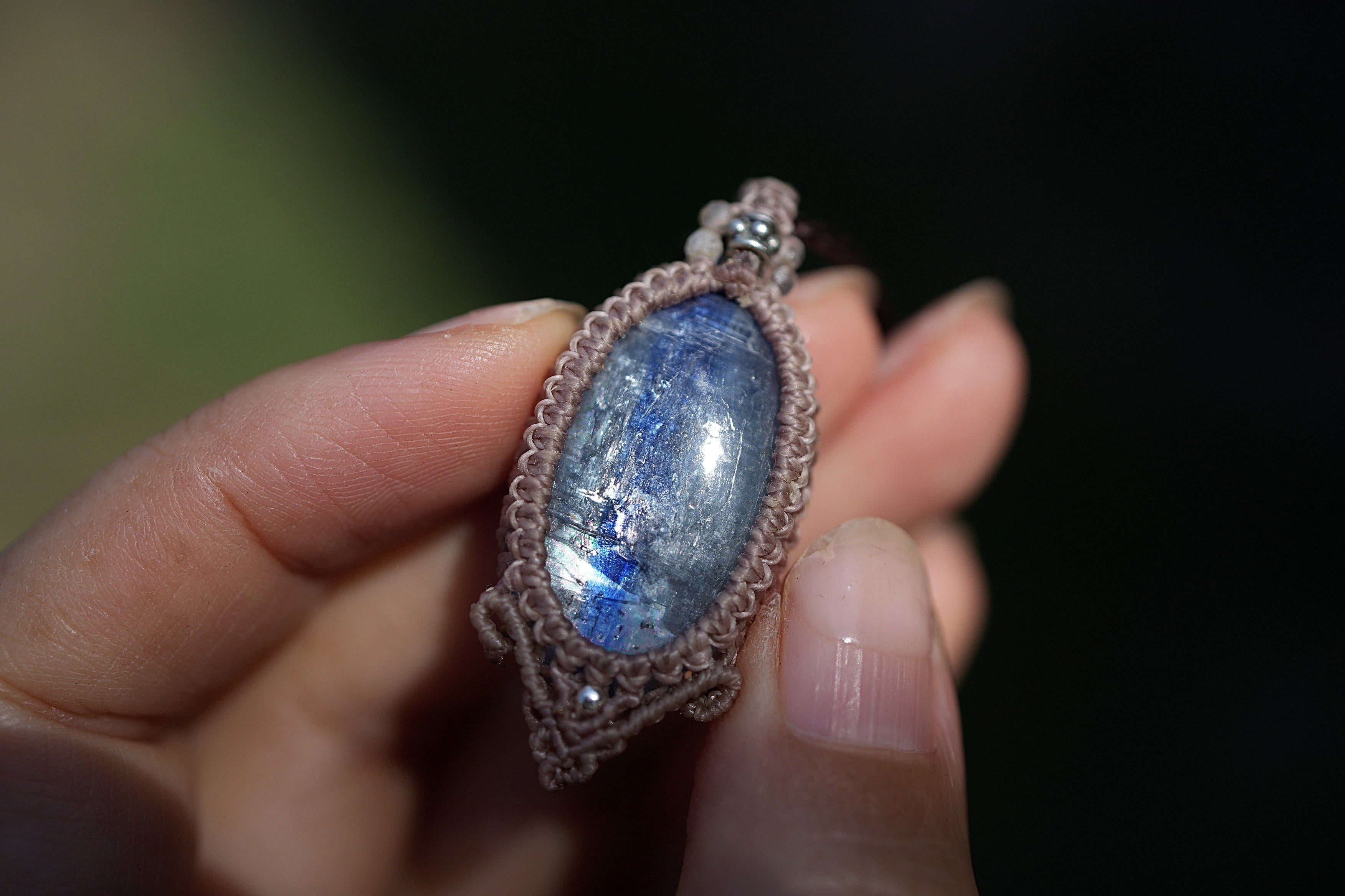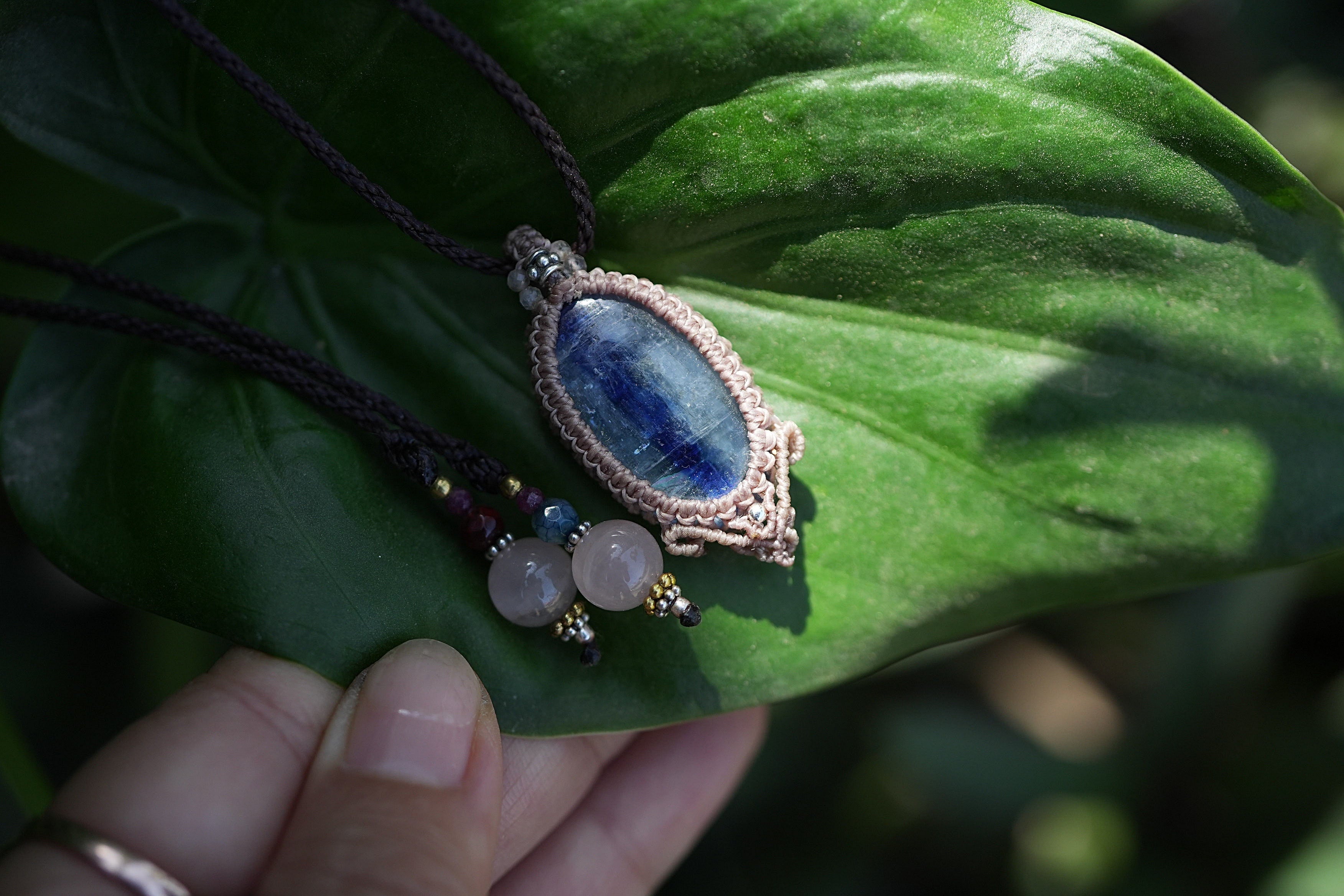 縦長のシラーとライン★kyanite マクラメネックレス 1899