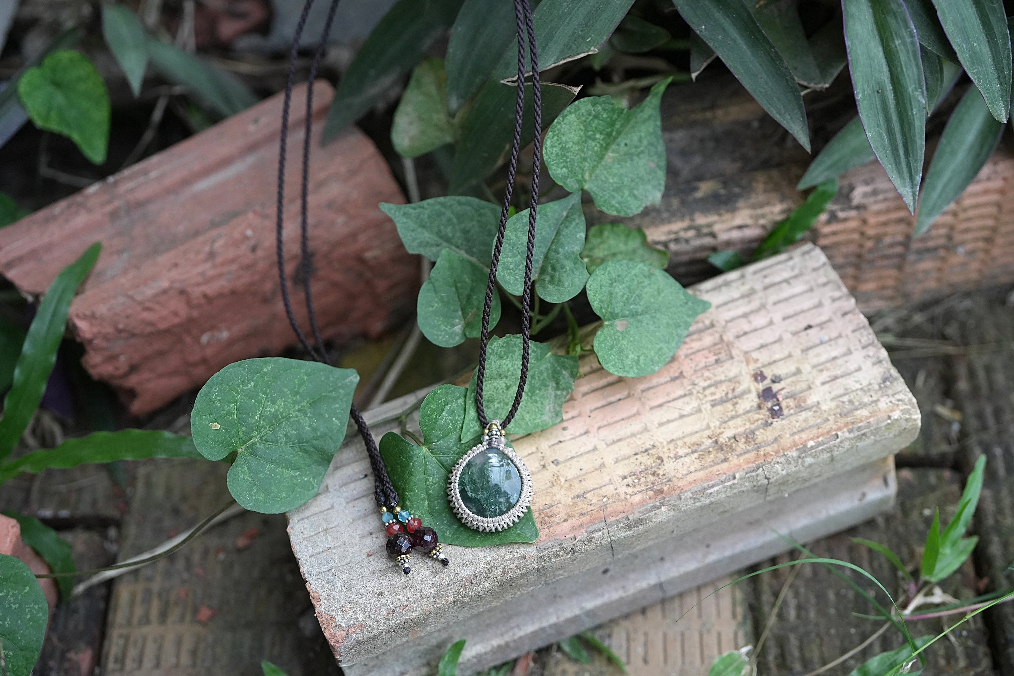 緑のもずく★モスアゲートマクラメネックレス 1904