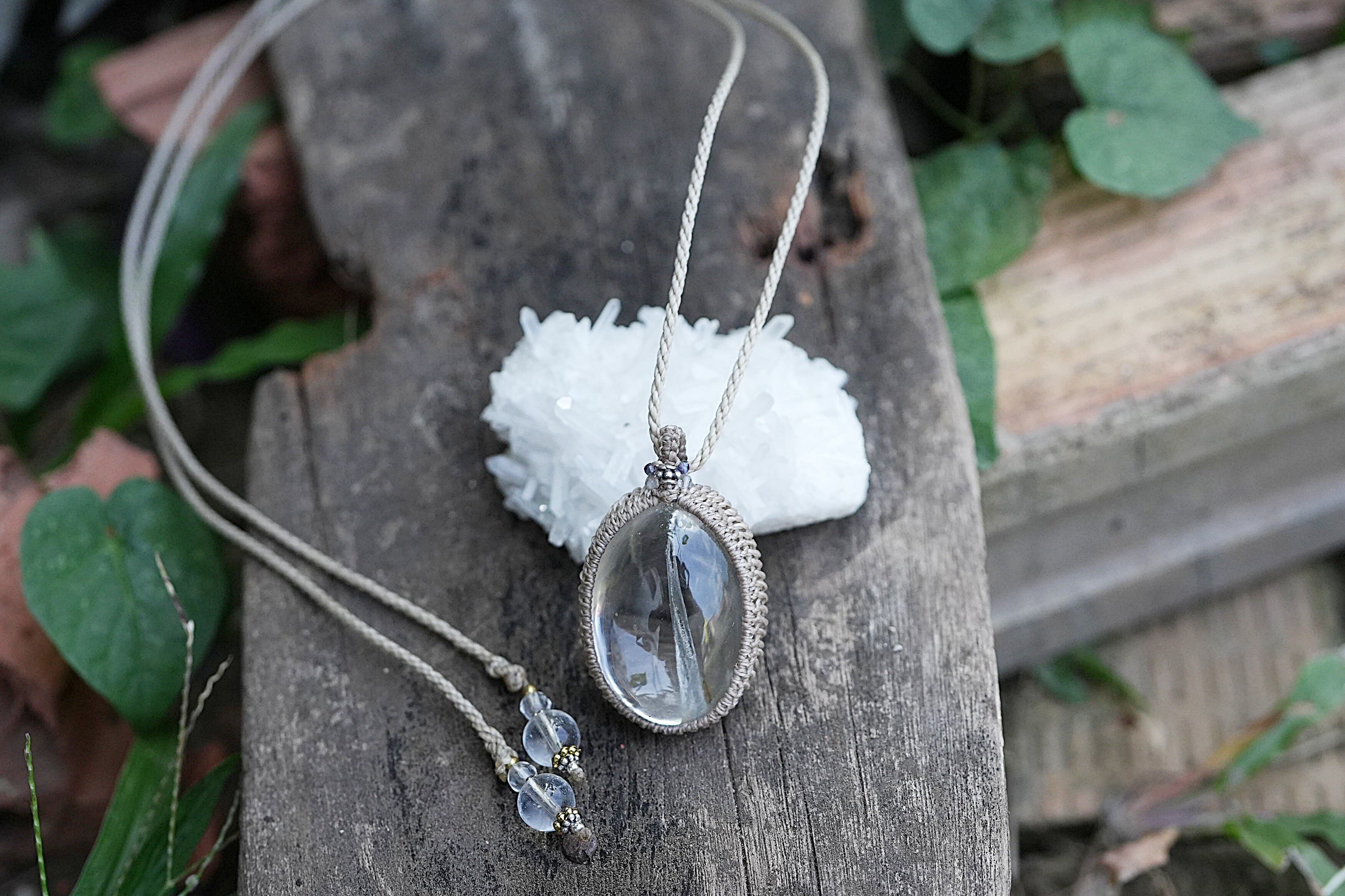 白い諸刃★ガーデンクォーツ マクラメネックレス1905