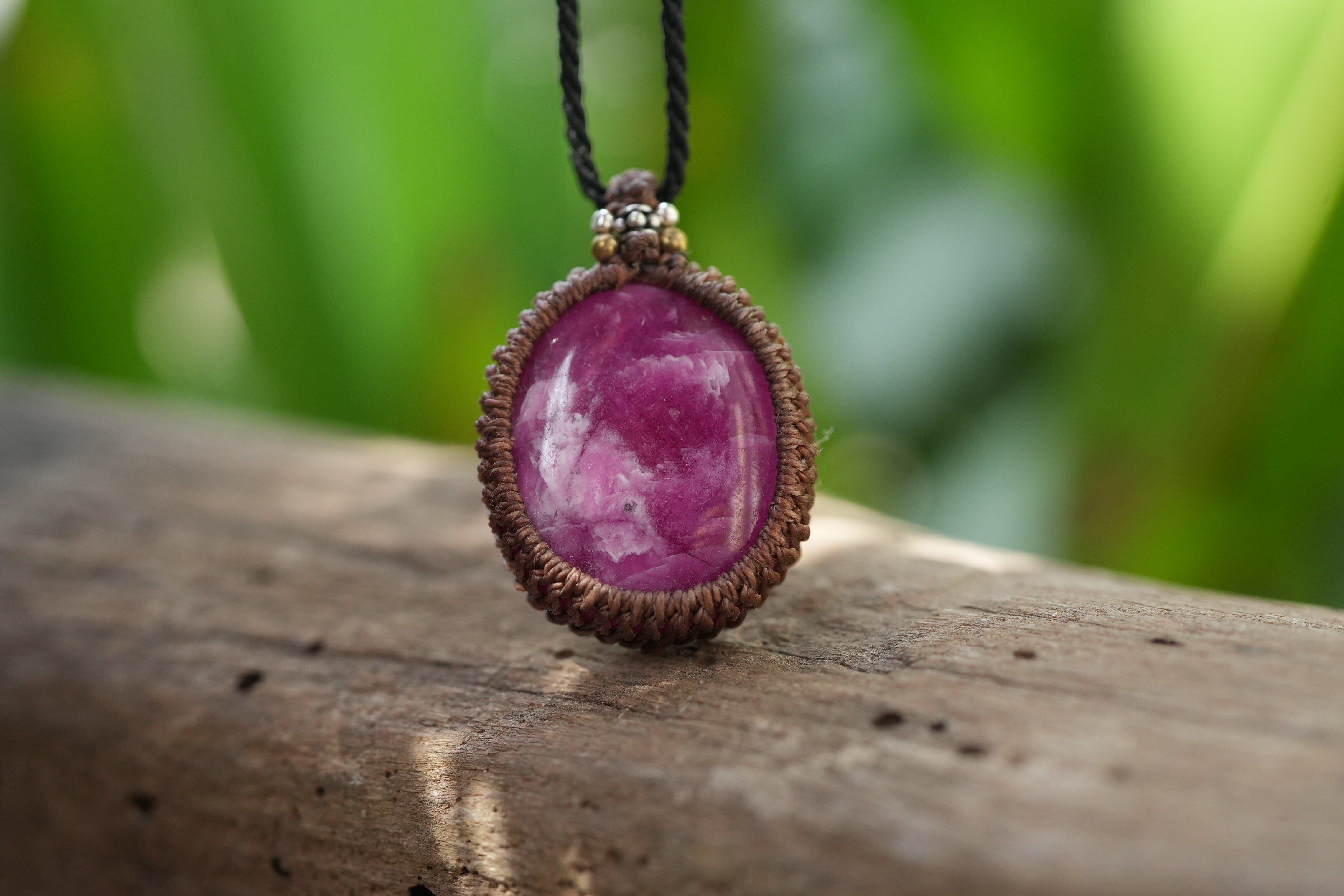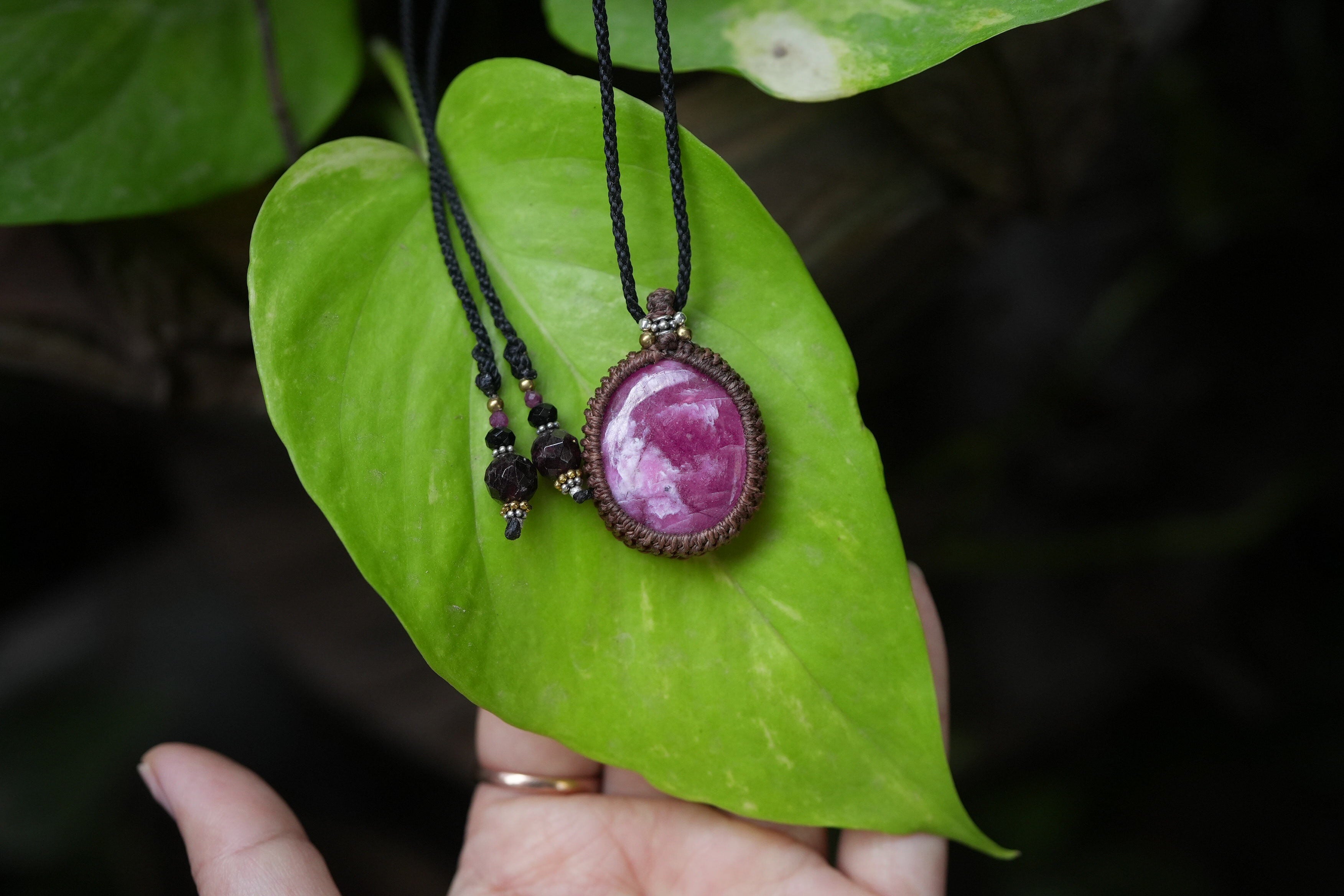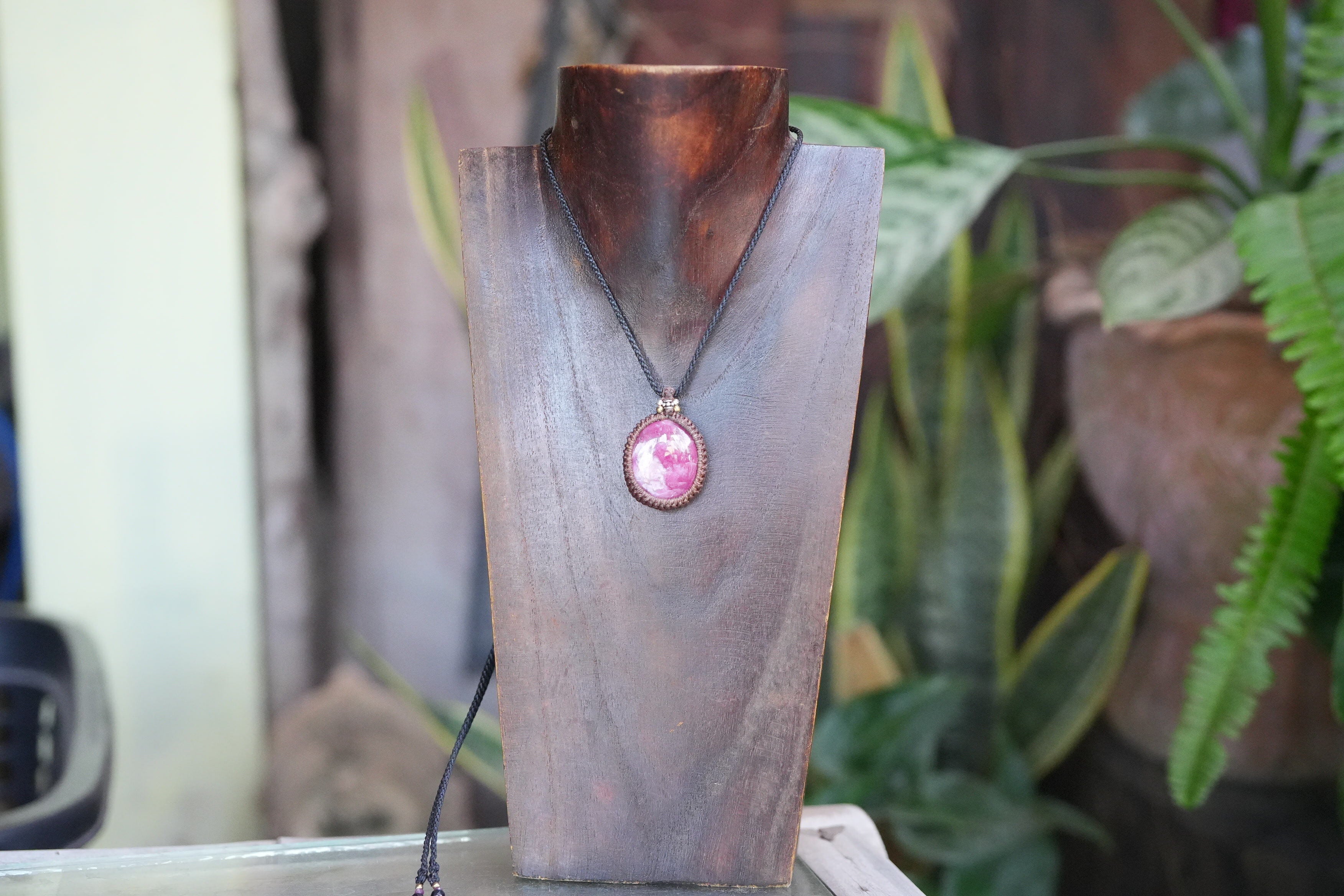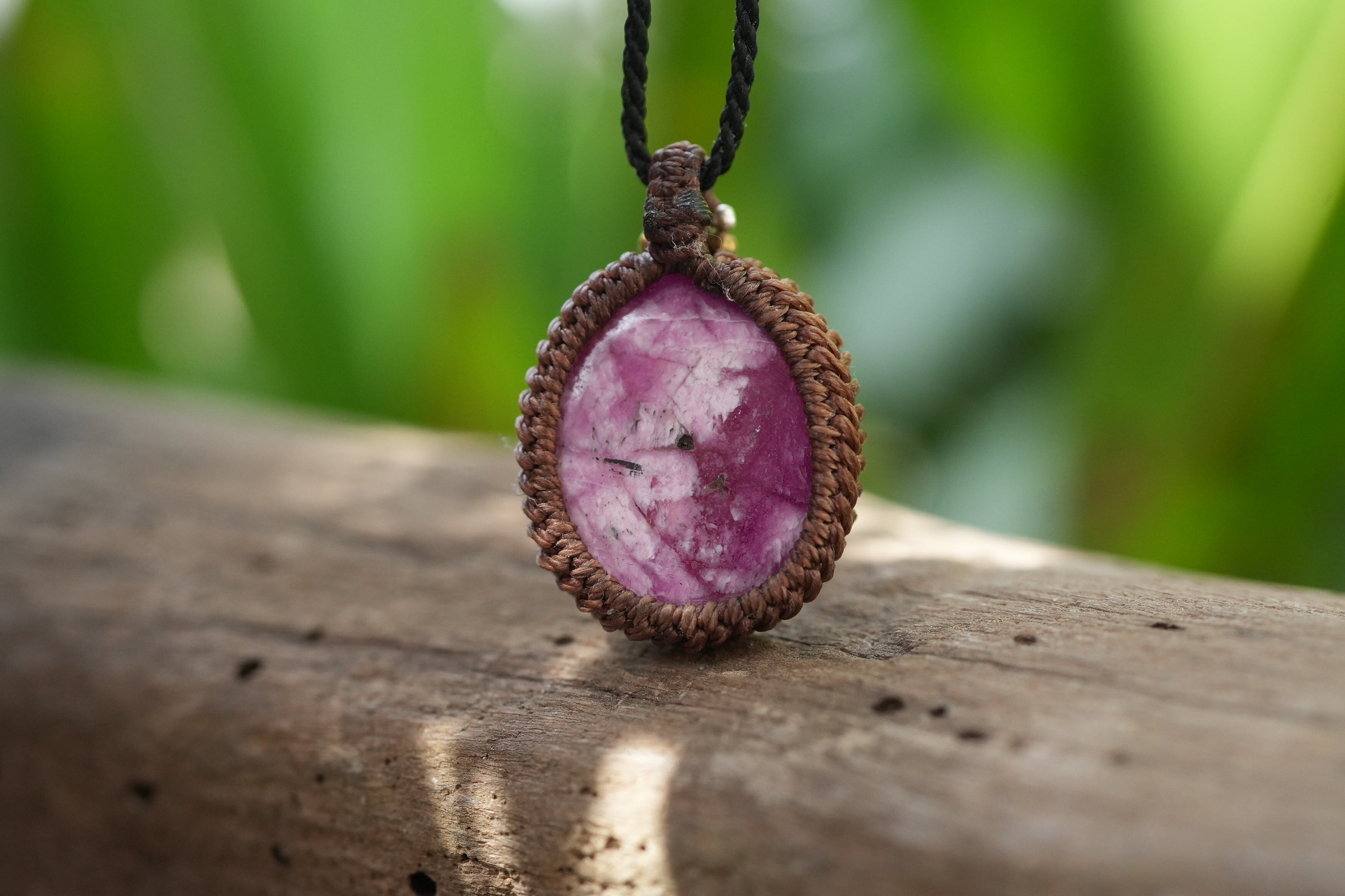 シンプルなマクラメ編みで仕上げ、石の個性をそのまま引き立たせたデザイン。