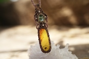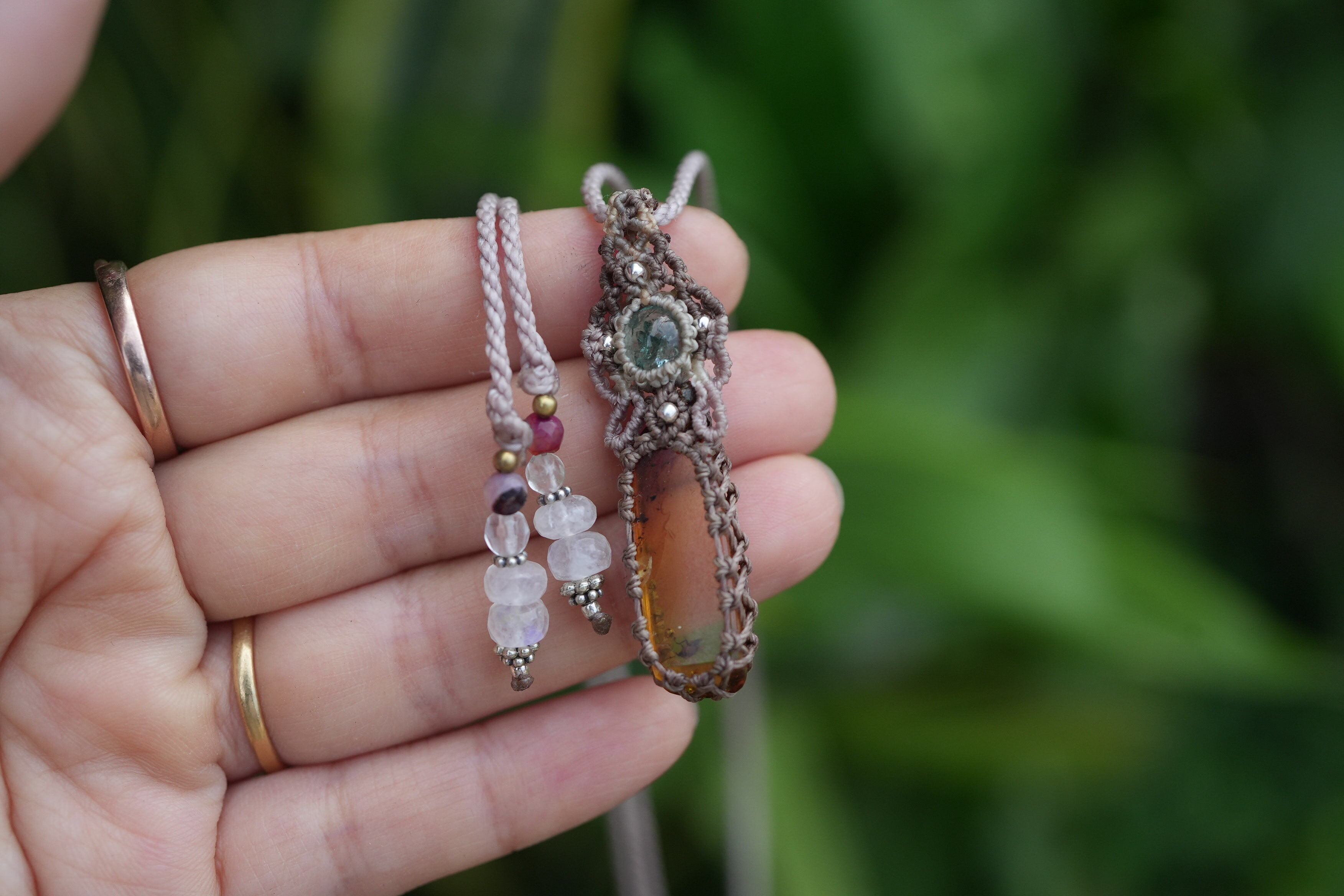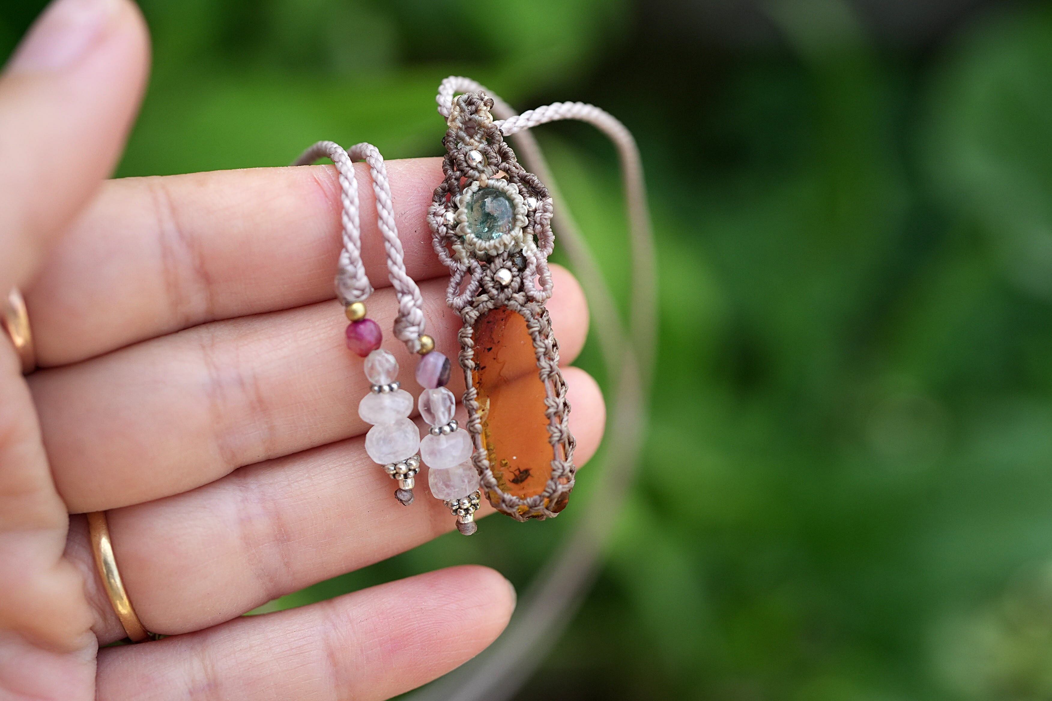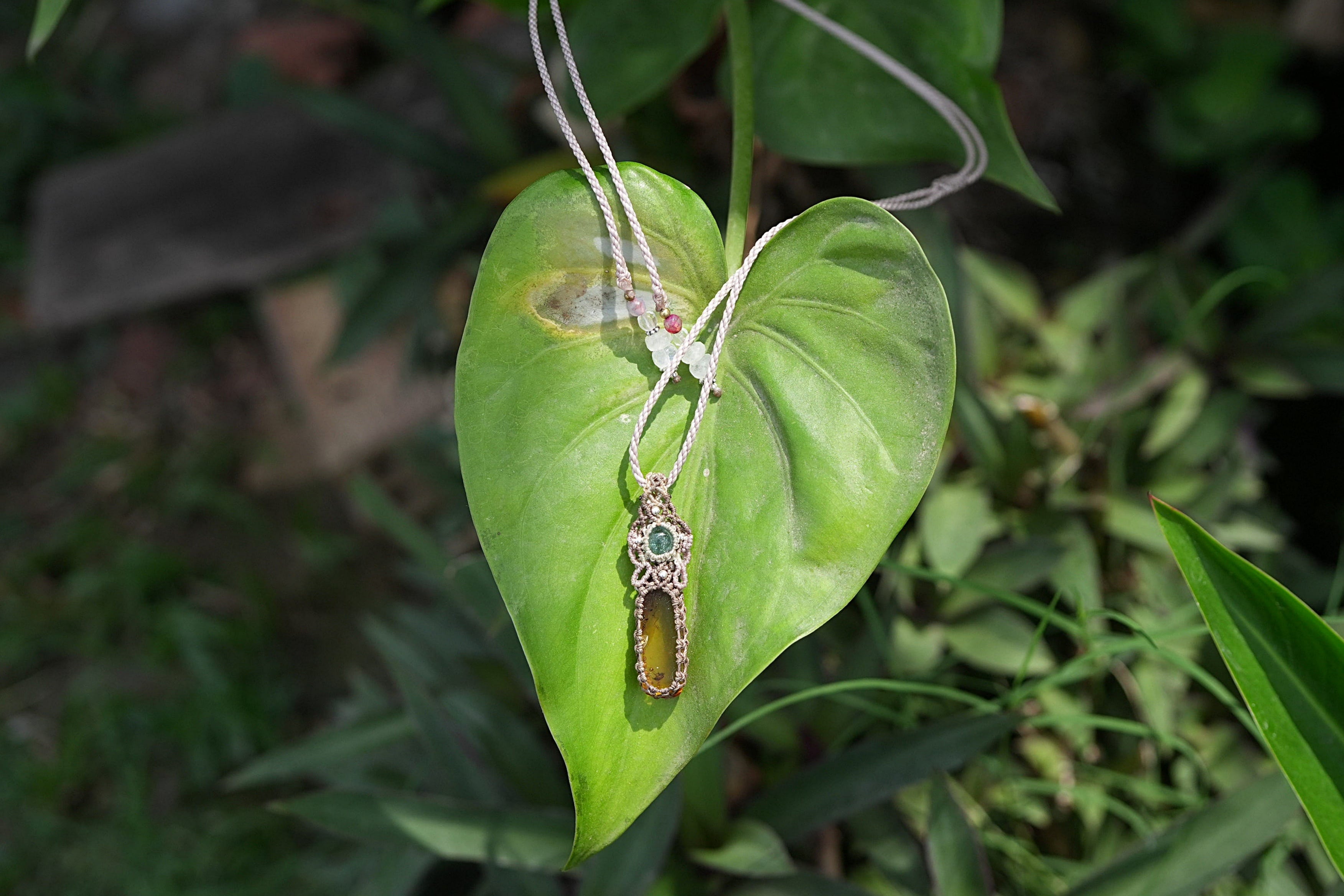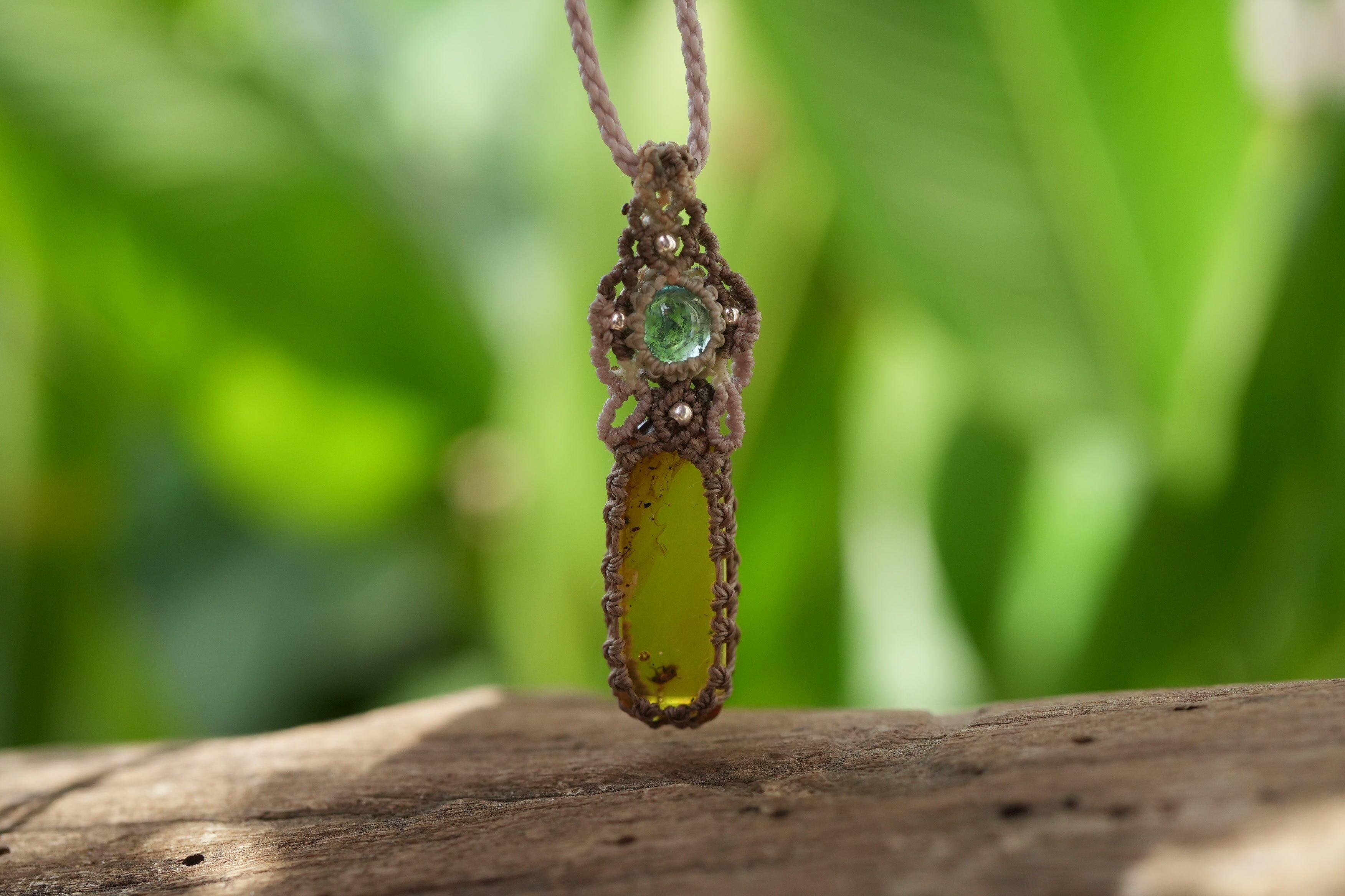 琥珀★虫入り★アンバー マクラメネックレス1910