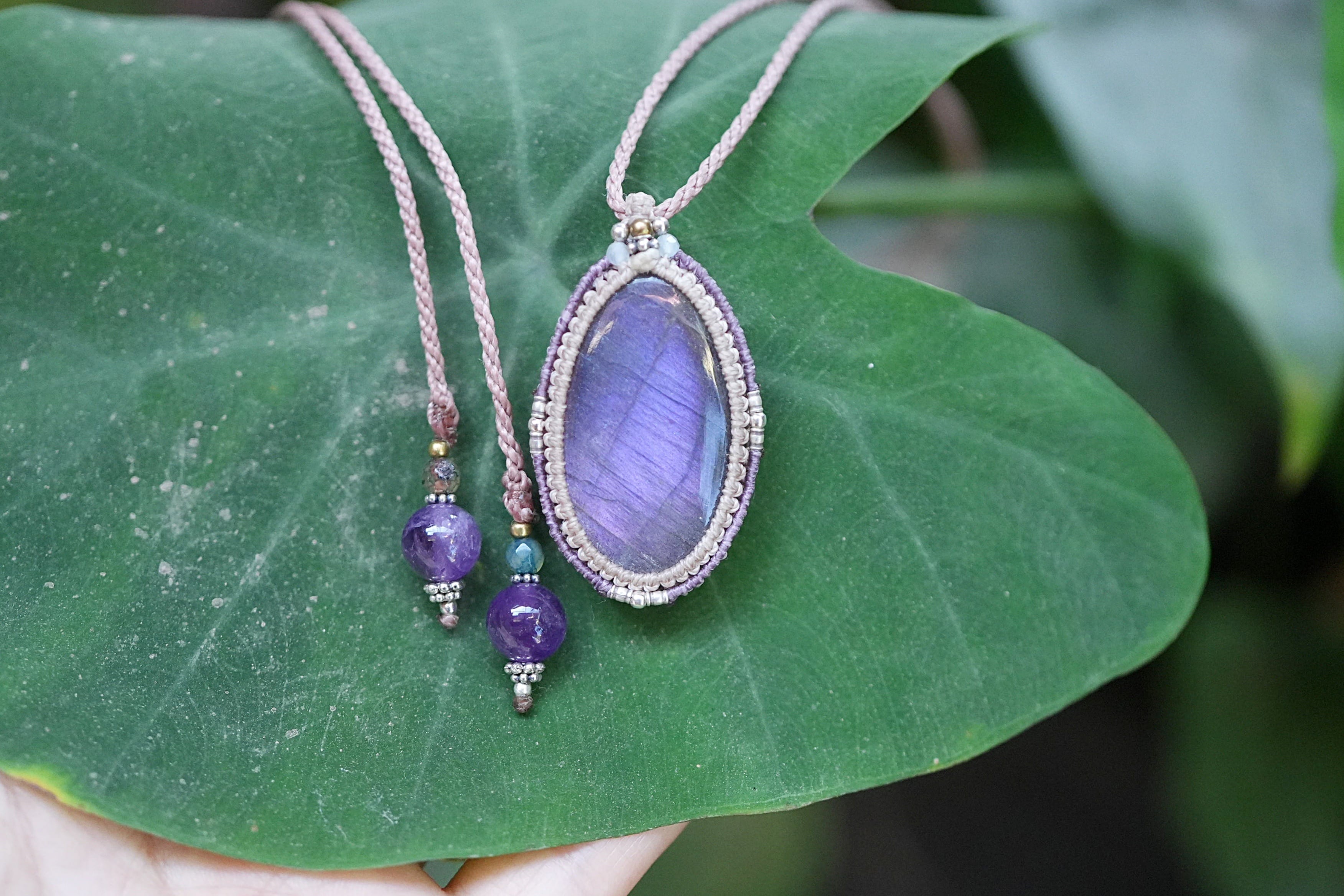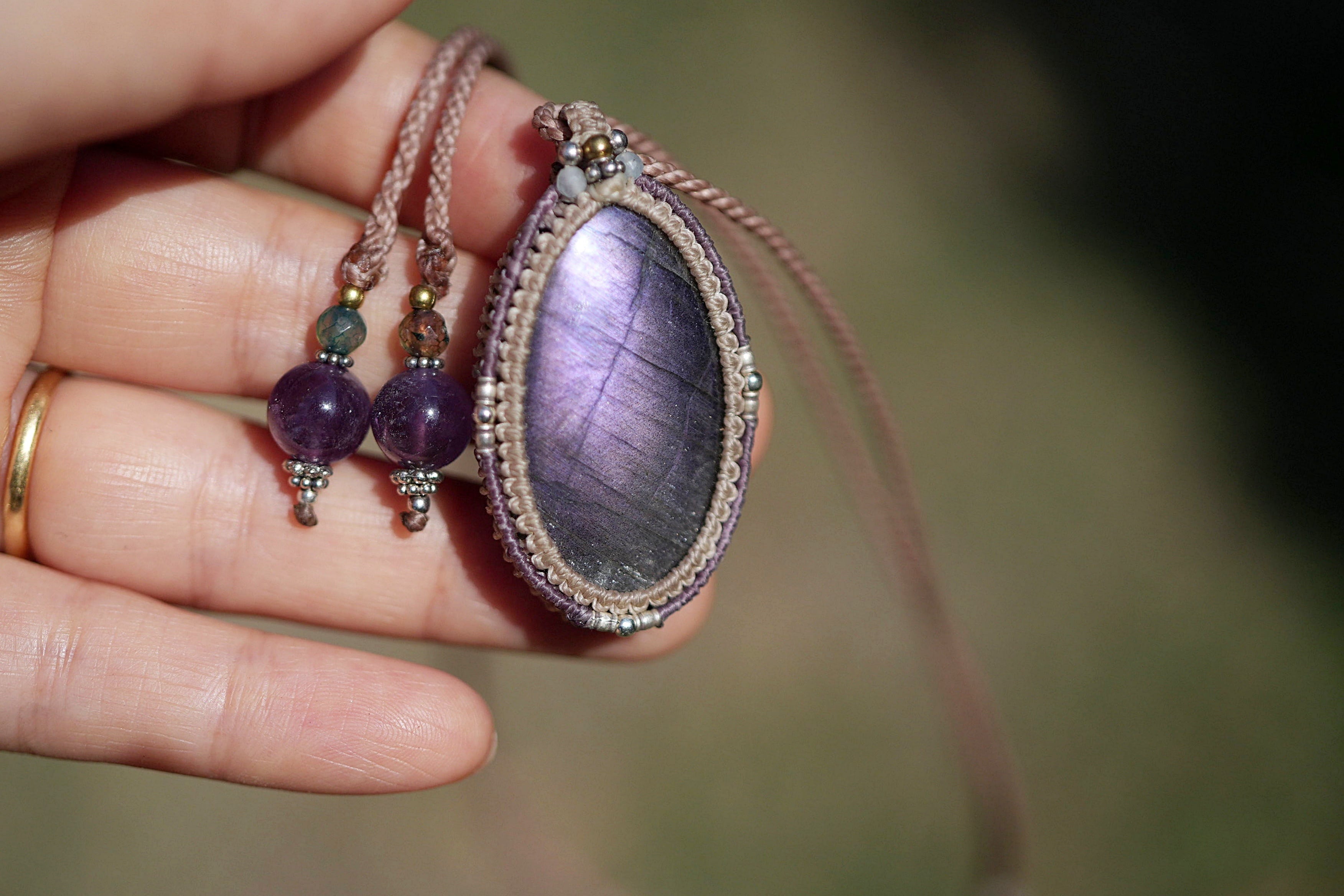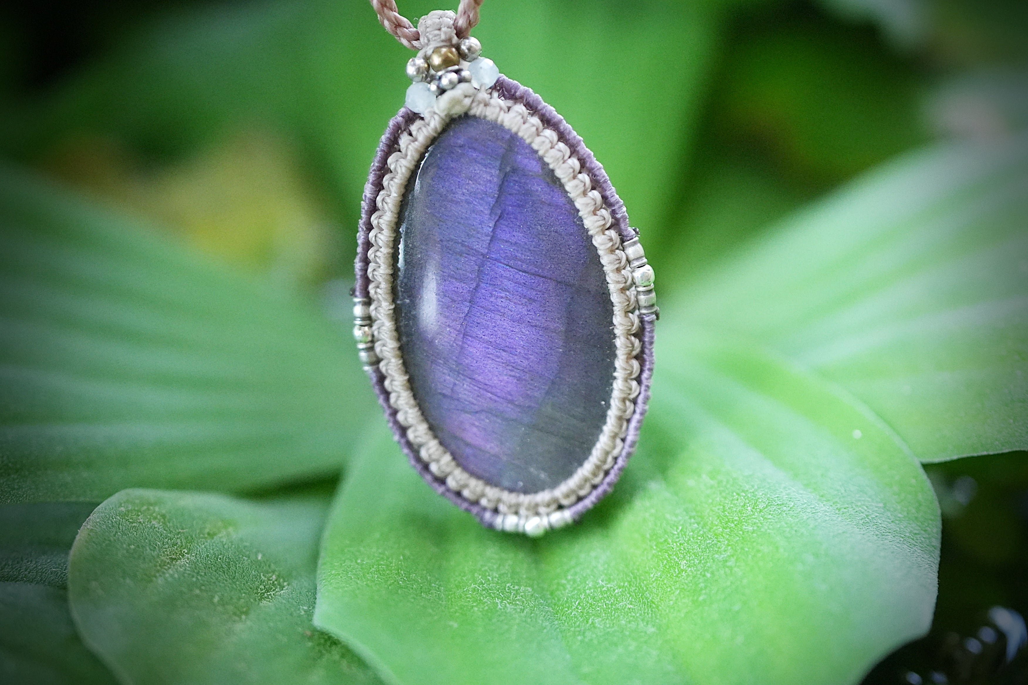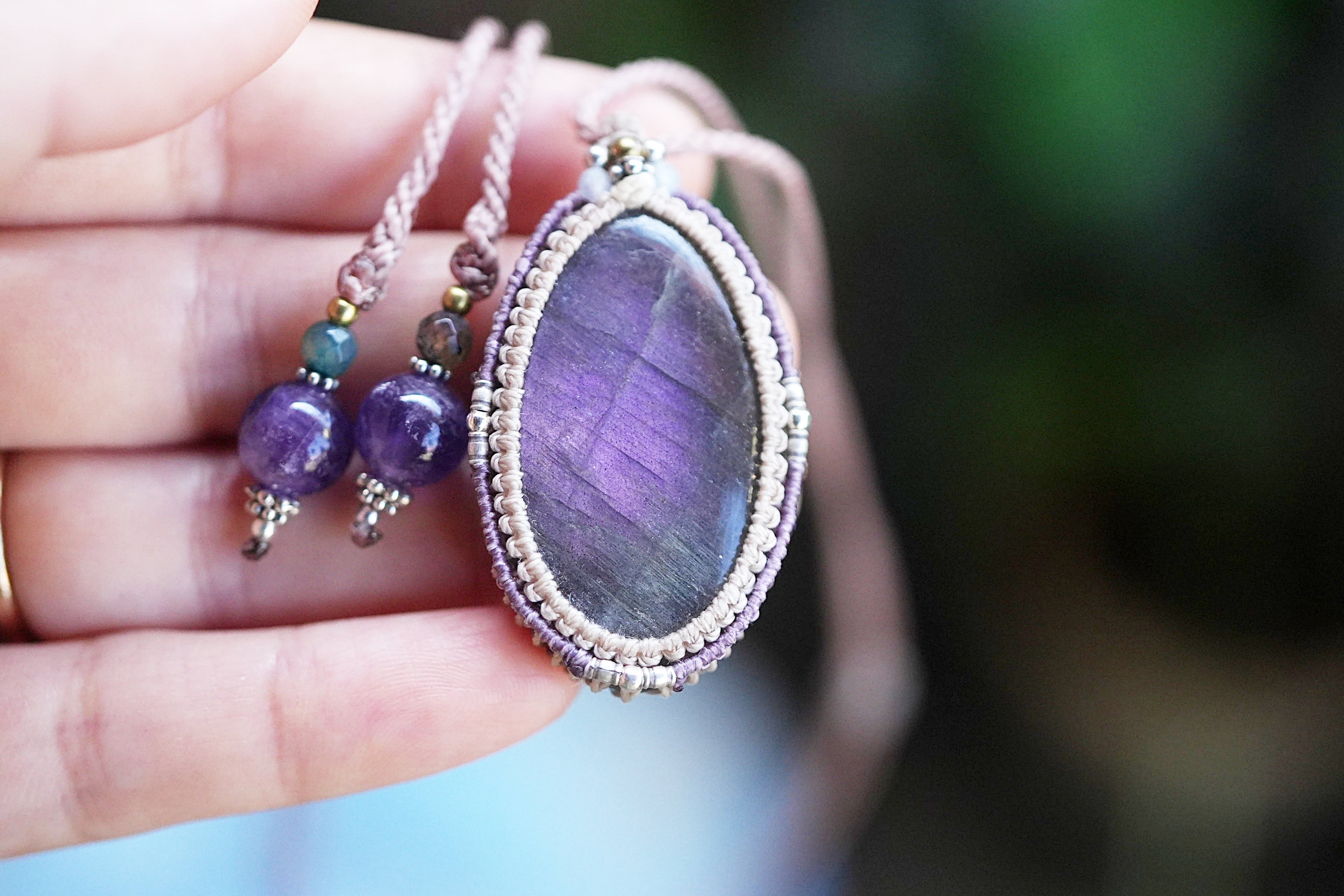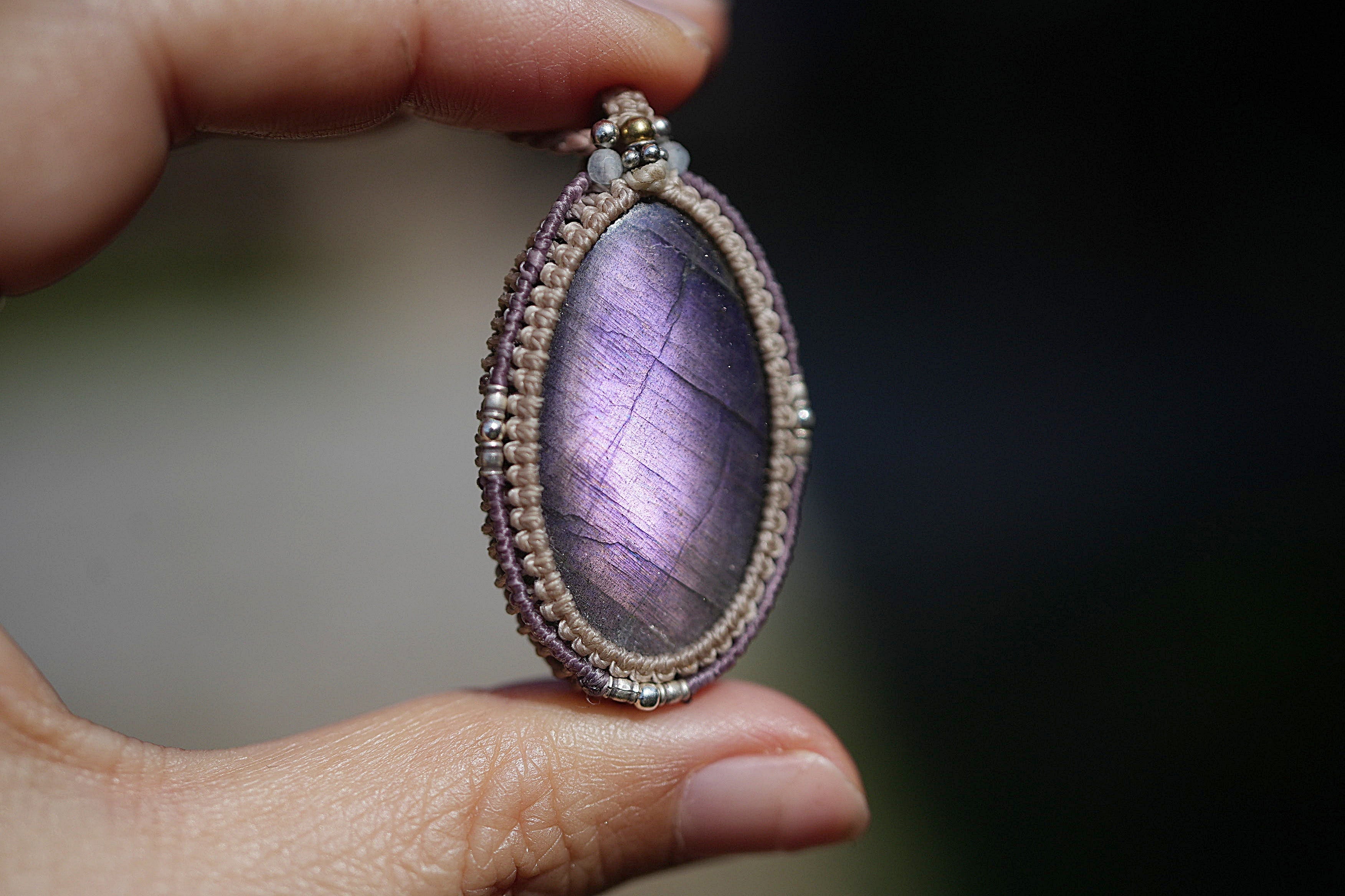 紫色のラブラドライト特有のシラーが浮かび上がり