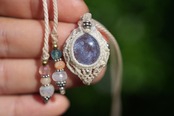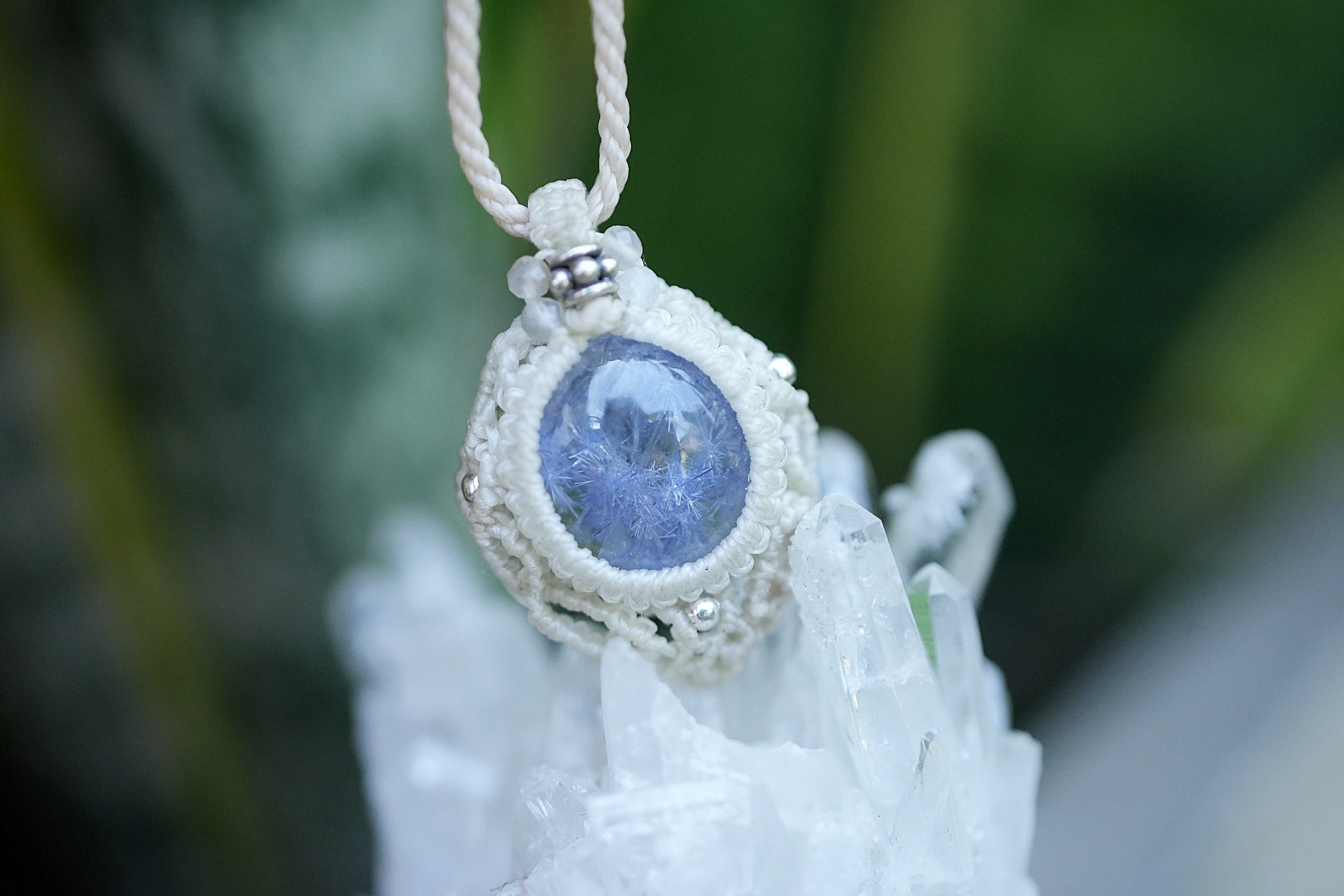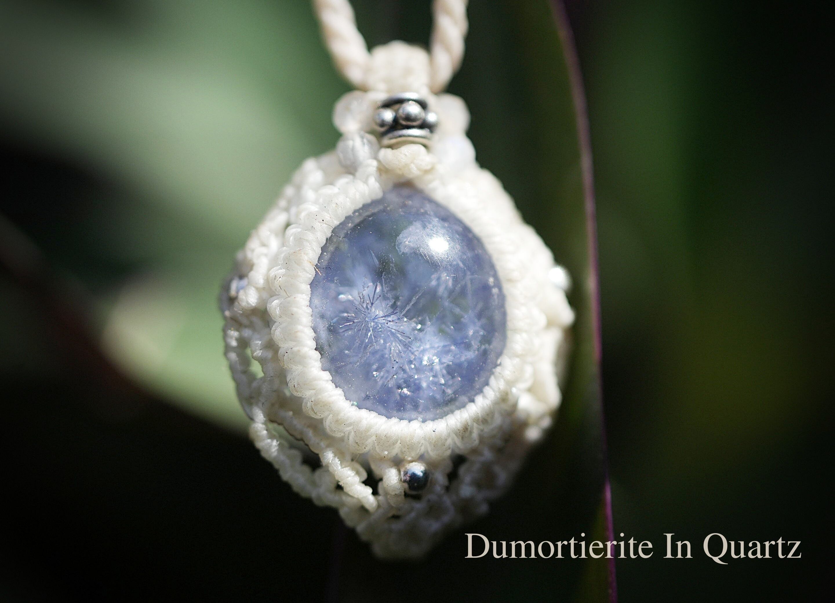 繊細なブルーお花火★デュモルチェライトインクォーツ マクラメネックレス1922