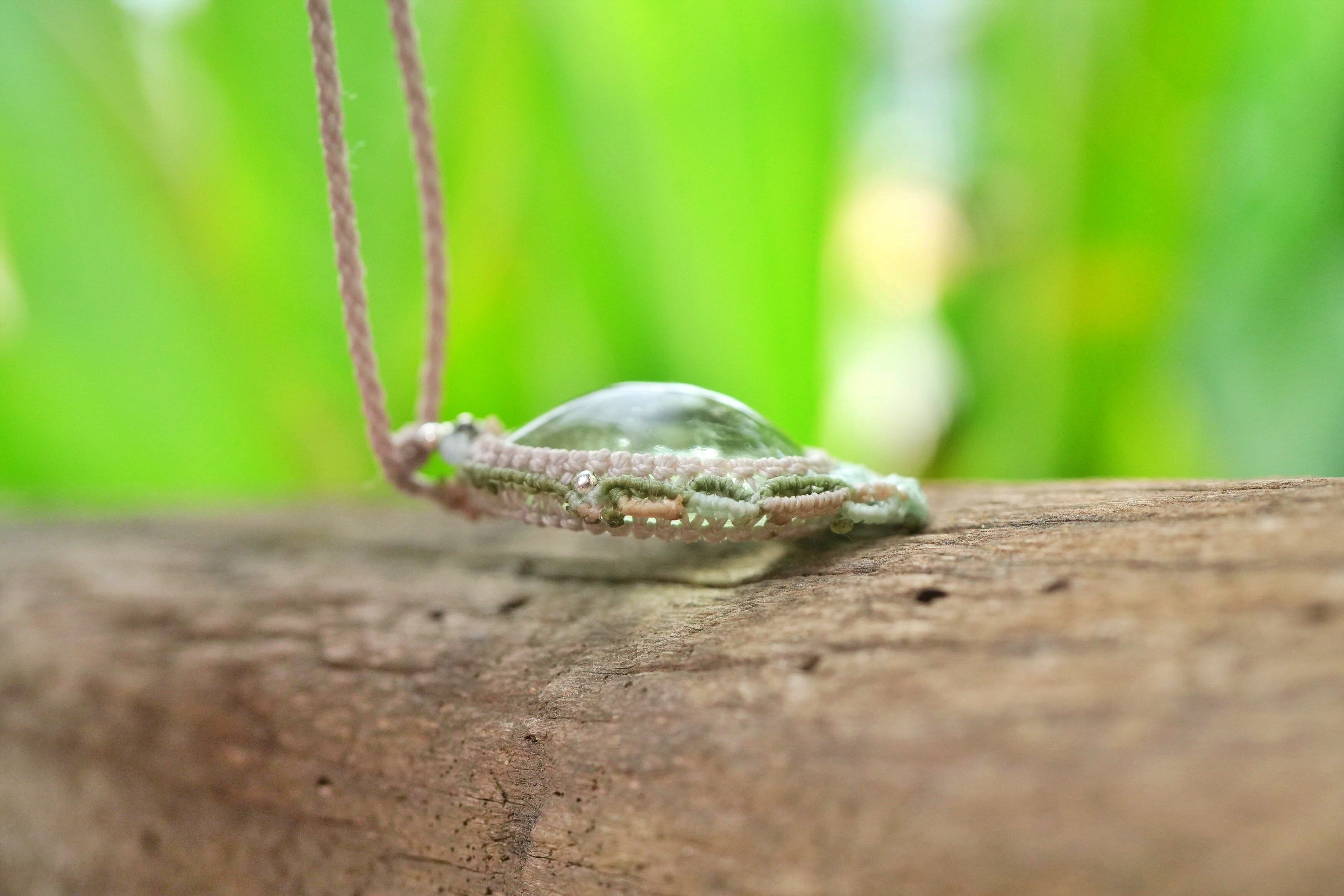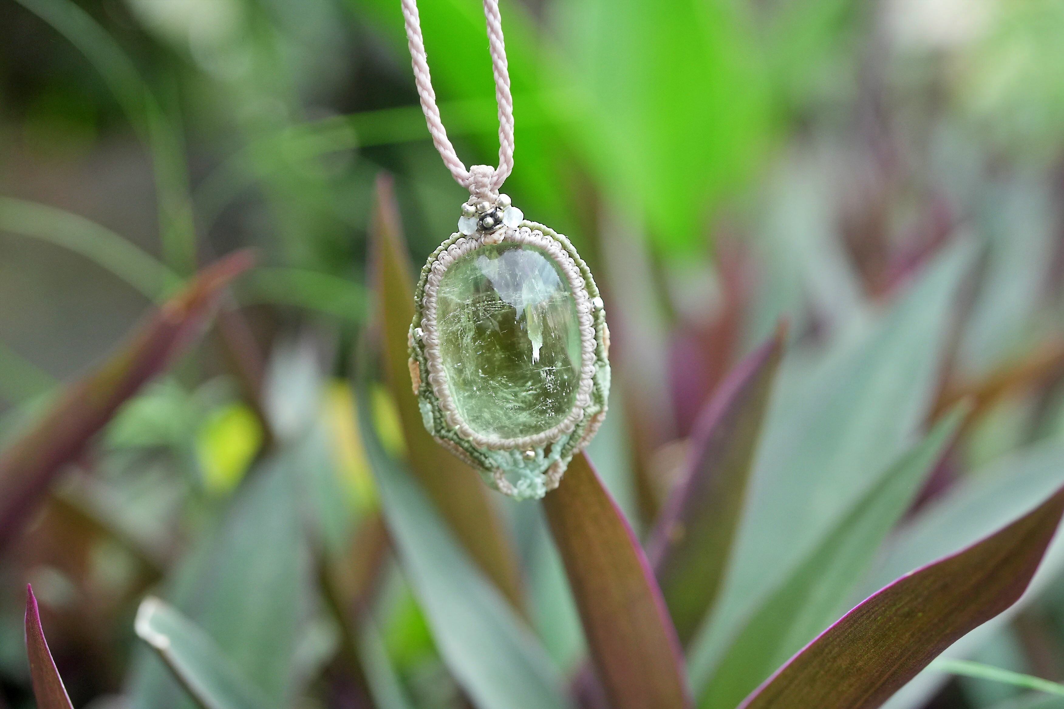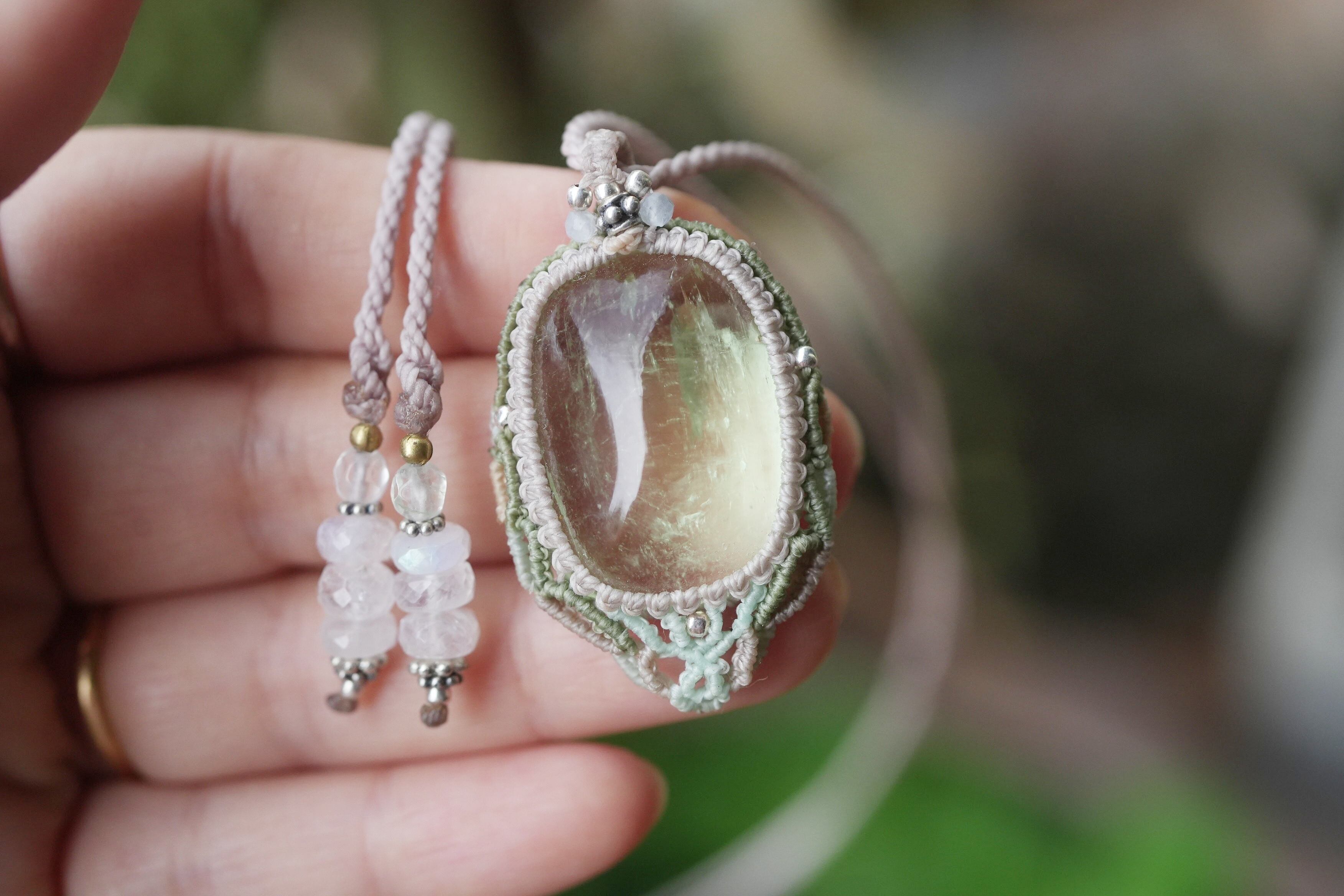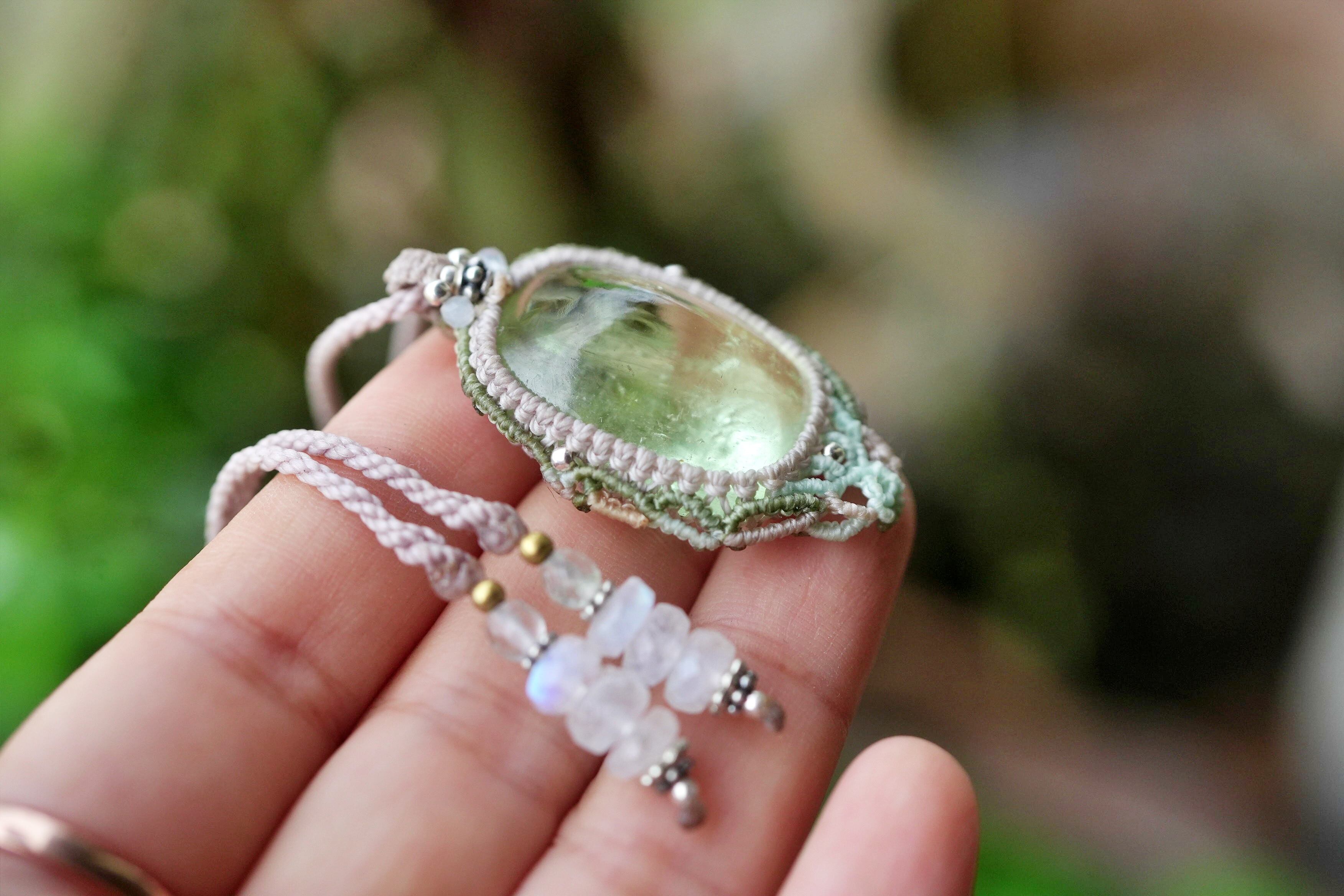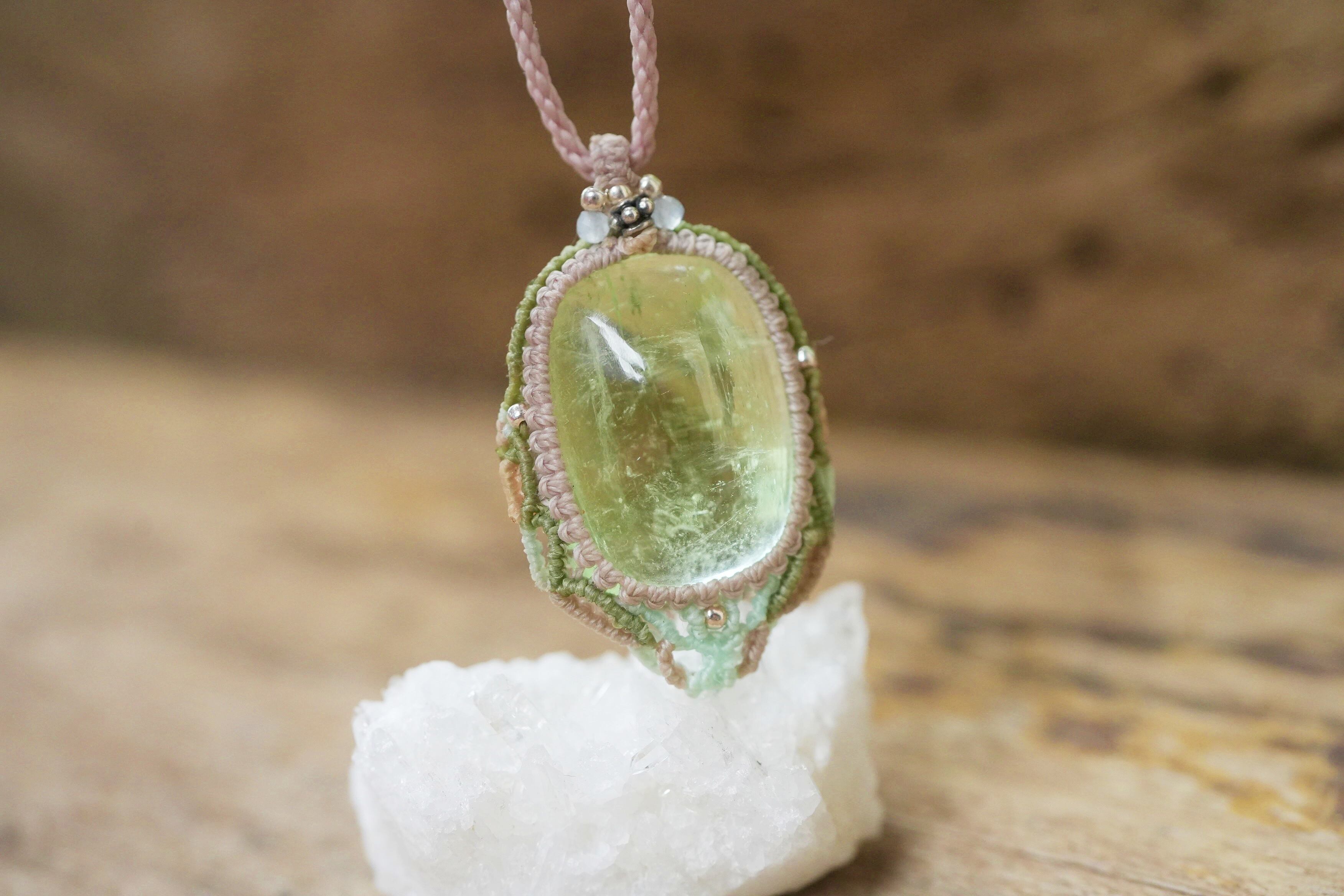 レア★グリーンアクアマリン マクラメネックレス1933
