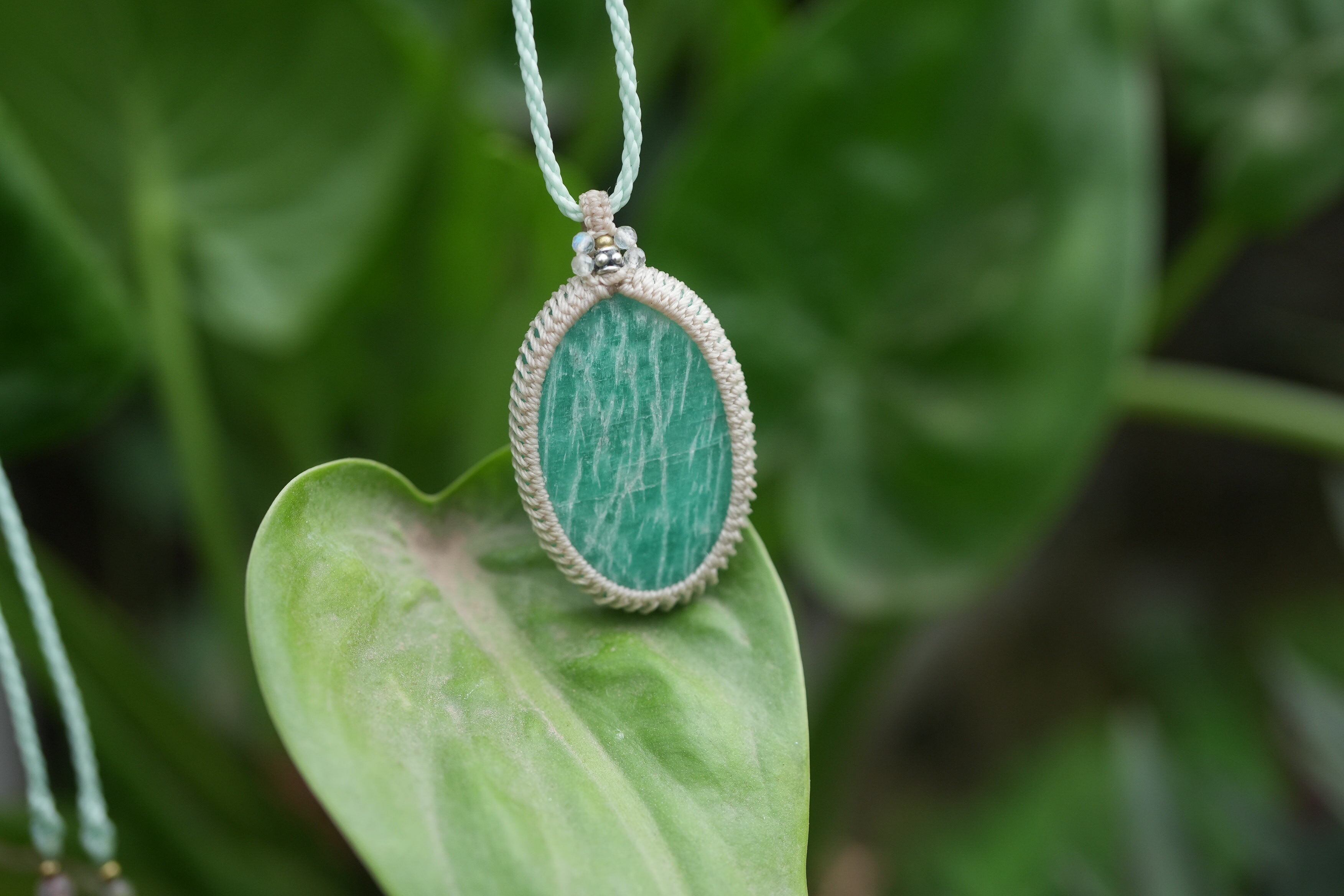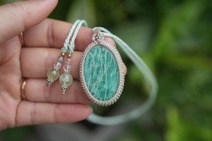 やわらかグリーン★アマゾナイト マクラメネックレス1929