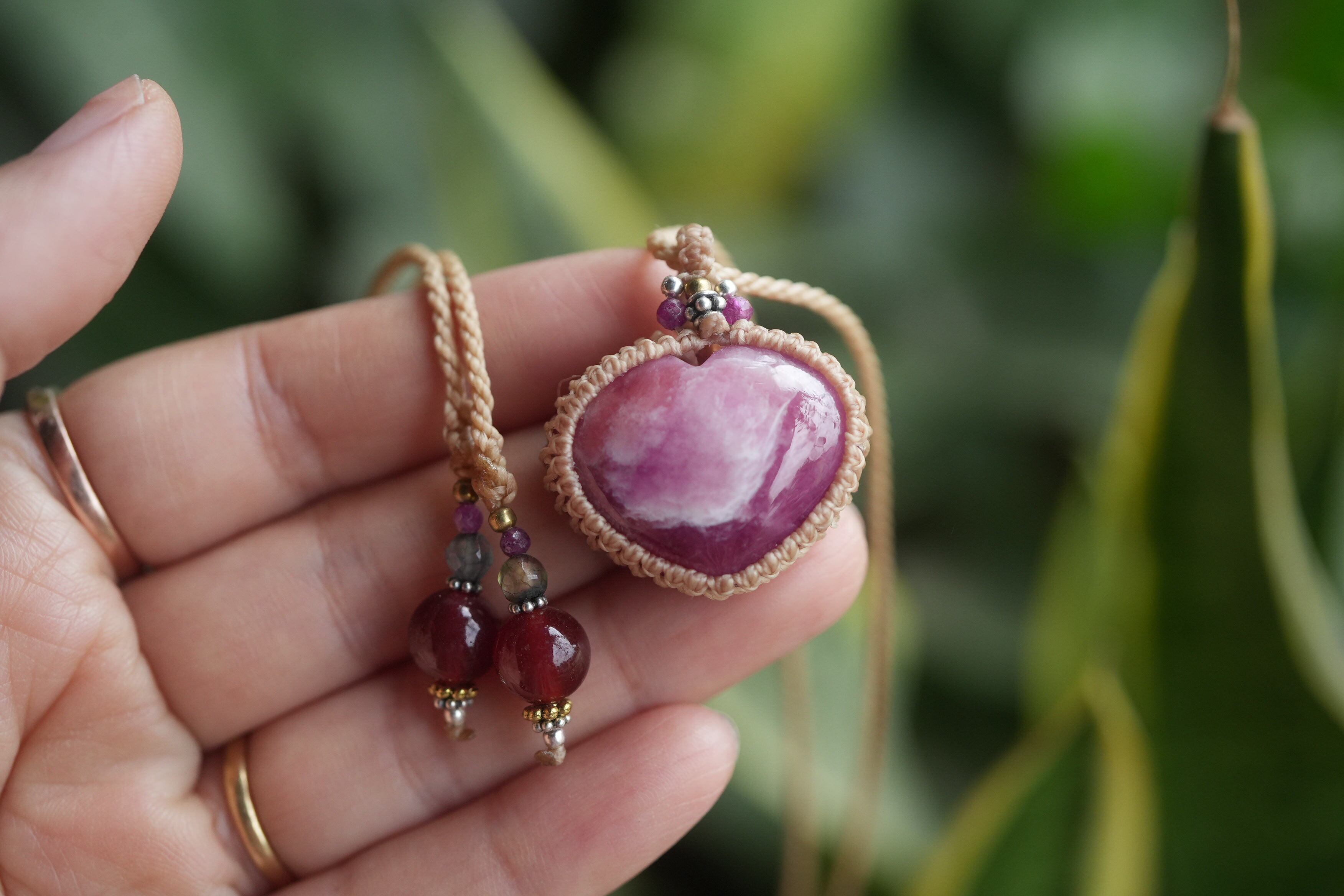 ハートシェイプ★ローズルビー マクラメネックレス1930