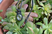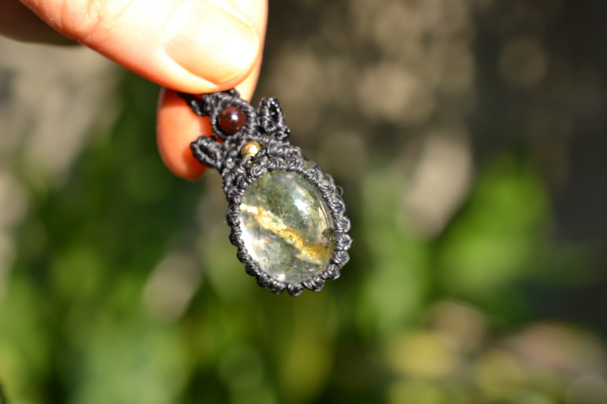 イエローラインと緑色のクローライトが散りばめてある大変美しいガーデンクォーツをペンダントに仕上げました。